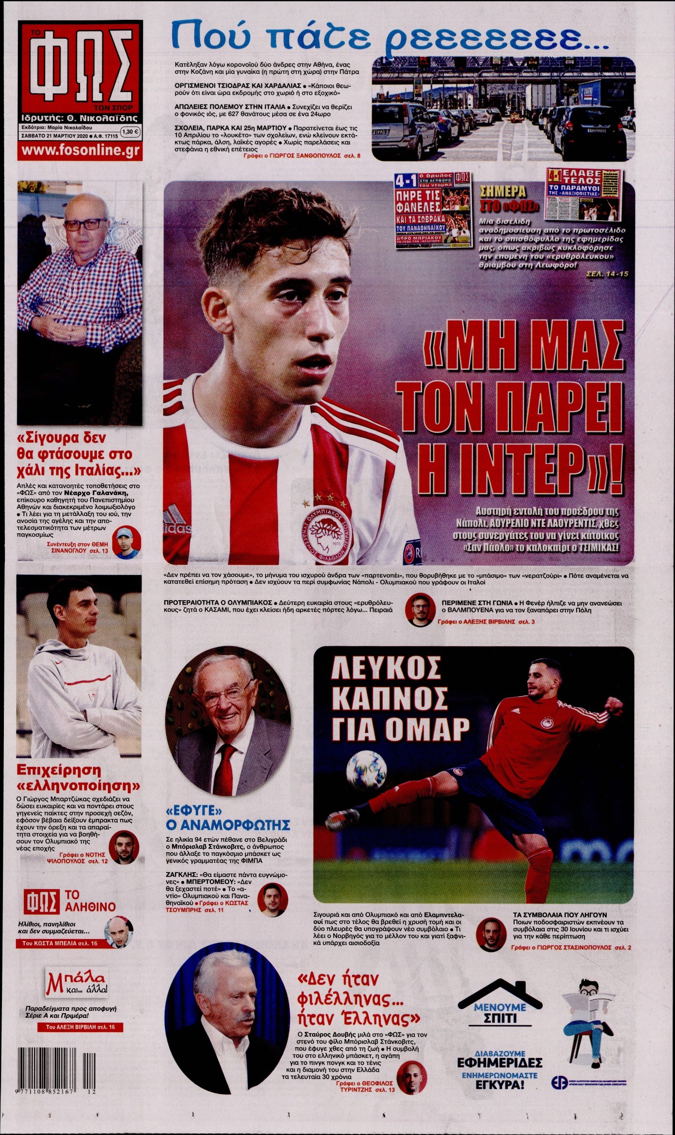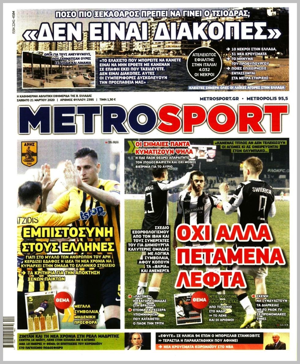 Οι αθλητικές εφημερίδες 21/3/2020 Διονύσης Νίκκας 08:10, Σάββατο 21 Μαρτίου 2020 Media Διαβάστε τα πρωτοσέλιδα των αθλητικών εφημερίδων… ΑΘΛΗΤΙΚΕΣ ΕΦΗΜΕΡΙΔΕΣ ΠΡΩΤΟΣΕΛΙΔΑ Μοιράσου το: σχολίασε κι εσύ (0 σχόλια) Ακολουθήστε το enikos.gr στο Google News και μάθετε πρώτοι όλες τις ειδήσεις Δείτε όλες τις τελευταίες ειδήσεις από την Ελλάδα και τον Κόσμο στο enikos.gr Ειδήσεις Ροή Ειδήσεων 7 ώρες πριν Χριστούγεννα στα μπλόκα οι αγρότες: Άνοιξαν στα διόδια και μοίρασαν προϊόντα στους πολίτες – Νέα σύσκεψη την Κυριακή στη Νίκαια 5 ώρες πριν Ρετζέπ Ταγίπ Ερντογάν: Δεν έχουμε καμία βλέψη στα εδάφη ή την κυριαρχία κανενός – Δεν θα επιτρέψουμε να παραβιαστούν τα δικαιώματά μας 6 ώρες πριν H ακτοφυλακή των ΗΠΑ κατάσχεσε και δεύτερο τάνκερ στα ανοιχτά της Βενεζουέλας – Δείτε βίντεο 7 ώρες πριν Κύκλωμα διακίνησης ναρκωτικών σε σχολεία: Τηλεφωνούσαν στους ανηλίκους την ώρα του μαθήματος – Οι διάλογοι-σοκ, τα «ψευδώνυμα» και τα βασανιστήρια 7 ώρες πριν Αρχεία Επστάιν: Οι 500 σελίδες που λείπουν, τα αναπάντητα ερωτήματα και οι επώνυμοι – Τι έπεται 7 ώρες πριν Αποκαλύφθηκε το άγνωστο «GPS» της αρχαιότητας – Πώς οι ναοί «φώτιζαν» τον δρόμο των ναυτικών πριν από την εφεύρεση των φάρων 8 ώρες πριν Ύπνος: Η διατροφή που μπορεί να σας βοηθήσει να κοιμάστε καλύτερα και να ζήσετε περισσότερο 9 ώρες πριν Αριθμολογία: Ο αριθμός του φύλακα αγγέλου σας, με βάση τον μήνα γέννησής σας – «Έτσι σας στέλνει σημάδια το σύμπαν» 21 ώρες πριν Enerwave: Το νέο «ρεύμα» στη λιανική ενέργειας που αλλάζει την εμπειρία του καταναλωτή 7 λεπτά πριν Οι πολιτικές εφημερίδες 21/12/2025 15 λεπτά πριν Τα ζώδια σήμερα, Κυριακή 21 Δεκεμβρίου: Αιγόκεροι, αποφασίζετε για το επόμενο κεφάλαιο της ζωής σας 23 λεπτά πριν Εφημερεύοντα φαρμακεία σε Αθήνα και Θεσσαλονίκη (21/12) 30 λεπτά πριν Γιαννούλης Λαρεντζάκης: Πρόταση γάμου στην αρραβωνιαστικιά του, Γιώτα Γεωργοπούλου, έκανε ο παίκτης του Ολυμπιακού – Δείτε φωτογραφίες και βίντεο 37 λεπτά πριν Σήμερα με τη Realnews: Δωροεπιταγή 10€ ENIKOS NETWORK Οι γυναίκες αποκαλύπτουν το πιο ελκυστικό πράγμα που μπορεί να κάνει ένας άνδρας Ομορφιά και αντιγήρανση: Ειδικοί μιλούν για συσκευές περιποίησης του δέρματος «Πολεμική» προετοιμασία από την ευρωπαϊκή βιομηχανία ενέργειας – Η Eurelectric ζητεί «ομπρέλα» προστασίας για τις υποδομές Ακύρωση ΑΦΜ για απάτες – Ποιους βάζει στο στόχαστρο η ΑΑΔΕ Χαρτογραφώντας το «σημείο χωρίς επιστροφή»: Για πρώτη φορά αποκαλύπτεται με λεπτομέρεια το ακανθώδες όριο της ατμόσφαιρας τ... Η Google καταργεί τη λειτουργία «dark web report» – Πώς θα μπορούν οι χρήστες να διαγράφουν τα δεδομένα τους περισσότερα 05:38 , Κυριακή 21 Δεκεμβρίου 2025 Οι πολιτικές εφημερίδες 21/12/2025 Διαβάστε τα πρωτοσέλιδα από τις πολιτικές εφημερίδες, σήμερα 21/12/2025. 05:08 , Κυριακή 21 Δεκεμβρίου 2025 Σήμερα με τη Realnews: Δωροεπιταγή 10€ Δωροεπιταγή αξίας 10€ για αγορές άνω των 60€ από τα πολυκαταστήματα FactoryOutlet H προσφορά ι... 04:08 , Κυριακή 21 Δεκεμβρίου 2025 Σήμερα με τη Realnews: Ό,τι και αν αγοράσεις, σκανάρεις και κερδίζεις! Σήμερα με τη Realnews: Ό,τι και αν αγοράσεις, σκανάρεις και κερδίζεις! Με το PADU app, το κορυ... 03:08 , Κυριακή 21 Δεκεμβρίου 2025 Σήμερα με τη Realnews: Instyle, μαζί Drive και Realnews Geopolitics Σήμερα με τη Realnews: Instyle, μαζί Drive και Realnews Geopolitics Instyle Η Άννα Ρεζάν, η Ch... ΤΕΛΕΥΤΑΙΕΣ ΕΙΔΗΣΕΙΣ 7 λεπτά πριν Οι πολιτικές εφημερίδες 21/12/2025 15 λεπτά πριν Τα ζώδια σήμερα, Κυριακή 21 Δεκεμβρίου: Αιγόκεροι,... 23 λεπτά πριν Εφημερεύοντα φαρμακεία σε Αθήνα και Θεσσαλονίκη (2