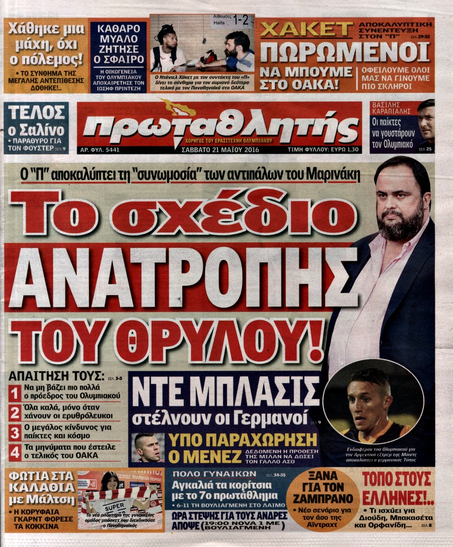 Οι αθλητικές εφημερίδες 21/5/2016 Enikos Newsroom 05:30, Σάββατο 21 Μαΐου 2016 Media Διαβάστε τα σημερινά πρωτοσέλιδα των αθλητικών εφημερίδων: ΑΘΛΗΤΙΚΕΣ ΕΦΗΜΕΡΙΔΕΣ ΠΡΩΤΟΣΕΛΙΔΑ Μοιράσου το: σχολίασε κι εσύ (0 σχόλια) Ακολουθήστε το enikos.gr στο Google News και μάθετε πρώτοι όλες τις ειδήσεις Δείτε όλες τις τελευταίες ειδήσεις από την Ελλάδα και τον Κόσμο στο enikos.gr Ειδήσεις Ροή Ειδήσεων 59 λεπτά πριν Υπόθεση Έπσταϊν: Το Υπουργείο Δικαιοσύνης δημοσιοποίησε μια σειρά από εξαιρετικά επεξεργασμένα αρχεία – «Λείπουν τα πιο σημαντικά έγγραφα», λένε οι Δημοκρατικοί 3 ώρες πριν Σαρωτικοί οι έλεγχοι στους δρόμους ενόψει εορτών – Μπλόκα της τροχαίας σε κεντρικές αρτηρίες της Αττικής 1 ώρα πριν ΟΝΕΧ – MEGATUGS: Ξεκίνησε η ναυπήγηση ρυμουλκών στην Ελλάδα – Προθάλαμος πολεμικών πλοίων – Δείτε φωτογραφίες και βίντεο 1 ώρα πριν Καιρός: Αλλαγή σκηνικού σήμερα με βροχές και πτώση της θερμοκρασίας – Οι προβλέψεις των μετεωρολόγων για τα Χριστούγεννα 10 ώρες πριν Χριστούγεννα στα μπλόκα: Επιμένουν στις κινητοποιήσεις τους οι αγρότες – Ανοίγουν τα διόδια το Σαββατοκύριακο 3 ώρες πριν Αυγά: Πόσα μπορείτε να τρώτε την ημέρα με ασφάλεια για μέγιστη πρόσληψη πρωτεΐνης 3 ώρες πριν Τα ζώδια σήμερα, Σάββατο 20 Δεκεμβρίου: Παρθένοι, το σύμπαν σας δίνει το κλειδί 2 ώρες πριν Οπτική ψευδαίσθηση: Μόνο αν είσαι ο Σέρλοκ Χολμς θα βρεις τον αριθμό «87» σε 7 δευτερόλεπτα 39 λεπτά πριν Αρχαιολόγοι ανακάλυψαν σε χωράφι απεικόνιση 600 ετών ενός Αγίου – Τα στοιχεία που δείχνουν ότι μαρτύρησε 7 λεπτά πριν Ο «χάρτης» με τις αυξήσεις και τις φοροελαφρύνσεις του 2026 – Ποιοι και πόσα κερδίζουν 15 λεπτά πριν Η τέλεια συνταγή για cookies με κομμάτια σοκολάτας 23 λεπτά πριν MyHealth App: Τα στοιχεία για τον Προσωπικό Βοηθό Υγείας Πολίτη – Τι ερωτήματα έγιναν μέσα σε 7 ημέρες 31 λεπτά πριν Τρομεροί γονείς: Η Μαρία Καβογιάννη εισβάλλει στο σπίτι της οικογένειας Στεφανίδη 39 λεπτά πριν Αρχαιολόγοι ανακάλυψαν σε χωράφι απεικόνιση 600 ετών ενός Αγίου – Τα στοιχεία που δείχνουν ότι μαρτύρησε ENIKOS NETWORK Το τεστ των 10 δευτερολέπτων που μπορεί να προβλέψει το προσδόκιμο ζωής σας – Τι λέει ειδικός του Cleveland Επιλέξτε καρέκλα για να μάθετε ποια είναι τα κρυφά χαρακτηριστικά σας – Τι αποκάλυψε για εσάς αυτό το τεστ προσωπικότητας; Mega χριστουγεννιάτικη φορολοταρία: «Κλείδωσε» η ημερομηνία για την κλήρωση – Ερωτήσεις και απαντήσεις Αναστολή μέτρων αναγκαστικής εκτέλεσης για κτηνοτρόφους που πλήττονται από την ευλογιά των αιγοπροβάτων Χαρτογραφώντας το «σημείο χωρίς επιστροφή»: Για πρώτη φορά αποκαλύπτεται με λεπτομέρεια το ακανθώδες όριο της ατμόσφαιρας τ... Η Google καταργεί τη λειτουργία «dark web report» – Πώς θα μπορούν οι χρήστες να διαγράφουν τα δεδομένα τους περισσότερα 08:14 , Σάββατο 20 Δεκεμβρίου 2025 Τρομεροί γονείς: Η Μαρία Καβογιάννη εισβάλλει στο σπίτι της οικογένειας Στεφανίδη Όσα θα δούμε στο νέο διπλό επεισόδιο της σειράς «Τρομεροί γονείς», σήμερα Σάββατο 20 Δεκεμβρίο... 05:48 , Σάββατο 20 Δεκεμβρίου 2025 Οι οικονομικές εφημερίδες 20/12/2025 Διαβάστε τα πρωτοσέλιδα από τις οικονομικές εφημερίδες, σήμερα 20/12/2025. 05:43 , Σάββατο 20 Δεκεμβρίου 2025 Οι αθλητικές εφημερίδες 20/12/2025 Διαβάστε τα πρωτοσέλιδα από τις αθλητικές εφημερίδες, σήμερα 20/12/2025. 05:38 , Σάββατο 20 Δεκεμβρίου 2025 Οι πολιτικές εφημερίδες 20/12/2025 Διαβάστε τα πρωτοσέλιδα από τις πολιτικές εφημερίδες, σήμερα 20/12/2025. ΤΕΛΕΥΤΑΙΕΣ ΕΙΔΗΣΕΙΣ 7 λεπτά πριν Ο «χάρτης» με τις αυξήσεις και τις φοροελαφρύνσεις... 