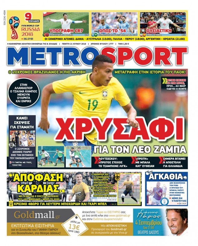 Οι αθλητικές εφημερίδες 21/6/18 Enikos Newsroom 06:23, Πέμπτη 21 Ιουνίου 2018 Media Διαβάστε τα σημερινά πρωτοσέλιδα των αθλητικών εφημερίδων. ΑΘΛΗΤΙΚΕΣ ΕΦΗΜΕΡΙΔΕΣ ΠΡΩΤΟΣΕΛΙΔΑ Μοιράσου το: σχολίασε κι εσύ (0 σχόλια) Ακολουθήστε το enikos.gr στο Google News και μάθετε πρώτοι όλες τις ειδήσεις Δείτε όλες τις τελευταίες ειδήσεις από την Ελλάδα και τον Κόσμο στο enikos.gr Ειδήσεις Ροή Ειδήσεων 4 ώρες πριν Μεσόγειος: Η διαδρομή του ρωσικού τάνκερ «Qendil» και η στοχευμένη επίθεση της Ουκρανίας με drone – Ο Πούτιν προειδοποίησε για αντίποινα 20 λεπτά πριν Αγρότες: Έκλεισαν για μία ώρα την παρακαμπτήρια της Ιόνιας Οδού στη θέση Χαλίκι 2 ώρες πριν Εμπλοκή και αερομαχίες με οπλισμένα τουρκικά F-16 στο Αιγαίο 2 ώρες πριν Πούτιν: «Ναι, είμαι ερωτευμένος» – Βίντεο από τη σπάνια προσωπική παραδοχή του 24 λεπτά πριν Ανδρέας Λυκουρέντζος: Υπέβαλε την παραίτησή του ο πρόεδρος του ΕΛΓΑ, αλλά δεν έγινε δεκτή – Όλο το παρασκήνιο 34 λεπτά πριν Αριθμολογία: Οι άνθρωποι που έχουν γεννηθεί αυτές τις 4 ημερομηνίες, συχνά παρεξηγούνται – «Η καλοσύνη τους κρύβει τεράστια δύναμη» 3 ώρες πριν Μήπως έχετε χάσει τον εαυτό σας στη σχέση σας; 7 «αθόρυβες» υποχωρήσεις που μάλλον κάνατε, χωρίς να το συνειδητοποιήσετε 2 ώρες πριν Ξεχάστε το καθάρισμα το Σαββατοκύριακο: Ο «κανόνας των 20 λεπτών» που θα σας λύσει τα χέρια 5 ώρες πριν Κουίζ για την παλιά Αθήνα: Αναγνωρίζετε την περιοχή; Έχετε περάσει 100% από εκεί 5 λεπτά πριν Συνεχίζει να προκαλεί ο Μίτσκοσκι: «Για μένα το όνομα Μακεδονία είναι ιερό» 15 λεπτά πριν Ο Γιάννης Κακλέας σκηνοθετεί Βερόνικα Δαβάκη και Ιβάν Σβιτάιλο στη «Locandiera» 20 λεπτά πριν Αγρότες: Έκλεισαν για μία ώρα την παρακαμπτήρια της Ιόνιας Οδού στη θέση Χαλίκι 24 λεπτά πριν Ανδρέας Λυκουρέντζος: Υπέβαλε την παραίτησή του ο πρόεδρος του ΕΛΓΑ, αλλά δεν έγινε δεκτή – Όλο το παρασκήνιο 29 λεπτά πριν Ηράκλειο: «Ιπτάμενοι» Άγιοι Βασίληδες μοίρασαν δώρα και χαμόγελα στα παιδιά στο ΠΑΓΝΗ – Δείτε βίντεο ENIKOS NETWORK Το ΕΚΑΒ τιμήθηκε από την Ακαδημία Αθηνών για τα 40 χρόνια προσφοράς του Έχετε πραγματικά μεγάλη καρδιά; 10 χαρακτηριστικά όσων έχουν καλοσύνη Έρχονται νέες προσλήψεις σε Δήμο – Όλες οι λεπτομέρειες Επίδομα παιδιού: Πότε ανοίγει ξανά η πλατφόρμα για τις αιτήσεις Χαρτογραφώντας το «σημείο χωρίς επιστροφή»: Για πρώτη φορά αποκαλύπτεται με λεπτομέρεια το ακανθώδες όριο της ατμόσφαιρας τ... Η Google καταργεί τη λειτουργία «dark web report» – Πώς θα μπορούν οι χρήστες να διαγράφουν τα δεδομένα τους περισσότερα 20:37 , Παρασκευή 19 Δεκεμβρίου 2025 Don’t Forget The Lyrics: Η Έλλη Κοκκίνου υποδέχεται 4 παίκτες που θα κάνουν τα πάντα για να μη χάσουν ούτε… μισή λέξη από τους στίχους Το «Don’t Forget The Lyrics» επιστρέφει απόψε, Παρασκευή 19 Δεκεμβρίου, στις 21:00 με νέο επει... 19:31 , Παρασκευή 19 Δεκεμβρίου 2025 GNTM: Απόψε ο μεγάλος τελικός για τους 4 φιναλίστ Έπειτα από μήνες γεμάτους μόδα, δημιουργία και έντονες αναμετρήσεις, το GNTM 2025 κορυφώνεται,... 18:11 , Παρασκευή 19 Δεκεμβρίου 2025 Το σόι σου: Ο Άρης έρχεται στην Ελλάδα για τις γιορτές των Χριστουγέννων – Τι θα δούμε στο αποψινό εορταστικό επεισόδιο Ένα απολαυστικό, εορταστικό επεισόδιο της σειράς “Το σόι σου”, γεμάτο ευτράπελα αλ... 15:15 , Παρασκευή 19 Δεκεμβρίου 2025 Την Κυριακή με τη Realnews: Ό,τι και αν αγοράσεις, σκανάρεις και κερδίζεις! Την Κυριακή με τη Realnews: Ό,τι και αν αγοράσεις, σκανάρεις και κερδίζεις! Με το PADU app, το... ΤΕΛΕΥΤΑΙΕΣ ΕΙΔΗΣΕΙΣ 5 λεπτά πριν Συνεχίζει να προκαλεί ο Μίτσκοσκι: «Για μένα το όνομα... 15 λε