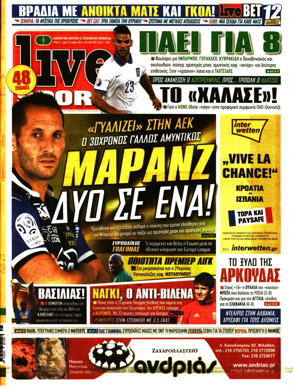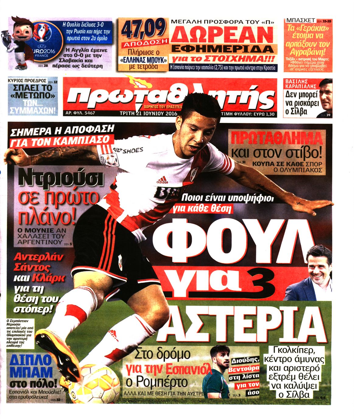 Οι αθλητικές εφημερίδες 21/6/2016 Enikos Newsroom 05:50, Τρίτη 21 Ιουνίου 2016 Media Διαβάστε τα σημερινά πρωτοσέλιδα των αθλητικών εφημερίδων: ΑΘΛΗΤΙΚΕΣ ΕΦΗΜΕΡΙΔΕΣ ΠΡΩΤΟΣΕΛΙΔΑ Μοιράσου το: σχολίασε κι εσύ (0 σχόλια) Ακολουθήστε το enikos.gr στο Google News και μάθετε πρώτοι όλες τις ειδήσεις Δείτε όλες τις τελευταίες ειδήσεις από την Ελλάδα και τον Κόσμο στο enikos.gr Ειδήσεις Ροή Ειδήσεων 2 ώρες πριν Μεσόγειος: Η διαδρομή του ρωσικού τάνκερ «Qendil» και η στοχευμένη επίθεση της Ουκρανίας με drone – Ο Πούτιν προειδοποίησε για αντίποινα 2 ώρες πριν Αττική: Θρίλερ με νεκρό βρέφος 5 μηνών – Κοιμόταν στο ίδιο κρεβάτι με τους γονείς του 3 ώρες πριν Από το Ορμένιο ως τα Μάλγαρα κι από τη Σιάτιστα μέχρι τη Νίκαια: Μπλόκα σε όλη την Ελλάδα – Το Σάββατο ανοίγουν τα διόδια οι αγρότες 3 ώρες πριν «Έλληνας Εσκομπάρ»: Φωτογραφίες με τους 4 τόνους κοκαΐνης που κατασχέθηκαν από το σκάφος «Ουρανία» 4 ώρες πριν Πούτιν: Σαρκαστικά μηνύματα, παράπονα και απρόοπτα στη συνέντευξη Τύπου – Η πρόταση γάμου on air και οι ερωτήσεις για τα αγγούρια και τους… εξωγήινους 4 ώρες πριν Τα 5 ζώδια που ευνοούνται στην ερωτική ζωή τους την επόμενη εβδομάδα – «Η ενέργεια του Αιγόκερου φέρνει αγάπη και σταθερότητα» 8 ώρες πριν Ειδικός μοιράζεται 6 κόλπα για να διατηρείστε σε φόρμα με πάνω από 40 ώρες εργασίας την εβδομάδα: «Προπονηθείτε πριν από τη δουλειά, όχι μετά» 5 ώρες πριν Αυτό το έξυπνο μαθηματικό κόλπο θα μπορούσε να αλλάξει τον τρόπο με τον οποίο οι επιστήμονες μελετούν τους σεισμούς 3 ώρες πριν Κουίζ για την παλιά Αθήνα: Αναγνωρίζετε την περιοχή; Έχετε περάσει 100% από εκεί 16 δευτερόλεπτα πριν Ρούμπιο: Έχει υπάρξει πρόοδος στις συνομιλίες για την Ουκρανία – Τα τελευταία ζητήματα είναι τα πιο δύσκολα 7 λεπτά πριν Πούτιν: «Ναι, είμαι ερωτευμένος» – Βίντεο από τη σπάνια προσωπική παραδοχή του 12 λεπτά πριν Γαλλία – Shein: Υποχρεωτικός έλεγχος ηλικίας των πελατών μετά τον σάλο με τις ερωτικές κούκλες 17 λεπτά πριν Εμπλοκή και αερομαχίες με οπλισμένα τουρκικά F-16 στο Αιγαίο 25 λεπτά πριν GNTM: Απόψε ο μεγάλος τελικός για τους 4 φιναλίστ ENIKOS NETWORK Έχετε πραγματικά μεγάλη καρδιά; 10 χαρακτηριστικά όσων έχουν καλοσύνη «Η σούπερ» γρίπη εξαπλώνεται στην Ευρώπη-Στοιχεία από το ECDC για την αποτελεσματικότητα του εμβολίου Προκήρυξη ΑΣΕΠ για 397 μόνιμες προσλήψεις στο Δημόσιο: Βγήκαν τα προσωρινά αποτελέσματα – Πότε αρχίζει η υποβολή ενστάσεων Η απάντηση της κυβέρνησης στα αιτήματα των αγροτών: 16 έχουν ικανοποιηθεί, 4 βρίσκονται υπό επεξεργασία και 7 δεν είναι εφι... Χαρτογραφώντας το «σημείο χωρίς επιστροφή»: Για πρώτη φορά αποκαλύπτεται με λεπτομέρεια το ακανθώδες όριο της ατμόσφαιρας τ... Η Google καταργεί τη λειτουργία «dark web report» – Πώς θα μπορούν οι χρήστες να διαγράφουν τα δεδομένα τους περισσότερα 19:31 , Παρασκευή 19 Δεκεμβρίου 2025 GNTM: Απόψε ο μεγάλος τελικός για τους 4 φιναλίστ Έπειτα από μήνες γεμάτους μόδα, δημιουργία και έντονες αναμετρήσεις, το GNTM 2025 κορυφώνεται,... 18:11 , Παρασκευή 19 Δεκεμβρίου 2025 Το σόι σου: Ο Άρης έρχεται στην Ελλάδα για τις γιορτές των Χριστουγέννων – Τι θα δούμε στο αποψινό εορταστικό επεισόδιο Ένα απολαυστικό, εορταστικό επεισόδιο της σειράς “Το σόι σου”, γεμάτο ευτράπελα αλ... 15:15 , Παρασκευή 19 Δεκεμβρίου 2025 Την Κυριακή με τη Realnews: Ό,τι και αν αγοράσεις, σκανάρεις και κερδίζεις! Την Κυριακή με τη Realnews: Ό,τι και αν αγοράσεις, σκανάρεις και κερδίζεις! Με το PADU app, το... 08:00 , Παρασκευή 19 Δεκεμβρίου 2025 Την Κυριακή με τη Rea