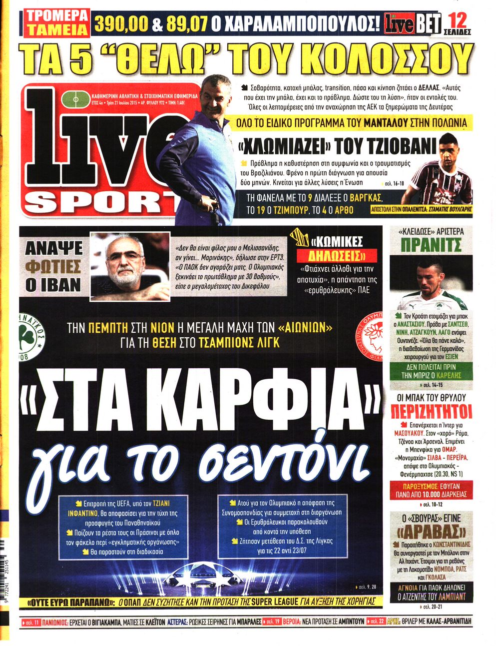 Οι αθλητικές εφημερίδες 21/7/2015 Enikos Newsroom 08:28, Τρίτη 21 Ιουλίου 2015 Media Διαβάστε τα σημερινά πρωτοσέλιδα των αθλητικών εφημερίδων: ΑΘΛΗΤΙΚΕΣ ΕΦΗΜΕΡΙΔΕΣ ΕΦΗΜΕΡΙΔΕΣ ΠΡΩΤΟΣΕΛΙΔΑ Μοιράσου το: σχολίασε κι εσύ (0 σχόλια) Ακολουθήστε το enikos.gr στο Google News και μάθετε πρώτοι όλες τις ειδήσεις Δείτε όλες τις τελευταίες ειδήσεις από την Ελλάδα και τον Κόσμο στο enikos.gr Ειδήσεις Ροή Ειδήσεων 7 λεπτά πριν Υπόθεση Έπσταϊν: Το Υπουργείο Δικαιοσύνης δημοσιοποίησε μια σειρά από εξαιρετικά επεξεργασμένα αρχεία – «Λείπουν τα πιο σημαντικά έγγραφα», λένε οι Δημοκρατικοί 9 ώρες πριν Χριστούγεννα στα μπλόκα: Επιμένουν στις κινητοποιήσεις τους οι αγρότες – Ανοίγουν τα διόδια το Σαββατοκύριακο 2 ώρες πριν Σαρωτικοί οι έλεγχοι στους δρόμους ενόψει εορτών – Μπλόκα της τροχαίας σε κεντρικές αρτηρίες της Αττικής 9 ώρες πριν Πούτιν: Τα μηνύματα σε Ευρώπη και ΝΑΤΟ από το μαραθώνιο «σόου» του – Η απαίτηση για «σεβασμό» και η ειρήνη «με τους όρους» της Μόσχας 8 ώρες πριν Άνω Λιόσια: Πυροβολισμοί σε επιχείρηση με χαλιά – Εντοπίστηκαν 10 κάλυκες 2 ώρες πριν Αυγά: Πόσα μπορείτε να τρώτε την ημέρα με ασφάλεια για μέγιστη πρόσληψη πρωτεΐνης 2 ώρες πριν Τα ζώδια σήμερα, Σάββατο 20 Δεκεμβρίου: Παρθένοι, το σύμπαν σας δίνει το κλειδί 9 ώρες πριν Ανακαλύφθηκαν αρχαία χρυσά νομίσματα 2.200 ετών που απεικονίζουν τον θεό Απόλλωνα – Η άγνωστη σύνδεση με τον Φίλιππο Β΄ της Μακεδονίας 2 ώρες πριν Οπτική ψευδαίσθηση: Μόνο αν είσαι ο Σέρλοκ Χολμς θα βρεις τον αριθμό «87» σε 7 δευτερόλεπτα 7 λεπτά πριν Υπόθεση Έπσταϊν: Το Υπουργείο Δικαιοσύνης δημοσιοποίησε μια σειρά από εξαιρετικά επεξεργασμένα αρχεία – «Λείπουν τα πιο σημαντικά έγγραφα», λένε οι Δημοκρατικοί 9 λεπτά πριν Καιρός: Αλλαγή σκηνικού σήμερα με βροχές και πτώση της θερμοκρασίας – Οι προβλέψεις των μετεωρολόγων για τα Χριστούγεννα 17 λεπτά πριν ΟΝΕΧ – MEGATUGS: Ξεκίνησε η ναυπήγηση ρυμουλκών στην Ελλάδα – Προθάλαμος πολεμικών πλοίων – Δείτε φωτογραφίες και βίντεο 26 λεπτά πριν Φοινικούντα: Σήμερα απολογείται ο 30χρονος γιος γνωστού επιχειρηματία της Πλάκας 33 λεπτά πριν Οι αθλητικές μεταδόσεις 20/12/2025 ENIKOS NETWORK Πρέπει να αποδέχεστε ή να απορρίπτετε όλα τα cookies; Ένας ειδικός εξηγεί Η αγαπημένη λιχουδιά των πόνι που μπορεί να ενισχύσει όραση, εγκέφαλο και ανοσοποιητικό Αναστολή μέτρων αναγκαστικής εκτέλεσης για κτηνοτρόφους που πλήττονται από την ευλογιά των αιγοπροβάτων Πλήρης επάρκεια προϊόντων στις λαϊκές της Αττικής, παρά τις αγροτικές κινητοποιήσεις – Τι απαντούν οι πωλητές Χαρτογραφώντας το «σημείο χωρίς επιστροφή»: Για πρώτη φορά αποκαλύπτεται με λεπτομέρεια το ακανθώδες όριο της ατμόσφαιρας τ... Η Google καταργεί τη λειτουργία «dark web report» – Πώς θα μπορούν οι χρήστες να διαγράφουν τα δεδομένα τους περισσότερα 05:48 , Σάββατο 20 Δεκεμβρίου 2025 Οι οικονομικές εφημερίδες 20/12/2025 Διαβάστε τα πρωτοσέλιδα από τις οικονομικές εφημερίδες, σήμερα 20/12/2025. 05:43 , Σάββατο 20 Δεκεμβρίου 2025 Οι αθλητικές εφημερίδες 20/12/2025 Διαβάστε τα πρωτοσέλιδα από τις αθλητικές εφημερίδες, σήμερα 20/12/2025. 05:38 , Σάββατο 20 Δεκεμβρίου 2025 Οι πολιτικές εφημερίδες 20/12/2025 Διαβάστε τα πρωτοσέλιδα από τις πολιτικές εφημερίδες, σήμερα 20/12/2025. 04:20 , Σάββατο 20 Δεκεμβρίου 2025 Αγγελική Νικολούλη: Τα συλλυπητήρια για την απώλεια της Ειρήνης Μαρινάκη Τα συλληπητήρια στον πρόεδρο του Mega, τον Βαγγέλη Μαρινάκη, για την απώλεια της μητέρας του Ε... ΤΕΛΕΥΤΑΙΕΣ ΕΙΔΗΣΕΙΣ 7 λεπτά πριν Υπόθεση Έπσταϊν: Τ