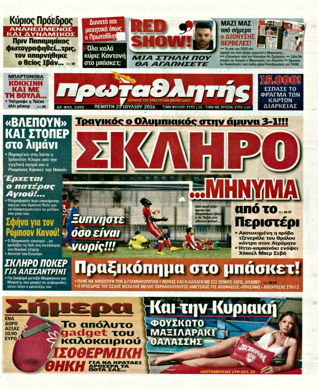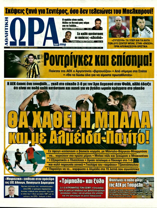 Oι αθλητικές εφημερίδες 21/7/2016 Enikos Newsroom 04:45, Πέμπτη 21 Ιουλίου 2016 Media Διαβάστε τα σημερινά πρωτοσέλιδα των αθλητικών εφημερίδων: ΑΘΛΗΤΙΚΕΣ ΕΦΗΜΕΡΙΔΕΣ ΠΡΩΤΟΣΕΛΙΔΑ Μοιράσου το: σχολίασε κι εσύ (0 σχόλια) Ακολουθήστε το enikos.gr στο Google News και μάθετε πρώτοι όλες τις ειδήσεις Δείτε όλες τις τελευταίες ειδήσεις από την Ελλάδα και τον Κόσμο στο enikos.gr Ειδήσεις Ροή Ειδήσεων 4 ώρες πριν Αγρότες: «Όχι στον διάλογο, μας εμπαίζει η κυβέρνηση» – Αποφάσισαν κλιμάκωση των κινητοποιήσεων, τι θα γίνει τα Χριστούγεννα 1 ώρα πριν Αθήνα: Εξαρθρώθηκε εγκληματική οργάνωση που διακινούσε ναρκωτικά σε μορφή σοκολάτας – Δύο τράπερ ανάμεσα στους 4 συλληφθέντες – ΒΙΝΤΕΟ 1 ώρα πριν Στη φυλακή ο «Έλληνας Εσκομπάρ» και τρεις συνεργοί του για το φορτίο με την κοκαΐνη – Τι υποστήριξε στην απολογία του 3 ώρες πριν Γιώργος Μαζωνάκης: «Έχει υποστεί ένα σωρό εκβιαστικές πρακτικές – Του είπαν ότι θα του βάλουν τον συγκεκριμένο άνθρωπο να τον καταγγείλει» 1 ώρα πριν Γεωργιάδης για Κωνσταντοπούλου: «Έχει καταφέρει να ξεπεράσει ακόμη και τον εαυτό της – Το ερώτημα είναι “γιατί τώρα;”» 5 ώρες πριν Τα 5 ζώδια που θα ευνοηθούν στα οικονομικά τους το 2026 – «Τραβούν το χρήμα σαν μαγνήτες» 2 ώρες πριν Γάμος: 11 ψυχρές αλλά ευγενικές φράσεις, που λέει ένας άνδρας όταν σκέφτεται τον χωρισμό 1 ώρα πριν Σφουγγάρισμα: Η συνήθεια που θα σας βοηθήσει να διατηρήσετε το σπίτι σας καθαρό και τακτοποιημένο 1 ημέρα πριν 20 χρόνια τα Χριστούγεννα ξεκινούν στα Public με μεγάλη ποικιλία σε δώρα! 4 λεπτά πριν Ολυμπιακός: Τι ζήτησε από τον Άγιο Βασίλη ο Χοσέ Λουίς Μεντιλίμπαρ 10 λεπτά πριν Manifesting: Πώς να συναντήσετε τον σύντροφο της ζωής σας, ανάλογα με τον μήνα γέννησής σας 19 λεπτά πριν Hellenic Train: Καθυστερήσεις στον Προαστιακό λόγω φωτιάς κοντά στη σιδηροδρομική γραμμή 31 λεπτά πριν ΗΠΑ: Νέες φωτογραφίες από τον φάκελο Επστάιν έδωσαν στην δημοσιότητα οι Δημοκρατικοί 36 λεπτά πριν ΕΦΕΤ: Συμβουλές για ασφαλή κατανάλωση τροφίμων κατά την εορταστική περίοδο των Χριστουγέννων ENIKOS NETWORK Σε περίοδο αυξημένης δραστηριότητας η γρίπη στην Ελλάδα-Μέτρα προστασίας από τον ΕΟΔΥ Σκέφτεστε συνέχεια συζητήσεις που έχετε κάνει; Τι σημαίνει αυτό, σύμφωνα με ειδικό Servicers: Μικρή μείωση στα κόκκινα δάνεια που διαχειρίζονται – Αναλυτικά τα στοιχεία ΑΑΔΕ: “Αλλάζει πρόσωπο” το Φορολογικό Μητρώο για πολίτες και επιχειρήσεις – Όλες οι λεπτομέρειες Χαρτογραφώντας το «σημείο χωρίς επιστροφή»: Για πρώτη φορά αποκαλύπτεται με λεπτομέρεια το ακανθώδες όριο της ατμόσφαιρας τ... Η Google καταργεί τη λειτουργία «dark web report» – Πώς θα μπορούν οι χρήστες να διαγράφουν τα δεδομένα τους περισσότερα 17:45 , Πέμπτη 18 Δεκεμβρίου 2025 ROUK ZOUK: Εορταστικό επεισόδιο με καλεσμένους τους πρωταγωνιστές του «Γιατί ρε πατέρα» Το Σάββατο 20 Δεκεμβρίου στις 21:00, η Ζέτα Μακρυπούλια υποδέχεται εκλεκτούς ηθοποιούς που όλο... 17:20 , Πέμπτη 18 Δεκεμβρίου 2025 Άγιος έρωτας: Η Χριστίνα εξομολογείται στον πατέρα Νικόλαο, απόψε στις 21:00 στον Alpha Η Νότα αποφασίζει να εκδικηθεί τον Πέτρο και τον Στέφανο, για χάρη του Λούη, όμως τα πράγματα ... 16:50 , Πέμπτη 18 Δεκεμβρίου 2025 Να μ’ αγαπάς: Ζωή και Φωτεινή συμφιλιώνονται ως μάνα με κόρη, απόψε στις 20:00 Η ταυτότητα του Άγγελου αποκαλύπτεται στο νέο επεισόδιο της σειράς “Να μ’ αγαπάς... 15:52 , Πέμπτη 18 Δεκεμβρίου 2025 Το Σπίτι Δίπλα Στο Ποτάμι: Το καθηλωτικό τελευταίο επεισόδιο για το 2025 απόψε στις 22:30 Καθηλώνει το σημερινό επεισόδιο της σειράς “Το Σπίτι