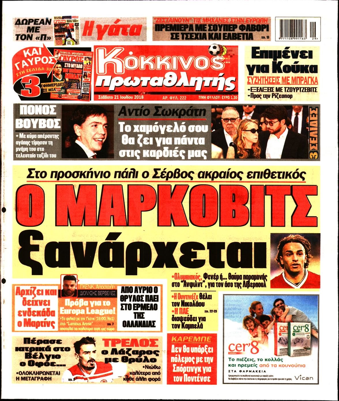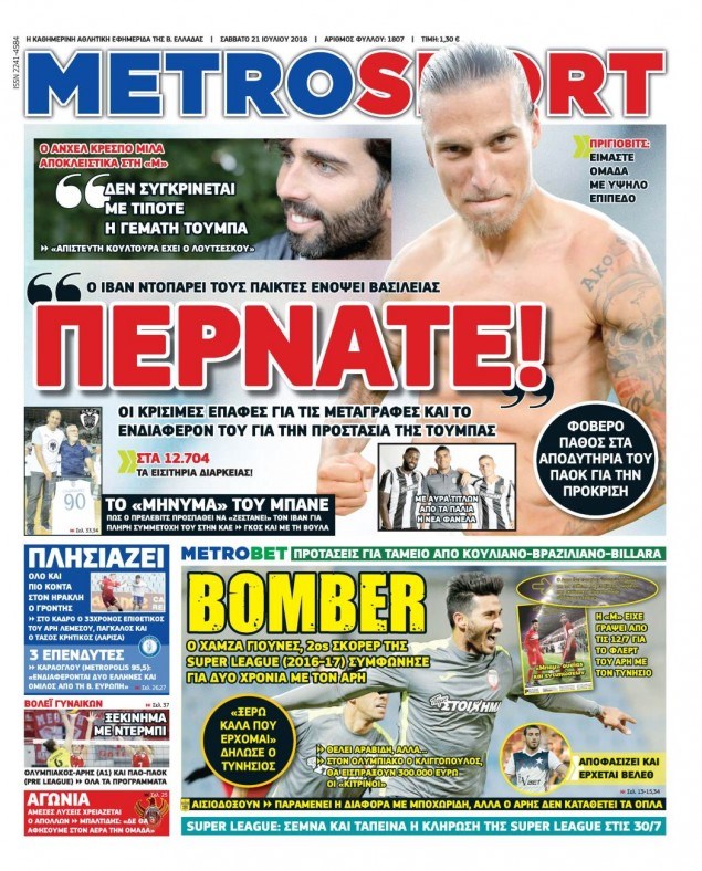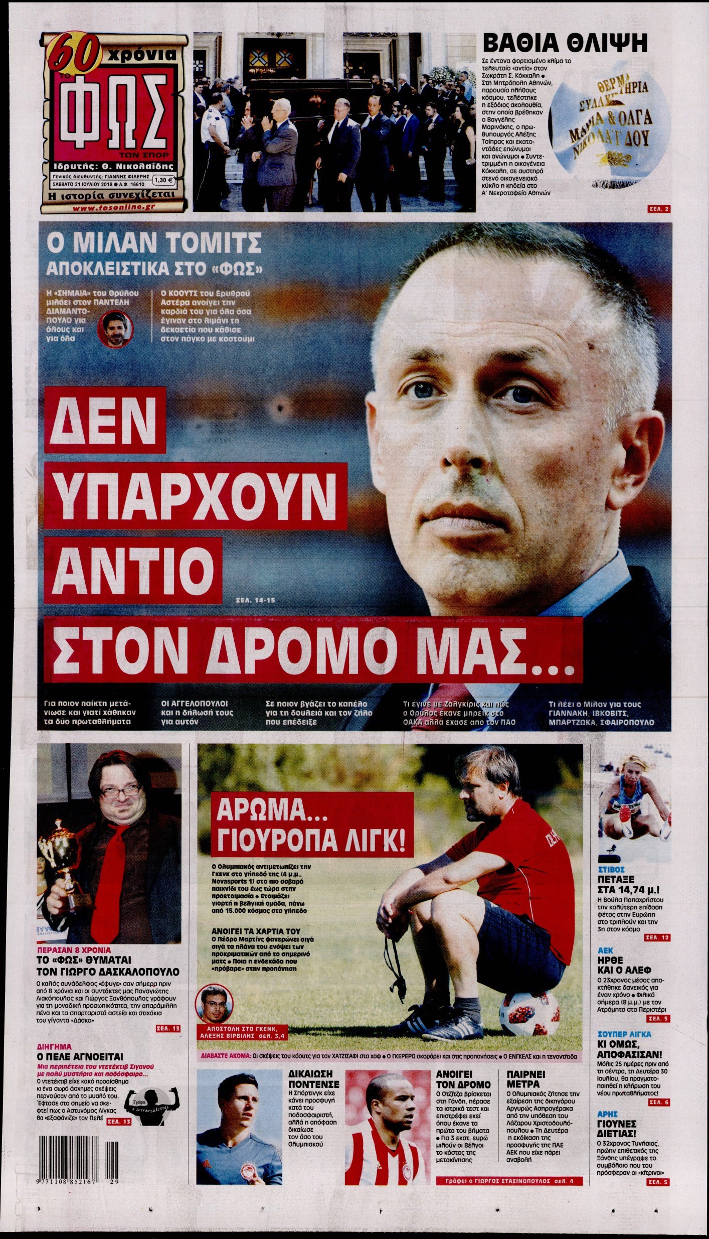 Οι αθλητικές εφημερίδες 21/7/2018 Enikos Newsroom 06:41, Σάββατο 21 Ιουλίου 2018 Media Διαβάστε τα σημερινά πρωτοσέλιδα των αθλητικών εφημερίδων… ΑΘΛΗΤΙΚΕΣ ΕΦΗΜΕΡΙΔΕΣ ΠΡΩΤΟΣΕΛΙΔΑ Μοιράσου το: σχολίασε κι εσύ (0 σχόλια) Ακολουθήστε το enikos.gr στο Google News και μάθετε πρώτοι όλες τις ειδήσεις Δείτε όλες τις τελευταίες ειδήσεις από την Ελλάδα και τον Κόσμο στο enikos.gr Ειδήσεις Ροή Ειδήσεων 4 ώρες πριν Χριστούγεννα στα μπλόκα: Επιμένουν στις κινητοποιήσεις τους οι αγρότες – Ανοίγουν τα διόδια το Σαββατοκύριακο 4 ώρες πριν Ουκρανία: Η άνευ προηγουμένου επίθεση σε ρωσικό τάνκερ στη Μεσόγειο και το μήνυμα προς στον Πούτιν – Το «μακρύ χέρι» του Κιέβου 3 ώρες πριν Πούτιν: Τα μηνύματα σε Ευρώπη και ΝΑΤΟ από το μαραθώνιο «σόου» του – Η απαίτηση για «σεβασμό» και η ειρήνη «με τους όρους» της Μόσχας 4 ώρες πριν Τραμπ: Δεν αποκλείει την πιθανότητα ενός πολέμου στη Βενεζουέλα – «Ο Μαδούρο ξέρει καλύτερα από τον καθένα τι ακριβώς θέλω» 5 ώρες πριν Συνεχίζει να προκαλεί ο Μίτσκοσκι: «Για μένα το όνομα Μακεδονία είναι ιερό» 3 ώρες πριν Ανακαλύφθηκαν αρχαία χρυσά νομίσματα 2.200 ετών που απεικονίζουν τον θεό Απόλλωνα – Η άγνωστη σύνδεση με τον Φίλιππο Β΄ της Μακεδονίας 4 ώρες πριν Ύπνος: Μια κρυφή κατάσταση του εγκεφάλου πριν από τον ύπνο μπορεί να είναι το “κλειδί” για υψηλή ευφυΐα και δημιουργικότητα 5 ώρες πριν Αριθμολογία: Οι άνθρωποι που έχουν γεννηθεί αυτές τις 4 ημερομηνίες, συχνά παρεξηγούνται – «Η καλοσύνη τους κρύβει τεράστια δύναμη» 6 ώρες πριν Ξεχάστε το καθάρισμα το Σαββατοκύριακο: Ο «κανόνας των 20 λεπτών» που θα σας λύσει τα χέρια 14 λεπτά πριν Εξάρχεια: Ένταση με μολότοφ, χημικά και κρότου λάμψης 30 λεπτά πριν ΗΠΑ: Τραγωδία στην Αλαμπάμα – Σκότωσε την δημοσιογράφο σύζυγό του και αυτοκτόνησε μπροστά στον 3χρονο γιο τους 44 λεπτά πριν Πρόταση γάμου στο ΣΕΦ κατά την διάρκεια του αγώνα Ολυμπιακός-Βιλερμπάν – Δείτε βίντεο 59 λεπτά πριν Euroleague: Επέστρεψε στις νίκες ο Ολυμπιακός, πήρε την ματσάρα της χρονιάς η Μπάρτσα – Τα αποτελέσματα και η βαθμολογία 1 ώρα πριν Συρία: Μαζικά πλήγματα των ΗΠΑ σε θέσεις του Ισλαμικού Κράτους – Χέγκσεθ: «Δεν είναι αρχή πολέμου, είναι μια δήλωση εκδίκησης» για το θάνατο των στρατιωτών μας ENIKOS NETWORK Το ΕΚΑΒ τιμήθηκε από την Ακαδημία Αθηνών για τα 40 χρόνια προσφοράς του Έχετε πραγματικά μεγάλη καρδιά; 10 χαρακτηριστικά όσων έχουν καλοσύνη Αναστολή μέτρων αναγκαστικής εκτέλεσης για κτηνοτρόφους που πλήττονται από την ευλογιά των αιγοπροβάτων Πλήρης επάρκεια προϊόντων στις λαϊκές της Αττικής, παρά τις αγροτικές κινητοποιήσεις – Τι απαντούν οι πωλητές Χαρτογραφώντας το «σημείο χωρίς επιστροφή»: Για πρώτη φορά αποκαλύπτεται με λεπτομέρεια το ακανθώδες όριο της ατμόσφαιρας τ... Η Google καταργεί τη λειτουργία «dark web report» – Πώς θα μπορούν οι χρήστες να διαγράφουν τα δεδομένα τους περισσότερα 22:42 , Παρασκευή 19 Δεκεμβρίου 2025 Γιώργος Γιαννόπουλος για “Το σόι σου”: “Είναι ευτυχία και ευλογία αυτή η σειρά” «Είναι ευτυχία και ευλογία η συγκυρία αυτής της σειράς», θα πει ο Γιώργος Γιαννόπουλος -ο αγαπ... 20:37 , Παρασκευή 19 Δεκεμβρίου 2025 Don’t Forget The Lyrics: Η Έλλη Κοκκίνου υποδέχεται 4 παίκτες που θα κάνουν τα πάντα για να μη χάσουν ούτε… μισή λέξη από τους στίχους Το «Don’t Forget The Lyrics» επιστρέφει απόψε, Παρασκευή 19 Δεκεμβρίου, στις 21:00 με νέο επει... 19:31 , Παρασκευή 19 Δεκεμβρίου 2025 GNTM: Απόψε ο μεγάλος τελικός για τους 4 φιναλίστ Έπειτα από μήνες γεμάτους μόδα, δημιουργία και 