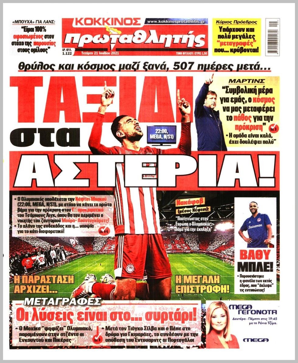 Οι αθλητικές εφημερίδες 21/7/2021 Διονύσης Νίκκας 06:36, Τετάρτη 21 Ιουλίου 2021 Media Διαβάστε τα πρωτοσέλιδα των αθλητικών εφημερίδων… ΑΘΛΗΤΙΚΕΣ ΕΦΗΜΕΡΙΔΕΣ Μοιράσου το: σχολίασε κι εσύ (0 σχόλια) Ακολουθήστε το enikos.gr στο Google News και μάθετε πρώτοι όλες τις ειδήσεις Δείτε όλες τις τελευταίες ειδήσεις από την Ελλάδα και τον Κόσμο στο enikos.gr Ειδήσεις Ροή Ειδήσεων 4 ώρες πριν Ζελένσκι: Γιατί πέταξε τώρα το μπαλάκι στον Πούτιν – Tα «αγκάθια» στις διαπραγματεύσεις και η πιθανή απάντηση του Κρεμλίνου 4 ώρες πριν Χριστούγεννα στα μπλόκα για τους αγρότες – Με λιγότερα προβλήματα από τις προηγούμενες ημέρες η κυκλοφορία των οχημάτων 7 ώρες πριν Τουρκία: Λεπτό προς λεπτό οι επικοινωνίες του πιλότου του Φάλκον πριν από την συντριβή – Είχε εκπέμψει πολλαπλά σήματα κινδύνου 4 ώρες πριν Κακοκαιρία: «Βούλιαξε» η Αττική, οι δρόμοι μετατράπηκαν σε ποτάμια, πλημμύρισαν υπόγεια – Πώς θα εξελιχθούν τα έντονα φαινόμενα 8 ώρες πριν Σέρρες: Αγωνία για τον πυροσβέστη που εξαφανίστηκε – Έφυγε από το σπίτι χωρίς το κινητό, πότε τον είδαν για τελευταία φορά 4 ώρες πριν Εκπληκτική ανακάλυψη σε αρχαία πόλη της Μικράς Ασίας – Βρέθηκε πέτρινη σκάλα 1.800 ετών που οδηγούσε σε διάσημη βιβλιοθήκη 5 ώρες πριν Ύπνος: Τι θα συμβεί στον εγκέφαλό σας όταν σταματήσετε να κοιτάτε το κινητό μόλις ξυπνάτε το πρωί 6 ώρες πριν Αριθμολογία: Οι άνθρωποι που έχουν γεννηθεί αυτές τις 3 ημερομηνίες, διαθέτουν 5 μοναδικά χαρακτηριστικά – «Ξεχωρίζετε από όλους» 7 ώρες πριν Πλύσιμο πιάτων: Το έξυπνο κόλπο που διευκολύνει την διαδικασία όταν έχετε καλεσμένους στο σπίτι 2 ώρες πριν Εφημερεύοντα φαρμακεία σε Αθήνα και Θεσσαλονίκη (25/12) 4 λεπτά πριν Φοίβος: Αποκάλυψε την ιστορία πίσω από τα «Χριστούγεννα» της Δέσποινας Βανδή – ΒΙΝΤΕΟ 22 λεπτά πριν Παναθηναϊκός: Στις 39.074 θέσεις η τελική χωρητικότητα του νέου γηπέδου στον Βοτανικό 43 λεπτά πριν Ονδούρα: Νικητής ο Νάσρι Ασφούρα στις προεδρικές εκλογές – Τον είχε στηρίξει Ντόναλντ Τραμπ 1 ώρα πριν ΗΠΑ: Ανακαλύφθηκαν πάνω από 1 εκατ. νέα έγγραφα που μπορεί να σχετίζονται με την υπόθεση Επστάιν ENIKOS NETWORK Πώς να αποφύγετε τους τοξικούς καβγάδες με την οικογένειά σας αυτά τα Χριστούγεννα ΕΟΔΥ: Οι «χρυσές» συμβουλές για να απολαύσουμε το Χριστουγεννιάτικο τραπέζι χωρίς υπερβολές Aποκαλυπτικά στοιχεία: Το 65% των παιδιών που ξεκινούν σήμερα το δημοτικό, «θα εργαστεί σε επαγγέλματα που δεν έχουν καν επ... «Εξοικονομώ 2025»: Τα ποσά και οι προθεσμίες – Όλα τα SOS πρέπει να γνωρίζετε Ο Google Assistant θα παραμείνει λίγο περισσότερο για ορισμένους χρήστες Android Τεστ προσωπικότητας: Το βάζο που θα επιλέξετε αποκαλύπτει πώς λύνετε προβλήματα στη ζωή σας περισσότερα 20:30 , Τετάρτη 24 Δεκεμβρίου 2025 Rouk Zouk: Όλα θα δούμε στο εορταστικό επεισόδιο απόψε Φέτος την Παραμονή των Χριστουγέννων η Ζέτα Μακρυπούλια και μια… εκρηκτική παρέα από την νέα κ... 16:12 , Τετάρτη 24 Δεκεμβρίου 2025 ALPHA: Παραμονή Χριστουγέννων με τον Κωνσταντίνο Αργυρό Ο Alpha παρουσιάζει απόψε σε πρώτη τηλεοπτική μετάδοση τη συναρπαστική και sold out εμφάνιση ... 15:51 , Τετάρτη 24 Δεκεμβρίου 2025 ‘Αγιος Έρωτας: Ο σεισμός που έκοψε την ανάσα – Δείτε τις συγκλονιστικές σκηνές Με έναν συγκλονιστικό τρόπο έκλεισε χθες βράδυ το τελευταίο επεισόδιο του 2025 της σειράς R... 13:27 , Τετάρτη 24 Δεκεμβρίου 2025 Ο Χριστουγεννιάτικος Τηλεμαραθώνιος του ΑΝΤ1 ένωσε τους πολιτικούς αρχηγούς – Τα εγκωμιαστικά σχόλια για τον Θοδωρή Κυριακού Σπάνια ομοφωνία: Όλοι οι πο