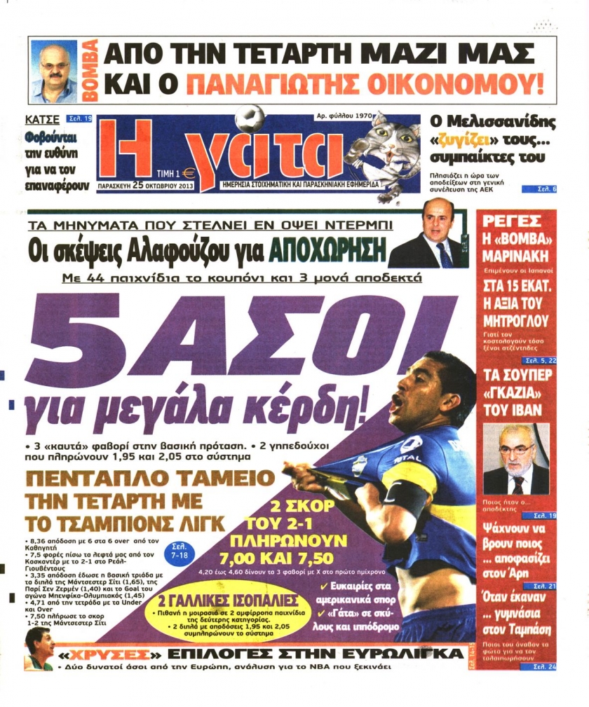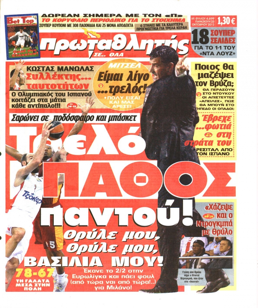 Οι αθλητικές εφημερίδες Enikos Newsroom 08:52, Παρασκευή 25 Οκτωβρίου 2013 Media Οι αθλητικές εφημερίδες Διαβάστε τα πρωτοσέλιδα των αθλητικών εφημερίδων: ΑΘΛΗΤΙΚΕΣ ΕΦΗΜΕΡΙΔΕΣ ΕΦΗΜΕΡΙΔΕΣ ΠΡΩΤΟΣΕΛΙΔΑ Μοιράσου το: σχολίασε κι εσύ (0 σχόλια) Ακολουθήστε το enikos.gr στο Google News και μάθετε πρώτοι όλες τις ειδήσεις Δείτε όλες τις τελευταίες ειδήσεις από την Ελλάδα και τον Κόσμο στο enikos.gr Ειδήσεις Ροή Ειδήσεων 3 ώρες πριν Ακίλα Σάλεχ: «Άκυρο» το τουρκολιβυκό μνημόνιο λέει ο πρόεδρος της λιβυκής Βουλής – Ανοίγει ο διάλογος με Ελλάδα, Αίγυπτο και Τουρκία 7 ώρες πριν Αγρότες: Την Τρίτη η απόφαση για διάλογο ή κλιμάκωση των κινητοποιήσεών τους – Πώς χαρακτηρίζουν τις ανακοινώσεις Τσιάρα και οι επόμενες κινήσεις 7 ώρες πριν Τραμπ για Ουκρανία: «Είμαστε πιο κοντά σε συμφωνία από ποτέ» – «Πολυεθνική δύναμη» προτείνουν οι Ευρωπαίοι 7 ώρες πριν Κυψέλη: Η 16χρονη που μαχαίρωσε την 14χρονη είχε συλληφθεί 3 φορές στο παρελθόν – Έβριζε καθηγητές, έβαζε φωτιές σε κάδους και εκβίαζε συμμαθητές της 6 ώρες πριν Τρομοκρατική επίθεση στο Σίδνεϊ: Θλίψη για τα 15 θύματα – Οργή στην εβραϊκή κοινότητα που προειδοποιούσε επί δύο χρόνια 7 ώρες πριν Επιστήμονες ίσως έλυσαν το μυστήριο γύρω από τα Χόμπιτ – Νέα έρευνα αποκαλύπτει πώς εξαφανίστηκαν 8 ώρες πριν Ύπνος: Η αρχαία μορφή άσκησης που αποδεικνύεται αποτελεσματική στην αντιμετώπιση της αϋπνίας, σύμφωνα με μελέτη 9 ώρες πριν Αριθμολογία: Ο τυχερός σας αριθμός, ανάλογα με τον μήνα γέννησής σας 10 ώρες πριν Πώς να μην μαραίνονται γρήγορα τα κομμένα λουλούδια: Το λάθος στην τοποθέτηση του βάζου που πρέπει να αποφεύγετε 4 λεπτά πριν Οι αθλητικές εφημερίδες 16/12/2025 9 λεπτά πριν Οι πολιτικές εφημερίδες 16/12/2025 17 λεπτά πριν Τα ζώδια σήμερα, Τρίτη 16 Δεκεμβρίου: Ιχθύες, δεν χρειάζεται να έχετε όλες τις απαντήσεις 25 λεπτά πριν Εφημερεύοντα φαρμακεία σε Αθήνα και Θεσσαλονίκη (16/12) 32 λεπτά πριν Οκτώ νεκροί σε πλήγματα των ΗΠΑ κατά τριών σκαφών που φέρεται να μετέφεραν ναρκωτικά στον Ανατολικό Ειρηνικό ENIKOS NETWORK Πότε το χρόνιο ροχαλητό να αποτελέσει ένδειξη κινδύνου για την καρδιά; Τι λένε οι ειδικοί Μάριος Θεμιστοκλέους: Το ΕΣΥ ενισχύεται, εκσυγχρονίζεται, αλλάζει ΕΒΕΠ για αγροτικές κινητοποιήσεις: Κάθε επιπλέον εβδομάδα προσθέτει περίπου 200 εκατ. ευρώ ζημιά Τι προβλέπει το νομοσχέδιο του υπουργείου Εθνικής Άμυνας – Oι αλλαγές στους μισθούς Σύγχρονος Νοστράδαμος: Προειδοποιεί για «μεγάλο γεγονός» τους επόμενους μήνες που θα συγκλονίσει τη Βρετανία και τον κόσμο Τεστ παρατηρητικότητας: Μπορείτε να βρείτε τις 3 διαφορές στις εικόνες με έναν πιγκουίνο σε 14 δευτερόλεπτα περισσότερα 05:43 , Τρίτη 16 Δεκεμβρίου 2025 Οι αθλητικές εφημερίδες 16/12/2025 Διαβάστε τα πρωτοσέλιδα από τις αθλητικές εφημερίδες, σήμερα 16/12/2025. 05:38 , Τρίτη 16 Δεκεμβρίου 2025 Οι πολιτικές εφημερίδες 16/12/2025 Διαβάστε τα πρωτοσέλιδα από τις πολιτικές εφημερίδες, σήμερα 16/12/2025. 21:35 , Δευτέρα 15 Δεκεμβρίου 2025 Το Σπίτι Δίπλα Στο Ποτάμι: Η Ιουλία και ο Φωκάς μετακομίζουν στη Ρόδο – Δύο νέοι χαρακτήρες μπαίνουν στη σειρά Δύο νέοι, κομβικοί χαρακτήρες κάνουν την εμφάνισή τους αυτή την εβδομάδα στην αγαπημένη σειρά ... 19:46 , Δευτέρα 15 Δεκεμβρίου 2025 Άγιος έρωτας: Η Χριστίνα λέει την αλήθεια στον Αντρέα Ο Βασίλης δέχεται επίθεση από τους συμμαθητές του, η Αναστασία είναι συντετριμμένη με την απώλ... ΤΕΛΕΥΤΑΙΕΣ ΕΙΔΗΣΕΙΣ 4 λεπτά πριν Οι αθλητικές εφημερίδες 16/12/2025 9 λεπτά πριν Οι πολιτικές εφημερίδες 16/12/2025 17 λεπτά 