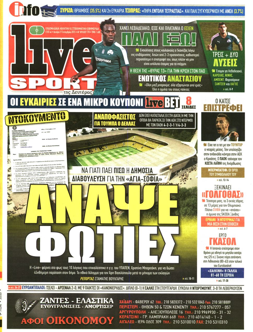 Οι αθλητικές εφημερίδες 21/9/2015 Enikos Newsroom 06:32, Δευτέρα 21 Σεπτεμβρίου 2015 Media Διαβάστε τα σημερινά πρωτοσέλιδα των αθλητικών εφημερίδων: ΑΘΛΗΤΙΚΕΣ ΕΦΗΜΕΡΙΔΕΣ ΠΡΩΤΟΣΕΛΙΔΑ Μοιράσου το: σχολίασε κι εσύ (0 σχόλια) Ακολουθήστε το enikos.gr στο Google News και μάθετε πρώτοι όλες τις ειδήσεις Δείτε όλες τις τελευταίες ειδήσεις από την Ελλάδα και τον Κόσμο στο enikos.gr Ειδήσεις Ροή Ειδήσεων 2 ώρες πριν Η Ουκρανία χτύπησε τάνκερ του σκιώδους στόλου της Ρωσίας στη Μεσόγειο – Έπλεε νότια της Κρήτης 4 ώρες πριν Πούτιν: Η Ουκρανία δεν είναι έτοιμη για ειρηνευτικές συνομιλίες – Ο ρωσικός στρατός προελαύνει σε όλα τα μέτωπα 42 λεπτά πριν Θεσσαλονίκη: Στη φυλακή ο 44χρονος που κατηγορείται ότι προσπάθησε να πνίξει με κορδόνι την 34χρονη σύντροφό του 59 λεπτά πριν Εξώδικο επιχειρηματία στον Γιώργο Μαζωνάκη – Τι απαντά στις καταγγελίες του τραγουδιστή 2 ώρες πριν Βουλή: Υπερψηφίστηκε το νομοσχέδιο για την ένταξη του ΟΠΕΚΕΠΕ στην ΑΑΔΕ 6 ώρες πριν Αλλαγή σελίδας για 3 ζώδια – «Μία δύσκολη περίοδος φτάνει στο τέλος της» 2 ημέρες πριν 20 χρόνια τα Χριστούγεννα ξεκινούν στα Public με μεγάλη ποικιλία σε δώρα! 5 ώρες πριν Γεμάτος νεροχύτης; 5 σοβαρές ευθύνες που «φοβίζουν» όσους αφήνουν άπλυτα πιάτα 4 ώρες πριν Ειδικός μοιράζεται 6 κόλπα για να διατηρείστε σε φόρμα με πάνω από 40 ώρες εργασίας την εβδομάδα: «Προπονηθείτε πριν από τη δουλειά, όχι μετά» 5 λεπτά πριν Πούτιν: Σαρκαστικά μηνύματα, παράπονα και απρόοπτα στη συνέντευξη Τύπου – Η πρόταση γάμου on air και οι ερωτήσεις για τα αγγούρια και τους… εξωγήινους 12 λεπτά πριν Κρήτη: Ένοχος ο 54χρονος «ερευνητής» για απάτη στην υπόθεση του 33χρονου γιατρού που αγνοείται 12 λεπτά πριν Νίκος Κούρκουλος: Αυτός ο αλύγιστος και ασυμβίβαστος «Αστραπόγιαννος» 17 λεπτά πριν Παναθηναϊκός: Θα προτείνει στη Λάτσιο 4 εκατ. ευρώ και συνιδιοκτησία για τον Μανδά 23 λεπτά πριν Η απάντηση της κυβέρνησης στα αιτήματα των αγροτών: 16+4 υλοποιούνται ή βρίσκονται υπό επεξεργασία για να βρεθεί λύση – 7 δεν μπορούν να επιλυθούν ENIKOS NETWORK Τάξη στις ιατρικές διαφημίσεις για την προστασία των πολιτών βάζει ο ΙΣΑ Μακροζωία: Τι παίζει πιο σημαντικό ρόλο ακόμα και από την διατροφή και την άσκηση, σύμφωνα με μελέτη Βουλή: Υπερψηφίστηκε το νομοσχέδιο για τη μετάβαση του ΟΠΕΚΕΠΕ στην ΑΑΔΕ ΕΥΔΑΠ: Οδηγός για τις αλλαγές στα τιμολόγια του νερού – 17 ερωτήσεις και απαντήσεις Χαρτογραφώντας το «σημείο χωρίς επιστροφή»: Για πρώτη φορά αποκαλύπτεται με λεπτομέρεια το ακανθώδες όριο της ατμόσφαιρας τ... Η Google καταργεί τη λειτουργία «dark web report» – Πώς θα μπορούν οι χρήστες να διαγράφουν τα δεδομένα τους περισσότερα 15:15 , Παρασκευή 19 Δεκεμβρίου 2025 Την Κυριακή με τη Realnews: Ό,τι και αν αγοράσεις, σκανάρεις και κερδίζεις! Την Κυριακή με τη Realnews: Ό,τι και αν αγοράσεις, σκανάρεις και κερδίζεις! Με το PADU app, το... 08:00 , Παρασκευή 19 Δεκεμβρίου 2025 Την Κυριακή με τη Realnews: Δωροεπιταγή 10€ Δωροεπιταγή αξίας 10€ για αγορές άνω των 60€ από τα πολυκαταστήματα FactoryOutlet H προσφορά ι... 05:48 , Παρασκευή 19 Δεκεμβρίου 2025 Οι οικονομικές εφημερίδες 19/12/2025 Διαβάστε τα πρωτοσέλιδα από τις οικονομικές εφημερίδες, σήμερα 19/12/2025. 05:43 , Παρασκευή 19 Δεκεμβρίου 2025 Οι αθλητικές εφημερίδες 19/12/2025 Διαβάστε τα πρωτοσέλιδα από τις αθλητικές εφημερίδες, σήμερα 19/12/2025. ΤΕΛΕΥΤΑΙΕΣ ΕΙΔΗΣΕΙΣ 5 λεπτά πριν Πούτιν: Σαρκαστικά μηνύματα, παράπονα και απρόοπτα... 12 λεπτά πριν Κρήτη: Ένοχος ο 54χρονος «ερευνητής» για απάτη στην... 12 λεπτά πριν Νίκος Κούρκουλ