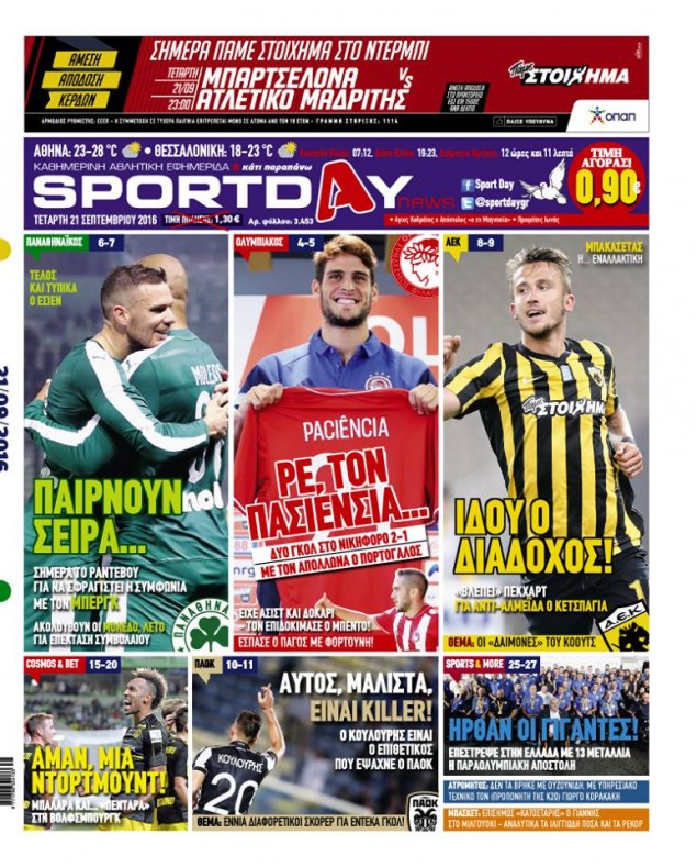 Oι αθλητικές εφημερίδες 21/9/2016 Enikos Newsroom 04:45, Τετάρτη 21 Σεπτεμβρίου 2016 Media Διαβάστε τα σημερινά πρωτοσέλιδα των αθλητικών εφημερίδων: ΑΘΛΗΤΙΚΕΣ ΕΦΗΜΕΡΙΔΕΣ ΠΡΩΤΟΣΕΛΙΔΑ Μοιράσου το: σχολίασε κι εσύ (0 σχόλια) Ακολουθήστε το enikos.gr στο Google News και μάθετε πρώτοι όλες τις ειδήσεις Δείτε όλες τις τελευταίες ειδήσεις από την Ελλάδα και τον Κόσμο στο enikos.gr Ειδήσεις Ροή Ειδήσεων 5 ώρες πριν Χίος: 15 νεκροί και πολλοί τραυματίες μετά το σοβαρό επεισόδιο Λιμενικού και σκάφους διακινητών 6 ώρες πριν Δολοφονία στη Νέα Πέραμο: Στο «μικροσκόπιο» των Αρχών η τεράστια περιουσία του 27χρονου – Η κατάθεση της συντρόφου του και όσα λένε συγγενικά του πρόσωπα 6 ώρες πριν Υπόθεση Επστάιν: Η σαπίλα που αναδύεται έχει βαθιές ρίζες – Η Αμερική πρέπει τώρα να αναρωτηθεί αν μπορεί να ξεπεράσει μια κουλτούρα ντροπής 6 ώρες πριν Πέπλο μυστηρίου γύρω από την εξαφάνιση της 16χρονης Λόρας – Ο άνδρας που βρέθηκε μαζί της στην πτήση, ο «αυταρχικός» πατέρας και η αντίδραση του αδελφού της 8 ώρες πριν Κλειστό για τρεις ημέρες το Ειδικό Σχολείο Σάμου: «Κάθε έλλειψη είναι κίνδυνος», λένε οι γονείς – Τι υποστηρίζει ο Δήμος 2 ώρες πριν Τα ζώδια σήμερα, Τετάρτη 4 Φεβρουαρίου 2026: Ζυγοί, τιμήστε την ανάγκη σας για αναζωογόνηση 6 ώρες πριν «Χρυσή» αρχαιολογική ανακάλυψη σε χωριό – Βρέθηκε αριστοκρατικός οικισμός σε κτήματα θρυλικού βασιλιά 8 ώρες πριν Πώς να προσελκύσετε πλούτο, ανάλογα με τον μήνα γέννησής σας 9 ώρες πριν Οι άνδρες που δεν σταματούν ποτέ να κάνουν τις γυναίκες τους να νιώθουν ξεχωριστές, έχουν συνήθως αυτά τα 4 ιδιαίτερα χαρακτηριστικά 2 λεπτά πριν Εφημερεύοντα φαρμακεία σε Αθήνα και Θεσσαλονίκη (4/2) 7 λεπτά πριν Συνομιλίες ΗΠΑ – Ιράν αύριο στο Ομάν κι όχι στην Τουρκία, αναφέρουν αραβικές πηγές 23 λεπτά πριν Ιωάννινα: Αρχίζει σήμερα ο προσυνεδριακός διάλογος για το 16ο Τακτικό Συνέδριο της ΝΔ 47 λεπτά πριν Χιός: Νεότερη ενημέρωση από τους τραυματίες – Ελαφρά οι δύο του λιμενικού – Με το πρώτο φως της μέρας συνεχίζονται οι έρευνες για αγνοούμενους 59 λεπτά πριν Θετικό το κλίμα στη συνάντηση Τραμπ με τον πρόεδρο της Κολομβίας Γουστάβο Πέτρο για την καταπολέμηση της εμπορίας ναρκωτικών ENIKOS NETWORK Κρίση άγχους: Το πρώτο πράγμα που προτείνει ένας ψυχοθεραπευτής να κάνετε για να ηρεμήσετε Άδωνις Γεωργιάδης: Σε app για το κινητό τηλέφωνο το Εθνικό Μητρώο Νεοπλασιών ΕΑΕΕ: Άνοδος στην παραγωγή ασφαλίστρων το ενδεκάμηνο του 2025 – Τι δείχνουν τα στοιχεία Κενές περισσότερες από 70.000 θέσεις εργασίας στον γεωργικό τομέα – «Περίπου το 10% του καρπού της ελιάς έχει μείνει στα δέ... Ευπάθεια στο moltbook ai αποκαλύπτει email, tokens σύνδεσης και api keys Αυτός είναι ο ρόλος της μικρής τρύπας στους νυχοκόπτες – «Είμαι ο μόνος που δεν το ήξερε;»» περισσότερα 02:33 , Τετάρτη 04 Φεβρουαρίου 2026 MasterChef: Λύγισε ο Γιώργος Αχλαδιώτης – «Κερδίζω, συγκινούμαι… Τώρα θα τους δείξω τι αξίζω» Το πρώτο Τεστ Δημιουργικότητας του MasterChef ολοκληρώθηκε με έναν ξεκάθαρο πρωταγωνιστή. Ο Γι... 21:33 , Τρίτη 03 Φεβρουαρίου 2026 Porto Leone: Στη γειτονιά με τα κόκκινα φανάρια – Η Ασημίνα αποκαλύπτει στην Αλεξάνδρα την εγκυμοσύνη της Λένας Η μεγάλη δραματική σειρά του Apha «Porto Leone: Στη γειτονιά με τα κόκκινα φανάρια» επιστρέφει... 19:52 , Τρίτη 03 Φεβρουαρίου 2026 Να μ’ αγαπάς: Ο Θεόφιλος ζητά από την Σοφία να φύγει από το σπίτι Στο σπίτι των Καλλιγά, τα αληθινά αποτελέσματα DNA επιβεβαιώνουν ότι η Εβίτα είναι κόρη του Θε... 10:57 , Τρίτη 03 Φεβρουαρίου 2026 Ακούστε το σχόλ