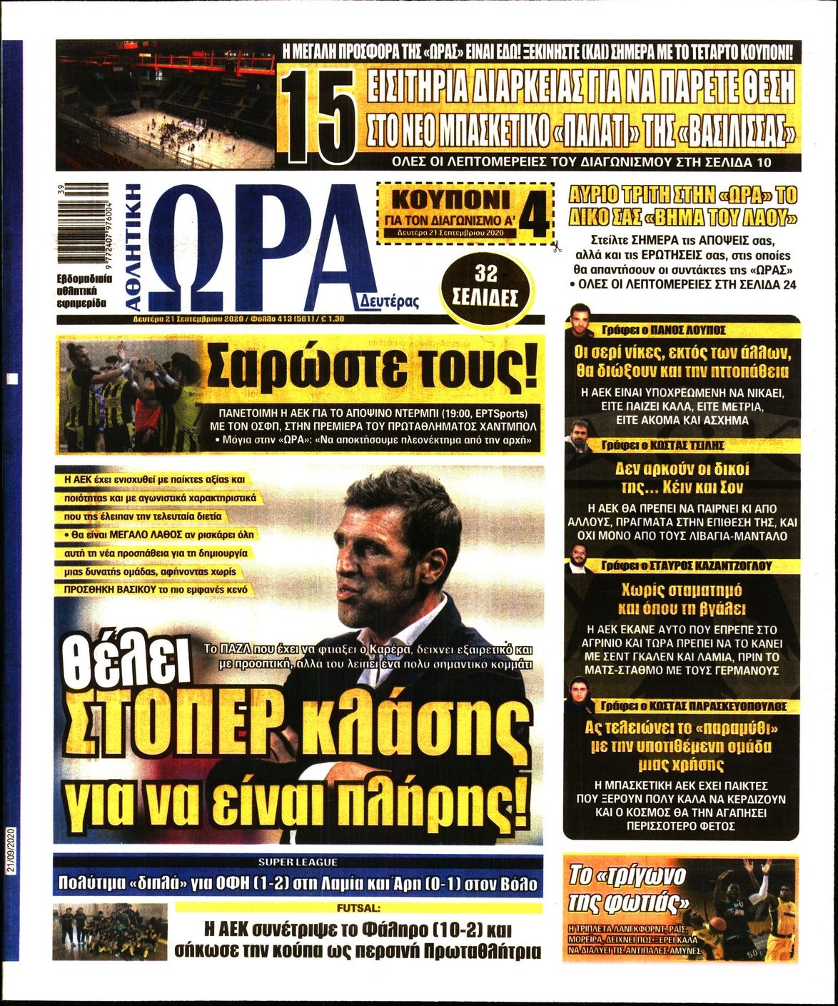 Οι αθλητικές εφημερίδες 21/9/2020 Διονύσης Νίκκας 06:50, Δευτέρα 21 Σεπτεμβρίου 2020 Media Διαβάστε τα πρωτοσέλιδα των αθλητικών εφημερίδων… ΑΘΛΗΤΙΚΕΣ ΕΦΗΜΕΡΙΔΕΣ Μοιράσου το: σχολίασε κι εσύ (0 σχόλια) Ακολουθήστε το enikos.gr στο Google News και μάθετε πρώτοι όλες τις ειδήσεις Δείτε όλες τις τελευταίες ειδήσεις από την Ελλάδα και τον Κόσμο στο enikos.gr Ειδήσεις Ροή Ειδήσεων 9 ώρες πριν Χριστούγεννα στα μπλόκα: Επιμένουν στις κινητοποιήσεις τους οι αγρότες – Ανοίγουν τα διόδια το Σαββατοκύριακο 2 ώρες πριν Σαρωτικοί οι έλεγχοι στους δρόμους ενόψει εορτών – Μπλόκα της τροχαίας σε κεντρικές αρτηρίες της Αττικής 9 ώρες πριν Πούτιν: Τα μηνύματα σε Ευρώπη και ΝΑΤΟ από το μαραθώνιο «σόου» του – Η απαίτηση για «σεβασμό» και η ειρήνη «με τους όρους» της Μόσχας 8 ώρες πριν ΗΠΑ: Η κυβέρνηση του Ντόναλντ Τραμπ άρχισε να δημοσιοποιεί τα αρχεία Έπσταϊν 8 ώρες πριν Άνω Λιόσια: Πυροβολισμοί σε επιχείρηση με χαλιά – Εντοπίστηκαν 10 κάλυκες 2 ώρες πριν Αυγά: Πόσα μπορείτε να τρώτε την ημέρα με ασφάλεια για μέγιστη πρόσληψη πρωτεΐνης 2 ώρες πριν Τα ζώδια σήμερα, Σάββατο 20 Δεκεμβρίου: Παρθένοι, το σύμπαν σας δίνει το κλειδί 9 ώρες πριν Ανακαλύφθηκαν αρχαία χρυσά νομίσματα 2.200 ετών που απεικονίζουν τον θεό Απόλλωνα – Η άγνωστη σύνδεση με τον Φίλιππο Β΄ της Μακεδονίας 1 ώρα πριν Οπτική ψευδαίσθηση: Μόνο αν είσαι ο Σέρλοκ Χολμς θα βρεις τον αριθμό «87» σε 7 δευτερόλεπτα 4 λεπτά πριν ΟΝΕΧ – MEGATUGS: Ξεκίνησε η ναυπήγηση ρυμουλκών στην Ελλάδα – Προθάλαμος πολεμικών πλοίων – Δείτε φωτογραφίες και βίντεο 13 λεπτά πριν Φοινικούντα: Σήμερα απολογείται ο 30χρονος γιος γνωστού επιχειρηματία της Πλάκας 20 λεπτά πριν Οι αθλητικές μεταδόσεις 20/12/2025 30 λεπτά πριν Εορτολόγιο: Ποιοι γιορτάζουν σήμερα 20 Δεκεμβρίου 37 λεπτά πριν Συρία: Μπαράζ αμερικανικών επιδρομών εναντίον του ISIS – «Πλήττουμε δυνατά οχυρά του ΙΚ» λέει ο Ντόναλντ Τραμπ ENIKOS NETWORK Πρέπει να αποδέχεστε ή να απορρίπτετε όλα τα cookies; Ένας ειδικός εξηγεί Η αγαπημένη λιχουδιά των πόνι που μπορεί να ενισχύσει όραση, εγκέφαλο και ανοσοποιητικό Αναστολή μέτρων αναγκαστικής εκτέλεσης για κτηνοτρόφους που πλήττονται από την ευλογιά των αιγοπροβάτων Πλήρης επάρκεια προϊόντων στις λαϊκές της Αττικής, παρά τις αγροτικές κινητοποιήσεις – Τι απαντούν οι πωλητές Χαρτογραφώντας το «σημείο χωρίς επιστροφή»: Για πρώτη φορά αποκαλύπτεται με λεπτομέρεια το ακανθώδες όριο της ατμόσφαιρας τ... Η Google καταργεί τη λειτουργία «dark web report» – Πώς θα μπορούν οι χρήστες να διαγράφουν τα δεδομένα τους περισσότερα 05:48 , Σάββατο 20 Δεκεμβρίου 2025 Οι οικονομικές εφημερίδες 20/12/2025 Διαβάστε τα πρωτοσέλιδα από τις οικονομικές εφημερίδες, σήμερα 20/12/2025. 05:43 , Σάββατο 20 Δεκεμβρίου 2025 Οι αθλητικές εφημερίδες 20/12/2025 Διαβάστε τα πρωτοσέλιδα από τις αθλητικές εφημερίδες, σήμερα 20/12/2025. 05:38 , Σάββατο 20 Δεκεμβρίου 2025 Οι πολιτικές εφημερίδες 20/12/2025 Διαβάστε τα πρωτοσέλιδα από τις πολιτικές εφημερίδες, σήμερα 20/12/2025. 04:20 , Σάββατο 20 Δεκεμβρίου 2025 Αγγελική Νικολούλη: Τα συλλυπητήρια για την απώλεια της Ειρήνης Μαρινάκη Τα συλληπητήρια στον πρόεδρο του Mega, τον Βαγγέλη Μαρινάκη, για την απώλεια της μητέρας του Ε... ΤΕΛΕΥΤΑΙΕΣ ΕΙΔΗΣΕΙΣ 4 λεπτά πριν ΟΝΕΧ – MEGATUGS: Ξεκίνησε η ναυπήγηση ρυμουλκών στην... 13 λεπτά πριν Φοινικούντα: Σήμερα απολογείται ο 30χρονος γιος... 20 λεπτά πριν Οι αθλητικές μεταδόσεις 20/12/2025 30 λεπτά πριν Εορτολόγιο: Ποιοι γιορτάζουν σήμερα 20 Δεκεμβρίου 37 λεπτά πριν Συρία: Μπαράζ αμερικα