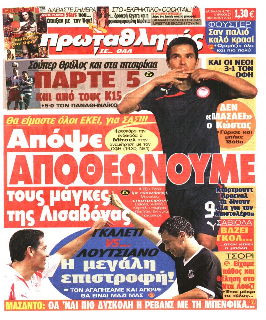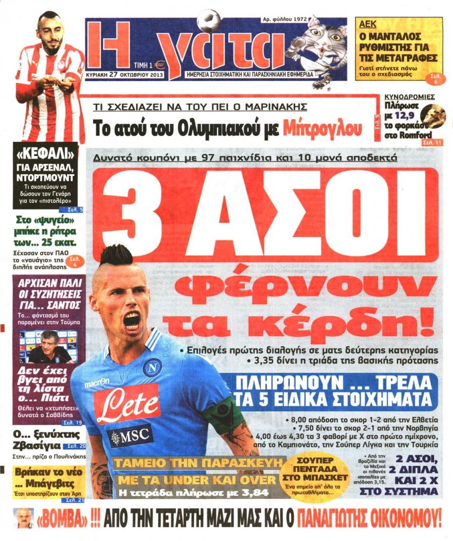 Οι αθλητικές εφημερίδες Enikos Newsroom 11:25, Κυριακή 27 Οκτωβρίου 2013 Media Οι αθλητικές εφημερίδες Διαβάστε τα πρωτοσέλιδα των αθλητικών εφημερίδων: ΑΘΛΗΤΙΚΕΣ ΕΦΗΜΕΡΙΔΕΣ ΕΦΗΜΕΡΙΔΕΣ ΠΡΩΤΟΣΕΛΙΔΑ Μοιράσου το: σχολίασε κι εσύ (0 σχόλια) Ακολουθήστε το enikos.gr στο Google News και μάθετε πρώτοι όλες τις ειδήσεις Δείτε όλες τις τελευταίες ειδήσεις από την Ελλάδα και τον Κόσμο στο enikos.gr Ειδήσεις Ροή Ειδήσεων 4 ώρες πριν Εκτός ευρωομάδας ΣΥΡΙΖΑ ο Νίκος Παππάς μετά την επίθεση στον δημοσιογράφο Νίκο Γιαννόπουλο – Η μήνυση και οι νέες δηλώσεις 4 ώρες πριν «Αγριεύουν» οι αγρότες: «Δεν συντρέχει λόγος συνάντησης με τον πρωθυπουργό» – Ώρα αποφάσεων στη σύσκεψη της Πέμπτης 4 ώρες πριν Κυψέλη: Χωρίς την οικογένειά της δίπλα της απολογήθηκε η 16χρονη – «Της είχε επιτεθεί κάποιος για να την βιάσει, φοβήθηκε και κυκλοφορούσε με μαχαίρι» 4 ώρες πριν Politico: Το πρόβλημα της Ευρώπης δεν είναι το Βέλγιο αλλά ο Ντόναλντ Τραμπ 6 ώρες πριν Αλεξανδρούπολη: Πολυοργανική ανεπάρκεια λόγω υποσιτισμού η αιτία θανάτου του 3χρονου αγοριού 4 ώρες πριν Μυστήριο με τεράστιες κυκλικές πέτρες 200 κιλών – Ανακαλύφθηκαν τυχαία κατά τη διάρκεια οδικών έργων και κανείς δεν ξέρει από πού προέρχονται 5 ώρες πριν Ύπνος: Ειδικός εξηγεί τον πραγματικό λόγο που ξυπνάτε στις 4 τα ξημερώματα – Ο ρόλος των ορμονών και του κιρκάδιου ρυθμού 6 ώρες πριν Αριθμολογία: Οι άνθρωποι που έχουν γεννηθεί αυτές τις 4 ημερομηνίες, είναι τρυφεροί και αγαπούν ανιδιοτελώς 18 ώρες πριν 20 χρόνια τα Χριστούγεννα ξεκινούν στα Public με μεγάλη ποικιλία σε δώρα! 20 λεπτά πριν Σουδάν: Επιδρομή drone σε χωριό του Νότιου Κορντοφάν – Οκτώ νεκροί 36 λεπτά πριν Αλ Τσαντίρι Νιουζ: Η κόρη της Πάολα στο κοινό – Η ατάκα Λαζόπουλου που την έκανε να «κοκκινήσει» 50 λεπτά πριν Ρωσία: Ουκρανικές δυνάμεις έπληξαν πλοίο στο λιμάνι του Ροστόφ – Αναφορές για θύματα 1 ώρα πριν Βρυξέλλες: Νυχτερινό… μπλόκο αγροτών μπροστά από το κτίριο της Ευρωπαϊκής Επιτροπής – Πάνω από 100 τρακτέρ απέκλεισαν την λεωφόρο 1 ώρα πριν Euroleague: Απρόσμενη ήττα για την Μονακό του Βασίλη Σπανούλη – Η βαθμολογία μετά το τέλος της 16ης αγωνιστικής ENIKOS NETWORK Αϋπνία: Το κόλπο που θα σας βοηθήσει να κοιμηθείτε απόψε – Είναι απλό και έχει αποτέλεσμα 2,6 εκατομμύρια πολίτες έχουν ήδη εμβολιαστεί κατά της γρίπης ΕΛΣΤΑΤ: Τι δείχνουν τα νέα στοιχεία για τις ηλεκτρονικές παραγγελίες των επιχειρήσεων ΚΕΠΕ: Οι 3 διακριτές συμβολές των ΜμΕ και της μεταποίησης στην ελληνική οικονομία Χαρτογραφώντας το «σημείο χωρίς επιστροφή»: Για πρώτη φορά αποκαλύπτεται με λεπτομέρεια το ακανθώδες όριο της ατμόσφαιρας τ... Η Google καταργεί τη λειτουργία «dark web report» – Πώς θα μπορούν οι χρήστες να διαγράφουν τα δεδομένα τους περισσότερα 02:30 , Πέμπτη 18 Δεκεμβρίου 2025 Αλ Τσαντίρι Νιουζ: Η κόρη της Πάολα στο κοινό – Η ατάκα Λαζόπουλου που την έκανε να «κοκκινήσει» Γιορτινή διάθεση και ευχάριστες στιγμές γέμισε η αποψινή, τελευταία για το 2025, εκπομπή του «... 22:24 , Τετάρτη 17 Δεκεμβρίου 2025 Το Σπίτι Δίπλα Στο Ποτάμι: Σε κίνδυνο η υγεία του Απόστολου – Τι θα δούμε απόψε “Το Σπίτι Δίπλα στο Ποτάμι” ξετυλίγει το νήμα της ζωής των πέντε αδελφών με καταισ... 21:14 , Τετάρτη 17 Δεκεμβρίου 2025 Παιχνίδια Εκδίκησης: Θα καταφέρει ο Χρήστος να κλονίσει την εμπιστοσύνη της Μάγιας απέναντι στον Άγη; Τα «Παιχνίδια Εκδίκησης» έρχονται απόψε στις 22:30, στον Αντ1, με το τελευταίο επεισόδιο της χ... 20:57 , Τετάρτη 17 Δεκεμβρίου 2025 Άγιος Έρωτας: Η Χλόη καταθέτ