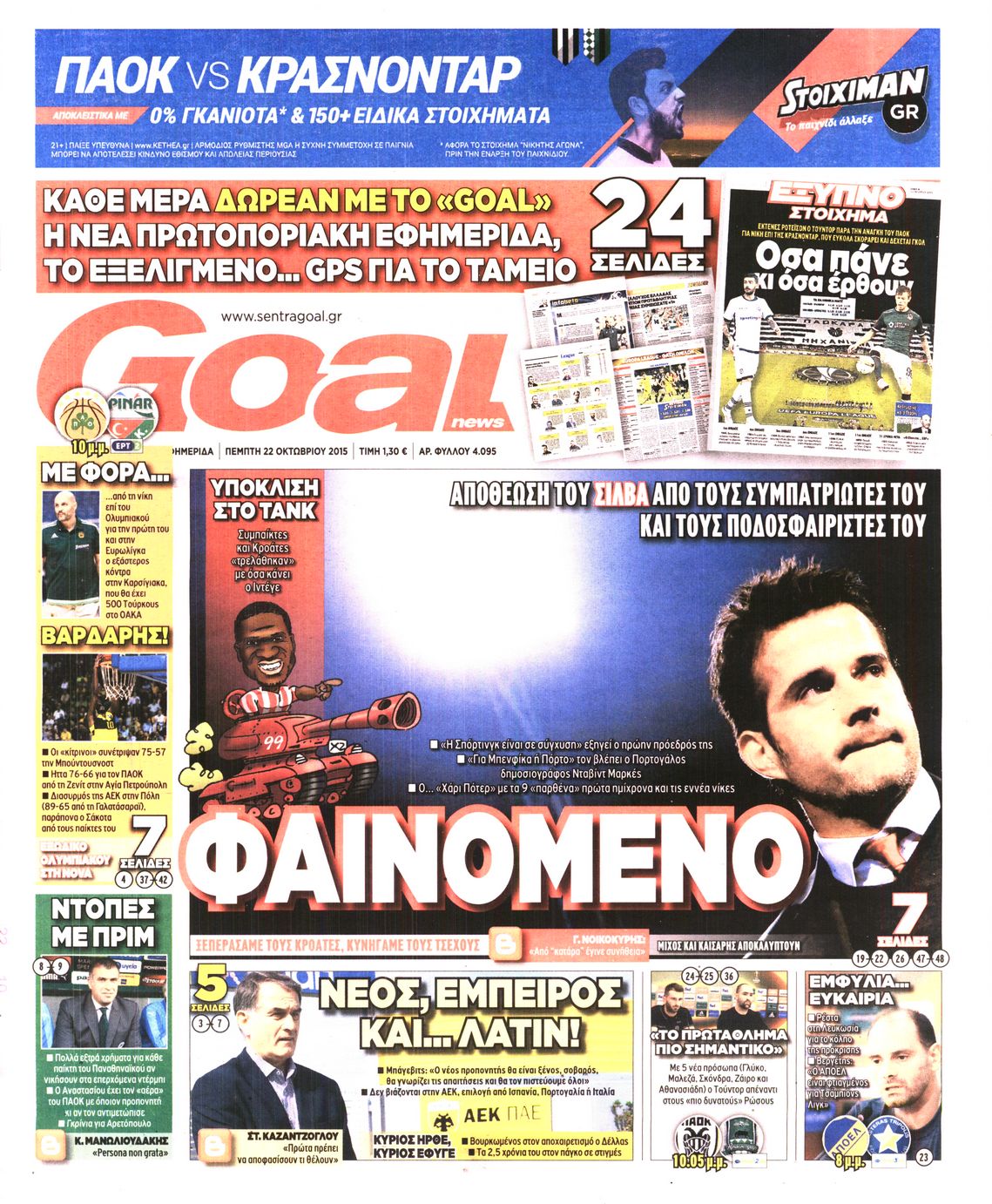 Οι αθλητικές εφημερίδες 22/10/2015 Enikos Newsroom 06:19, Πέμπτη 22 Οκτωβρίου 2015 Media Διαβάστε τα σημερινά πρωτοσέλιδα των αθλητικών εφημερίδων. ΑΘΛΗΤΙΚΕΣ ΕΦΗΜΕΡΙΔΕΣ ΕΦΗΜΕΡΙΔΕΣ ΠΡΩΤΟΣΕΛΙΔΑ Μοιράσου το: σχολίασε κι εσύ (0 σχόλια) Ακολουθήστε το enikos.gr στο Google News και μάθετε πρώτοι όλες τις ειδήσεις Δείτε όλες τις τελευταίες ειδήσεις από την Ελλάδα και τον Κόσμο στο enikos.gr Ειδήσεις Ροή Ειδήσεων 2 ώρες πριν Η Ουκρανία χτύπησε τάνκερ του σκιώδους στόλου της Ρωσίας στη Μεσόγειο – Έπλεε νότια της Κρήτης 4 ώρες πριν Πούτιν: Η Ουκρανία δεν είναι έτοιμη για ειρηνευτικές συνομιλίες – Ο ρωσικός στρατός προελαύνει σε όλα τα μέτωπα 41 λεπτά πριν Θεσσαλονίκη: Στη φυλακή ο 44χρονος που κατηγορείται ότι προσπάθησε να πνίξει με κορδόνι την 34χρονη σύντροφό του 58 λεπτά πριν Εξώδικο επιχειρηματία στον Γιώργο Μαζωνάκη – Τι απαντά στις καταγγελίες του τραγουδιστή 2 ώρες πριν Βουλή: Υπερψηφίστηκε το νομοσχέδιο για την ένταξη του ΟΠΕΚΕΠΕ στην ΑΑΔΕ 6 ώρες πριν Αλλαγή σελίδας για 3 ζώδια – «Μία δύσκολη περίοδος φτάνει στο τέλος της» 2 ημέρες πριν 20 χρόνια τα Χριστούγεννα ξεκινούν στα Public με μεγάλη ποικιλία σε δώρα! 5 ώρες πριν Γεμάτος νεροχύτης; 5 σοβαρές ευθύνες που «φοβίζουν» όσους αφήνουν άπλυτα πιάτα 4 ώρες πριν Ειδικός μοιράζεται 6 κόλπα για να διατηρείστε σε φόρμα με πάνω από 40 ώρες εργασίας την εβδομάδα: «Προπονηθείτε πριν από τη δουλειά, όχι μετά» 4 λεπτά πριν Πούτιν: Σαρκαστικά μηνύματα, παράπονα και απρόοπτα στη συνέντευξη Τύπου – Η πρόταση γάμου on air και οι ερωτήσεις για τα αγγούρια και τους… εξωγήινους 11 λεπτά πριν Κρήτη: Ένοχος ο 54χρονος «ερευνητής» για απάτη στην υπόθεση του 33χρονου γιατρού που αγνοείται 11 λεπτά πριν Νίκος Κούρκουλος: Αυτός ο αλύγιστος και ασυμβίβαστος «Αστραπόγιαννος» 17 λεπτά πριν Παναθηναϊκός: Θα προτείνει στη Λάτσιο 4 εκατ. ευρώ και συνιδιοκτησία για τον Μανδά 22 λεπτά πριν Η απάντηση της κυβέρνησης στα αιτήματα των αγροτών: 16+4 υλοποιούνται ή βρίσκονται υπό επεξεργασία για να βρεθεί λύση – 7 δεν μπορούν να επιλυθούν ENIKOS NETWORK Τάξη στις ιατρικές διαφημίσεις για την προστασία των πολιτών βάζει ο ΙΣΑ Μακροζωία: Τι παίζει πιο σημαντικό ρόλο ακόμα και από την διατροφή και την άσκηση, σύμφωνα με μελέτη Βουλή: Υπερψηφίστηκε το νομοσχέδιο για τη μετάβαση του ΟΠΕΚΕΠΕ στην ΑΑΔΕ ΕΥΔΑΠ: Οδηγός για τις αλλαγές στα τιμολόγια του νερού – 17 ερωτήσεις και απαντήσεις Χαρτογραφώντας το «σημείο χωρίς επιστροφή»: Για πρώτη φορά αποκαλύπτεται με λεπτομέρεια το ακανθώδες όριο της ατμόσφαιρας τ... Η Google καταργεί τη λειτουργία «dark web report» – Πώς θα μπορούν οι χρήστες να διαγράφουν τα δεδομένα τους περισσότερα 15:15 , Παρασκευή 19 Δεκεμβρίου 2025 Την Κυριακή με τη Realnews: Ό,τι και αν αγοράσεις, σκανάρεις και κερδίζεις! Την Κυριακή με τη Realnews: Ό,τι και αν αγοράσεις, σκανάρεις και κερδίζεις! Με το PADU app, το... 08:00 , Παρασκευή 19 Δεκεμβρίου 2025 Την Κυριακή με τη Realnews: Δωροεπιταγή 10€ Δωροεπιταγή αξίας 10€ για αγορές άνω των 60€ από τα πολυκαταστήματα FactoryOutlet H προσφορά ι... 05:48 , Παρασκευή 19 Δεκεμβρίου 2025 Οι οικονομικές εφημερίδες 19/12/2025 Διαβάστε τα πρωτοσέλιδα από τις οικονομικές εφημερίδες, σήμερα 19/12/2025. 05:43 , Παρασκευή 19 Δεκεμβρίου 2025 Οι αθλητικές εφημερίδες 19/12/2025 Διαβάστε τα πρωτοσέλιδα από τις αθλητικές εφημερίδες, σήμερα 19/12/2025. ΤΕΛΕΥΤΑΙΕΣ ΕΙΔΗΣΕΙΣ 4 λεπτά πριν Πούτιν: Σαρκαστικά μηνύματα, παράπονα και απρόοπτα... 11 λεπτά πριν Κρήτη: Ένοχος ο 54χρονος «ερευνητής» για απάτη στην... 11 λεπτά πριν Νίκος 
