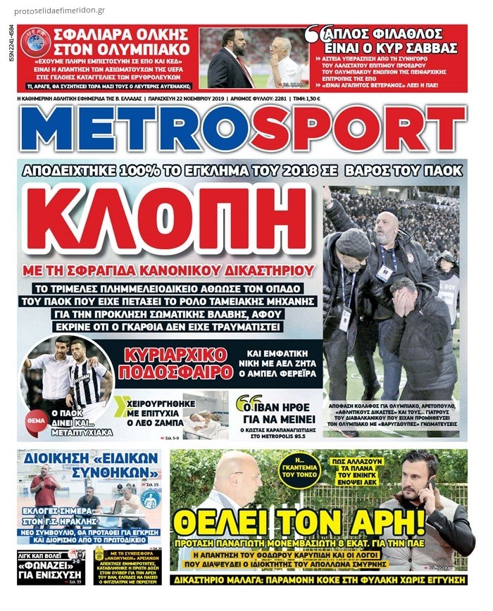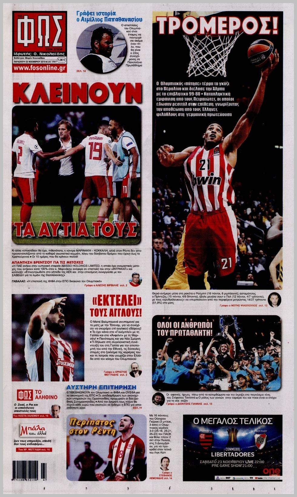 Οι αθλητικές εφημερίδες 22/11/19 Διονύσης Νίκκας 07:05, Παρασκευή 22 Νοεμβρίου 2019 Media Διαβάστε τα πρωτοσέλιδα των αθλητικών εφημερίδων… ΑΘΛΗΤΙΚΕΣ ΕΦΗΜΕΡΙΔΕΣ Μοιράσου το: σχολίασε κι εσύ (0 σχόλια) Ακολουθήστε το enikos.gr στο Google News και μάθετε πρώτοι όλες τις ειδήσεις Δείτε όλες τις τελευταίες ειδήσεις από την Ελλάδα και τον Κόσμο στο enikos.gr Ειδήσεις Ροή Ειδήσεων 4 ώρες πριν Αυξάνουν την πίεση προς την κυβέρνηση οι αγρότες: Κλείνουν παρακαμπτήριους και ανοίγουν διόδια – Τι θα γίνει τις γιορτές 3 ώρες πριν ΟΠΕΚΕΠΕ: Προφυλακιστέος ο φερόμενος αρχηγός και ο λογιστής της εγκληματικής οργάνωσης 4 ώρες πριν Φοινικούντα: Το Σάββατο απολογείται ο 30χρονος γιος γνωστού επιχειρηματία της Πλάκας που παραδόθηκε – Όσα είπε στους αστυνομικούς και ο ρόλος του στο έγκλημα 4 ώρες πριν Μπορεί ο Μαδούρο να αντέξει τον αποκλεισμό του Τραμπ; Τι θα χρειαστεί η Ουάσινγκτον για να τον ανατρέψει 2 ώρες πριν ΑΕΚ – Κραϊόβα 3-2: Επική ανατροπή και πρόκριση στους «16» του Conference League η Ένωση 4 ώρες πριν Αρχαιολόγοι ανακάλυψαν ρωμαϊκά τεχνουργήματα από μια πόλη που δεν υπήρξε ποτέ – Τα τρία εντυπωσιακά κτίρια και ο αμφορέας με τις… σαρδέλες 5 ώρες πριν Ύπνος: Η απλή βραδινή ρουτίνα για να προστατεύσετε τα μαλλιά σας από το κρύο κατά τη διάρκεια του χειμώνα 6 ώρες πριν Manifesting: Πώς να συναντήσετε τον σύντροφο της ζωής σας, ανάλογα με τον μήνα γέννησής σας 2 ημέρες πριν 20 χρόνια τα Χριστούγεννα ξεκινούν στα Public με μεγάλη ποικιλία σε δώρα! 15 λεπτά πριν Πόλεμος στην Ουκρανία: Ρωσικά drones έπληξαν την Οδησσό – Μία νεκρή και ζημιές σε ενεργειακές υποδομές 22 λεπτά πριν ΑΕΚ-Κραϊόβα: Τα highlights της μυθικής ανατροπής της «Ένωσης» 37 λεπτά πριν Μιχάλης Χρυσοχοΐδης από την Κωνσταντινούπολη: Κοινές επιχειρήσεις Ελλάδας – Τουρκίας ενάντια στο οργανωμένο έγκλημα 60 λεπτά πριν Μάρκο Νίκολιτς: «Είμαι περήφανος για τους παίκτες μου, όποιος αντίπαλος και να έρθει θα προετοιμαστούμε» 1 ώρα πριν ΟΗΕ: Την εκλογή του νέου ύπατου αρμοστή για τους Πρόσφυγες Μπαρχάμ Άχμεντ Σαλίχ χαιρέτησε ο Αντόνιο Γκουτέρες ENIKOS NETWORK Σε περίοδο αυξημένης δραστηριότητας η γρίπη στην Ελλάδα-Μέτρα προστασίας από τον ΕΟΔΥ Σκέφτεστε συνέχεια συζητήσεις που έχετε κάνει; Τι σημαίνει αυτό, σύμφωνα με ειδικό Στεγαστικό: Τι λέει η ΠΟΜΙΔΑ για τα νέα μέτρα που ανακοίνωσε ο Κυριάκος Μητσοτάκης Λαγκάρντ: Αισιόδοξη για την ανάπτυξη της Ευρωζώνης, αβέβαιη για τον πληθωρισμό Χαρτογραφώντας το «σημείο χωρίς επιστροφή»: Για πρώτη φορά αποκαλύπτεται με λεπτομέρεια το ακανθώδες όριο της ατμόσφαιρας τ... Η Google καταργεί τη λειτουργία «dark web report» – Πώς θα μπορούν οι χρήστες να διαγράφουν τα δεδομένα τους περισσότερα 17:45 , Πέμπτη 18 Δεκεμβρίου 2025 ROUK ZOUK: Εορταστικό επεισόδιο με καλεσμένους τους πρωταγωνιστές του «Γιατί ρε πατέρα» Το Σάββατο 20 Δεκεμβρίου στις 21:00, η Ζέτα Μακρυπούλια υποδέχεται εκλεκτούς ηθοποιούς που όλο... 17:20 , Πέμπτη 18 Δεκεμβρίου 2025 Άγιος έρωτας: Η Χριστίνα εξομολογείται στον πατέρα Νικόλαο, απόψε στις 21:00 στον Alpha Η Νότα αποφασίζει να εκδικηθεί τον Πέτρο και τον Στέφανο, για χάρη του Λούη, όμως τα πράγματα ... 16:50 , Πέμπτη 18 Δεκεμβρίου 2025 Να μ’ αγαπάς: Ζωή και Φωτεινή συμφιλιώνονται ως μάνα με κόρη, απόψε στις 20:00 Η ταυτότητα του Άγγελου αποκαλύπτεται στο νέο επεισόδιο της σειράς “Να μ’ αγαπάς... 15:52 , Πέμπτη 18 Δεκεμβρίου 2025 Το Σπίτι Δίπλα Στο Ποτάμι: Το καθηλωτικό τελευταίο επεισόδιο για το 2025 απόψε στις 22:30 Καθηλώνει το σημερινό επεισόδιο της 