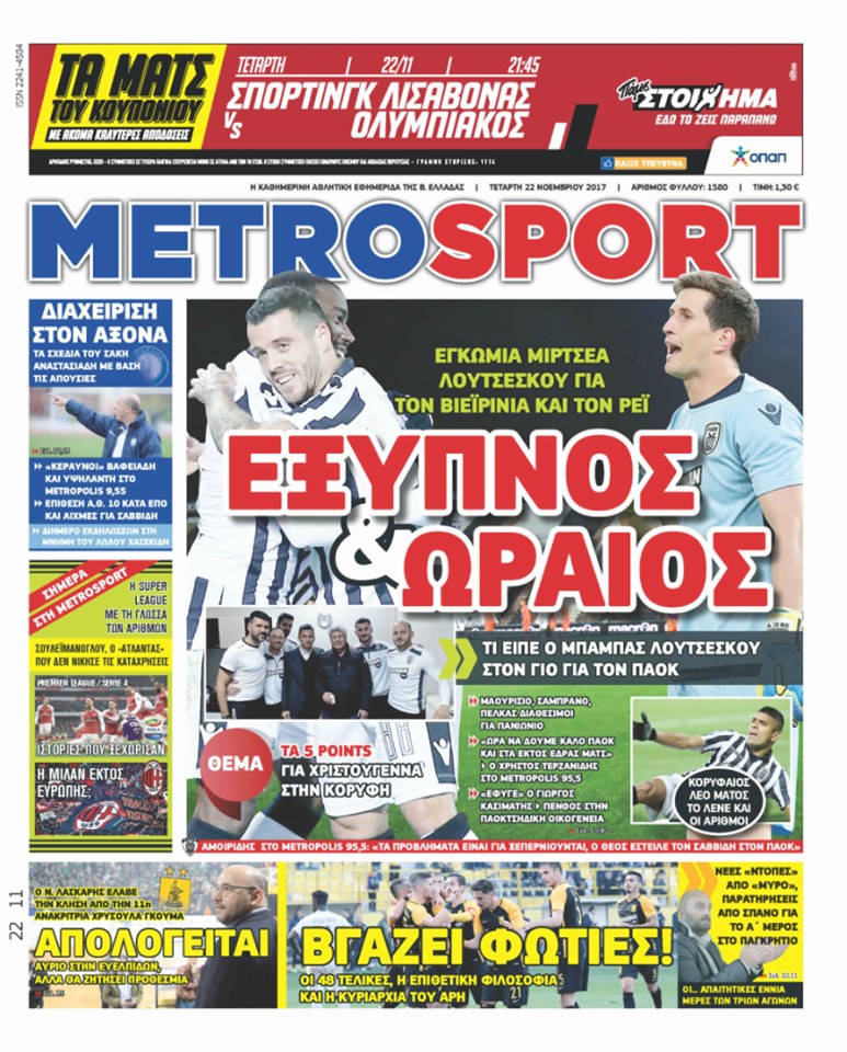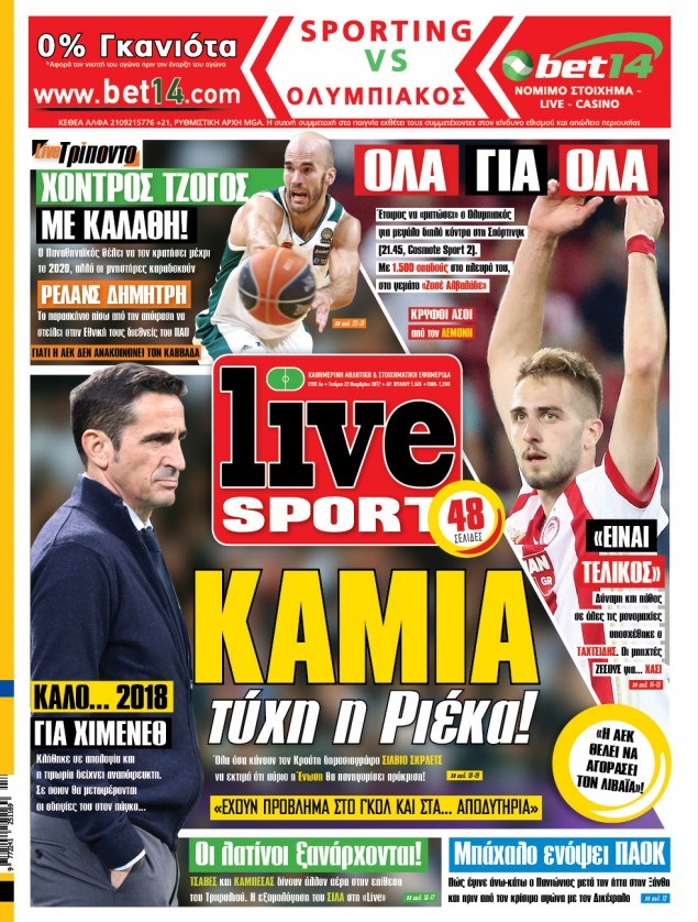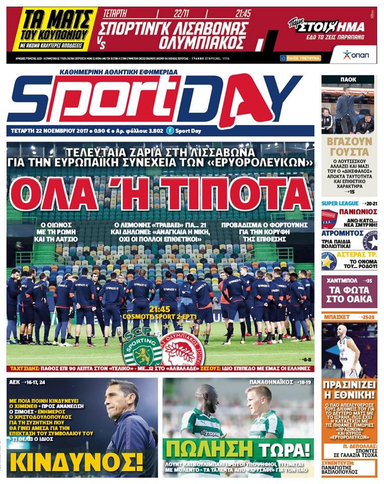Οι αθλητικές εφημερίδες 22/11/2017 Κώστας Τεό 07:15, Τετάρτη 22 Νοεμβρίου 2017 Media Διαβάστε τα σημερινά πρωτοσέλιδα των αθλητικών εφημερίδων: ΑΘΛΗΤΙΚΕΣ ΕΦΗΜΕΡΙΔΕΣ ΠΡΩΤΟΣΕΛΙΔΑ Μοιράσου το: σχολίασε κι εσύ (0 σχόλια) Ακολουθήστε το enikos.gr στο Google News και μάθετε πρώτοι όλες τις ειδήσεις Δείτε όλες τις τελευταίες ειδήσεις από την Ελλάδα και τον Κόσμο στο enikos.gr Ειδήσεις Ροή Ειδήσεων 1 ώρα πριν Η Ουκρανία χτύπησε τάνκερ του σκιώδους στόλου της Ρωσίας στη Μεσόγειο – Έπλεε νότια της Κρήτης 4 ώρες πριν Πούτιν: Η Ουκρανία δεν είναι έτοιμη για ειρηνευτικές συνομιλίες – Ο ρωσικός στρατός προελαύνει σε όλα τα μέτωπα 23 λεπτά πριν Θεσσαλονίκη: Στη φυλακή ο 44χρονος που κατηγορείται ότι προσπάθησε να πνίξει με κορδόνι την 34χρονη σύντροφό του 40 λεπτά πριν Εξώδικο επιχειρηματία στον Γιώργο Μαζωνάκη – Τι απαντά στις καταγγελίες του τραγουδιστή 1 ώρα πριν Βουλή: Υπερψηφίστηκε το νομοσχέδιο για την ένταξη του ΟΠΕΚΕΠΕ στην ΑΑΔΕ 5 ώρες πριν Αλλαγή σελίδας για 3 ζώδια – «Μία δύσκολη περίοδος φτάνει στο τέλος της» 2 ημέρες πριν 20 χρόνια τα Χριστούγεννα ξεκινούν στα Public με μεγάλη ποικιλία σε δώρα! 4 ώρες πριν Γεμάτος νεροχύτης; 5 σοβαρές ευθύνες που «φοβίζουν» όσους αφήνουν άπλυτα πιάτα 3 ώρες πριν Ειδικός μοιράζεται 6 κόλπα για να διατηρείστε σε φόρμα με πάνω από 40 ώρες εργασίας την εβδομάδα: «Προπονηθείτε πριν από τη δουλειά, όχι μετά» 4 λεπτά πριν Η απάντηση της κυβέρνησης στα αιτήματα των αγροτών: 16+4 υλοποιούνται ή βρίσκονται υπό επεξεργασία για να βρεθεί λύση – 7 δεν μπορούν να επιλυθούν 11 λεπτά πριν Την Κυριακή με τη Realnews: Ό,τι και αν αγοράσεις, σκανάρεις και κερδίζεις! 17 λεπτά πριν ΝΒΑ: Η πρώτη… πεντάδα του Γιάννη Αντετοκούνμπο 19 λεπτά πριν Η Σάντυ Χατζηϊωάννου στο Game Time: Το παιδικό όνειρο με τον Αντώνη Νικοπολίδη και το ντουέτο με την Ευγενία Σαμαρά 23 λεπτά πριν Θεσσαλονίκη: Στη φυλακή ο 44χρονος που κατηγορείται ότι προσπάθησε να πνίξει με κορδόνι την 34χρονη σύντροφό του ENIKOS NETWORK Τάξη στις ιατρικές διαφημίσεις για την προστασία των πολιτών βάζει ο ΙΣΑ Μακροζωία: Τι παίζει πιο σημαντικό ρόλο ακόμα και από την διατροφή και την άσκηση, σύμφωνα με μελέτη Βουλή: Υπερψηφίστηκε το νομοσχέδιο για τη μετάβαση του ΟΠΕΚΕΠΕ στην ΑΑΔΕ ΕΥΔΑΠ: Οδηγός για τις αλλαγές στα τιμολόγια του νερού – 17 ερωτήσεις και απαντήσεις Χαρτογραφώντας το «σημείο χωρίς επιστροφή»: Για πρώτη φορά αποκαλύπτεται με λεπτομέρεια το ακανθώδες όριο της ατμόσφαιρας τ... Η Google καταργεί τη λειτουργία «dark web report» – Πώς θα μπορούν οι χρήστες να διαγράφουν τα δεδομένα τους περισσότερα 15:15 , Παρασκευή 19 Δεκεμβρίου 2025 Την Κυριακή με τη Realnews: Ό,τι και αν αγοράσεις, σκανάρεις και κερδίζεις! Την Κυριακή με τη Realnews: Ό,τι και αν αγοράσεις, σκανάρεις και κερδίζεις! Με το PADU app, το... 08:00 , Παρασκευή 19 Δεκεμβρίου 2025 Την Κυριακή με τη Realnews: Δωροεπιταγή 10€ Δωροεπιταγή αξίας 10€ για αγορές άνω των 60€ από τα πολυκαταστήματα FactoryOutlet H προσφορά ι... 05:48 , Παρασκευή 19 Δεκεμβρίου 2025 Οι οικονομικές εφημερίδες 19/12/2025 Διαβάστε τα πρωτοσέλιδα από τις οικονομικές εφημερίδες, σήμερα 19/12/2025. 05:43 , Παρασκευή 19 Δεκεμβρίου 2025 Οι αθλητικές εφημερίδες 19/12/2025 Διαβάστε τα πρωτοσέλιδα από τις αθλητικές εφημερίδες, σήμερα 19/12/2025. ΤΕΛΕΥΤΑΙΕΣ ΕΙΔΗΣΕΙΣ 4 λεπτά πριν Η απάντηση της κυβέρνησης στα αιτήματα των αγροτών: 16+4... 11 λεπτά πριν Την Κυριακή με τη Realnews: Ό,τι και αν αγοράσεις,... 17 λεπτά πριν ΝΒΑ: Η πρώτη… πεντάδα του Γιάννη Αντετοκούνμπο 19 λεπτά πριν Η Σάντυ Χατζηϊω