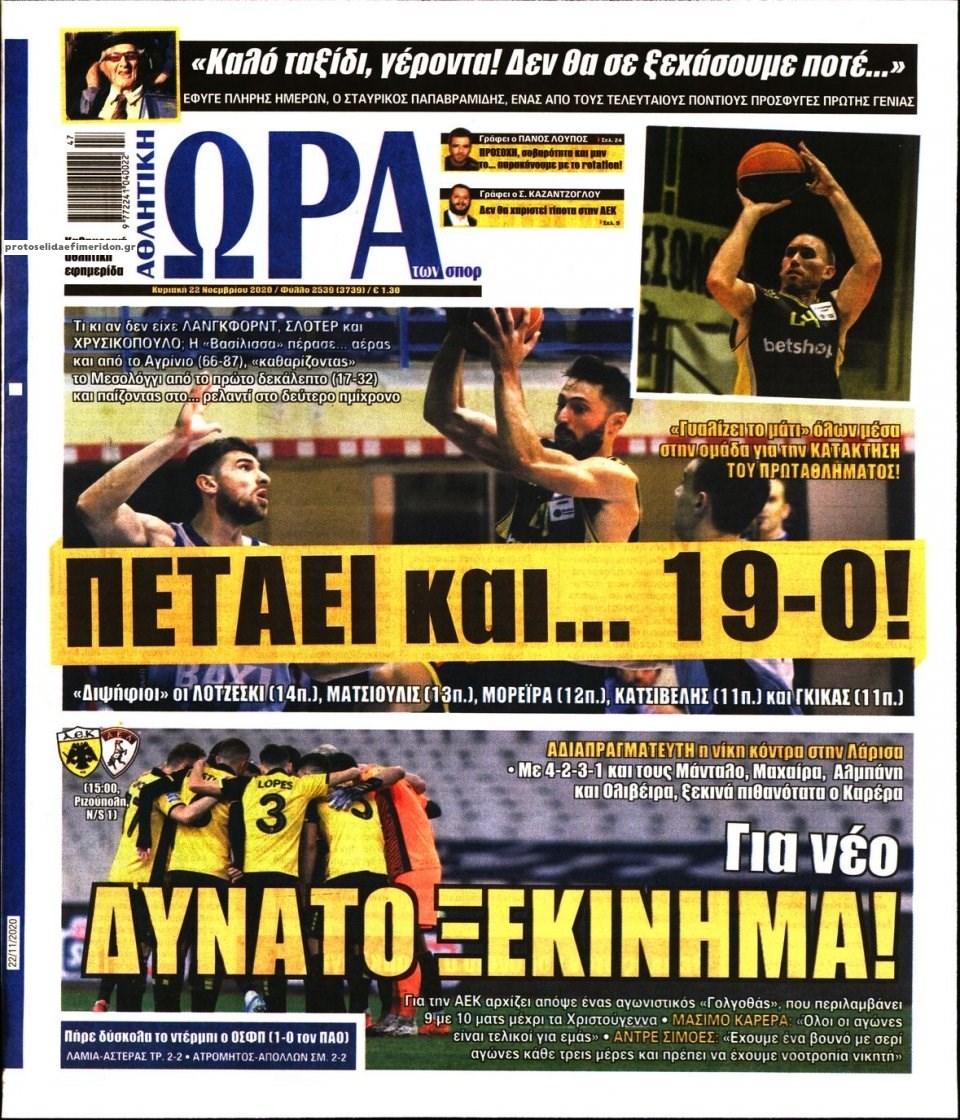 Οι αθλητικές εφημερίδες 22/11/2020 Σήφης Γαρυφαλάκης 07:33, Κυριακή 22 Νοεμβρίου 2020 Media Διαβάστε τα πρωτοσέλιδα των αθλητικών εφημερίδων… ΑΘΛΗΤΙΚΕΣ ΕΦΗΜΕΡΙΔΕΣ ΕΦΗΜΕΡΙΔΕΣ ΠΡΩΤΟΣΕΛΙΔΑ ΠΡΩΤΟΣΕΛΙΔΑ ΕΦΗΜΕΡΙΔΩΝ Μοιράσου το: σχολίασε κι εσύ (0 σχόλια) Ακολουθήστε το enikos.gr στο Google News και μάθετε πρώτοι όλες τις ειδήσεις Δείτε όλες τις τελευταίες ειδήσεις από την Ελλάδα και τον Κόσμο στο enikos.gr Ειδήσεις Ροή Ειδήσεων 2 ώρες πριν Εκτός ευρωομάδας ΣΥΡΙΖΑ ο Νίκος Παππάς μετά την επίθεση στον δημοσιογράφο Νίκο Γιαννόπουλο – Η μήνυση και οι νέες δηλώσεις 2 ώρες πριν «Αγριεύουν» οι αγρότες: «Δεν συντρέχει λόγος συνάντησης με τον πρωθυπουργό» – Ώρα αποφάσεων στη σύσκεψη της Πέμπτης 2 ώρες πριν Κυψέλη: Χωρίς την οικογένειά της δίπλα της απολογήθηκε η 16χρονη – «Της είχε επιτεθεί κάποιος για να την βιάσει, φοβήθηκε και κυκλοφορούσε με μαχαίρι» 1 ώρα πριν Politico: Το πρόβλημα της Ευρώπης δεν είναι το Βέλγιο αλλά ο Ντόναλντ Τραμπ 3 ώρες πριν Αλεξανδρούπολη: Πολυοργανική ανεπάρκεια λόγω υποσιτισμού η αιτία θανάτου του 3χρονου αγοριού 2 ώρες πριν Μυστήριο με τεράστιες κυκλικές πέτρες 200 κιλών – Ανακαλύφθηκαν τυχαία κατά τη διάρκεια οδικών έργων και κανείς δεν ξέρει από πού προέρχονται 3 ώρες πριν Ύπνος: Ειδικός εξηγεί τον πραγματικό λόγο που ξυπνάτε στις 4 τα ξημερώματα – Ο ρόλος των ορμονών και του κιρκάδιου ρυθμού 4 ώρες πριν Αριθμολογία: Οι άνθρωποι που έχουν γεννηθεί αυτές τις 4 ημερομηνίες, είναι τρυφεροί και αγαπούν ανιδιοτελώς 15 ώρες πριν 20 χρόνια τα Χριστούγεννα ξεκινούν στα Public με μεγάλη ποικιλία σε δώρα! 13 λεπτά πριν Βέλγους πολιτικούς και επικεφαλής χρηματοπιστωτικών ιδρυμάτων στοχοποιεί η Μόσχα για τα κατασχεθέντα περιουσιακά στοιχεία 27 λεπτά πριν ΗΠΑ: Αναζητείται δεύτερος ύποπτος για την επίθεση στο πανεπιστήμιο Μπράουν 42 λεπτά πριν Λεωφόρος Αλεξάνδρας: Δεν εντοπίστηκε βόμβα έξω από το κολλέγιο – Προσήχθη άνδρας για το προειδοποιητικό σημείωμα 59 λεπτά πριν Ελένη Κρίτα για το reunion του «Παρά Πέντε»: «Ήταν πραγματικά σαν να μην είχαμε χαθεί ποτέ» 1 ώρα πριν Κύπελλο Ελλάδας: Αυτά είναι τα ζευγάρια στα νοκ-άουτ, οι διασταυρώσεις στους «8» κι ο δρόμος προς τον τελικό ENIKOS NETWORK Αϋπνία: Το κόλπο που θα σας βοηθήσει να κοιμηθείτε απόψε – Είναι απλό και έχει αποτέλεσμα 2,6 εκατομμύρια πολίτες έχουν ήδη εμβολιαστεί κατά της γρίπης ΕΛΣΤΑΤ: Τι δείχνουν τα νέα στοιχεία για τις ηλεκτρονικές παραγγελίες των επιχειρήσεων ΚΕΠΕ: Οι 3 διακριτές συμβολές των ΜμΕ και της μεταποίησης στην ελληνική οικονομία Χαρτογραφώντας το «σημείο χωρίς επιστροφή»: Για πρώτη φορά αποκαλύπτεται με λεπτομέρεια το ακανθώδες όριο της ατμόσφαιρας τ... Η Google καταργεί τη λειτουργία «dark web report» – Πώς θα μπορούν οι χρήστες να διαγράφουν τα δεδομένα τους περισσότερα 22:24 , Τετάρτη 17 Δεκεμβρίου 2025 Το Σπίτι Δίπλα Στο Ποτάμι: Σε κίνδυνο η υγεία του Απόστολου – Τι θα δούμε απόψε “Το Σπίτι Δίπλα στο Ποτάμι” ξετυλίγει το νήμα της ζωής των πέντε αδελφών με καταισ... 21:14 , Τετάρτη 17 Δεκεμβρίου 2025 Παιχνίδια Εκδίκησης: Θα καταφέρει ο Χρήστος να κλονίσει την εμπιστοσύνη της Μάγιας απέναντι στον Άγη; Τα «Παιχνίδια Εκδίκησης» έρχονται απόψε στις 22:30, στον Αντ1, με το τελευταίο επεισόδιο της χ... 20:57 , Τετάρτη 17 Δεκεμβρίου 2025 Άγιος Έρωτας: Η Χλόη καταθέτει εναντίον του πατέρα της και ο Χάρης αποκαλύπτει στον Κλεάνθη ότι δεν είναι ο βιολογικός του πατέρας. Γεμάτο αποκαλύψεις είναι το νέο επεισόδιο της σειράς “Άγιος Έρωτας