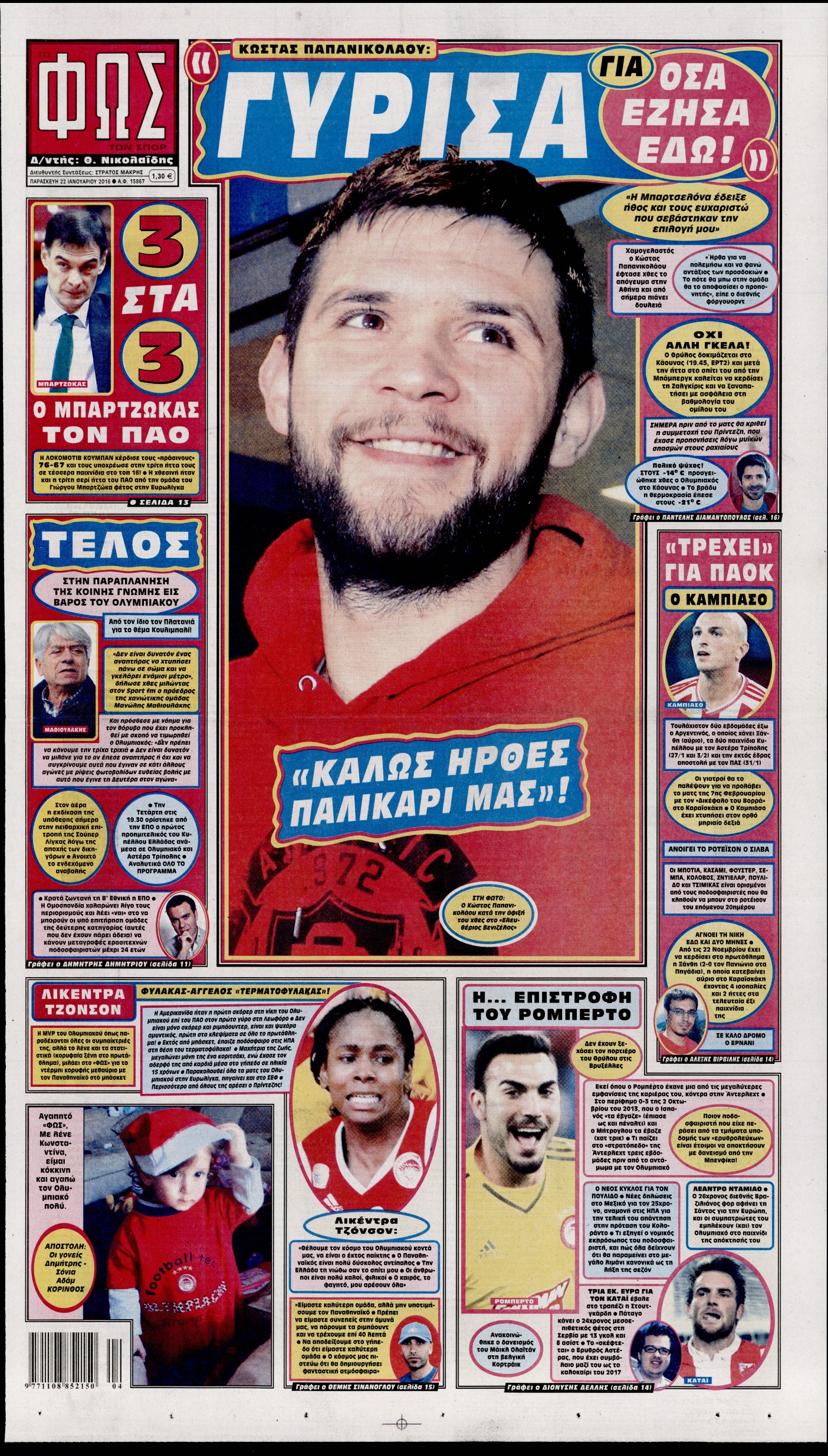 Οι αθλητικές εφημερίδες 22/1/2016 Enikos Newsroom 06:04, Παρασκευή 22 Ιανουαρίου 2016 Media Διαβάστε τα σημερινά πρωτοσέλιδα των αθλητικών εφημερίδων: ΑΘΛΗΤΙΚΕΣ ΕΦΗΜΕΡΙΔΕΣ ΠΡΩΤΟΣΕΛΙΔΑ Μοιράσου το: σχολίασε κι εσύ (0 σχόλια) Ακολουθήστε το enikos.gr στο Google News και μάθετε πρώτοι όλες τις ειδήσεις Δείτε όλες τις τελευταίες ειδήσεις από την Ελλάδα και τον Κόσμο στο enikos.gr Ειδήσεις Ροή Ειδήσεων 5 ώρες πριν Αυξάνουν την πίεση προς την κυβέρνηση οι αγρότες: Κλείνουν παρακαμπτήριους και ανοίγουν διόδια – Τι θα γίνει τις γιορτές 4 ώρες πριν ΟΠΕΚΕΠΕ: Προφυλακιστέος ο φερόμενος αρχηγός και ο λογιστής της εγκληματικής οργάνωσης 25 λεπτά πριν Ευρωπαϊκή Ένωση: Χωρίς συμφωνία, για την μακροπρόθεσμη χρηματοδότηση της Ουκρανίας, ολοκληρώθηκε η Σύνοδος Κορυφής στις Βρυξέλλες 3 ώρες πριν ΑΕΚ – Κραϊόβα 3-2: Επική ανατροπή και πρόκριση στους «16» του Conference League η Ένωση 5 ώρες πριν Φοινικούντα: Το Σάββατο απολογείται ο 30χρονος γιος γνωστού επιχειρηματία της Πλάκας που παραδόθηκε – Όσα είπε στους αστυνομικούς και ο ρόλος του στο έγκλημα 4 ώρες πριν Αρχαιολόγοι ανακάλυψαν ρωμαϊκά τεχνουργήματα από μια πόλη που δεν υπήρξε ποτέ – Τα τρία εντυπωσιακά κτίρια και ο αμφορέας με τις… σαρδέλες 6 ώρες πριν Ύπνος: Η απλή βραδινή ρουτίνα για να προστατεύσετε τα μαλλιά σας από το κρύο κατά τη διάρκεια του χειμώνα 6 ώρες πριν Manifesting: Πώς να συναντήσετε τον σύντροφο της ζωής σας, ανάλογα με τον μήνα γέννησής σας 2 ημέρες πριν 20 χρόνια τα Χριστούγεννα ξεκινούν στα Public με μεγάλη ποικιλία σε δώρα! 25 λεπτά πριν Ευρωπαϊκή Ένωση: Χωρίς συμφωνία, για την μακροπρόθεσμη χρηματοδότηση της Ουκρανίας, ολοκληρώθηκε η Σύνοδος Κορυφής στις Βρυξέλλες 41 λεπτά πριν GNTM: «Κλείδωσαν» οι τέσσερις φιναλίστ – Μεγάλη ανατροπή στις τελευταίες αποχωρήσεις 55 λεπτά πριν Γιώργος Μαζωνάκης: Αποθεώθηκε στην πρεμιέρα του στην «Ακτή Πειραιώς» λίγες ώρες μετά τις καταγγελίες – «Είμαι αληθινός», είπε με νόημα 1 ώρα πριν Πόλεμος στην Ουκρανία: Ρωσικά drones έπληξαν την Οδησσό – Μία νεκρή και ζημιές σε ενεργειακές υποδομές 1 ώρα πριν ΑΕΚ-Κραϊόβα: Τα highlights της μυθικής ανατροπής της «Ένωσης» ENIKOS NETWORK Σε περίοδο αυξημένης δραστηριότητας η γρίπη στην Ελλάδα-Μέτρα προστασίας από τον ΕΟΔΥ Σκέφτεστε συνέχεια συζητήσεις που έχετε κάνει; Τι σημαίνει αυτό, σύμφωνα με ειδικό Στεγαστικό: Τι λέει η ΠΟΜΙΔΑ για τα νέα μέτρα που ανακοίνωσε ο Κυριάκος Μητσοτάκης Λαγκάρντ: Αισιόδοξη για την ανάπτυξη της Ευρωζώνης, αβέβαιη για τον πληθωρισμό Χαρτογραφώντας το «σημείο χωρίς επιστροφή»: Για πρώτη φορά αποκαλύπτεται με λεπτομέρεια το ακανθώδες όριο της ατμόσφαιρας τ... Η Google καταργεί τη λειτουργία «dark web report» – Πώς θα μπορούν οι χρήστες να διαγράφουν τα δεδομένα τους περισσότερα 02:50 , Παρασκευή 19 Δεκεμβρίου 2025 GNTM: «Κλείδωσαν» οι τέσσερις φιναλίστ – Μεγάλη ανατροπή στις τελευταίες αποχωρήσεις Για προτελευταία φορά εμφανίστηκαν στο πλατό του GNTM οι φιναλίστ του φετινού κύκλου, το βράδυ... 17:45 , Πέμπτη 18 Δεκεμβρίου 2025 ROUK ZOUK: Εορταστικό επεισόδιο με καλεσμένους τους πρωταγωνιστές του «Γιατί ρε πατέρα» Το Σάββατο 20 Δεκεμβρίου στις 21:00, η Ζέτα Μακρυπούλια υποδέχεται εκλεκτούς ηθοποιούς που όλο... 17:20 , Πέμπτη 18 Δεκεμβρίου 2025 Άγιος έρωτας: Η Χριστίνα εξομολογείται στον πατέρα Νικόλαο, απόψε στις 21:00 στον Alpha Η Νότα αποφασίζει να εκδικηθεί τον Πέτρο και τον Στέφανο, για χάρη του Λούη, όμως τα πράγματα ... 16:50 , Πέμπτη 18 Δεκεμβρίου 2025 Να μ’ αγαπάς: Ζωή και Φωτεινή συμφιλιών