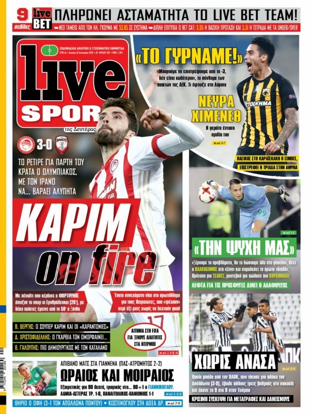 Οι αθλητικές εφημερίδες 22/1/2018 Κώστας Τεό 06:22, Δευτέρα 22 Ιανουαρίου 2018 Media Διαβάστε τα σημερινά πρωτοσέλιδα των αθλητικών εφημερίδων: ΑΘΛΗΤΙΚΕΣ ΕΦΗΜΕΡΙΔΕΣ ΠΡΩΤΟΣΕΛΙΔΑ Μοιράσου το: σχολίασε κι εσύ (0 σχόλια) Ακολουθήστε το enikos.gr στο Google News και μάθετε πρώτοι όλες τις ειδήσεις Δείτε όλες τις τελευταίες ειδήσεις από την Ελλάδα και τον Κόσμο στο enikos.gr Ειδήσεις Ροή Ειδήσεων 5 ώρες πριν Χριστούγεννα στα μπλόκα: Επιμένουν στις κινητοποιήσεις τους οι αγρότες – Ανοίγουν τα διόδια το Σαββατοκύριακο 5 ώρες πριν Ουκρανία: Η άνευ προηγουμένου επίθεση σε ρωσικό τάνκερ στη Μεσόγειο και το μήνυμα προς στον Πούτιν – Το «μακρύ χέρι» του Κιέβου 4 ώρες πριν Πούτιν: Τα μηνύματα σε Ευρώπη και ΝΑΤΟ από το μαραθώνιο «σόου» του – Η απαίτηση για «σεβασμό» και η ειρήνη «με τους όρους» της Μόσχας 5 ώρες πριν Τραμπ: Δεν αποκλείει την πιθανότητα ενός πολέμου στη Βενεζουέλα – «Ο Μαδούρο ξέρει καλύτερα από τον καθένα τι ακριβώς θέλω» 6 ώρες πριν Συνεχίζει να προκαλεί ο Μίτσκοσκι: «Για μένα το όνομα Μακεδονία είναι ιερό» 4 ώρες πριν Ανακαλύφθηκαν αρχαία χρυσά νομίσματα 2.200 ετών που απεικονίζουν τον θεό Απόλλωνα – Η άγνωστη σύνδεση με τον Φίλιππο Β΄ της Μακεδονίας 5 ώρες πριν Ύπνος: Μια κρυφή κατάσταση του εγκεφάλου πριν από τον ύπνο μπορεί να είναι το “κλειδί” για υψηλή ευφυΐα και δημιουργικότητα 6 ώρες πριν Αριθμολογία: Οι άνθρωποι που έχουν γεννηθεί αυτές τις 4 ημερομηνίες, συχνά παρεξηγούνται – «Η καλοσύνη τους κρύβει τεράστια δύναμη» 7 ώρες πριν Ξεχάστε το καθάρισμα το Σαββατοκύριακο: Ο «κανόνας των 20 λεπτών» που θα σας λύσει τα χέρια 12 λεπτά πριν Η Ελλάδα προσχωρεί στη Διεθνή Επιτροπή Αποζημιώσεων για την Ουκρανία 26 λεπτά πριν GNTM: Η Ξένια Τσίρκοβα αναδείχθηκε μεγάλη νικήτρια και πήρε τις 50.000 ευρώ – Ποιος βρέθηκε σε απόσταση αναπνοής; 41 λεπτά πριν Θεσσαλονίκη: Εξαφανίστηκε 13χρονος από χώρο φιλοξενίας ασυνόδευτων ανηλίκων στο Ωραιόκαστρο 52 λεπτά πριν Ντόναλντ Τραμπ: «Πολύ βαριά αντίποινα» στη Συρία – «Πλήττουμε πολύ δυνατά οχυρά του Ισλαμικού Κράτους» 1 ώρα πριν Εξάρχεια: Ένταση με μολότοφ, χημικά και κρότου λάμψης ENIKOS NETWORK Το ΕΚΑΒ τιμήθηκε από την Ακαδημία Αθηνών για τα 40 χρόνια προσφοράς του Έχετε πραγματικά μεγάλη καρδιά; 10 χαρακτηριστικά όσων έχουν καλοσύνη Αναστολή μέτρων αναγκαστικής εκτέλεσης για κτηνοτρόφους που πλήττονται από την ευλογιά των αιγοπροβάτων Πλήρης επάρκεια προϊόντων στις λαϊκές της Αττικής, παρά τις αγροτικές κινητοποιήσεις – Τι απαντούν οι πωλητές Χαρτογραφώντας το «σημείο χωρίς επιστροφή»: Για πρώτη φορά αποκαλύπτεται με λεπτομέρεια το ακανθώδες όριο της ατμόσφαιρας τ... Η Google καταργεί τη λειτουργία «dark web report» – Πώς θα μπορούν οι χρήστες να διαγράφουν τα δεδομένα τους περισσότερα 02:50 , Σάββατο 20 Δεκεμβρίου 2025 GNTM: Η Ξένια Τσίρκοβα αναδείχθηκε μεγάλη νικήτρια και πήρε τις 50.000 ευρώ – Ποιος βρέθηκε σε απόσταση αναπνοής; Με φαντασμαγορικό τρόπο ολοκληρώθηκε το βράδυ της Παρασκευής ο μεγάλος τελικός του GNTM, μέσα ... 22:42 , Παρασκευή 19 Δεκεμβρίου 2025 Γιώργος Γιαννόπουλος για “Το σόι σου”: “Είναι ευτυχία και ευλογία αυτή η σειρά” «Είναι ευτυχία και ευλογία η συγκυρία αυτής της σειράς», θα πει ο Γιώργος Γιαννόπουλος -ο αγαπ... 20:37 , Παρασκευή 19 Δεκεμβρίου 2025 Don’t Forget The Lyrics: Η Έλλη Κοκκίνου υποδέχεται 4 παίκτες που θα κάνουν τα πάντα για να μη χάσουν ούτε… μισή λέξη από τους στίχους Το «Don’t Forget The Lyrics» επιστρέφει απόψε, Παρασκευή 19 Δεκεμβρίου, στις 21:0