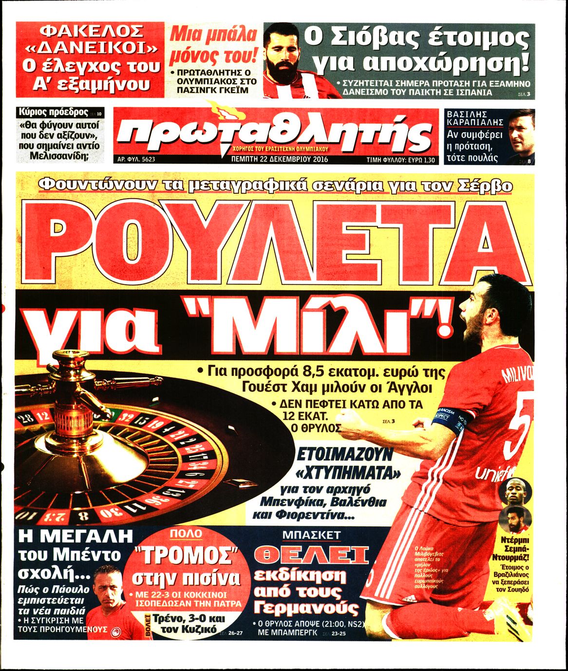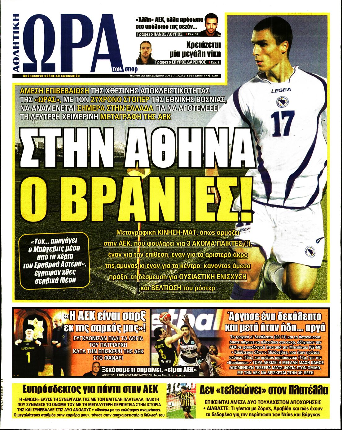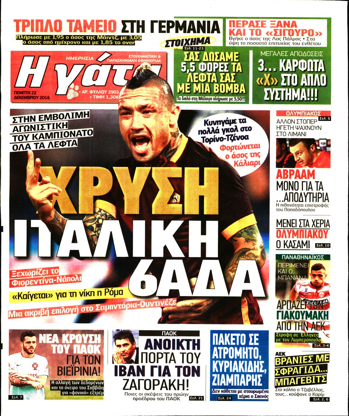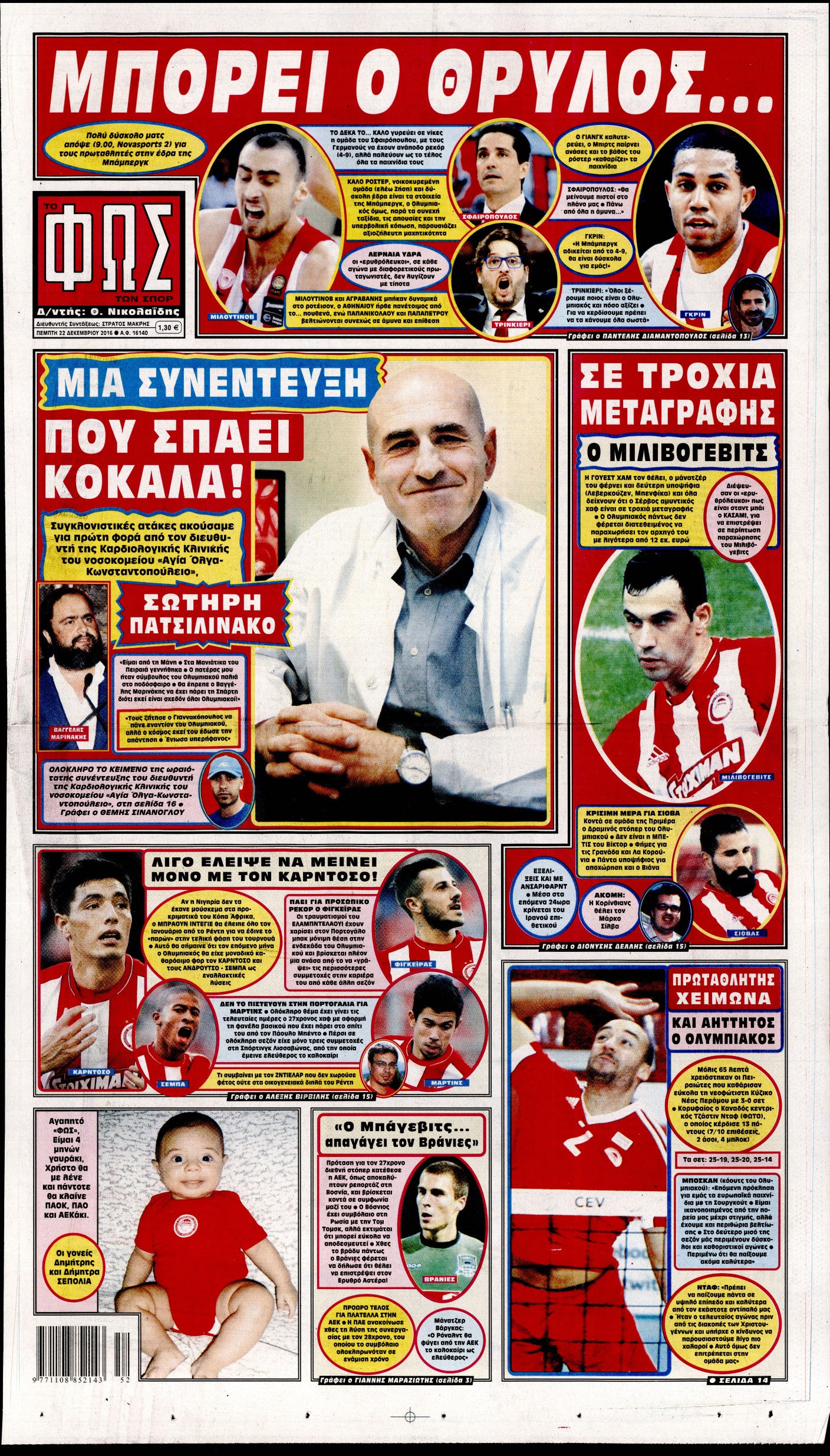 Οι αθλητικές εφημερίδες 22/12/2016 Enikos Newsroom 01:55, Πέμπτη 22 Δεκεμβρίου 2016 Media Διαβάστε τα σημερινά πρωτοσέλιδα των αθλητικών εφημερίδων: ΑΘΛΗΤΙΚΕΣ ΕΦΗΜΕΡΙΔΕΣ ΠΡΩΤΟΣΕΛΙΔΑ Μοιράσου το: σχολίασε κι εσύ (0 σχόλια) Ακολουθήστε το enikos.gr στο Google News και μάθετε πρώτοι όλες τις ειδήσεις Δείτε όλες τις τελευταίες ειδήσεις από την Ελλάδα και τον Κόσμο στο enikos.gr Ειδήσεις Ροή Ειδήσεων 3 ώρες πριν Ακίλα Σάλεχ: «Άκυρο» το τουρκολιβυκό μνημόνιο λέει ο πρόεδρος της λιβυκής Βουλής – Ανοίγει ο διάλογος με Ελλάδα, Αίγυπτο και Τουρκία 7 ώρες πριν Αγρότες: Την Τρίτη η απόφαση για διάλογο ή κλιμάκωση των κινητοποιήσεών τους – Πώς χαρακτηρίζουν τις ανακοινώσεις Τσιάρα και οι επόμενες κινήσεις 7 ώρες πριν Τραμπ για Ουκρανία: «Είμαστε πιο κοντά σε συμφωνία από ποτέ» – «Πολυεθνική δύναμη» προτείνουν οι Ευρωπαίοι 7 ώρες πριν Κυψέλη: Η 16χρονη που μαχαίρωσε την 14χρονη είχε συλληφθεί 3 φορές στο παρελθόν – Έβριζε καθηγητές, έβαζε φωτιές σε κάδους και εκβίαζε συμμαθητές της 6 ώρες πριν Τρομοκρατική επίθεση στο Σίδνεϊ: Θλίψη για τα 15 θύματα – Οργή στην εβραϊκή κοινότητα που προειδοποιούσε επί δύο χρόνια 7 ώρες πριν Επιστήμονες ίσως έλυσαν το μυστήριο γύρω από τα Χόμπιτ – Νέα έρευνα αποκαλύπτει πώς εξαφανίστηκαν 8 ώρες πριν Ύπνος: Η αρχαία μορφή άσκησης που αποδεικνύεται αποτελεσματική στην αντιμετώπιση της αϋπνίας, σύμφωνα με μελέτη 9 ώρες πριν Αριθμολογία: Ο τυχερός σας αριθμός, ανάλογα με τον μήνα γέννησής σας 10 ώρες πριν Πώς να μην μαραίνονται γρήγορα τα κομμένα λουλούδια: Το λάθος στην τοποθέτηση του βάζου που πρέπει να αποφεύγετε 4 λεπτά πριν Οι αθλητικές εφημερίδες 16/12/2025 9 λεπτά πριν Οι πολιτικές εφημερίδες 16/12/2025 17 λεπτά πριν Τα ζώδια σήμερα, Τρίτη 16 Δεκεμβρίου: Ιχθύες, δεν χρειάζεται να έχετε όλες τις απαντήσεις 25 λεπτά πριν Εφημερεύοντα φαρμακεία σε Αθήνα και Θεσσαλονίκη (16/12) 32 λεπτά πριν Οκτώ νεκροί σε πλήγματα των ΗΠΑ κατά τριών σκαφών που φέρεται να μετέφεραν ναρκωτικά στον Ανατολικό Ειρηνικό ENIKOS NETWORK Πότε το χρόνιο ροχαλητό να αποτελέσει ένδειξη κινδύνου για την καρδιά; Τι λένε οι ειδικοί Μάριος Θεμιστοκλέους: Το ΕΣΥ ενισχύεται, εκσυγχρονίζεται, αλλάζει ΕΒΕΠ για αγροτικές κινητοποιήσεις: Κάθε επιπλέον εβδομάδα προσθέτει περίπου 200 εκατ. ευρώ ζημιά Τι προβλέπει το νομοσχέδιο του υπουργείου Εθνικής Άμυνας – Oι αλλαγές στους μισθούς Σύγχρονος Νοστράδαμος: Προειδοποιεί για «μεγάλο γεγονός» τους επόμενους μήνες που θα συγκλονίσει τη Βρετανία και τον κόσμο Τεστ παρατηρητικότητας: Μπορείτε να βρείτε τις 3 διαφορές στις εικόνες με έναν πιγκουίνο σε 14 δευτερόλεπτα περισσότερα 05:43 , Τρίτη 16 Δεκεμβρίου 2025 Οι αθλητικές εφημερίδες 16/12/2025 Διαβάστε τα πρωτοσέλιδα από τις αθλητικές εφημερίδες, σήμερα 16/12/2025. 05:38 , Τρίτη 16 Δεκεμβρίου 2025 Οι πολιτικές εφημερίδες 16/12/2025 Διαβάστε τα πρωτοσέλιδα από τις πολιτικές εφημερίδες, σήμερα 16/12/2025. 21:35 , Δευτέρα 15 Δεκεμβρίου 2025 Το Σπίτι Δίπλα Στο Ποτάμι: Η Ιουλία και ο Φωκάς μετακομίζουν στη Ρόδο – Δύο νέοι χαρακτήρες μπαίνουν στη σειρά Δύο νέοι, κομβικοί χαρακτήρες κάνουν την εμφάνισή τους αυτή την εβδομάδα στην αγαπημένη σειρά ... 19:46 , Δευτέρα 15 Δεκεμβρίου 2025 Άγιος έρωτας: Η Χριστίνα λέει την αλήθεια στον Αντρέα Ο Βασίλης δέχεται επίθεση από τους συμμαθητές του, η Αναστασία είναι συντετριμμένη με την απώλ... ΤΕΛΕΥΤΑΙΕΣ ΕΙΔΗΣΕΙΣ 4 λεπτά πριν Οι αθλητικές εφημερίδες 16/12/2025 9 λεπτά πριν Οι πολιτικές εφημερίδες 16/12/2025 17 λεπτά πριν Τα ζώδια σήμερα, Τ