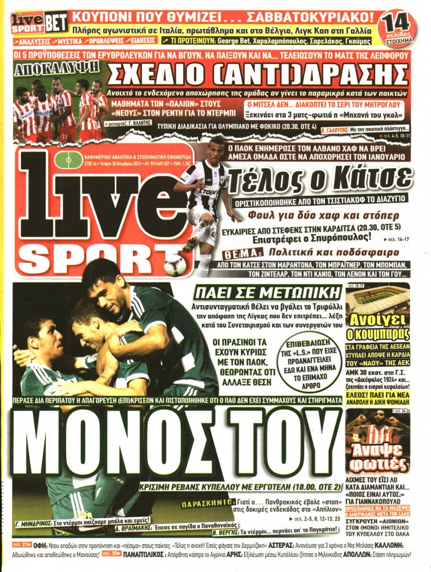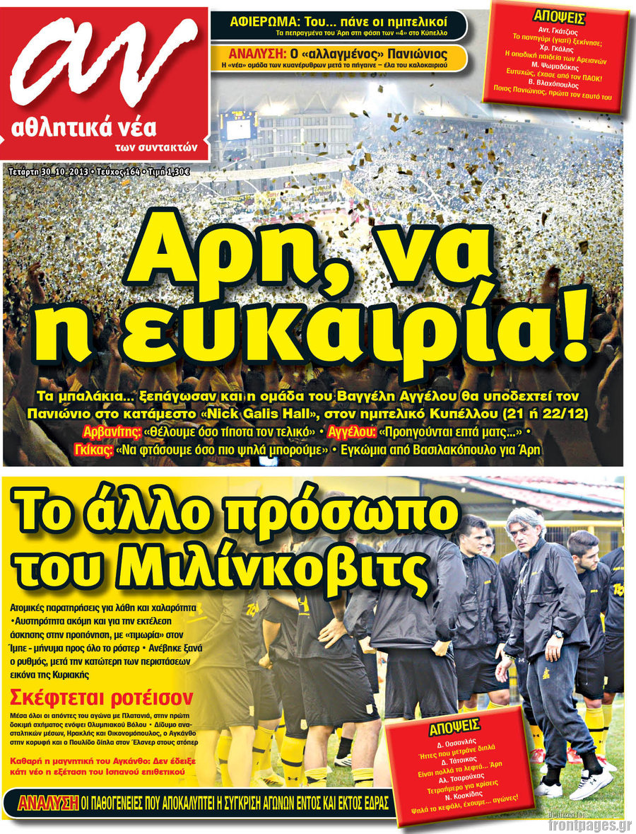 Οι αθλητικές εφημερίδες Enikos Newsroom 08:56, Τετάρτη 30 Οκτωβρίου 2013 Media Οι αθλητικές εφημερίδες Διαβάστε τα πρωτοσέλιδα των αθλητικών εφημερίδων: ΑΘΛΗΤΙΚΕΣ ΕΦΗΜΕΡΙΔΕΣ ΕΦΗΜΕΡΙΔΕΣ ΠΡΩΤΟΣΕΛΙΔΑ Μοιράσου το: σχολίασε κι εσύ (0 σχόλια) Ακολουθήστε το enikos.gr στο Google News και μάθετε πρώτοι όλες τις ειδήσεις Δείτε όλες τις τελευταίες ειδήσεις από την Ελλάδα και τον Κόσμο στο enikos.gr Ειδήσεις Ροή Ειδήσεων 1 ώρα πριν Δημοσκόπηση Alco: Στο 23,6% η ΝΔ, στο 11,6% το ΠΑΣΟΚ – Η άποψη των πολιτών για αγρότες, εκλογές και Τσίπρα 5 ώρες πριν Κυψέλη: Για πρώτη ημέρα βρισκόταν στο σχολείο η 16χρονη που επιτέθηκε με μαχαίρι στην 14χρονη – Τι αναφέρουν μαρτυρίες μαθητών για το επεισόδιο 2 ώρες πριν Φοινικούντα: Αρνούνται τις κατηγορίες οι 2 συλληφθέντες – «Θέλω να συμβάλλω στην αποκάλυψη της αλήθειας» λέει ο ανιψιός του θύματος 3 ώρες πριν Κρήτη: Εντοπίστηκε στίγμα του 33χρονου γιατρού που έχει εξαφανιστεί μέσω νέας τεχνολογίας που εφαρμόζεται για πρώτη φορά στην Ελλάδα 4 ώρες πριν Ρομπ και Μισέλ Ράινερ: Συνελήφθη ο γιος τους ως ύποπτος για την δολοφονία τους 6 ώρες πριν Τα 3 ζώδια που θα έχουν τύχη «βουνό» έως τις 21 Δεκεμβρίου – «Η ανατροπή που περιμένετε πλησιάζει» 3 ώρες πριν Γάμος: Αν ένας άνδρας νιώθει βαθιά μοναξιά, θα αρχίσει να κάνει αυτά τα 11 πράγματα μέσα στο σπίτι 2 ώρες πριν Πώς να μην μαραίνονται γρήγορα τα κομμένα λουλούδια: Το λάθος στην τοποθέτηση του βάζου που πρέπει να αποφεύγετε 7 ώρες πριν Επιστήμονες του CERN έλυσαν ένα μυστήριο δεκαετιών της σωματιδιακής φυσικής – Τι ανακάλυψαν 6 λεπτά πριν Βάσω Λασκαράκη: «Χρόνια πολλά, αγάπη μου σε ευχαριστώ που κάνεις την ζωή μου πιο ωραία» – Οι ευχές στον Λευτέρη Σουλτάτο για την γιορτή του 12 λεπτά πριν Μερτς: Οι συνομιλίες για την Ουκρανία είναι «ίσως η μεγαλύτερη διπλωματική δυναμική» – Ζελένσκι: «Επώδυνο το εδαφικό» 17 λεπτά πριν Κόντρα Θεοδωρικάκου – Φάμελλου στη Βουλή – Τα «πυρά» της Κωνσταντοπούλου 22 λεπτά πριν Πιερρακάκης: Σύντομα η Ελλάδα θα έχει περάσει στην πρώτη πεντάδα της Ευρώπης στην ψηφιακή πολιτική – Έχουμε πετύχει έναν άθλο 27 λεπτά πριν Νέα σύλληψη στο «Ελ. Βενιζέλος» για ναρκωτικά – Χειροπέδες σε 23χρονο που είχε 18,5 κιλά κάνναβης στη βαλίτσα του ENIKOS NETWORK Πότε το χρόνιο ροχαλητό να αποτελέσει ένδειξη κινδύνου για την καρδιά; Τι λένε οι ειδικοί Μάριος Θεμιστοκλέους: Το ΕΣΥ ενισχύεται, εκσυγχρονίζεται, αλλάζει ΟΠΕΚΑ: Ποιο επίδομα αυξάνεται από τον επόμενο μήνα και γιατί Ευλογιά αιγοπροβάτων: Έως το τέλος του έτους η οικονομική στήριξη 187 εκατ. ευρώ σε κτηνοτρόφους – Όλα όσα είπε ο Πρωτοψάλτ... Σύγχρονος Νοστράδαμος: Προειδοποιεί για «μεγάλο γεγονός» τους επόμενους μήνες που θα συγκλονίσει τη Βρετανία και τον κόσμο Τεστ παρατηρητικότητας: Μπορείτε να βρείτε τις 3 διαφορές στις εικόνες με έναν πιγκουίνο σε 14 δευτερόλεπτα περισσότερα 19:46 , Δευτέρα 15 Δεκεμβρίου 2025 Άγιος έρωτας: Η Χριστίνα λέει την αλήθεια στον Αντρέα Ο Βασίλης δέχεται επίθεση από τους συμμαθητές του, η Αναστασία είναι συντετριμμένη με την απώλ... 18:45 , Δευτέρα 15 Δεκεμβρίου 2025 Συνέδριο «Ελληνικός Τουρισμός 2025, Μια εθνική υπόθεση!» – «Ο Θαλάσσιος Πυλώνας ως Ενιαία Στρατηγική: Συνέργειες σε Λιμάνια, Μαρίνες, Ακτοπλοΐα, Κρουαζιέρα και Yachting» Στο πλαίσιο της τέταρτης και τελευταίας ενότητας του 7ου συνεδρίου «Ελληνικός Τουρισμός 2025, ... 18:13 , Δευτέρα 15 Δεκεμβρίου 2025 Συνέδριο «Ελληνικός Τουρισμός 2025, Μια εθνική υπόθεση!» – Κικίλιας: «Μεγάλα asset της Ελλάδας η ν