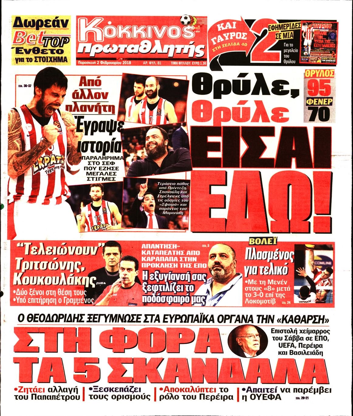 Οι αθλητικές εφημερίδες 2/2/2018 Enikos Newsroom 07:22, Παρασκευή 02 Φεβρουαρίου 2018 Media Διαβάστε τα σημερινά πρωτοσέλιδα των αθλητικών εφημερίδων: ΑΘΛΗΤΙΚΕΣ ΕΦΗΜΕΡΙΔΕΣ ΠΡΩΤΟΣΕΛΙΔΑ Μοιράσου το: σχολίασε κι εσύ (0 σχόλια) Ακολουθήστε το enikos.gr στο Google News και μάθετε πρώτοι όλες τις ειδήσεις Δείτε όλες τις τελευταίες ειδήσεις από την Ελλάδα και τον Κόσμο στο enikos.gr Ειδήσεις Ροή Ειδήσεων 3 ώρες πριν Χριστούγεννα στα μπλόκα: Επιμένουν στις κινητοποιήσεις τους οι αγρότες – Ανοίγουν τα διόδια το Σαββατοκύριακο 4 ώρες πριν Ουκρανία: Η άνευ προηγουμένου επίθεση σε ρωσικό τάνκερ στη Μεσόγειο και το μήνυμα προς στον Πούτιν – Το «μακρύ χέρι» του Κιέβου 3 ώρες πριν Πούτιν: Τα μηνύματα σε Ευρώπη και ΝΑΤΟ από το μαραθώνιο «σόου» του – Η απαίτηση για «σεβασμό» και η ειρήνη «με τους όρους» της Μόσχας 4 ώρες πριν Τραμπ: Δεν αποκλείει την πιθανότητα ενός πολέμου στη Βενεζουέλα – «Ο Μαδούρο ξέρει καλύτερα από τον καθένα τι ακριβώς θέλω» 4 ώρες πριν Συνεχίζει να προκαλεί ο Μίτσκοσκι: «Για μένα το όνομα Μακεδονία είναι ιερό» 3 ώρες πριν Ανακαλύφθηκαν αρχαία χρυσά νομίσματα 2.200 ετών που απεικονίζουν τον θεό Απόλλωνα – Η άγνωστη σύνδεση με τον Φίλιππο Β΄ της Μακεδονίας 4 ώρες πριν Ύπνος: Μια κρυφή κατάσταση του εγκεφάλου πριν από τον ύπνο μπορεί να είναι το “κλειδί” για υψηλή ευφυΐα και δημιουργικότητα 5 ώρες πριν Αριθμολογία: Οι άνθρωποι που έχουν γεννηθεί αυτές τις 4 ημερομηνίες, συχνά παρεξηγούνται – «Η καλοσύνη τους κρύβει τεράστια δύναμη» 6 ώρες πριν Ξεχάστε το καθάρισμα το Σαββατοκύριακο: Ο «κανόνας των 20 λεπτών» που θα σας λύσει τα χέρια 11 λεπτά πριν Πρόταση γάμου στο ΣΕΦ κατά την διάρκεια του αγώνα Ολυμπιακός-Βιλερμπάν – Δείτε βίντεο 26 λεπτά πριν Euroleague: Επέστρεψε στις νίκες ο Ολυμπιακός, πήρε την ματσάρα της χρονιάς η Μπάρτσα – Τα αποτελέσματα και η βαθμολογία 41 λεπτά πριν Συρία: Μαζικά πλήγματα των ΗΠΑ σε θέσεις του Ισλαμικού Κράτους – Χέγκσεθ: «Δεν είναι αρχή πολέμου, είναι μια δήλωση εκδίκησης» για το θάνατο των στρατιωτών μας 53 λεπτά πριν Ουκρανία: Ολοκληρώθηκαν οι συνομιλίες με τους Αμερικανούς κι Ευρωπαίους διαπραγματευτές 1 ώρα πριν Μπαρτσελόνα – Μπασκόνια 134-124: Οι «μπλαουγκράνα» πήραν το ματς της χρονιάς ύστερα από τρεις παρατάσεις ENIKOS NETWORK Το ΕΚΑΒ τιμήθηκε από την Ακαδημία Αθηνών για τα 40 χρόνια προσφοράς του Έχετε πραγματικά μεγάλη καρδιά; 10 χαρακτηριστικά όσων έχουν καλοσύνη Αναστολή μέτρων αναγκαστικής εκτέλεσης για κτηνοτρόφους που πλήττονται από την ευλογιά των αιγοπροβάτων Πλήρης επάρκεια προϊόντων στις λαϊκές της Αττικής, παρά τις αγροτικές κινητοποιήσεις – Τι απαντούν οι πωλητές Χαρτογραφώντας το «σημείο χωρίς επιστροφή»: Για πρώτη φορά αποκαλύπτεται με λεπτομέρεια το ακανθώδες όριο της ατμόσφαιρας τ... Η Google καταργεί τη λειτουργία «dark web report» – Πώς θα μπορούν οι χρήστες να διαγράφουν τα δεδομένα τους περισσότερα 22:42 , Παρασκευή 19 Δεκεμβρίου 2025 Γιώργος Γιαννόπουλος για “Το σόι σου”: “Είναι ευτυχία και ευλογία αυτή η σειρά” «Είναι ευτυχία και ευλογία η συγκυρία αυτής της σειράς», θα πει ο Γιώργος Γιαννόπουλος -ο αγαπ... 20:37 , Παρασκευή 19 Δεκεμβρίου 2025 Don’t Forget The Lyrics: Η Έλλη Κοκκίνου υποδέχεται 4 παίκτες που θα κάνουν τα πάντα για να μη χάσουν ούτε… μισή λέξη από τους στίχους Το «Don’t Forget The Lyrics» επιστρέφει απόψε, Παρασκευή 19 Δεκεμβρίου, στις 21:00 με νέο επει... 19:31 , Παρασκευή 19 Δεκεμβρίου 2025 GNTM: Απόψε ο μεγάλος τελικός για τους 4 φιναλίστ Έπειτα από μήν