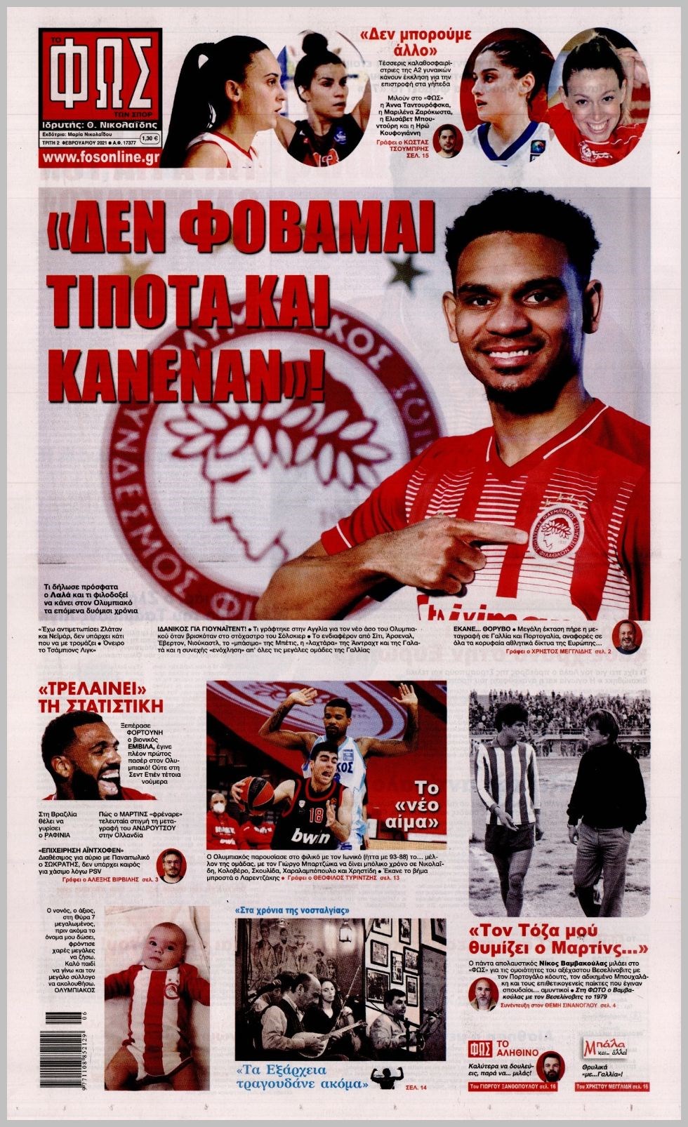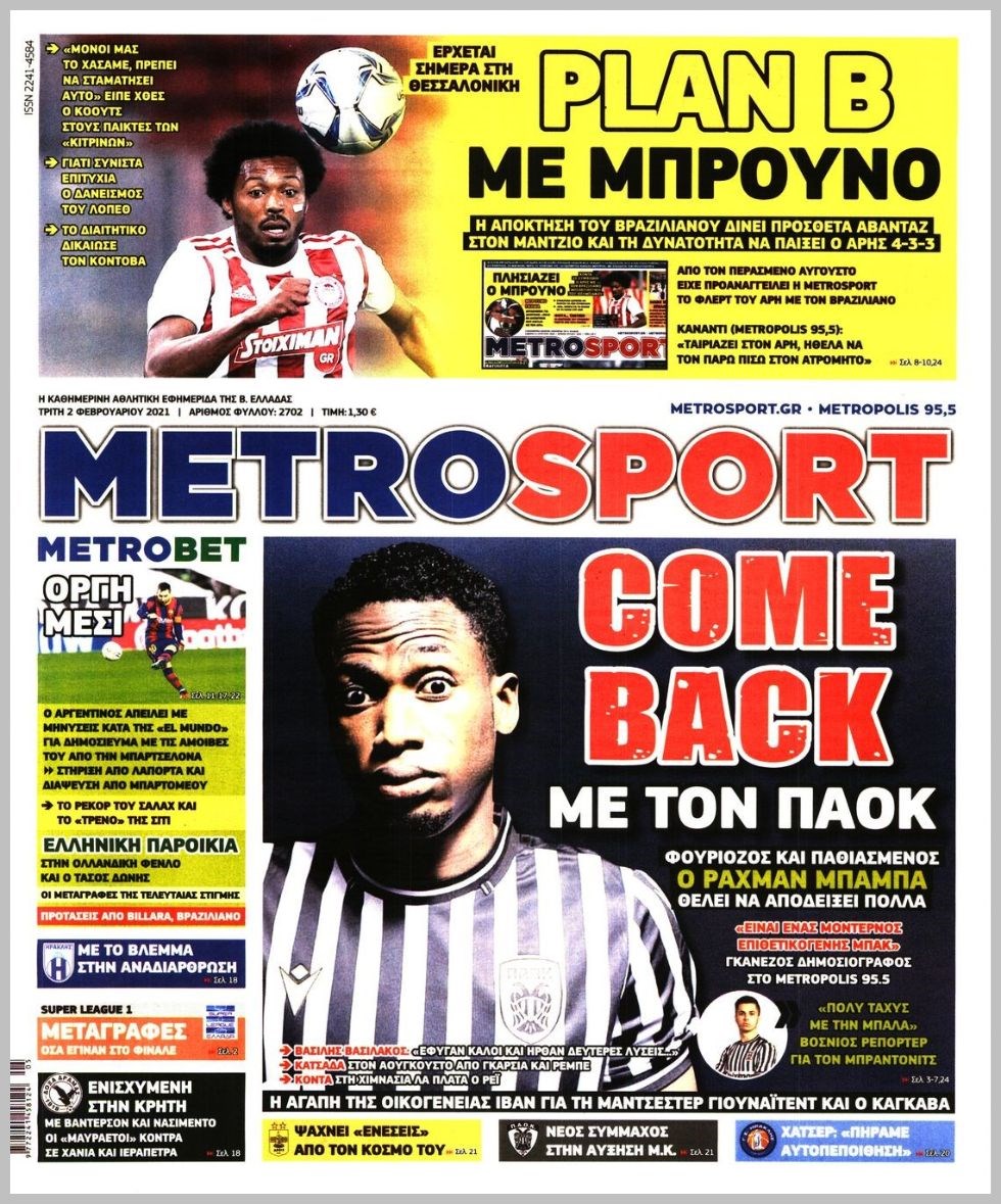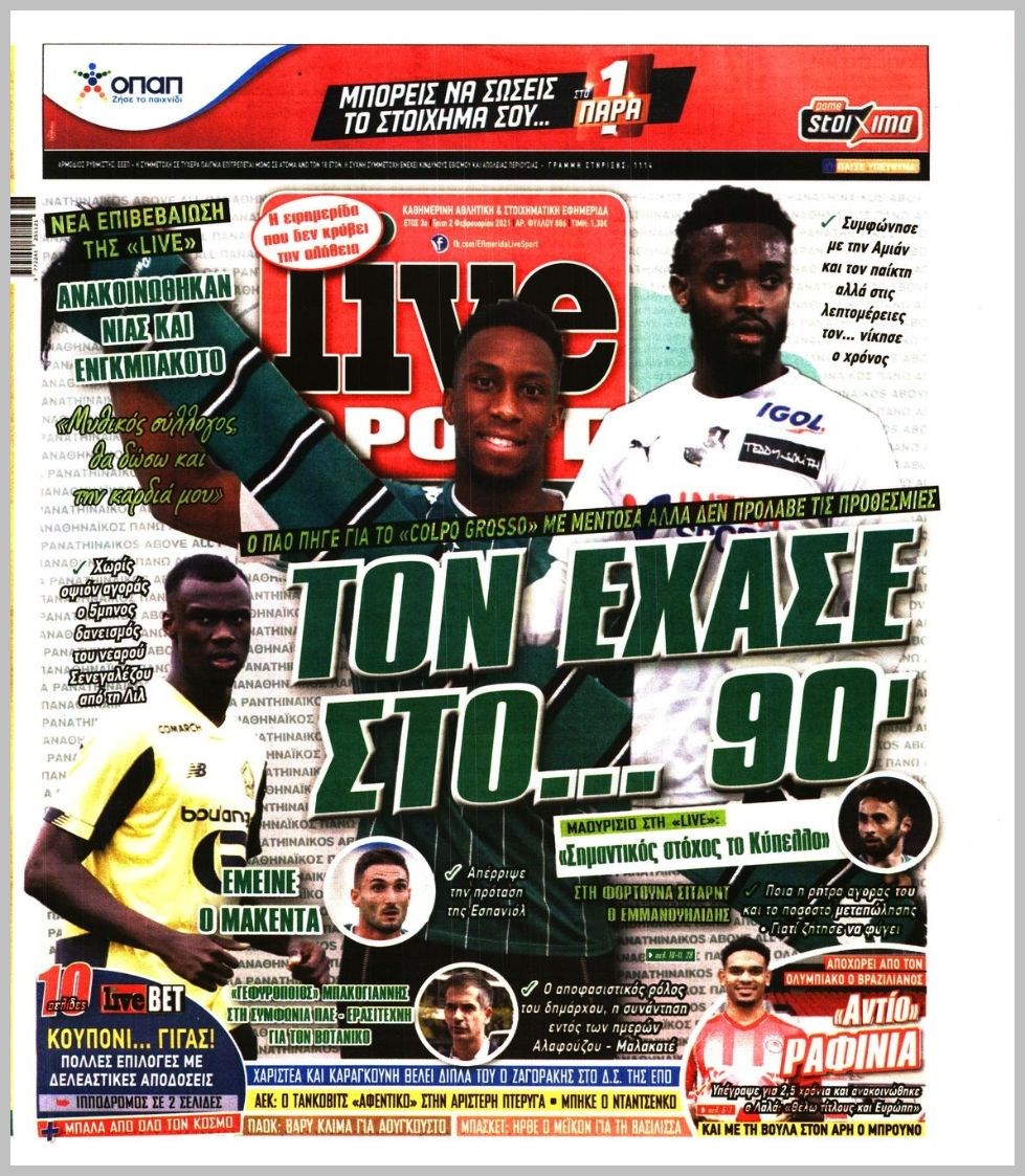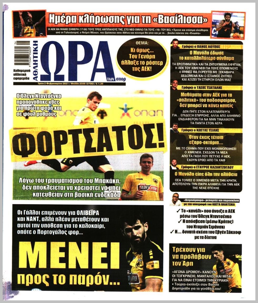 Οι αθλητικές εφημερίδες 2/2/2021 Διονύσης Νίκκας 06:48, Τρίτη 02 Φεβρουαρίου 2021 Media Διαβάστε τα πρωτοσέλιδα των αθλητικών εφημερίδων… ΑΘΛΗΤΙΚΕΣ ΕΦΗΜΕΡΙΔΕΣ Μοιράσου το: σχολίασε κι εσύ (0 σχόλια) Ακολουθήστε το enikos.gr στο Google News και μάθετε πρώτοι όλες τις ειδήσεις Δείτε όλες τις τελευταίες ειδήσεις από την Ελλάδα και τον Κόσμο στο enikos.gr Ειδήσεις Ροή Ειδήσεων 4 ώρες πριν Από το Ορμένιο ως τα Μάλγαρα κι από τη Σιάτιστα μέχρι τη Νίκαια: Μπλόκα σε όλη την Ελλάδα – Το Σάββατο ανοίγουν τα διόδια οι αγρότες 1 ώρα πριν Εμπλοκή και αερομαχίες με οπλισμένα τουρκικά F-16 στο Αιγαίο 3 ώρες πριν Αττική: Θρίλερ με νεκρό βρέφος 5 μηνών – Κοιμόταν στο ίδιο κρεβάτι με τους γονείς του 1 ώρα πριν Πούτιν: «Ναι, είμαι ερωτευμένος» – Βίντεο από τη σπάνια προσωπική παραδοχή του 3 ώρες πριν Μεσόγειος: Η διαδρομή του ρωσικού τάνκερ «Qendil» και η στοχευμένη επίθεση της Ουκρανίας με drone – Ο Πούτιν προειδοποίησε για αντίποινα 5 ώρες πριν Τα 5 ζώδια που ευνοούνται στην ερωτική ζωή τους την επόμενη εβδομάδα – «Η ενέργεια του Αιγόκερου φέρνει αγάπη και σταθερότητα» 6 ώρες πριν Αυτό το έξυπνο μαθηματικό κόλπο θα μπορούσε να αλλάξει τον τρόπο με τον οποίο οι επιστήμονες μελετούν τους σεισμούς 2 ώρες πριν Μήπως έχετε χάσει τον εαυτό σας στη σχέση σας; 7 «αθόρυβες» υποχωρήσεις που μάλλον κάνατε, χωρίς να το συνειδητοποιήσετε 4 ώρες πριν Κουίζ για την παλιά Αθήνα: Αναγνωρίζετε την περιοχή; Έχετε περάσει 100% από εκεί 8 λεπτά πριν Μπαράκ Ομπάμα: Τα βιβλία, οι ταινίες και τα τραγούδια που ξεχώρισε το 2025 – Πλήρης λίστα 12 λεπτά πριν Don’t Forget The Lyrics: Η Έλλη Κοκκίνου υποδέχεται 4 παίκτες που θα κάνουν τα πάντα για να μη χάσουν ούτε… μισή λέξη από τους στίχους 18 λεπτά πριν Πλεύρης στον ΑΝΤ1: Η βασική πολιτική που ψηφίστηκε από τους υπουργούς Μετανάστευσης είναι η δημιουργία κέντρων κράτησης μεταναστών στην Αφρική – ΒΙΝΤΕΟ 23 λεπτά πριν Η εξομολόγηση της Νίκης Σερέτη: «Δεν κρύβω ότι ήταν πάρα πολύ δύσκολο όλο αυτό που βίωσα» 28 λεπτά πριν Αγρότες: Κλειστό ξανά το ρεύμα εισόδου στα Μάλγαρα – Άνοιξαν τον κόμβο της Χαλκηδόνας ENIKOS NETWORK Έχετε πραγματικά μεγάλη καρδιά; 10 χαρακτηριστικά όσων έχουν καλοσύνη «Η σούπερ» γρίπη εξαπλώνεται στην Ευρώπη-Στοιχεία από το ECDC για την αποτελεσματικότητα του εμβολίου Επίδομα παιδιού: Πότε ανοίγει ξανά η πλατφόρμα για τις αιτήσεις Προκήρυξη ΑΣΕΠ για 397 μόνιμες προσλήψεις στο Δημόσιο: Βγήκαν τα προσωρινά αποτελέσματα – Πότε αρχίζει η υποβολή ενστάσεων Χαρτογραφώντας το «σημείο χωρίς επιστροφή»: Για πρώτη φορά αποκαλύπτεται με λεπτομέρεια το ακανθώδες όριο της ατμόσφαιρας τ... Η Google καταργεί τη λειτουργία «dark web report» – Πώς θα μπορούν οι χρήστες να διαγράφουν τα δεδομένα τους περισσότερα 20:37 , Παρασκευή 19 Δεκεμβρίου 2025 Don’t Forget The Lyrics: Η Έλλη Κοκκίνου υποδέχεται 4 παίκτες που θα κάνουν τα πάντα για να μη χάσουν ούτε… μισή λέξη από τους στίχους Το «Don’t Forget The Lyrics» επιστρέφει απόψε, Παρασκευή 19 Δεκεμβρίου, στις 21:00 με νέο επει... 19:31 , Παρασκευή 19 Δεκεμβρίου 2025 GNTM: Απόψε ο μεγάλος τελικός για τους 4 φιναλίστ Έπειτα από μήνες γεμάτους μόδα, δημιουργία και έντονες αναμετρήσεις, το GNTM 2025 κορυφώνεται,... 18:11 , Παρασκευή 19 Δεκεμβρίου 2025 Το σόι σου: Ο Άρης έρχεται στην Ελλάδα για τις γιορτές των Χριστουγέννων – Τι θα δούμε στο αποψινό εορταστικό επεισόδιο Ένα απολαυστικό, εορταστικό επεισόδιο της σειράς “Το σόι σου”, γεμάτο ευτράπελα αλ... 15:15 , Παρασκευή 19 Δεκεμβρίου 2025 Την Κυριακή με τη Realnews: Ό