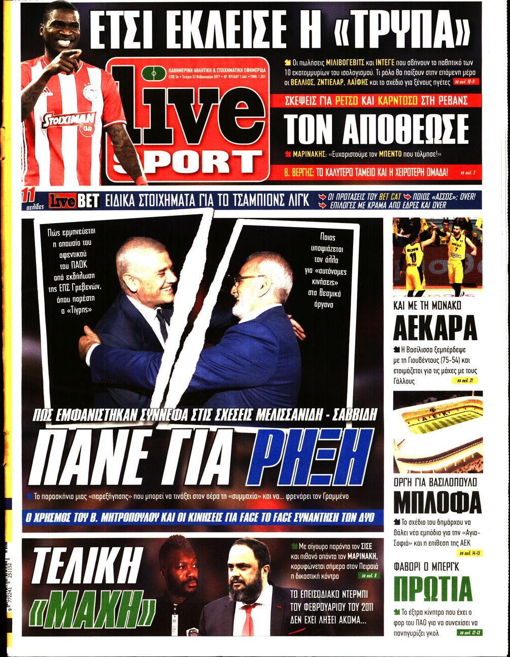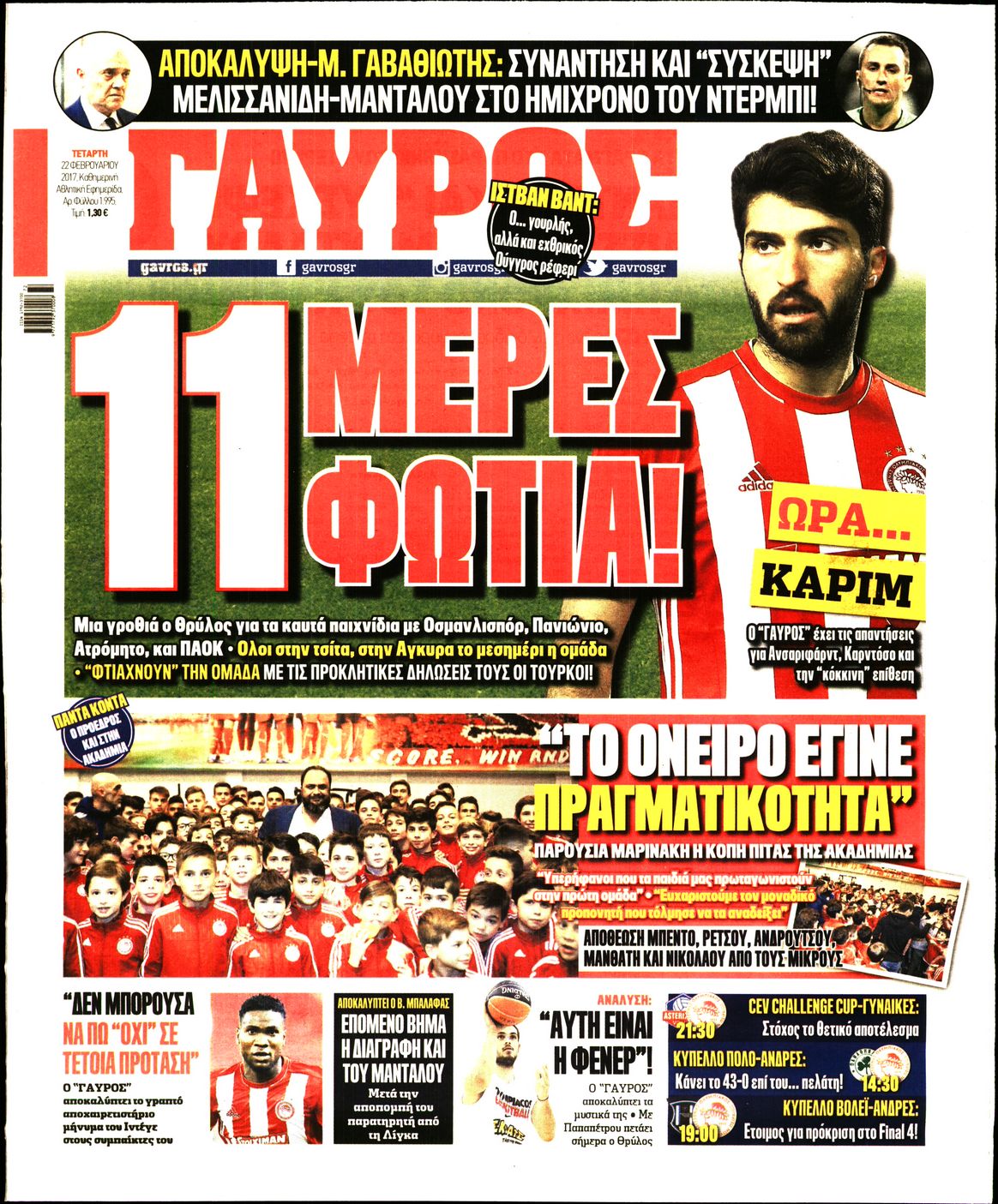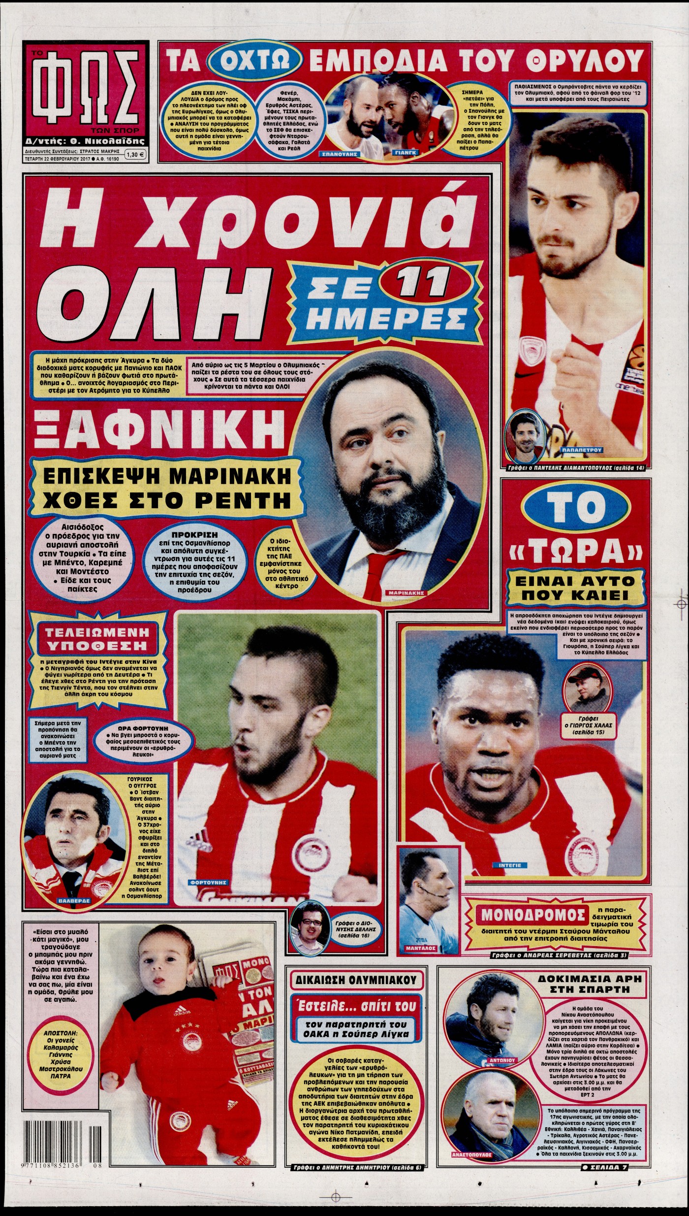 Οι αθλητικές εφημερίδες 22/2/2017 Enikos Newsroom 07:07, Τετάρτη 22 Φεβρουαρίου 2017 Media Διαβάστε τα σημερινά πρωτοσέλιδα των αθλητικών εφημερίδων: ΑΘΛΗΤΙΚΕΣ ΕΦΗΜΕΡΙΔΕΣ ΠΡΩΤΟΣΕΛΙΔΑ Μοιράσου το: σχολίασε κι εσύ (0 σχόλια) Ακολουθήστε το enikos.gr στο Google News και μάθετε πρώτοι όλες τις ειδήσεις Δείτε όλες τις τελευταίες ειδήσεις από την Ελλάδα και τον Κόσμο στο enikos.gr Ειδήσεις Ροή Ειδήσεων 4 ώρες πριν Χριστούγεννα στα μπλόκα: Επιμένουν στις κινητοποιήσεις τους οι αγρότες – Ανοίγουν τα διόδια το Σαββατοκύριακο 4 ώρες πριν Ουκρανία: Η άνευ προηγουμένου επίθεση σε ρωσικό τάνκερ στη Μεσόγειο και το μήνυμα προς στον Πούτιν – Το «μακρύ χέρι» του Κιέβου 3 ώρες πριν Πούτιν: Τα μηνύματα σε Ευρώπη και ΝΑΤΟ από το μαραθώνιο «σόου» του – Η απαίτηση για «σεβασμό» και η ειρήνη «με τους όρους» της Μόσχας 4 ώρες πριν Τραμπ: Δεν αποκλείει την πιθανότητα ενός πολέμου στη Βενεζουέλα – «Ο Μαδούρο ξέρει καλύτερα από τον καθένα τι ακριβώς θέλω» 5 ώρες πριν Συνεχίζει να προκαλεί ο Μίτσκοσκι: «Για μένα το όνομα Μακεδονία είναι ιερό» 3 ώρες πριν Ανακαλύφθηκαν αρχαία χρυσά νομίσματα 2.200 ετών που απεικονίζουν τον θεό Απόλλωνα – Η άγνωστη σύνδεση με τον Φίλιππο Β΄ της Μακεδονίας 4 ώρες πριν Ύπνος: Μια κρυφή κατάσταση του εγκεφάλου πριν από τον ύπνο μπορεί να είναι το “κλειδί” για υψηλή ευφυΐα και δημιουργικότητα 5 ώρες πριν Αριθμολογία: Οι άνθρωποι που έχουν γεννηθεί αυτές τις 4 ημερομηνίες, συχνά παρεξηγούνται – «Η καλοσύνη τους κρύβει τεράστια δύναμη» 6 ώρες πριν Ξεχάστε το καθάρισμα το Σαββατοκύριακο: Ο «κανόνας των 20 λεπτών» που θα σας λύσει τα χέρια 13 λεπτά πριν Εξάρχεια: Ένταση με μολότοφ, χημικά και κρότου λάμψης 29 λεπτά πριν ΗΠΑ: Τραγωδία στην Αλαμπάμα – Σκότωσε την δημοσιογράφο σύζυγό του και αυτοκτόνησε μπροστά στον 3χρονο γιο τους 43 λεπτά πριν Πρόταση γάμου στο ΣΕΦ κατά την διάρκεια του αγώνα Ολυμπιακός-Βιλερμπάν – Δείτε βίντεο 58 λεπτά πριν Euroleague: Επέστρεψε στις νίκες ο Ολυμπιακός, πήρε την ματσάρα της χρονιάς η Μπάρτσα – Τα αποτελέσματα και η βαθμολογία 1 ώρα πριν Συρία: Μαζικά πλήγματα των ΗΠΑ σε θέσεις του Ισλαμικού Κράτους – Χέγκσεθ: «Δεν είναι αρχή πολέμου, είναι μια δήλωση εκδίκησης» για το θάνατο των στρατιωτών μας ENIKOS NETWORK Το ΕΚΑΒ τιμήθηκε από την Ακαδημία Αθηνών για τα 40 χρόνια προσφοράς του Έχετε πραγματικά μεγάλη καρδιά; 10 χαρακτηριστικά όσων έχουν καλοσύνη Αναστολή μέτρων αναγκαστικής εκτέλεσης για κτηνοτρόφους που πλήττονται από την ευλογιά των αιγοπροβάτων Πλήρης επάρκεια προϊόντων στις λαϊκές της Αττικής, παρά τις αγροτικές κινητοποιήσεις – Τι απαντούν οι πωλητές Χαρτογραφώντας το «σημείο χωρίς επιστροφή»: Για πρώτη φορά αποκαλύπτεται με λεπτομέρεια το ακανθώδες όριο της ατμόσφαιρας τ... Η Google καταργεί τη λειτουργία «dark web report» – Πώς θα μπορούν οι χρήστες να διαγράφουν τα δεδομένα τους περισσότερα 22:42 , Παρασκευή 19 Δεκεμβρίου 2025 Γιώργος Γιαννόπουλος για “Το σόι σου”: “Είναι ευτυχία και ευλογία αυτή η σειρά” «Είναι ευτυχία και ευλογία η συγκυρία αυτής της σειράς», θα πει ο Γιώργος Γιαννόπουλος -ο αγαπ... 20:37 , Παρασκευή 19 Δεκεμβρίου 2025 Don’t Forget The Lyrics: Η Έλλη Κοκκίνου υποδέχεται 4 παίκτες που θα κάνουν τα πάντα για να μη χάσουν ούτε… μισή λέξη από τους στίχους Το «Don’t Forget The Lyrics» επιστρέφει απόψε, Παρασκευή 19 Δεκεμβρίου, στις 21:00 με νέο επει... 19:31 , Παρασκευή 19 Δεκεμβρίου 2025 GNTM: Απόψε ο μεγάλος τελικός για τους 4 φιναλίστ Έπειτα από μήνες γεμάτους μόδα, δημιουργία κ