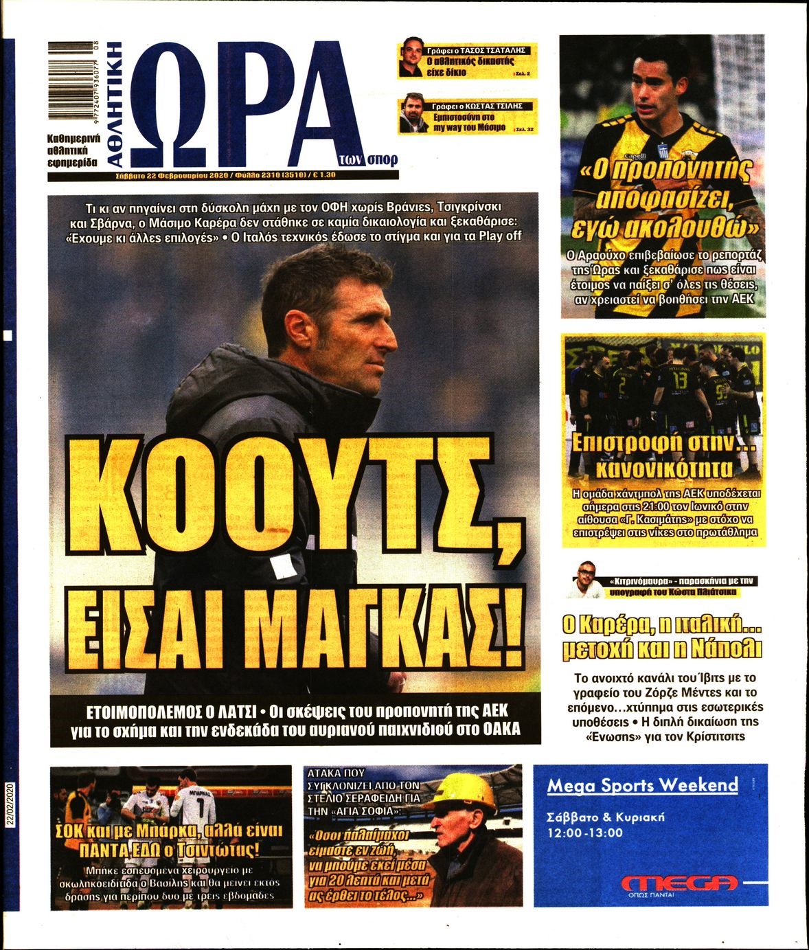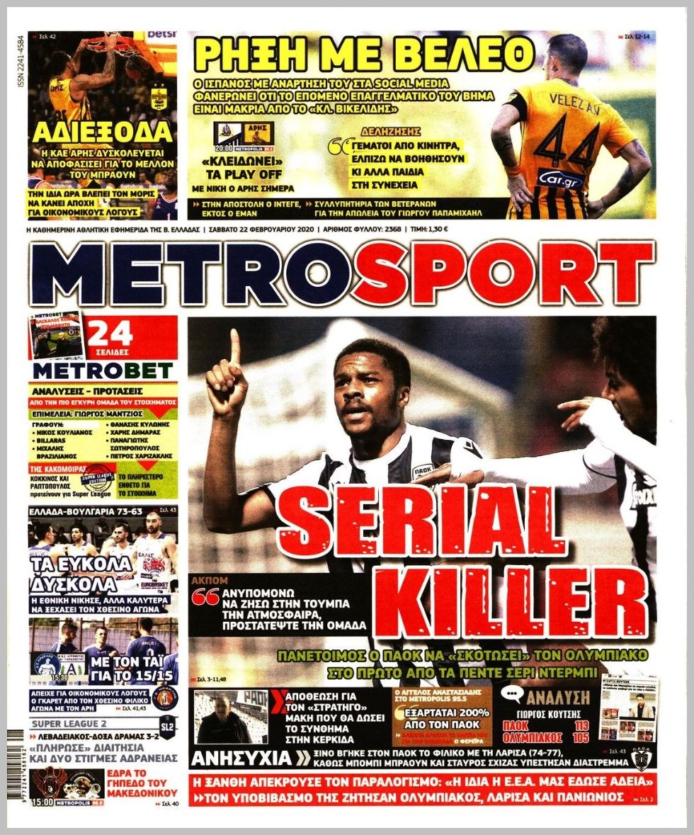 Οι αθλητικές εφημερίδες 22/2/2020 Διονύσης Νίκκας 07:55, Σάββατο 22 Φεβρουαρίου 2020 Media Διαβάστε τα πρωτοσέλιδα των αθλητικών εφημερίδων… ΑΘΛΗΤΙΚΕΣ ΕΦΗΜΕΡΙΔΕΣ ΠΡΩΤΟΣΕΛΙΔΑ Μοιράσου το: σχολίασε κι εσύ (0 σχόλια) Ακολουθήστε το enikos.gr στο Google News και μάθετε πρώτοι όλες τις ειδήσεις Δείτε όλες τις τελευταίες ειδήσεις από την Ελλάδα και τον Κόσμο στο enikos.gr Ειδήσεις Ροή Ειδήσεων 9 ώρες πριν Χριστούγεννα στα μπλόκα: Επιμένουν στις κινητοποιήσεις τους οι αγρότες – Ανοίγουν τα διόδια το Σαββατοκύριακο 2 ώρες πριν Σαρωτικοί οι έλεγχοι στους δρόμους ενόψει εορτών – Μπλόκα της τροχαίας σε κεντρικές αρτηρίες της Αττικής 9 ώρες πριν Πούτιν: Τα μηνύματα σε Ευρώπη και ΝΑΤΟ από το μαραθώνιο «σόου» του – Η απαίτηση για «σεβασμό» και η ειρήνη «με τους όρους» της Μόσχας 8 ώρες πριν ΗΠΑ: Η κυβέρνηση του Ντόναλντ Τραμπ άρχισε να δημοσιοποιεί τα αρχεία Έπσταϊν 8 ώρες πριν Άνω Λιόσια: Πυροβολισμοί σε επιχείρηση με χαλιά – Εντοπίστηκαν 10 κάλυκες 2 ώρες πριν Αυγά: Πόσα μπορείτε να τρώτε την ημέρα με ασφάλεια για μέγιστη πρόσληψη πρωτεΐνης 2 ώρες πριν Τα ζώδια σήμερα, Σάββατο 20 Δεκεμβρίου: Παρθένοι, το σύμπαν σας δίνει το κλειδί 9 ώρες πριν Ανακαλύφθηκαν αρχαία χρυσά νομίσματα 2.200 ετών που απεικονίζουν τον θεό Απόλλωνα – Η άγνωστη σύνδεση με τον Φίλιππο Β΄ της Μακεδονίας 2 ώρες πριν Οπτική ψευδαίσθηση: Μόνο αν είσαι ο Σέρλοκ Χολμς θα βρεις τον αριθμό «87» σε 7 δευτερόλεπτα 3 λεπτά πριν Καιρός: Αλλαγή σκηνικού σήμερα με βροχές και πτώση της θερμοκρασίας – Οι προβλέψεις των μετεωρολόγων για τα Χριστούγεννα 10 λεπτά πριν ΟΝΕΧ – MEGATUGS: Ξεκίνησε η ναυπήγηση ρυμουλκών στην Ελλάδα – Προθάλαμος πολεμικών πλοίων – Δείτε φωτογραφίες και βίντεο 19 λεπτά πριν Φοινικούντα: Σήμερα απολογείται ο 30χρονος γιος γνωστού επιχειρηματία της Πλάκας 27 λεπτά πριν Οι αθλητικές μεταδόσεις 20/12/2025 36 λεπτά πριν Εορτολόγιο: Ποιοι γιορτάζουν σήμερα 20 Δεκεμβρίου ENIKOS NETWORK Πρέπει να αποδέχεστε ή να απορρίπτετε όλα τα cookies; Ένας ειδικός εξηγεί Η αγαπημένη λιχουδιά των πόνι που μπορεί να ενισχύσει όραση, εγκέφαλο και ανοσοποιητικό Αναστολή μέτρων αναγκαστικής εκτέλεσης για κτηνοτρόφους που πλήττονται από την ευλογιά των αιγοπροβάτων Πλήρης επάρκεια προϊόντων στις λαϊκές της Αττικής, παρά τις αγροτικές κινητοποιήσεις – Τι απαντούν οι πωλητές Χαρτογραφώντας το «σημείο χωρίς επιστροφή»: Για πρώτη φορά αποκαλύπτεται με λεπτομέρεια το ακανθώδες όριο της ατμόσφαιρας τ... Η Google καταργεί τη λειτουργία «dark web report» – Πώς θα μπορούν οι χρήστες να διαγράφουν τα δεδομένα τους περισσότερα 05:48 , Σάββατο 20 Δεκεμβρίου 2025 Οι οικονομικές εφημερίδες 20/12/2025 Διαβάστε τα πρωτοσέλιδα από τις οικονομικές εφημερίδες, σήμερα 20/12/2025. 05:43 , Σάββατο 20 Δεκεμβρίου 2025 Οι αθλητικές εφημερίδες 20/12/2025 Διαβάστε τα πρωτοσέλιδα από τις αθλητικές εφημερίδες, σήμερα 20/12/2025. 05:38 , Σάββατο 20 Δεκεμβρίου 2025 Οι πολιτικές εφημερίδες 20/12/2025 Διαβάστε τα πρωτοσέλιδα από τις πολιτικές εφημερίδες, σήμερα 20/12/2025. 04:20 , Σάββατο 20 Δεκεμβρίου 2025 Αγγελική Νικολούλη: Τα συλλυπητήρια για την απώλεια της Ειρήνης Μαρινάκη Τα συλληπητήρια στον πρόεδρο του Mega, τον Βαγγέλη Μαρινάκη, για την απώλεια της μητέρας του Ε... ΤΕΛΕΥΤΑΙΕΣ ΕΙΔΗΣΕΙΣ 10 λεπτά πριν ΟΝΕΧ – MEGATUGS: Ξεκίνησε η ναυπήγηση ρυμουλκών στην... 19 λεπτά πριν Φοινικούντα: Σήμερα απολογείται ο 30χρονος γιος... 27 λεπτά πριν Οι αθλητικές μεταδόσεις 20/12/2025 36 λεπτά πριν Εορτολόγιο: Ποιοι γιορτάζουν σήμερα 20 Δεκεμβρίου 44 λεπτά