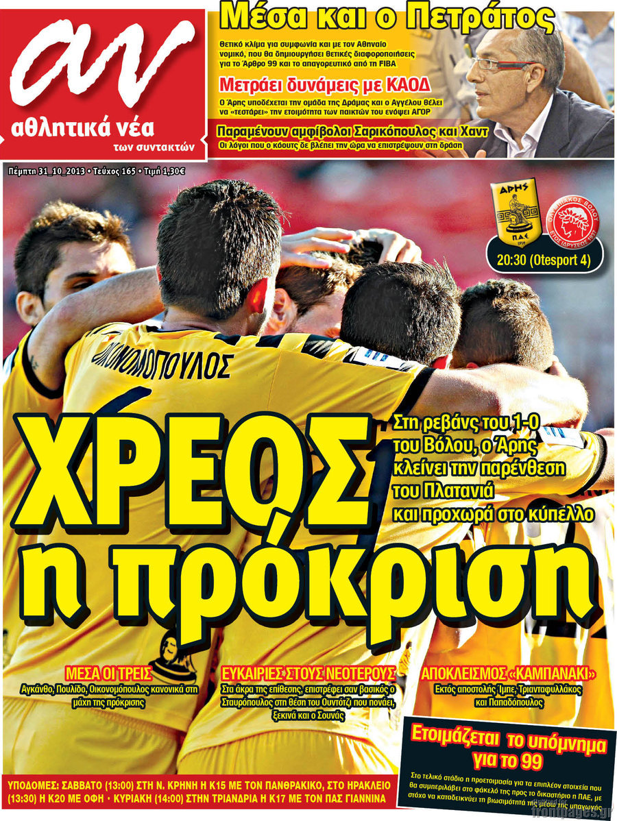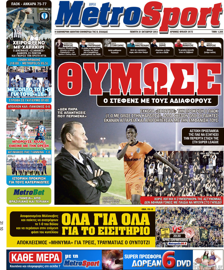 Οι αθλητικές εφημερίδες Enikos Newsroom 08:35, Πέμπτη 31 Οκτωβρίου 2013 Media Οι αθλητικές εφημερίδες Διαβάστε τα πρωτοσέλιδα των αθλητικών εφημερίδων: ΑΘΛΗΤΙΚΕΣ ΕΦΗΜΕΡΙΔΕΣ ΕΦΗΜΕΡΙΔΕΣ ΠΡΩΤΟΣΕΛΙΔΑ Μοιράσου το: σχολίασε κι εσύ (0 σχόλια) Ακολουθήστε το enikos.gr στο Google News και μάθετε πρώτοι όλες τις ειδήσεις Δείτε όλες τις τελευταίες ειδήσεις από την Ελλάδα και τον Κόσμο στο enikos.gr Ειδήσεις Ροή Ειδήσεων 3 ώρες πριν Ακίλα Σάλεχ: «Άκυρο» το τουρκολιβυκό μνημόνιο λέει ο πρόεδρος της λιβυκής Βουλής – Ανοίγει ο διάλογος με Ελλάδα, Αίγυπτο και Τουρκία 8 ώρες πριν Αγρότες: Την Τρίτη η απόφαση για διάλογο ή κλιμάκωση των κινητοποιήσεών τους – Πώς χαρακτηρίζουν τις ανακοινώσεις Τσιάρα και οι επόμενες κινήσεις 7 ώρες πριν Τραμπ για Ουκρανία: «Είμαστε πιο κοντά σε συμφωνία από ποτέ» – «Πολυεθνική δύναμη» προτείνουν οι Ευρωπαίοι 7 ώρες πριν Κυψέλη: Η 16χρονη που μαχαίρωσε την 14χρονη είχε συλληφθεί 3 φορές στο παρελθόν – Έβριζε καθηγητές, έβαζε φωτιές σε κάδους και εκβίαζε συμμαθητές της 7 ώρες πριν Τρομοκρατική επίθεση στο Σίδνεϊ: Θλίψη για τα 15 θύματα – Οργή στην εβραϊκή κοινότητα που προειδοποιούσε επί δύο χρόνια 7 ώρες πριν Επιστήμονες ίσως έλυσαν το μυστήριο γύρω από τα Χόμπιτ – Νέα έρευνα αποκαλύπτει πώς εξαφανίστηκαν 8 ώρες πριν Ύπνος: Η αρχαία μορφή άσκησης που αποδεικνύεται αποτελεσματική στην αντιμετώπιση της αϋπνίας, σύμφωνα με μελέτη 9 ώρες πριν Αριθμολογία: Ο τυχερός σας αριθμός, ανάλογα με τον μήνα γέννησής σας 10 ώρες πριν Πώς να μην μαραίνονται γρήγορα τα κομμένα λουλούδια: Το λάθος στην τοποθέτηση του βάζου που πρέπει να αποφεύγετε 2 λεπτά πριν Δώρο Χριστουγέννων 2025: Ποιοι εργαζόμενοι το δικαιούνται – Η online εφαρμογή της ΓΣΕΕ για να το υπολογίσετε 10 λεπτά πριν Υψηλή χοληστερίνη: Γιατρός αποκαλύπτει δύο τρόπους για να την μειώσετε χωρίς φαρμακευτική αγωγή 17 λεπτά πριν Σαν σήμερα 16 Δεκεμβρίου: Τα σημαντικότερα γεγονότα της ημέρας 22 λεπτά πριν Οι οικονομικές εφημερίδες 16/12/2025 27 λεπτά πριν Οι αθλητικές εφημερίδες 16/12/2025 ENIKOS NETWORK Πότε το χρόνιο ροχαλητό να αποτελέσει ένδειξη κινδύνου για την καρδιά; Τι λένε οι ειδικοί Μάριος Θεμιστοκλέους: Το ΕΣΥ ενισχύεται, εκσυγχρονίζεται, αλλάζει ΕΒΕΠ για αγροτικές κινητοποιήσεις: Κάθε επιπλέον εβδομάδα προσθέτει περίπου 200 εκατ. ευρώ ζημιά Τι προβλέπει το νομοσχέδιο του υπουργείου Εθνικής Άμυνας – Oι αλλαγές στους μισθούς Σύγχρονος Νοστράδαμος: Προειδοποιεί για «μεγάλο γεγονός» τους επόμενους μήνες που θα συγκλονίσει τη Βρετανία και τον κόσμο Τεστ παρατηρητικότητας: Μπορείτε να βρείτε τις 3 διαφορές στις εικόνες με έναν πιγκουίνο σε 14 δευτερόλεπτα περισσότερα 05:48 , Τρίτη 16 Δεκεμβρίου 2025 Οι οικονομικές εφημερίδες 16/12/2025 Διαβάστε τα πρωτοσέλιδα από τις οικονομικές εφημερίδες, σήμερα 16/12/2025. 05:43 , Τρίτη 16 Δεκεμβρίου 2025 Οι αθλητικές εφημερίδες 16/12/2025 Διαβάστε τα πρωτοσέλιδα από τις αθλητικές εφημερίδες, σήμερα 16/12/2025. 05:38 , Τρίτη 16 Δεκεμβρίου 2025 Οι πολιτικές εφημερίδες 16/12/2025 Διαβάστε τα πρωτοσέλιδα από τις πολιτικές εφημερίδες, σήμερα 16/12/2025. 21:35 , Δευτέρα 15 Δεκεμβρίου 2025 Το Σπίτι Δίπλα Στο Ποτάμι: Η Ιουλία και ο Φωκάς μετακομίζουν στη Ρόδο – Δύο νέοι χαρακτήρες μπαίνουν στη σειρά Δύο νέοι, κομβικοί χαρακτήρες κάνουν την εμφάνισή τους αυτή την εβδομάδα στην αγαπημένη σειρά ... ΤΕΛΕΥΤΑΙΕΣ ΕΙΔΗΣΕΙΣ 10 λεπτά πριν Υψηλή χοληστερίνη: Γιατρός αποκαλύπτει δύο τρόπους... 17 λεπτά πριν Σαν σήμερα 16 Δεκεμβρίου: Τα σημαντικότερα γεγονότα.