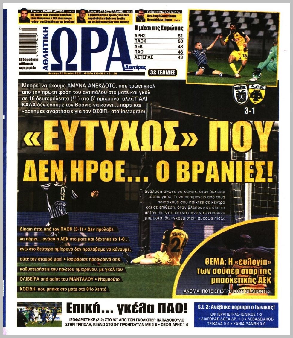 Οι αθλητικές εφημερίδες 22/3/2021 Διονύσης Νίκκας 06:35, Δευτέρα 22 Μαρτίου 2021 Media Διαβάστε τα πρωτοσέλιδα των αθλητικών εφημερίδων… ΑΘΛΗΤΙΚΕΣ ΕΦΗΜΕΡΙΔΕΣ Μοιράσου το: σχολίασε κι εσύ (0 σχόλια) Ακολουθήστε το enikos.gr στο Google News και μάθετε πρώτοι όλες τις ειδήσεις Δείτε όλες τις τελευταίες ειδήσεις από την Ελλάδα και τον Κόσμο στο enikos.gr Ειδήσεις Ροή Ειδήσεων 4 ώρες πριν Μεσόγειος: Η διαδρομή του ρωσικού τάνκερ «Qendil» και η στοχευμένη επίθεση της Ουκρανίας με drone – Ο Πούτιν προειδοποίησε για αντίποινα 18 λεπτά πριν Αγρότες: Έκλεισαν για μία ώρα την παρακαμπτήρια της Ιόνιας Οδού στη θέση Χαλίκι 2 ώρες πριν Εμπλοκή και αερομαχίες με οπλισμένα τουρκικά F-16 στο Αιγαίο 2 ώρες πριν Πούτιν: «Ναι, είμαι ερωτευμένος» – Βίντεο από τη σπάνια προσωπική παραδοχή του 22 λεπτά πριν Ανδρέας Λυκουρέντζος: Υπέβαλε την παραίτησή του ο πρόεδρος του ΕΛΓΑ, αλλά δεν έγινε δεκτή – Όλο το παρασκήνιο 32 λεπτά πριν Αριθμολογία: Οι άνθρωποι που έχουν γεννηθεί αυτές τις 4 ημερομηνίες, συχνά παρεξηγούνται – «Η καλοσύνη τους κρύβει τεράστια δύναμη» 3 ώρες πριν Μήπως έχετε χάσει τον εαυτό σας στη σχέση σας; 7 «αθόρυβες» υποχωρήσεις που μάλλον κάνατε, χωρίς να το συνειδητοποιήσετε 2 ώρες πριν Ξεχάστε το καθάρισμα το Σαββατοκύριακο: Ο «κανόνας των 20 λεπτών» που θα σας λύσει τα χέρια 4 ώρες πριν Κουίζ για την παλιά Αθήνα: Αναγνωρίζετε την περιοχή; Έχετε περάσει 100% από εκεί 3 λεπτά πριν Συνεχίζει να προκαλεί ο Μίτσκοσκι: «Για μένα το όνομα Μακεδονία είναι ιερό» 12 λεπτά πριν Ο Γιάννης Κακλέας σκηνοθετεί Βερόνικα Δαβάκη και Ιβάν Σβιτάιλο στη «Locandiera» 18 λεπτά πριν Αγρότες: Έκλεισαν για μία ώρα την παρακαμπτήρια της Ιόνιας Οδού στη θέση Χαλίκι 22 λεπτά πριν Ανδρέας Λυκουρέντζος: Υπέβαλε την παραίτησή του ο πρόεδρος του ΕΛΓΑ, αλλά δεν έγινε δεκτή – Όλο το παρασκήνιο 26 λεπτά πριν Ηράκλειο: «Ιπτάμενοι» Άγιοι Βασίληδες μοίρασαν δώρα και χαμόγελα στα παιδιά στο ΠΑΓΝΗ – Δείτε βίντεο ENIKOS NETWORK Το ΕΚΑΒ τιμήθηκε από την Ακαδημία Αθηνών για τα 40 χρόνια προσφοράς του Έχετε πραγματικά μεγάλη καρδιά; 10 χαρακτηριστικά όσων έχουν καλοσύνη Έρχονται νέες προσλήψεις σε Δήμο – Όλες οι λεπτομέρειες Επίδομα παιδιού: Πότε ανοίγει ξανά η πλατφόρμα για τις αιτήσεις Χαρτογραφώντας το «σημείο χωρίς επιστροφή»: Για πρώτη φορά αποκαλύπτεται με λεπτομέρεια το ακανθώδες όριο της ατμόσφαιρας τ... Η Google καταργεί τη λειτουργία «dark web report» – Πώς θα μπορούν οι χρήστες να διαγράφουν τα δεδομένα τους περισσότερα 20:37 , Παρασκευή 19 Δεκεμβρίου 2025 Don’t Forget The Lyrics: Η Έλλη Κοκκίνου υποδέχεται 4 παίκτες που θα κάνουν τα πάντα για να μη χάσουν ούτε… μισή λέξη από τους στίχους Το «Don’t Forget The Lyrics» επιστρέφει απόψε, Παρασκευή 19 Δεκεμβρίου, στις 21:00 με νέο επει... 19:31 , Παρασκευή 19 Δεκεμβρίου 2025 GNTM: Απόψε ο μεγάλος τελικός για τους 4 φιναλίστ Έπειτα από μήνες γεμάτους μόδα, δημιουργία και έντονες αναμετρήσεις, το GNTM 2025 κορυφώνεται,... 18:11 , Παρασκευή 19 Δεκεμβρίου 2025 Το σόι σου: Ο Άρης έρχεται στην Ελλάδα για τις γιορτές των Χριστουγέννων – Τι θα δούμε στο αποψινό εορταστικό επεισόδιο Ένα απολαυστικό, εορταστικό επεισόδιο της σειράς “Το σόι σου”, γεμάτο ευτράπελα αλ... 15:15 , Παρασκευή 19 Δεκεμβρίου 2025 Την Κυριακή με τη Realnews: Ό,τι και αν αγοράσεις, σκανάρεις και κερδίζεις! Την Κυριακή με τη Realnews: Ό,τι και αν αγοράσεις, σκανάρεις και κερδίζεις! Με το PADU app, το... ΤΕΛΕΥΤΑΙΕΣ ΕΙΔΗΣΕΙΣ 3 λεπτά πριν Συνεχίζει να προκαλεί ο Μίτσκοσκι: «Για μένα το όνομα... 12 λεπτά πριν Ο 
