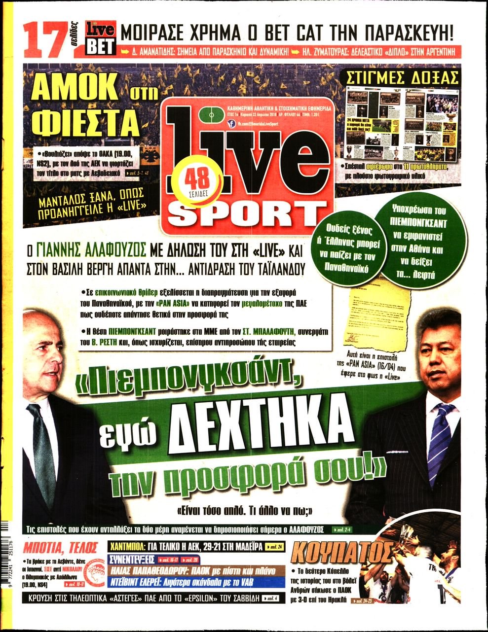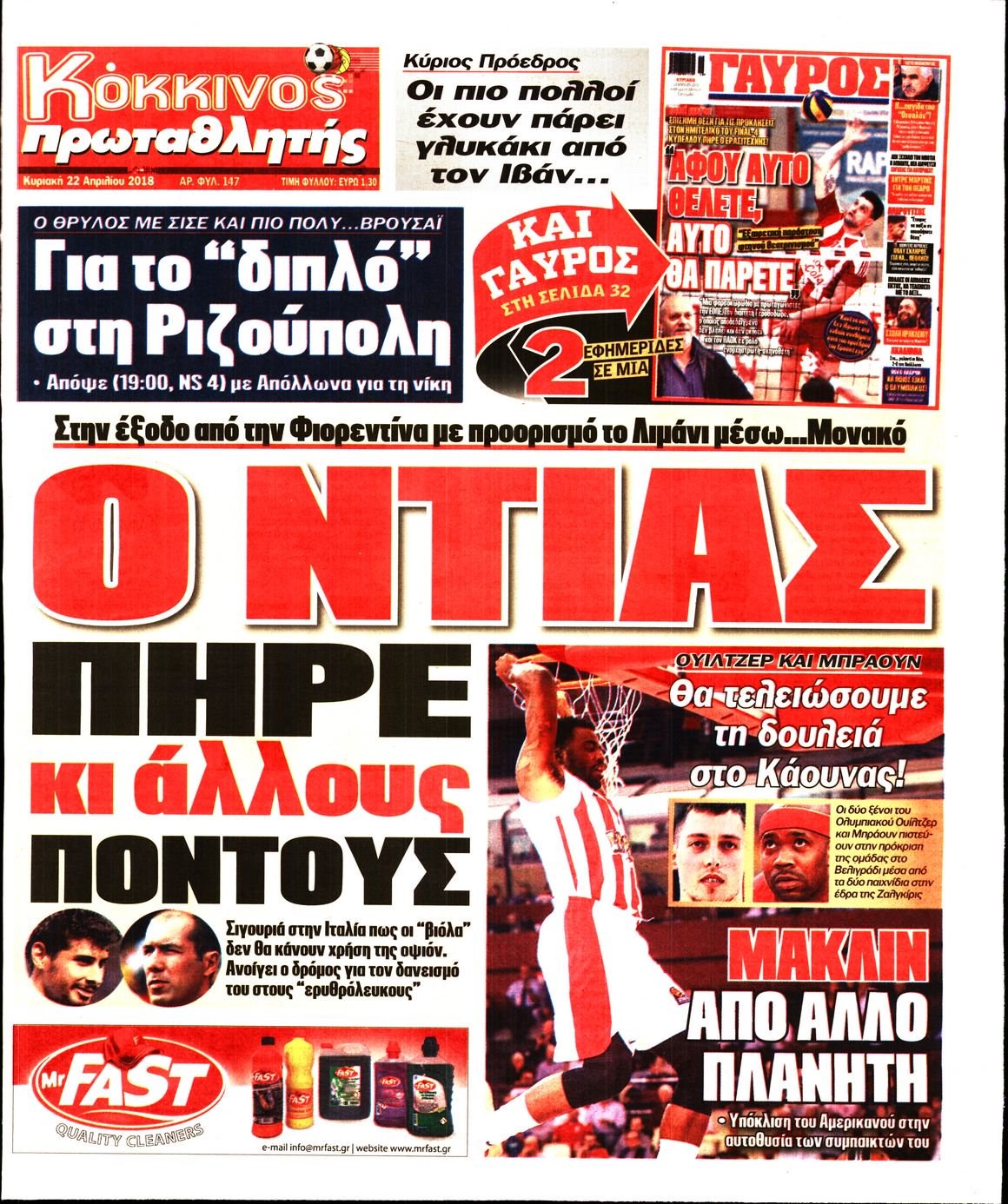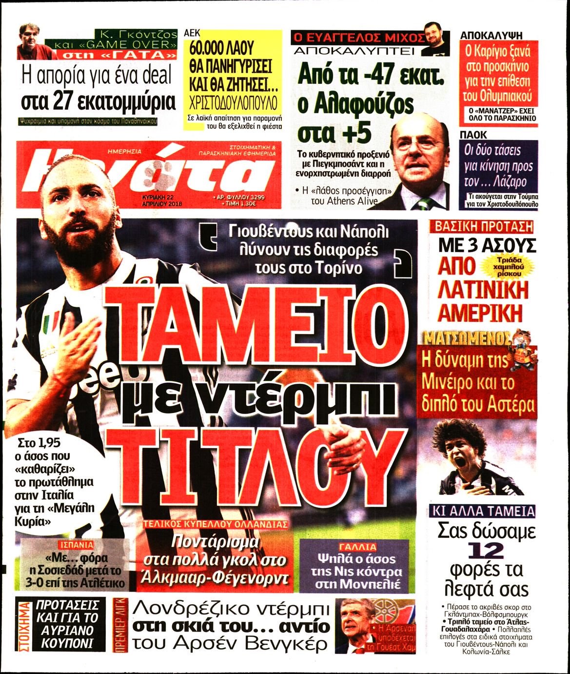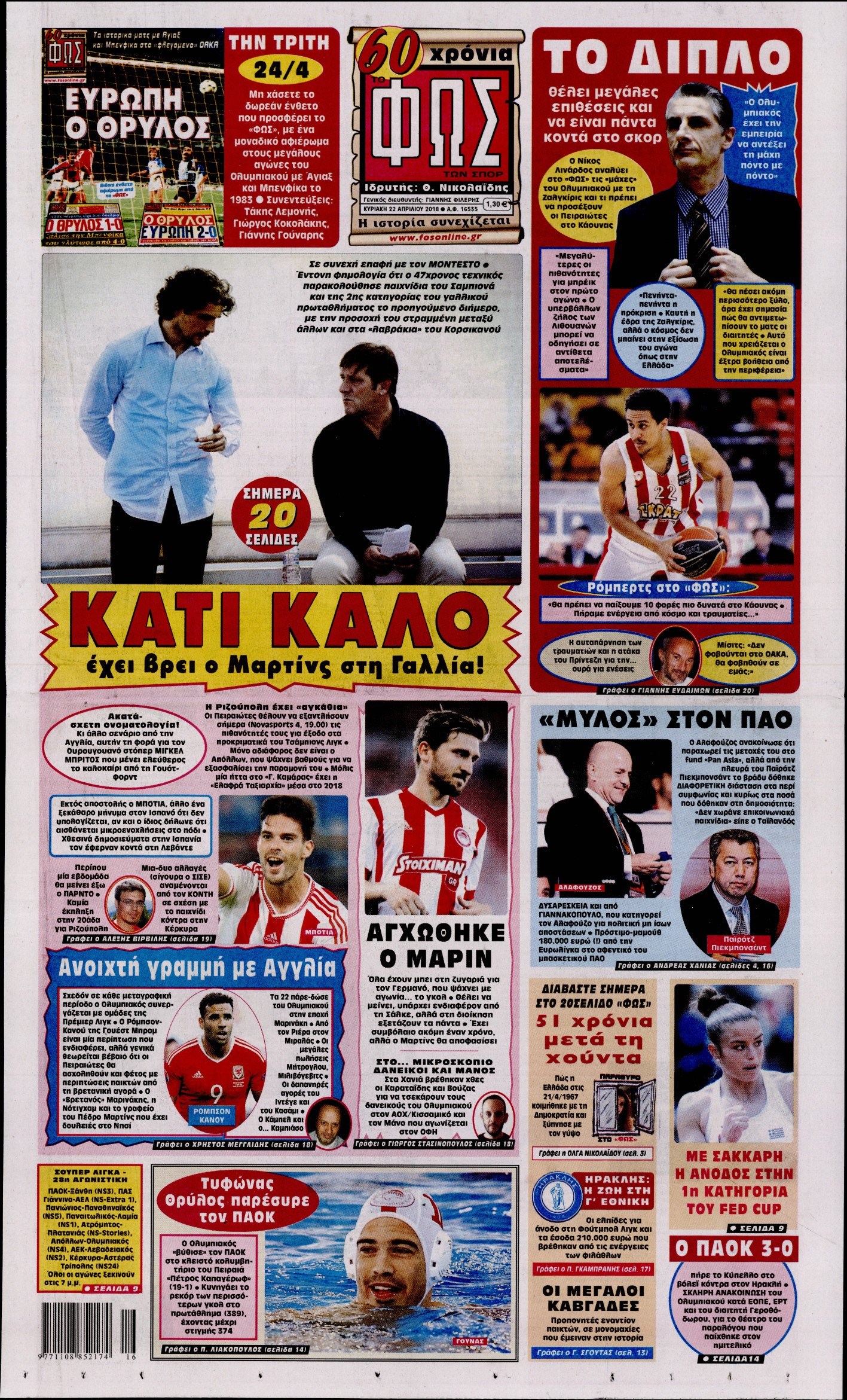 Οι αθλητικές εφημερίδες 22/4/2018 Enikos Newsroom 07:18, Κυριακή 22 Απριλίου 2018 Media Διαβάστε τα σημερινά πρωτοσέλιδα των αθλητικών εφημερίδων: ΑΘΛΗΤΙΚΕΣ ΕΦΗΜΕΡΙΔΕΣ ΠΡΩΤΟΣΕΛΙΔΑ Μοιράσου το: σχολίασε κι εσύ (0 σχόλια) Ακολουθήστε το enikos.gr στο Google News και μάθετε πρώτοι όλες τις ειδήσεις Δείτε όλες τις τελευταίες ειδήσεις από την Ελλάδα και τον Κόσμο στο enikos.gr Ειδήσεις Ροή Ειδήσεων 4 ώρες πριν Χριστούγεννα στα μπλόκα: Επιμένουν στις κινητοποιήσεις τους οι αγρότες – Ανοίγουν τα διόδια το Σαββατοκύριακο 4 ώρες πριν Ουκρανία: Η άνευ προηγουμένου επίθεση σε ρωσικό τάνκερ στη Μεσόγειο και το μήνυμα προς στον Πούτιν – Το «μακρύ χέρι» του Κιέβου 3 ώρες πριν Πούτιν: Τα μηνύματα σε Ευρώπη και ΝΑΤΟ από το μαραθώνιο «σόου» του – Η απαίτηση για «σεβασμό» και η ειρήνη «με τους όρους» της Μόσχας 4 ώρες πριν Τραμπ: Δεν αποκλείει την πιθανότητα ενός πολέμου στη Βενεζουέλα – «Ο Μαδούρο ξέρει καλύτερα από τον καθένα τι ακριβώς θέλω» 5 ώρες πριν Συνεχίζει να προκαλεί ο Μίτσκοσκι: «Για μένα το όνομα Μακεδονία είναι ιερό» 3 ώρες πριν Ανακαλύφθηκαν αρχαία χρυσά νομίσματα 2.200 ετών που απεικονίζουν τον θεό Απόλλωνα – Η άγνωστη σύνδεση με τον Φίλιππο Β΄ της Μακεδονίας 4 ώρες πριν Ύπνος: Μια κρυφή κατάσταση του εγκεφάλου πριν από τον ύπνο μπορεί να είναι το “κλειδί” για υψηλή ευφυΐα και δημιουργικότητα 5 ώρες πριν Αριθμολογία: Οι άνθρωποι που έχουν γεννηθεί αυτές τις 4 ημερομηνίες, συχνά παρεξηγούνται – «Η καλοσύνη τους κρύβει τεράστια δύναμη» 6 ώρες πριν Ξεχάστε το καθάρισμα το Σαββατοκύριακο: Ο «κανόνας των 20 λεπτών» που θα σας λύσει τα χέρια 15 λεπτά πριν Εξάρχεια: Ένταση με μολότοφ, χημικά και κρότου λάμψης 31 λεπτά πριν ΗΠΑ: Τραγωδία στην Αλαμπάμα – Σκότωσε την δημοσιογράφο σύζυγό του και αυτοκτόνησε μπροστά στον 3χρονο γιο τους 45 λεπτά πριν Πρόταση γάμου στο ΣΕΦ κατά την διάρκεια του αγώνα Ολυμπιακός-Βιλερμπάν – Δείτε βίντεο 1 ώρα πριν Euroleague: Επέστρεψε στις νίκες ο Ολυμπιακός, πήρε την ματσάρα της χρονιάς η Μπάρτσα – Τα αποτελέσματα και η βαθμολογία 1 ώρα πριν Συρία: Μαζικά πλήγματα των ΗΠΑ σε θέσεις του Ισλαμικού Κράτους – Χέγκσεθ: «Δεν είναι αρχή πολέμου, είναι μια δήλωση εκδίκησης» για το θάνατο των στρατιωτών μας ENIKOS NETWORK Το ΕΚΑΒ τιμήθηκε από την Ακαδημία Αθηνών για τα 40 χρόνια προσφοράς του Έχετε πραγματικά μεγάλη καρδιά; 10 χαρακτηριστικά όσων έχουν καλοσύνη Αναστολή μέτρων αναγκαστικής εκτέλεσης για κτηνοτρόφους που πλήττονται από την ευλογιά των αιγοπροβάτων Πλήρης επάρκεια προϊόντων στις λαϊκές της Αττικής, παρά τις αγροτικές κινητοποιήσεις – Τι απαντούν οι πωλητές Χαρτογραφώντας το «σημείο χωρίς επιστροφή»: Για πρώτη φορά αποκαλύπτεται με λεπτομέρεια το ακανθώδες όριο της ατμόσφαιρας τ... Η Google καταργεί τη λειτουργία «dark web report» – Πώς θα μπορούν οι χρήστες να διαγράφουν τα δεδομένα τους περισσότερα 22:42 , Παρασκευή 19 Δεκεμβρίου 2025 Γιώργος Γιαννόπουλος για “Το σόι σου”: “Είναι ευτυχία και ευλογία αυτή η σειρά” «Είναι ευτυχία και ευλογία η συγκυρία αυτής της σειράς», θα πει ο Γιώργος Γιαννόπουλος -ο αγαπ... 20:37 , Παρασκευή 19 Δεκεμβρίου 2025 Don’t Forget The Lyrics: Η Έλλη Κοκκίνου υποδέχεται 4 παίκτες που θα κάνουν τα πάντα για να μη χάσουν ούτε… μισή λέξη από τους στίχους Το «Don’t Forget The Lyrics» επιστρέφει απόψε, Παρασκευή 19 Δεκεμβρίου, στις 21:00 με νέο επει... 19:31 , Παρασκευή 19 Δεκεμβρίου 2025 GNTM: Απόψε ο μεγάλος τελικός για τους 4 φιναλίστ Έπειτα από μήνες γεμάτους μόδα, δημιουργία και έντ