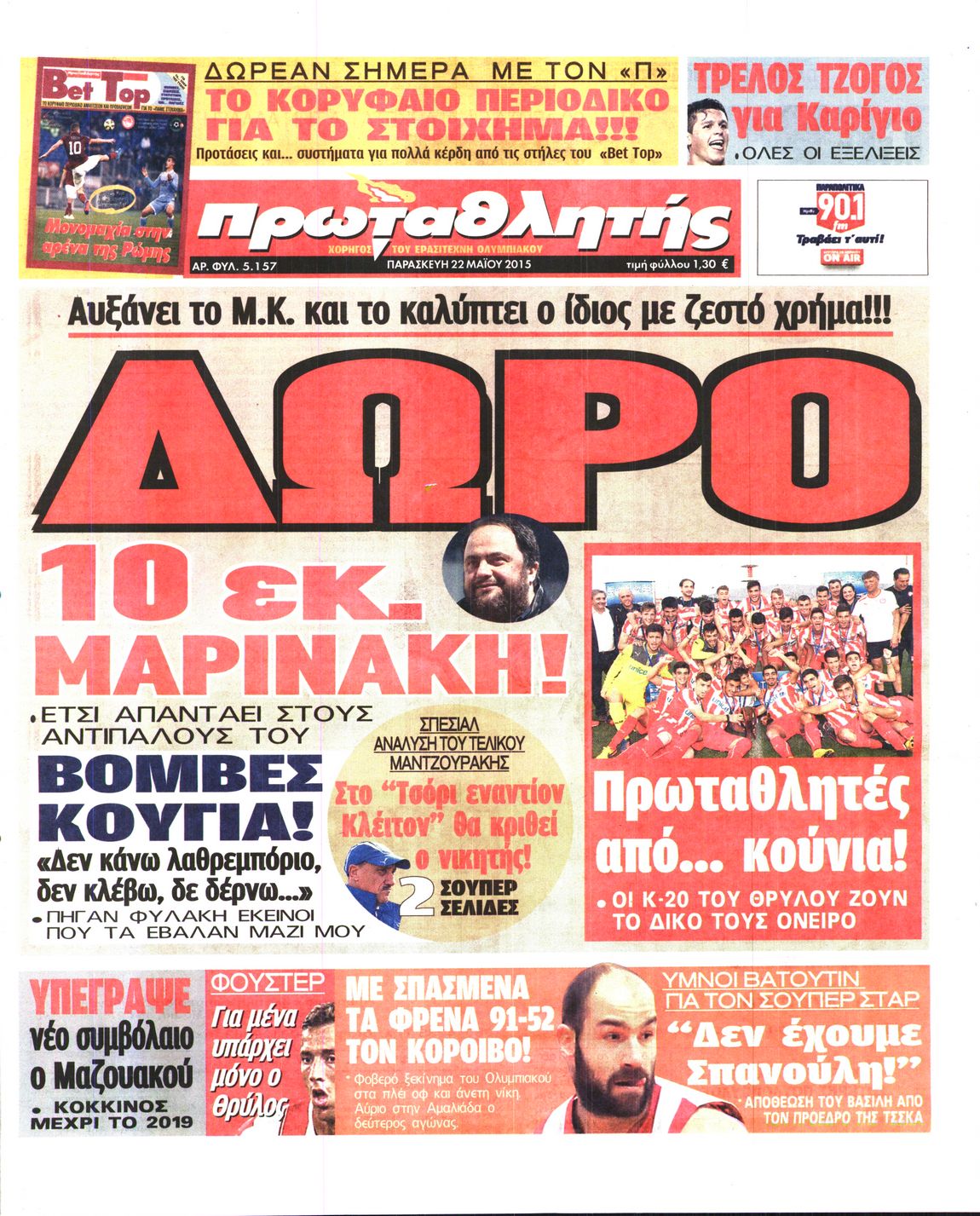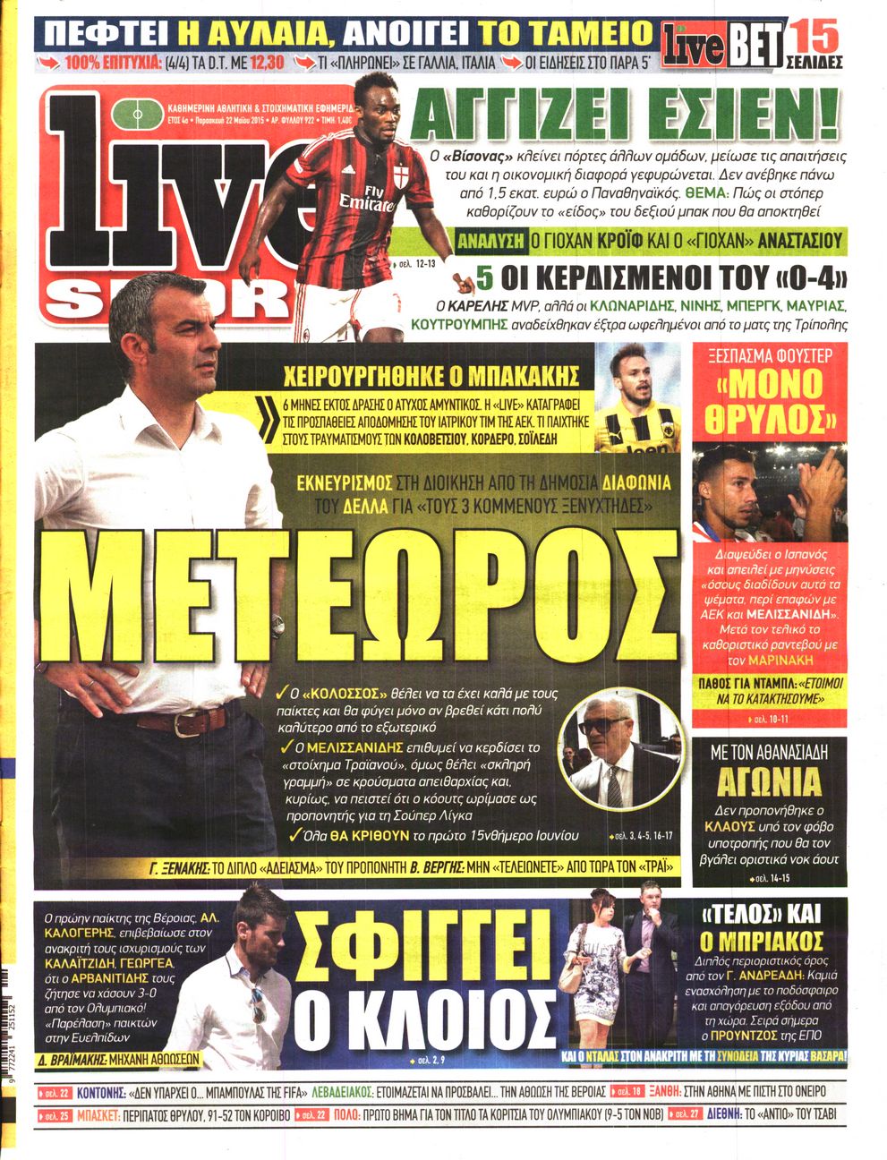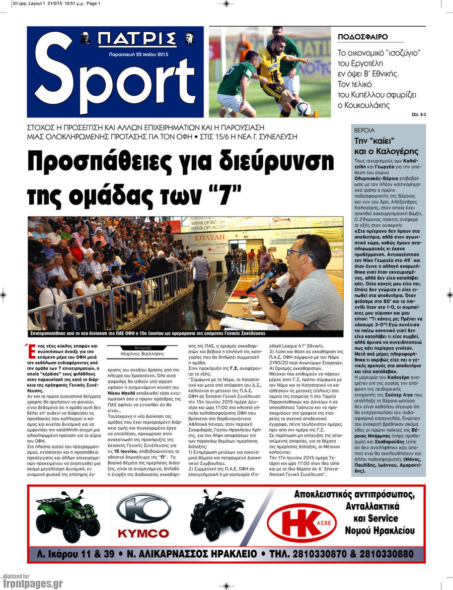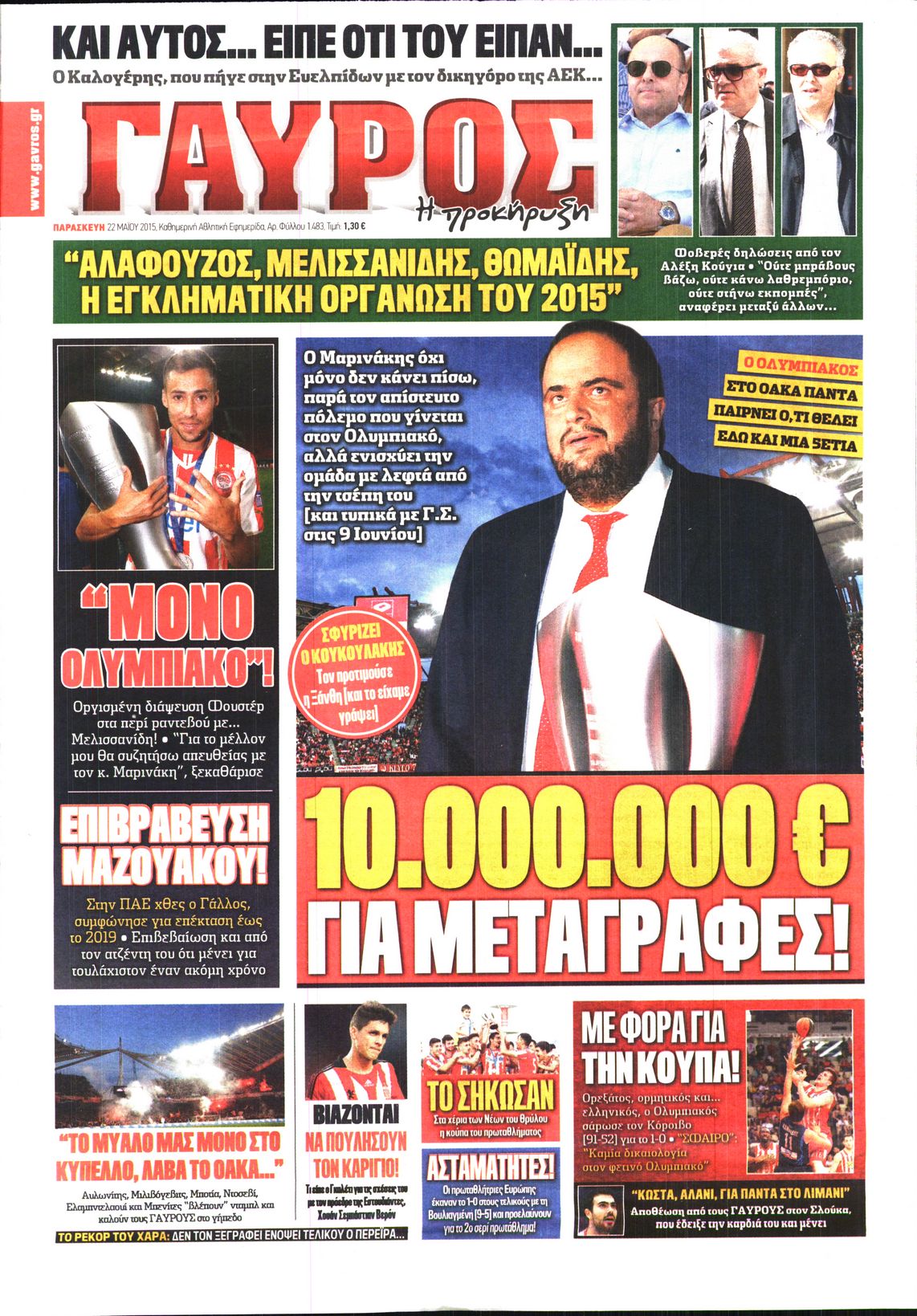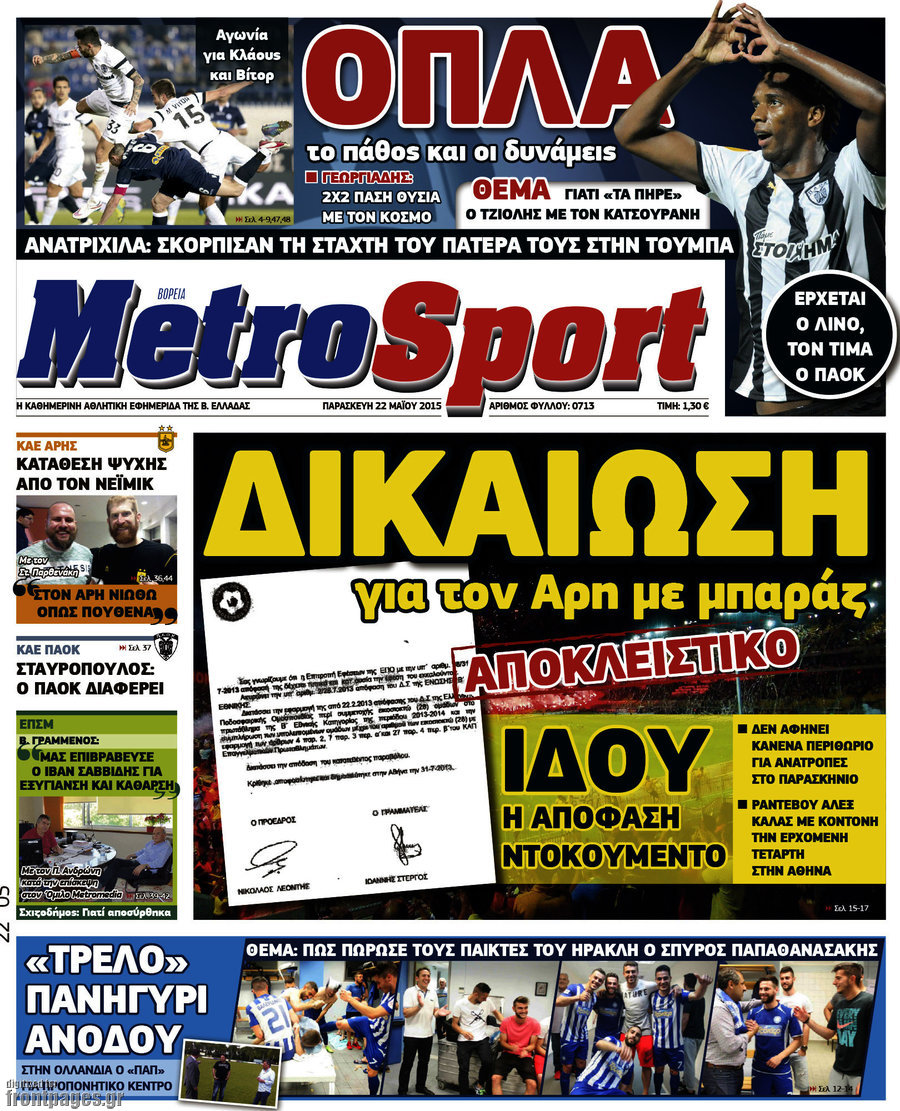 Oι αθλητικές εφημερίδες 22/5/2015 Enikos Newsroom 06:48, Παρασκευή 22 Μαΐου 2015 Media Διαβάστε τα σημερινά πρωτοσέλιδα των αθλητικών εφημερίδων: ΑΘΛΗΤΙΚΕΣ ΕΦΗΜΕΡΙΔΕΣ ΠΡΩΤΟΣΕΛΙΔΑ Μοιράσου το: σχολίασε κι εσύ (0 σχόλια) Ακολουθήστε το enikos.gr στο Google News και μάθετε πρώτοι όλες τις ειδήσεις Δείτε όλες τις τελευταίες ειδήσεις από την Ελλάδα και τον Κόσμο στο enikos.gr Ειδήσεις Ροή Ειδήσεων 5 ώρες πριν Συνεχίζουν τις κινητοποιήσεις οι αγρότες: Κλείνουν τις σήραγγες των Τεμπών για τα φορτηγά – Τι θα γίνει τα Χριστούγεννα 26 λεπτά πριν Από τα μέσα Ιανουαρίου τα πρώτα «ραβασάκια» στους οδηγούς από τις έξυπνες κάμερες – Τι δήλωσε ο Παπαστεργίου 57 λεπτά πριν Μόσχα: Πιθανή εμπλοκή της Ουκρανίας στην έκρηξη βόμβας που σκότωσε Ρώσο στρατηγό 2 ώρες πριν Θεσσαλονίκη: Γρονθοκόπησαν 13χρονο σε αγώνα βόλεϊ γιατί τους… ενοχλούσε το τύμπανο 1 ώρα πριν Τουρκία: Χαοτικές σκηνές στη Βουλή με ξύλο μεταξύ βουλευτών στη συζήτηση για τον προϋπολογισμό – Βίντεο 3 ώρες πριν Τα 4 ζώδια που παίρνουν επιτέλους την αναγνώριση που τους αξίζει – «Απρόσμενες ευκαιρίες, που μοιάζουν με δώρα από το σύμπαν» 49 λεπτά πριν Γυναίκα που έχασε 18 κιλά αποκαλύπτει τα μυστικά της επιτυχίας της: «Σταματήστε να γυμνάζεστε απλώς για να ολοκληρώσετε την προπόνηση» 2 ώρες πριν Έχετε κρατήσει αυτά 8 αντικείμενα από την παιδική ηλικία σας; Δείτε τι αποκαλύπτει για τον χαρακτήρα σας 2 ημέρες πριν Enerwave: Το νέο «ρεύμα» στη λιανική ενέργειας που αλλάζει την εμπειρία του καταναλωτή 22 δευτερόλεπτα πριν Πηγές ΕΛ.ΑΣ. για μπλόκα: Δεν κλείνει κανένας δρόμος χωρίς λόγο 6 λεπτά πριν Κρήτη: Στη φυλακή ο 28χρονος για παιδική πορνογραφία – Η γνωριμία με 15χρονη μέσω social media, οι φωτογραφίες και η καταγγελία 13 λεπτά πριν Σαρκοζί: Από την «κόλαση» της φυλακής στον «παράδεισο» της Γουαδελούπης – Σε διακοπές με την Κάρλα Μπρούνι και την κόρη τους 19 λεπτά πριν ΑΠΕΥΘΕΙΑΣ – Η ενημέρωση από τον Κυβερνητικό Εκπρόσωπο 24 λεπτά πριν Χαμός on air ανάμεσα στις πρωινές εκπομπές του Open και του Mega – «Έχω να δω κάτι τέτοιο από τη δεκαετία του 90’» – «Κάποιοι να κοιτάνε και λίγο στον καθρέφτη» ENIKOS NETWORK Η χειμερινή δραστηριότητα που μπορεί να αυξήσει τον κίνδυνο καρδιακής προσβολής Χοληστερίνη: Το σημάδι στο δέρμα που μπορεί να δείχνει ότι είναι υπερβολικά υψηλή Χρυσός: Νέο ιστορικό υψηλό για την τιμή του – Τι λένε οι αναλυτές Επίδομα θέρμανσης: Ποιοι λαμβάνουν έως αύριο την προκαταβολή – Πότε ακολουθούν οι επόμενες πληρωμές Χαρτογραφώντας το «σημείο χωρίς επιστροφή»: Για πρώτη φορά αποκαλύπτεται με λεπτομέρεια το ακανθώδες όριο της ατμόσφαιρας τ... Η Google καταργεί τη λειτουργία «dark web report» – Πώς θα μπορούν οι χρήστες να διαγράφουν τα δεδομένα τους περισσότερα 12:25 , Δευτέρα 22 Δεκεμβρίου 2025 Χαμός on air ανάμεσα στις πρωινές εκπομπές του Open και του Mega – «Έχω να δω κάτι τέτοιο από τη δεκαετία του 90’» – «Κάποιοι να κοιτάνε και λίγο στον καθρέφτη» Κόντρα στον… αέρα είχαν οι ενημερωτικές εκπομπές της πρωινής ζώνης στο Open και το Mega,... 10:15 , Δευτέρα 22 Δεκεμβρίου 2025 Πρωτοχρονιάτικο δώρο της ΕΡΤ η «Μεγάλη χίμαιρα» – Διπλή πρεμιέρα για την ακριβότερη ελληνική σειρά Με πρωτότυπο τρόπο και σπαστή πρεμιέρα σε ΕΡΤflix και ΕΡΤ1 θα κάνει η δημόσια τηλεόραση το λαν... 09:45 , Δευτέρα 22 Δεκεμβρίου 2025 Ο χριστουγεννιάτικος τηλεμαραθώνιος αλληλεγγύης του ANT1 για τα παιδιά Ο ANT1 διοργανώνει Χριστουγεννιάτικο Τηλεμαραθώνιο για τα Παιδιά την 22η Δεκεμβρίου 2025, με σ... 09:30 , Δευτέρα 22 Δεκεμβρί