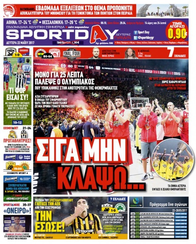 Οι αθλητικές εφημερίδες 22/5/2017 Κώστας Τεό 06:28, Δευτέρα 22 Μαΐου 2017 Media Διαβάστε τα σημερινά πρωτοσέλιδα των αθλητικών εφημερίδων: ΑΘΛΗΤΙΚΕΣ ΕΦΗΜΕΡΙΔΕΣ ΠΡΩΤΟΣΕΛΙΔΑ Μοιράσου το: σχολίασε κι εσύ (0 σχόλια) Ακολουθήστε το enikos.gr στο Google News και μάθετε πρώτοι όλες τις ειδήσεις Δείτε όλες τις τελευταίες ειδήσεις από την Ελλάδα και τον Κόσμο στο enikos.gr Ειδήσεις Ροή Ειδήσεων 14 λεπτά πριν Η Ουκρανία χτύπησε τάνκερ του σκιώδους στόλου της Ρωσίας στη Μεσόγειο – Έπλεε νότια της Κρήτης 2 ώρες πριν Πούτιν: Η Ουκρανία δεν είναι έτοιμη για ειρηνευτικές συνομιλίες – ο ρωσικός στρατός προελαύνει σε όλα τα μέτωπα 3 ώρες πριν Νίκος Παππάς: Ζητώ συγγνώμη για αυτό το επεισόδιο – Δεν τον γρονθοκόπησα 57 λεπτά πριν Θεσσαλονίκη: Άφησαν τα ανήλικα παιδιά τους να κοιμούνται στην αυλή – Κάτοικος ειδοποίησε το «Χαμόγελο του Παιδιού» 17 λεπτά πριν Βουλή: Υπερψηφίστηκε το νομοσχέδιο για την ένταξη του ΟΠΕΚΕΠΕ στην ΑΑΔΕ 4 ώρες πριν Αλλαγή σελίδας για 3 ζώδια – «Μία δύσκολη περίοδος φτάνει στο τέλος της» 2 ημέρες πριν 20 χρόνια τα Χριστούγεννα ξεκινούν στα Public με μεγάλη ποικιλία σε δώρα! 3 ώρες πριν Γεμάτος νεροχύτης; 5 σοβαρές ευθύνες που «φοβίζουν» όσους αφήνουν άπλυτα πιάτα 2 ώρες πριν Ειδικός μοιράζεται 6 κόλπα για να διατηρείστε σε φόρμα με πάνω από 40 ώρες εργασίας την εβδομάδα: «Προπονηθείτε πριν από τη δουλειά, όχι μετά» 6 λεπτά πριν Οι αγρότες έκλεισαν και τα δύο ρεύματα κυκλοφορίας στα διόδια των Μαλγάρων 11 λεπτά πριν Ανδρουλάκης για ΕΛΤΑ: Το σκάνδαλο αυτό είναι η ωμή εκδοχή του κράτους-λάφυρου 14 λεπτά πριν Η Ουκρανία χτύπησε τάνκερ του σκιώδους στόλου της Ρωσίας στη Μεσόγειο – Έπλεε νότια της Κρήτης 16 λεπτά πριν Βουλή: Εγκρίθηκε ο διορισμός της νέας διοικήτριας της Ανεξάρτητης Αρχής Ελέγχου της Αγοράς και Προστασίας του Καταναλωτή 17 λεπτά πριν Βουλή: Υπερψηφίστηκε το νομοσχέδιο για την ένταξη του ΟΠΕΚΕΠΕ στην ΑΑΔΕ ENIKOS NETWORK Τάξη στις ιατρικές διαφημίσεις για την προστασία των πολιτών βάζει ο ΙΣΑ Μακροζωία: Τι παίζει πιο σημαντικό ρόλο ακόμα και από την διατροφή και την άσκηση, σύμφωνα με μελέτη e-ΕΦΚΑ: Νέα παράταση της προθεσμίας υποβολής για τις ΑΠΔ – Ποιες επιχειρήσεις αφορά Αγορά πολυτελών κατοικιών: Αυτές είναι οι προτεραιότητες των αγοραστών – Σε ποιες περιοχές στρέφονται και τι επιλέγουν Χαρτογραφώντας το «σημείο χωρίς επιστροφή»: Για πρώτη φορά αποκαλύπτεται με λεπτομέρεια το ακανθώδες όριο της ατμόσφαιρας τ... Η Google καταργεί τη λειτουργία «dark web report» – Πώς θα μπορούν οι χρήστες να διαγράφουν τα δεδομένα τους περισσότερα 08:00 , Παρασκευή 19 Δεκεμβρίου 2025 Την Κυριακή με τη Realnews: Δωροεπιταγή 10€ Δωροεπιταγή αξίας 10€ για αγορές άνω των 60€ από τα πολυκαταστήματα FactoryOutlet H προσφορά ι... 05:48 , Παρασκευή 19 Δεκεμβρίου 2025 Οι οικονομικές εφημερίδες 19/12/2025 Διαβάστε τα πρωτοσέλιδα από τις οικονομικές εφημερίδες, σήμερα 19/12/2025. 05:43 , Παρασκευή 19 Δεκεμβρίου 2025 Οι αθλητικές εφημερίδες 19/12/2025 Διαβάστε τα πρωτοσέλιδα από τις αθλητικές εφημερίδες, σήμερα 19/12/2025. 05:38 , Παρασκευή 19 Δεκεμβρίου 2025 Οι πολιτικές εφημερίδες 19/12/2025 Διαβάστε τα πρωτοσέλιδα από τις πολιτικές εφημερίδες, σήμερα 19/12/2025. ΤΕΛΕΥΤΑΙΕΣ ΕΙΔΗΣΕΙΣ 6 λεπτά πριν Οι αγρότες έκλεισαν και τα δύο ρεύματα κυκλοφορίας... 11 λεπτά πριν Ανδρουλάκης για ΕΛΤΑ: Το σκάνδαλο αυτό είναι η ωμή... 14 λεπτά πριν Η Ουκρανία χτύπησε τάνκερ του σκιώδους στόλου της... 16 λεπτά πριν Βουλή: Εγκρίθηκε ο διορισμός της νέας διοικήτριας της... 17 λεπτά πριν Βου
