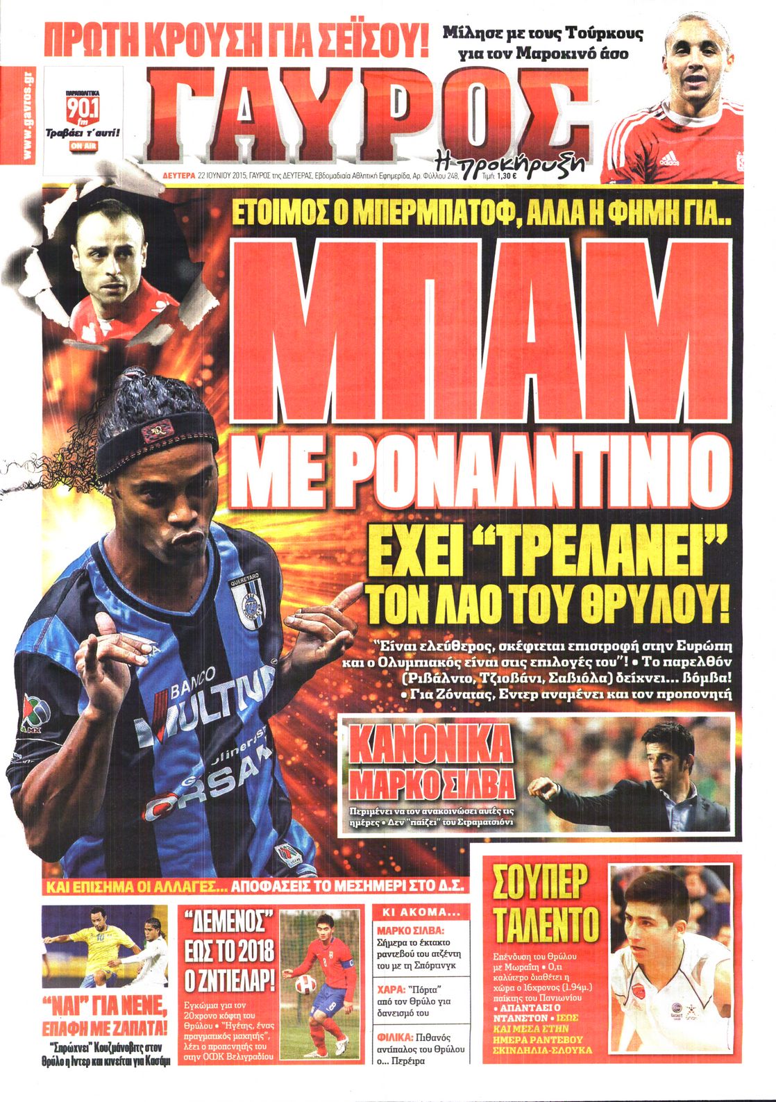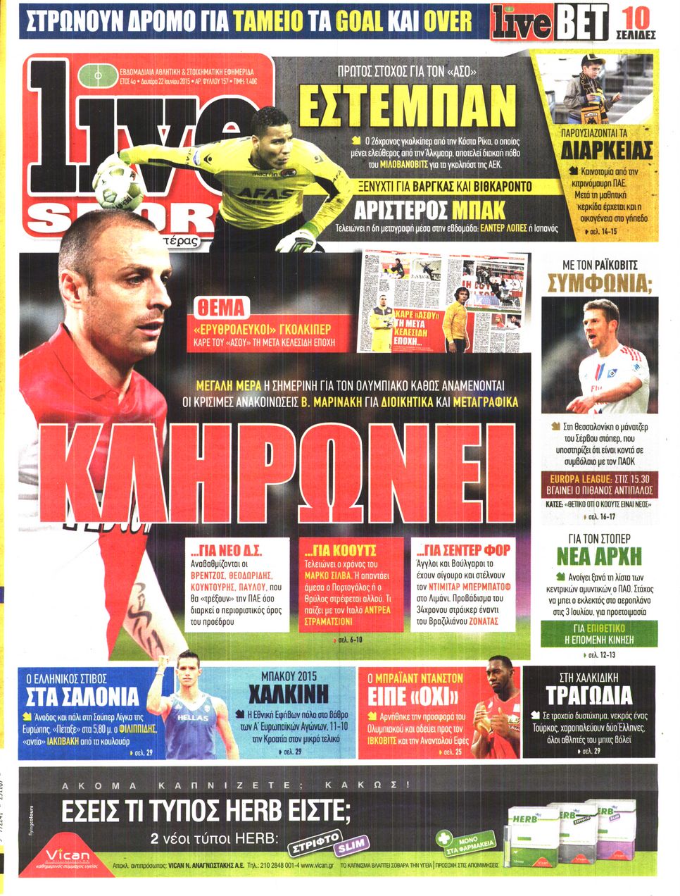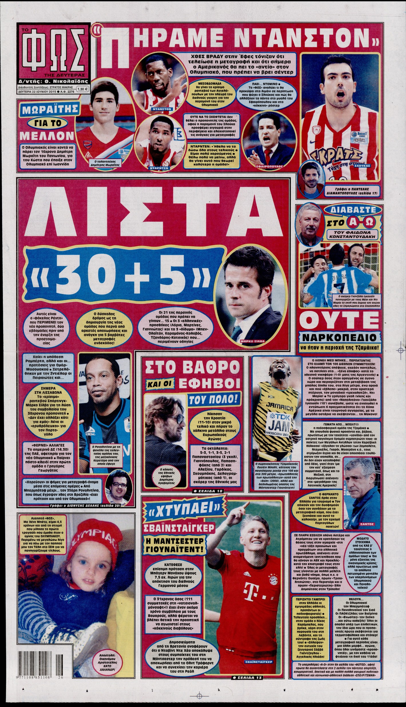 Οι αθλητικές εφημερίδες 22/6/2015 Enikos Newsroom 06:51, Δευτέρα 22 Ιουνίου 2015 Media Διαβάστε τα σημερινά πρωτοσέλιδα των αθλητικών εφημερίδων: ΑΘΛΗΤΙΚΕΣ ΕΦΗΜΕΡΙΔΕΣ ΠΡΩΤΟΣΕΛΙΔΑ Μοιράσου το: σχολίασε κι εσύ (0 σχόλια) Ακολουθήστε το enikos.gr στο Google News και μάθετε πρώτοι όλες τις ειδήσεις Δείτε όλες τις τελευταίες ειδήσεις από την Ελλάδα και τον Κόσμο στο enikos.gr Ειδήσεις Ροή Ειδήσεων 45 λεπτά πριν Χριστούγεννα στα μπλόκα: Επιμένουν στις κινητοποιήσεις τους οι αγρότες – Ανοίγουν τα διόδια το Σαββατοκύριακο 1 ώρα πριν Ουκρανία: Η άνευ προηγουμένου επίθεση σε ρωσικό τάνκερ στη Μεσόγειο και το μήνυμα προς στον Πούτιν – Το «μακρύ χέρι» του Κιέβου 23 λεπτά πριν Πούτιν: Τα μηνύματα σε Ευρώπη και ΝΑΤΟ από το μαραθώνιο «σόου» του – Η απαίτηση για «σεβασμό» και η ειρήνη «με τους όρους» της Μόσχας 1 ώρα πριν Τραμπ: Δεν αποκλείει την πιθανότητα ενός πολέμου στη Βενεζουέλα – «Ο Μαδούρο ξέρει καλύτερα από τον καθένα τι ακριβώς θέλω» 2 ώρες πριν Συνεχίζει να προκαλεί ο Μίτσκοσκι: «Για μένα το όνομα Μακεδονία είναι ιερό» 4 ώρες πριν Πούτιν: «Ναι, είμαι ερωτευμένος» – Βίντεο από τη σπάνια προσωπική παραδοχή του 2 ώρες πριν Αριθμολογία: Οι άνθρωποι που έχουν γεννηθεί αυτές τις 4 ημερομηνίες, συχνά παρεξηγούνται – «Η καλοσύνη τους κρύβει τεράστια δύναμη» 1 ώρα πριν Ύπνος: Μια κρυφή κατάσταση του εγκεφάλου πριν από τον ύπνο μπορεί να είναι το “κλειδί” για υψηλή ευφυΐα και δημιουργικότητα 3 ώρες πριν Ξεχάστε το καθάρισμα το Σαββατοκύριακο: Ο «κανόνας των 20 λεπτών» που θα σας λύσει τα χέρια 24 λεπτά πριν Ανακαλύφθηκαν αρχαία χρυσά νομίσματα 2.200 ετών που απεικονίζουν τον θεό Απόλλωνα – Η άγνωστη σύνδεση με τον Φίλιππο Β΄ της Μακεδονίας 8 λεπτά πριν Ολυμπιακός – Βιλερμπάν 107-84: Επιστροφή στις νίκες με… προπόνηση 14 λεπτά πριν Νέος Κόσμος: Συνελήφθη 41χρονος με ένταλμα από την Τουρκία για εμπόριο ναρκωτικών και ληστεία 23 λεπτά πριν Πούτιν: Τα μηνύματα σε Ευρώπη και ΝΑΤΟ από το μαραθώνιο «σόου» του – Η απαίτηση για «σεβασμό» και η ειρήνη «με τους όρους» της Μόσχας 24 λεπτά πριν Ανακαλύφθηκαν αρχαία χρυσά νομίσματα 2.200 ετών που απεικονίζουν τον θεό Απόλλωνα – Η άγνωστη σύνδεση με τον Φίλιππο Β΄ της Μακεδονίας 28 λεπτά πριν Νίκος Ξυλούρης: Συγκινεί η χήρα του σπουδαίου καλλιτέχνη – «Ευχαριστώ όλο τον κόσμο που τον κρατάει ζωντανό 45 χρόνια» ENIKOS NETWORK Το ΕΚΑΒ τιμήθηκε από την Ακαδημία Αθηνών για τα 40 χρόνια προσφοράς του Έχετε πραγματικά μεγάλη καρδιά; 10 χαρακτηριστικά όσων έχουν καλοσύνη Αναστολή μέτρων αναγκαστικής εκτέλεσης για κτηνοτρόφους που πλήττονται από την ευλογιά των αιγοπροβάτων Πλήρης επάρκεια προϊόντων στις λαϊκές της Αττικής, παρά τις αγροτικές κινητοποιήσεις – Τι απαντούν οι πωλητές Χαρτογραφώντας το «σημείο χωρίς επιστροφή»: Για πρώτη φορά αποκαλύπτεται με λεπτομέρεια το ακανθώδες όριο της ατμόσφαιρας τ... Η Google καταργεί τη λειτουργία «dark web report» – Πώς θα μπορούν οι χρήστες να διαγράφουν τα δεδομένα τους περισσότερα 22:42 , Παρασκευή 19 Δεκεμβρίου 2025 Γιώργος Γιαννόπουλος για “Το σόι σου”: “Είναι ευτυχία και ευλογία αυτή η σειρά” «Είναι ευτυχία και ευλογία η συγκυρία αυτής της σειράς», θα πει ο Γιώργος Γιαννόπουλος -ο αγαπ... 20:37 , Παρασκευή 19 Δεκεμβρίου 2025 Don’t Forget The Lyrics: Η Έλλη Κοκκίνου υποδέχεται 4 παίκτες που θα κάνουν τα πάντα για να μη χάσουν ούτε… μισή λέξη από τους στίχους Το «Don’t Forget The Lyrics» επιστρέφει απόψε, Παρασκευή 19 Δεκεμβρίου, στις 21:00 με νέο επει... 19:31 , Παρασκευή 19