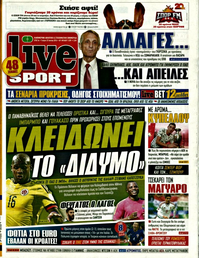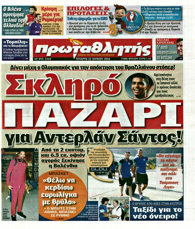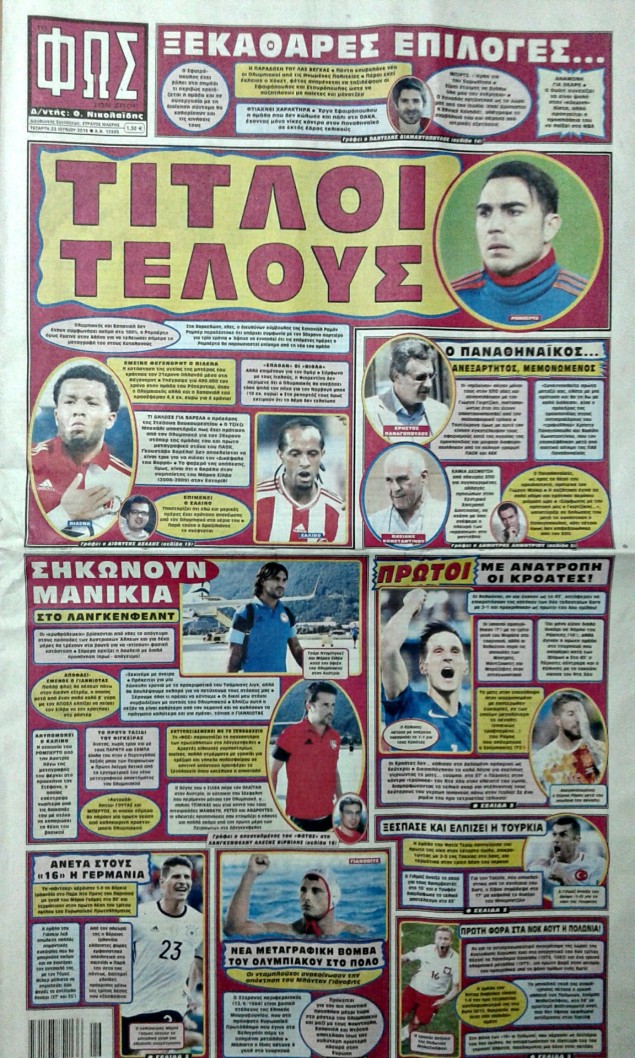 Οι αθλητικές εφημερίδες 22/6/2016 Enikos Newsroom 03:59, Τετάρτη 22 Ιουνίου 2016 Media Διαβάστε τα σημερινά πρωτοσέλιδα των αθλητικών εφημερίδων: ΑΘΛΗΤΙΚΕΣ ΕΦΗΜΕΡΙΔΕΣ ΠΡΩΤΟΣΕΛΙΔΑ Μοιράσου το: σχολίασε κι εσύ (0 σχόλια) Ακολουθήστε το enikos.gr στο Google News και μάθετε πρώτοι όλες τις ειδήσεις Δείτε όλες τις τελευταίες ειδήσεις από την Ελλάδα και τον Κόσμο στο enikos.gr Ειδήσεις Ροή Ειδήσεων 2 ώρες πριν Αγρότες: «Όχι στον διάλογο, μας εμπαίζει η κυβέρνηση» – Αποφάσισαν κλιμάκωση των κινητοποιήσεων, τι θα γίνει τα Χριστούγεννα 3 ώρες πριν Την πρώτη Belharra παρέλαβε η χώρα μας, υψώθηκε η ελληνική σημαία στη φρεγάτα «Κίμων» – Δένδιας: «Το ισχυρότερο Πολεμικό Ναυτικό που είχε ποτέ ο ελληνισμός» 26 λεπτά πριν Γιώργος Μαζωνάκης: «Έχει υποστεί ένα σωρό εκβιαστικές πρακτικές – Του είπαν ότι θα του βάλουν τον συγκεκριμένο άνθρωπο να τον καταγγείλει» 2 ώρες πριν Μιχάλης Χουρδάκης: «Είμαι διαθέσιμος να συμβάλω στην προσωρινή κάλυψη του ιατρείου της Ψερίμου» – Η επιστολή στον Άδωνι Γεωργιάδη 2 ώρες πριν Εξώδικο Γεωργιάδη στην Κωνσταντοπούλου – «Με κατηγόρησε ότι έχω καταδικαστεί για παιδεραστία» 3 ώρες πριν Τα 5 ζώδια που θα ευνοηθούν στα οικονομικά τους το 2026 – «Τραβούν το χρήμα σαν μαγνήτες» 8 ώρες πριν Αν κάνετε συνεχώς αυτά τα 8 πράγματα με τα κατοικίδιά σας, σας λείπει η ανθρώπινη επαφή 4 ώρες πριν Αυτό που κρύβεται κάτω από τη Γροιλανδία θα μπορούσε να ανατρέψει όσα γνωρίζουμε για την άνοδο της στάθμης των θαλασσών 1 ημέρα πριν 20 χρόνια τα Χριστούγεννα ξεκινούν στα Public με μεγάλη ποικιλία σε δώρα! 4 λεπτά πριν Σωκράτης Φάμελλος: Τα γλυκά στους δημοσιογράφους, το «πάμε όλοι μαζί να ρίξουμε τον Μητσοτάκη» και η ατάκα για τον Τσίπρα 9 λεπτά πριν Εξαφάνιση 14χρονης από χώρο φιλοξενίας στην Αθήνα – ΦΩΤΟ 15 λεπτά πριν Η πρώτη αντίδραση της κυβέρνησης μετά την απόφαση των αγροτών – «Όχι στην κλιμάκωση και ταλαιπωρία της κοινωνίας» 22 λεπτά πριν Ευγενία Σαμαρά, Λάμπρος Φισφής και Βασίλης Μαυρογεωργίου γίνονται μέρος της πιο φωτεινής χριστουγεννιάτικης πρωτοβουλίας – Mε τα Ευχοστολίδια του ΟΠΑΠ κάνουμε πραγματικότητα τις ευχές παιδιών που έχουν ανάγκη 26 λεπτά πριν Γιώργος Μαζωνάκης: «Έχει υποστεί ένα σωρό εκβιαστικές πρακτικές – Του είπαν ότι θα του βάλουν τον συγκεκριμένο άνθρωπο να τον καταγγείλει» ENIKOS NETWORK Ξεκίνησε η «επέλαση» της γρίπης στην Ελλάδα-Ποιοι κινδυνεύουν ΕΟΔΥ: Δωρεάν τεστ για HIV, Ηπατίτιδες, Σύφιλη, Χλαμύδια, Γονόρροια Προσλήψεις σε Δήμο: Ποιοι μπορούν να κάνουν αίτηση έως αύριο – Οι ειδικότητες Αμετάβλητα για τέταρτη συνεχόμενη φορά τα επιτόκια της ΕΚΤ – Ποιες είναι οι προβλέψεις για τον πληθωρισμό και την οικονομία... Χαρτογραφώντας το «σημείο χωρίς επιστροφή»: Για πρώτη φορά αποκαλύπτεται με λεπτομέρεια το ακανθώδες όριο της ατμόσφαιρας τ... Η Google καταργεί τη λειτουργία «dark web report» – Πώς θα μπορούν οι χρήστες να διαγράφουν τα δεδομένα τους περισσότερα 17:45 , Πέμπτη 18 Δεκεμβρίου 2025 ROUK ZOUK: Εορταστικό επεισόδιο με καλεσμένους τους πρωταγωνιστές του «Γιατί ρε πατέρα» Το Σάββατο 20 Δεκεμβρίου στις 21:00, η Ζέτα Μακρυπούλια υποδέχεται εκλεκτούς ηθοποιούς που όλο... 17:20 , Πέμπτη 18 Δεκεμβρίου 2025 Άγιος έρωτας: Η Χριστίνα εξομολογείται στον πατέρα Νικόλαο, απόψε στις 21:00 στον Alpha Η Νότα αποφασίζει να εκδικηθεί τον Πέτρο και τον Στέφανο, για χάρη του Λούη, όμως τα πράγματα ... 16:50 , Πέμπτη 18 Δεκεμβρίου 2025 Να μ’ αγαπάς: Ζωή και Φωτεινή συμφιλιώνονται ως μάνα με κόρη, απόψε στις 20:00 Η ταυτ