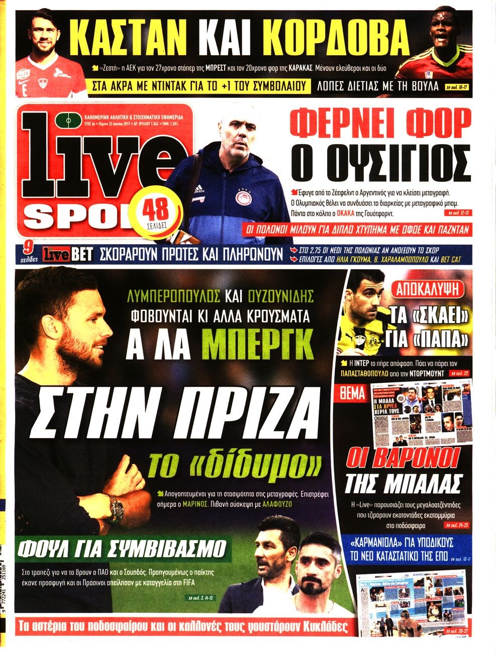 Οι αθλητικές εφημερίδες 22/6/2017 Enikos Newsroom 07:06, Πέμπτη 22 Ιουνίου 2017 Media Διαβάστε τα σημερινά πρωτοσέλιδα των αθλητικών εφημερίδων: ΑΘΛΗΤΙΚΕΣ ΕΦΗΜΕΡΙΔΕΣ ΠΡΩΤΟΣΕΛΙΔΑ Μοιράσου το: σχολίασε κι εσύ (0 σχόλια) Ακολουθήστε το enikos.gr στο Google News και μάθετε πρώτοι όλες τις ειδήσεις Δείτε όλες τις τελευταίες ειδήσεις από την Ελλάδα και τον Κόσμο στο enikos.gr Ειδήσεις Ροή Ειδήσεων 4 ώρες πριν Μεσόγειος: Η διαδρομή του ρωσικού τάνκερ «Qendil» και η στοχευμένη επίθεση της Ουκρανίας με drone – Ο Πούτιν προειδοποίησε για αντίποινα 27 λεπτά πριν Αγρότες: Έκλεισαν για μία ώρα την παρακαμπτήρια της Ιόνιας Οδού στη θέση Χαλίκι 2 ώρες πριν Εμπλοκή και αερομαχίες με οπλισμένα τουρκικά F-16 στο Αιγαίο 2 ώρες πριν Πούτιν: «Ναι, είμαι ερωτευμένος» – Βίντεο από τη σπάνια προσωπική παραδοχή του 31 λεπτά πριν Ανδρέας Λυκουρέντζος: Υπέβαλε την παραίτησή του ο πρόεδρος του ΕΛΓΑ, αλλά δεν έγινε δεκτή – Όλο το παρασκήνιο 41 λεπτά πριν Αριθμολογία: Οι άνθρωποι που έχουν γεννηθεί αυτές τις 4 ημερομηνίες, συχνά παρεξηγούνται – «Η καλοσύνη τους κρύβει τεράστια δύναμη» 3 ώρες πριν Μήπως έχετε χάσει τον εαυτό σας στη σχέση σας; 7 «αθόρυβες» υποχωρήσεις που μάλλον κάνατε, χωρίς να το συνειδητοποιήσετε 2 ώρες πριν Ξεχάστε το καθάρισμα το Σαββατοκύριακο: Ο «κανόνας των 20 λεπτών» που θα σας λύσει τα χέρια 5 ώρες πριν Κουίζ για την παλιά Αθήνα: Αναγνωρίζετε την περιοχή; Έχετε περάσει 100% από εκεί 4 λεπτά πριν Ολυμπιακός – Βιλερμπάν: Μάτωσε στο πρόσωπο ο Παπανικολάου έπειτα από αγκωνιά του Βοτιέ – ΦΩΤΟ 12 λεπτά πριν Συνεχίζει να προκαλεί ο Μίτσκοσκι: «Για μένα το όνομα Μακεδονία είναι ιερό» 22 λεπτά πριν Ο Γιάννης Κακλέας σκηνοθετεί Βερόνικα Δαβάκη και Ιβάν Σβιτάιλο στη «Locandiera» 27 λεπτά πριν Αγρότες: Έκλεισαν για μία ώρα την παρακαμπτήρια της Ιόνιας Οδού στη θέση Χαλίκι 31 λεπτά πριν Ανδρέας Λυκουρέντζος: Υπέβαλε την παραίτησή του ο πρόεδρος του ΕΛΓΑ, αλλά δεν έγινε δεκτή – Όλο το παρασκήνιο ENIKOS NETWORK Το ΕΚΑΒ τιμήθηκε από την Ακαδημία Αθηνών για τα 40 χρόνια προσφοράς του Έχετε πραγματικά μεγάλη καρδιά; 10 χαρακτηριστικά όσων έχουν καλοσύνη Έρχονται νέες προσλήψεις σε Δήμο – Όλες οι λεπτομέρειες Επίδομα παιδιού: Πότε ανοίγει ξανά η πλατφόρμα για τις αιτήσεις Χαρτογραφώντας το «σημείο χωρίς επιστροφή»: Για πρώτη φορά αποκαλύπτεται με λεπτομέρεια το ακανθώδες όριο της ατμόσφαιρας τ... Η Google καταργεί τη λειτουργία «dark web report» – Πώς θα μπορούν οι χρήστες να διαγράφουν τα δεδομένα τους περισσότερα 20:37 , Παρασκευή 19 Δεκεμβρίου 2025 Don’t Forget The Lyrics: Η Έλλη Κοκκίνου υποδέχεται 4 παίκτες που θα κάνουν τα πάντα για να μη χάσουν ούτε… μισή λέξη από τους στίχους Το «Don’t Forget The Lyrics» επιστρέφει απόψε, Παρασκευή 19 Δεκεμβρίου, στις 21:00 με νέο επει... 19:31 , Παρασκευή 19 Δεκεμβρίου 2025 GNTM: Απόψε ο μεγάλος τελικός για τους 4 φιναλίστ Έπειτα από μήνες γεμάτους μόδα, δημιουργία και έντονες αναμετρήσεις, το GNTM 2025 κορυφώνεται,... 18:11 , Παρασκευή 19 Δεκεμβρίου 2025 Το σόι σου: Ο Άρης έρχεται στην Ελλάδα για τις γιορτές των Χριστουγέννων – Τι θα δούμε στο αποψινό εορταστικό επεισόδιο Ένα απολαυστικό, εορταστικό επεισόδιο της σειράς “Το σόι σου”, γεμάτο ευτράπελα αλ... 15:15 , Παρασκευή 19 Δεκεμβρίου 2025 Την Κυριακή με τη Realnews: Ό,τι και αν αγοράσεις, σκανάρεις και κερδίζεις! Την Κυριακή με τη Realnews: Ό,τι και αν αγοράσεις, σκανάρεις και κερδίζεις! Με το PADU app, το... ΤΕΛΕΥΤΑΙΕΣ ΕΙΔΗΣΕΙΣ 4 λεπτά πριν Ολυμπιακός – Βιλερμπάν: Μάτωσε στο πρόσωπο ο... 12 λεπτά πριν Συνεχ