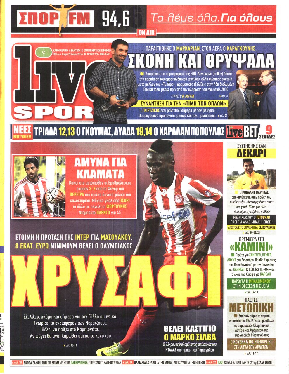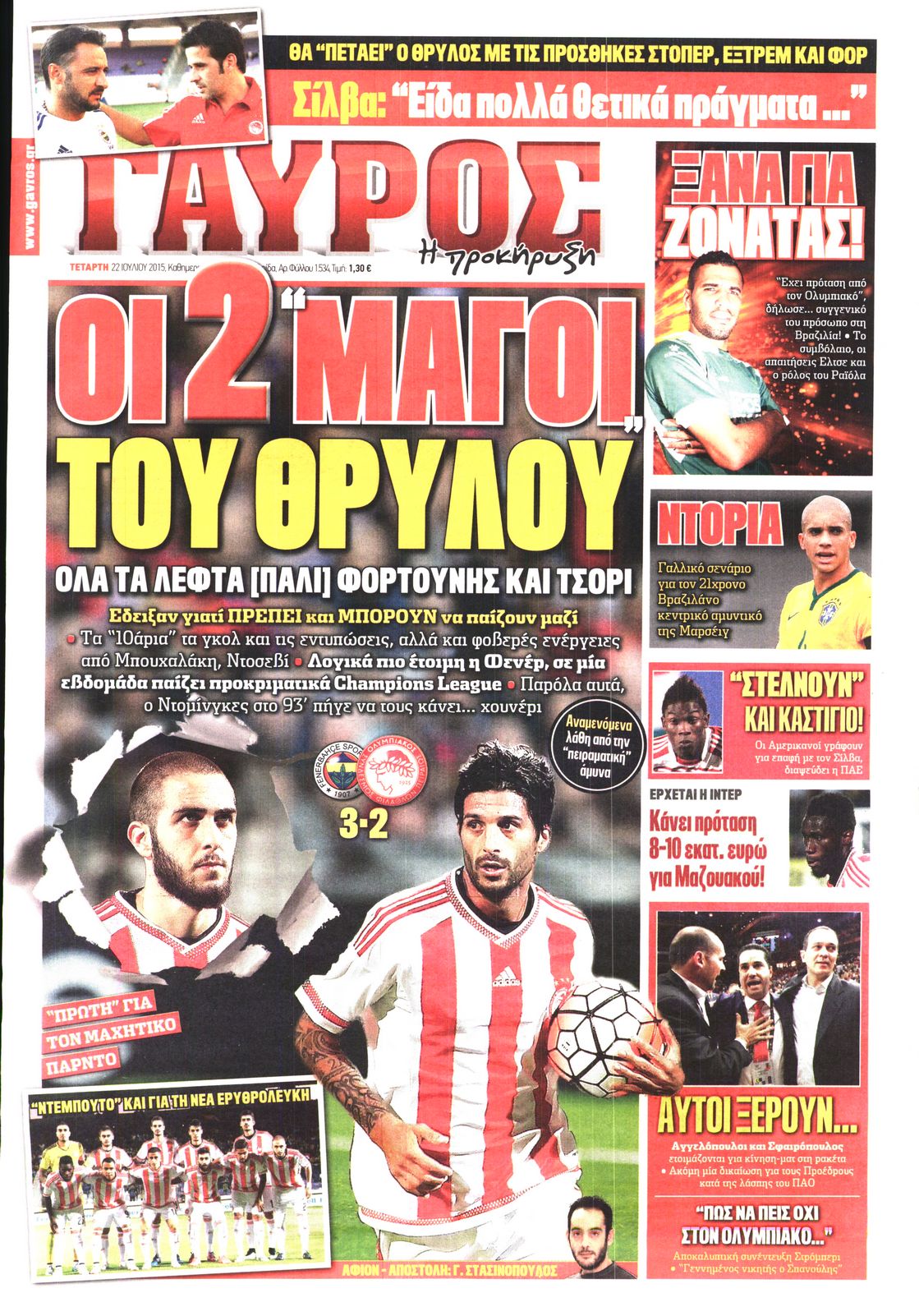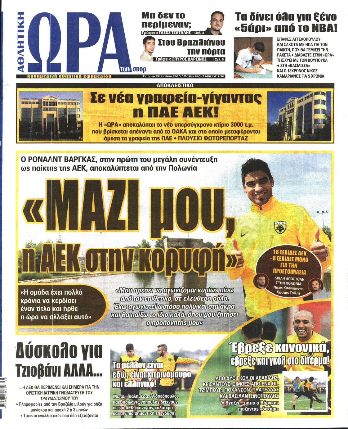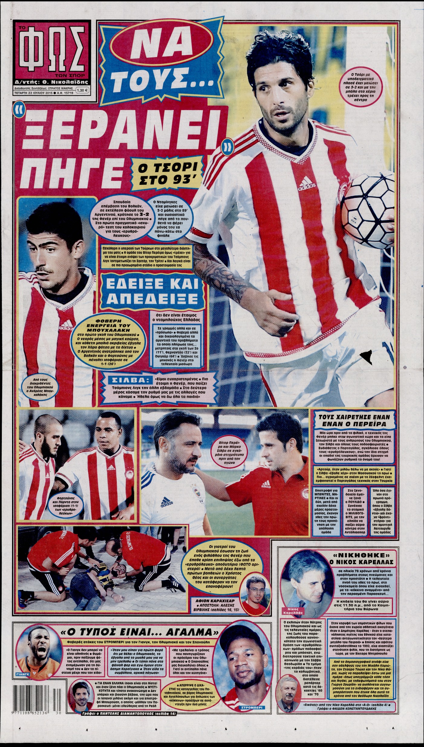 Οι αθλητικές εφημερίδες 22/7/2015 Enikos Newsroom 08:16, Τετάρτη 22 Ιουλίου 2015 Media Διαβάστε τα σημερινά πρωτοσέλιδα των αθλητικών εφημερίδων. ΑΘΛΗΤΙΚΕΣ ΕΦΗΜΕΡΙΔΕΣ ΕΦΗΜΕΡΙΔΕΣ ΠΡΩΤΟΣΕΛΙΔΑ Μοιράσου το: σχολίασε κι εσύ (0 σχόλια) Ακολουθήστε το enikos.gr στο Google News και μάθετε πρώτοι όλες τις ειδήσεις Δείτε όλες τις τελευταίες ειδήσεις από την Ελλάδα και τον Κόσμο στο enikos.gr Ειδήσεις Ροή Ειδήσεων 40 λεπτά πριν Χριστούγεννα στα μπλόκα: Επιμένουν στις κινητοποιήσεις τους οι αγρότες – Ανοίγουν τα διόδια το Σαββατοκύριακο 1 ώρα πριν Ουκρανία: Η άνευ προηγουμένου επίθεση σε ρωσικό τάνκερ στη Μεσόγειο και το μήνυμα προς στον Πούτιν – Το «μακρύ χέρι» του Κιέβου 18 λεπτά πριν Πούτιν: Τα μηνύματα σε Ευρώπη και ΝΑΤΟ από το μαραθώνιο «σόου» του – Η απαίτηση για «σεβασμό» και η ειρήνη «με τους όρους» της Μόσχας 1 ώρα πριν Τραμπ: Δεν αποκλείει την πιθανότητα ενός πολέμου στη Βενεζουέλα – «Ο Μαδούρο ξέρει καλύτερα από τον καθένα τι ακριβώς θέλω» 2 ώρες πριν Συνεχίζει να προκαλεί ο Μίτσκοσκι: «Για μένα το όνομα Μακεδονία είναι ιερό» 3 ώρες πριν Πούτιν: «Ναι, είμαι ερωτευμένος» – Βίντεο από τη σπάνια προσωπική παραδοχή του 2 ώρες πριν Αριθμολογία: Οι άνθρωποι που έχουν γεννηθεί αυτές τις 4 ημερομηνίες, συχνά παρεξηγούνται – «Η καλοσύνη τους κρύβει τεράστια δύναμη» 1 ώρα πριν Ύπνος: Μια κρυφή κατάσταση του εγκεφάλου πριν από τον ύπνο μπορεί να είναι το “κλειδί” για υψηλή ευφυΐα και δημιουργικότητα 3 ώρες πριν Ξεχάστε το καθάρισμα το Σαββατοκύριακο: Ο «κανόνας των 20 λεπτών» που θα σας λύσει τα χέρια 19 λεπτά πριν Ανακαλύφθηκαν αρχαία χρυσά νομίσματα 2.200 ετών που απεικονίζουν τον θεό Απόλλωνα – Η άγνωστη σύνδεση με τον Φίλιππο Β΄ της Μακεδονίας 3 λεπτά πριν Ολυμπιακός – Βιλερμπάν 107-84: Επιστροφή στις νίκες με… προπόνηση 9 λεπτά πριν Νέος Κόσμος: Συνελήφθη 41χρονος με ένταλμα από την Τουρκία για εμπόριο ναρκωτικών και ληστεία 18 λεπτά πριν Πούτιν: Τα μηνύματα σε Ευρώπη και ΝΑΤΟ από το μαραθώνιο «σόου» του – Η απαίτηση για «σεβασμό» και η ειρήνη «με τους όρους» της Μόσχας 19 λεπτά πριν Ανακαλύφθηκαν αρχαία χρυσά νομίσματα 2.200 ετών που απεικονίζουν τον θεό Απόλλωνα – Η άγνωστη σύνδεση με τον Φίλιππο Β΄ της Μακεδονίας 23 λεπτά πριν Νίκος Ξυλούρης: Συγκινεί η χήρα του σπουδαίου καλλιτέχνη – «Ευχαριστώ όλο τον κόσμο που τον κρατάει ζωντανό 45 χρόνια» ENIKOS NETWORK Το ΕΚΑΒ τιμήθηκε από την Ακαδημία Αθηνών για τα 40 χρόνια προσφοράς του Έχετε πραγματικά μεγάλη καρδιά; 10 χαρακτηριστικά όσων έχουν καλοσύνη Πλήρης επάρκεια προϊόντων στις λαϊκές της Αττικής, παρά τις αγροτικές κινητοποιήσεις – Τι απαντούν οι πωλητές ΑΑΔΕ: Νέες αναβαθμίσεις στο Ψηφιακό Πελατολόγιο και την εφαρμογή myDATAapp – Τι πρέπει να γνωρίζετε Χαρτογραφώντας το «σημείο χωρίς επιστροφή»: Για πρώτη φορά αποκαλύπτεται με λεπτομέρεια το ακανθώδες όριο της ατμόσφαιρας τ... Η Google καταργεί τη λειτουργία «dark web report» – Πώς θα μπορούν οι χρήστες να διαγράφουν τα δεδομένα τους περισσότερα 22:42 , Παρασκευή 19 Δεκεμβρίου 2025 Γιώργος Γιαννόπουλος για “Το σόι σου”: “Είναι ευτυχία και ευλογία αυτή η σειρά” «Είναι ευτυχία και ευλογία η συγκυρία αυτής της σειράς», θα πει ο Γιώργος Γιαννόπουλος -ο αγαπ... 20:37 , Παρασκευή 19 Δεκεμβρίου 2025 Don’t Forget The Lyrics: Η Έλλη Κοκκίνου υποδέχεται 4 παίκτες που θα κάνουν τα πάντα για να μη χάσουν ούτε… μισή λέξη από τους στίχους Το «Don’t Forget The Lyrics» επιστρέφει απόψε, Παρασκευή 19 Δεκεμβρίου, στις 21:00 με νέο επει... 19:31 , Παρασκευή 1