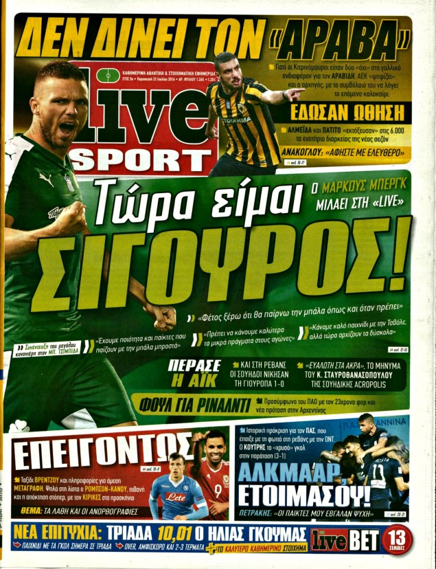 Oι αθλητικές εφημερίδες 22/7/2016 Enikos Newsroom 04:44, Παρασκευή 22 Ιουλίου 2016 Media Διαβάστε τα σημερινά πρωτοσέλιδα των αθλητικών εφημερίδων: ΑΘΛΗΤΙΚΕΣ ΕΦΗΜΕΡΙΔΕΣ ΠΡΩΤΟΣΕΛΙΔΑ Μοιράσου το: σχολίασε κι εσύ (0 σχόλια) Ακολουθήστε το enikos.gr στο Google News και μάθετε πρώτοι όλες τις ειδήσεις Δείτε όλες τις τελευταίες ειδήσεις από την Ελλάδα και τον Κόσμο στο enikos.gr Ειδήσεις Ροή Ειδήσεων 2 ώρες πριν Ευρωπαϊκή Ένωση: Συμφωνία για δάνειο 90 δισ. ευρώ στην Ουκρανία τη διετία 2026-2027 7 ώρες πριν ΟΠΕΚΕΠΕ: Προφυλακιστέος ο φερόμενος αρχηγός και ο λογιστής της εγκληματικής οργάνωσης 8 ώρες πριν Αυξάνουν την πίεση προς την κυβέρνηση οι αγρότες: Κλείνουν παρακαμπτήριους και ανοίγουν διόδια – Τι θα γίνει τις γιορτές 8 ώρες πριν Φοινικούντα: Το Σάββατο απολογείται ο 30χρονος γιος γνωστού επιχειρηματία της Πλάκας που παραδόθηκε – Όσα είπε στους αστυνομικούς και ο ρόλος του στο έγκλημα 6 ώρες πριν ΑΕΚ – Κραϊόβα 3-2: Επική ανατροπή και πρόκριση στους «16» του Conference League η Ένωση 8 ώρες πριν Αρχαιολόγοι ανακάλυψαν ρωμαϊκά τεχνουργήματα από μια πόλη που δεν υπήρξε ποτέ – Τα τρία εντυπωσιακά κτίρια και ο αμφορέας με τις… σαρδέλες 9 ώρες πριν Ύπνος: Η απλή βραδινή ρουτίνα για να προστατεύσετε τα μαλλιά σας από το κρύο κατά τη διάρκεια του χειμώνα 10 ώρες πριν Manifesting: Πώς να συναντήσετε τον σύντροφο της ζωής σας, ανάλογα με τον μήνα γέννησής σας 2 ημέρες πριν 20 χρόνια τα Χριστούγεννα ξεκινούν στα Public με μεγάλη ποικιλία σε δώρα! 4 λεπτά πριν Πέντε νεκροί σε πλήγματα των ΗΠΑ κατά δύο σκαφών που φέρεται να μετέφεραν ναρκωτικά στον Ανατολικό Ειρηνικό 13 λεπτά πριν ΕΥΔΑΠ: Αλλάζουν τα τιμολόγια του νερού 20 λεπτά πριν Οπτική ψευδαίσθηση: Μόνο αν έχεις αετίσια ματιά θα βρεις τον παπαγάλο σε 12 δευτερόλεπτα 27 λεπτά πριν Αθήνα: Βρέθηκε η 16χρονη που είχε εξαφανιστεί από τις 6 Δεκεμβρίου – Η ανακοίνωση από το «Χαμόγελο του Παιδιού» 35 λεπτά πριν Κρύα χέρια και πόδια: Γιατρός εξηγεί ποια είναι η αίτια και πότε πρέπει να ανησυχήσετε ENIKOS NETWORK Σε περίοδο αυξημένης δραστηριότητας η γρίπη στην Ελλάδα-Μέτρα προστασίας από τον ΕΟΔΥ Σκέφτεστε συνέχεια συζητήσεις που έχετε κάνει; Τι σημαίνει αυτό, σύμφωνα με ειδικό Στεγαστικό: Τι λέει η ΠΟΜΙΔΑ για τα νέα μέτρα που ανακοίνωσε ο Κυριάκος Μητσοτάκης Λαγκάρντ: Αισιόδοξη για την ανάπτυξη της Ευρωζώνης, αβέβαιη για τον πληθωρισμό Χαρτογραφώντας το «σημείο χωρίς επιστροφή»: Για πρώτη φορά αποκαλύπτεται με λεπτομέρεια το ακανθώδες όριο της ατμόσφαιρας τ... Η Google καταργεί τη λειτουργία «dark web report» – Πώς θα μπορούν οι χρήστες να διαγράφουν τα δεδομένα τους περισσότερα 05:48 , Παρασκευή 19 Δεκεμβρίου 2025 Οι οικονομικές εφημερίδες 19/12/2025 Διαβάστε τα πρωτοσέλιδα από τις οικονομικές εφημερίδες, σήμερα 19/12/2025. 05:43 , Παρασκευή 19 Δεκεμβρίου 2025 Οι αθλητικές εφημερίδες 19/12/2025 Διαβάστε τα πρωτοσέλιδα από τις αθλητικές εφημερίδες, σήμερα 19/12/2025. 05:38 , Παρασκευή 19 Δεκεμβρίου 2025 Οι πολιτικές εφημερίδες 19/12/2025 Διαβάστε τα πρωτοσέλιδα από τις πολιτικές εφημερίδες, σήμερα 19/12/2025. 02:50 , Παρασκευή 19 Δεκεμβρίου 2025 GNTM: «Κλείδωσαν» οι τέσσερις φιναλίστ – Μεγάλη ανατροπή στις τελευταίες αποχωρήσεις Για προτελευταία φορά εμφανίστηκαν στο πλατό του GNTM οι φιναλίστ του φετινού κύκλου, το βράδυ... ΤΕΛΕΥΤΑΙΕΣ ΕΙΔΗΣΕΙΣ 4 λεπτά πριν Πέντε νεκροί σε πλήγματα των ΗΠΑ κατά δύο σκαφών που... 13 λεπτά πριν ΕΥΔΑΠ: Αλλάζουν τα τιμολόγια του νερού 20 λεπτά πριν Οπτική ψευδαίσθηση: Μόνο αν έχεις αετίσια ματιά θα... 27 λεπτά πριν 