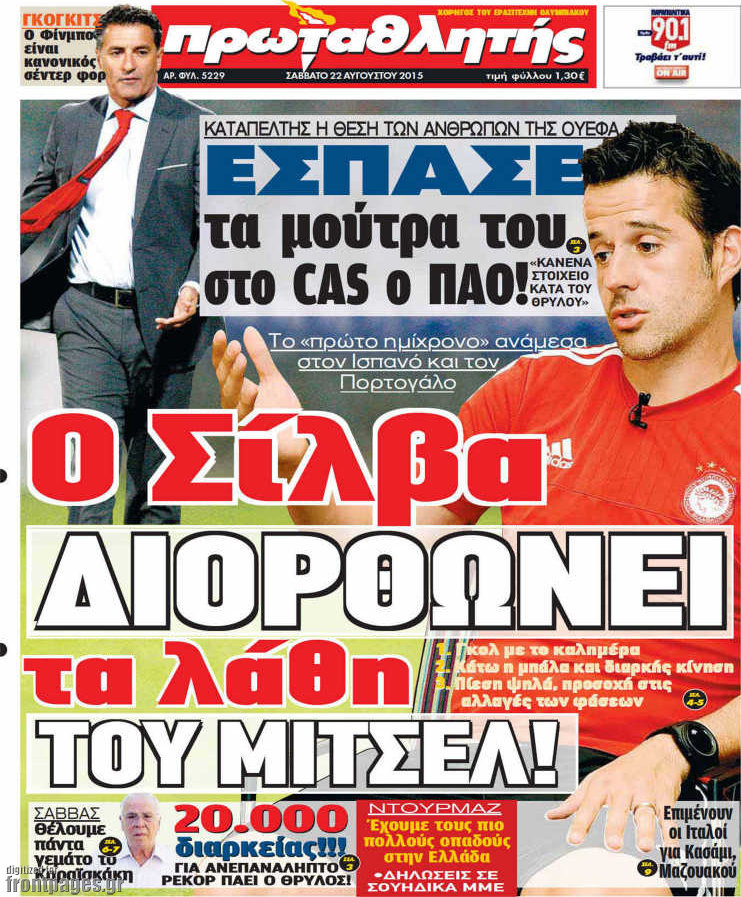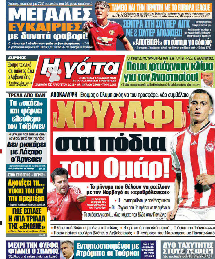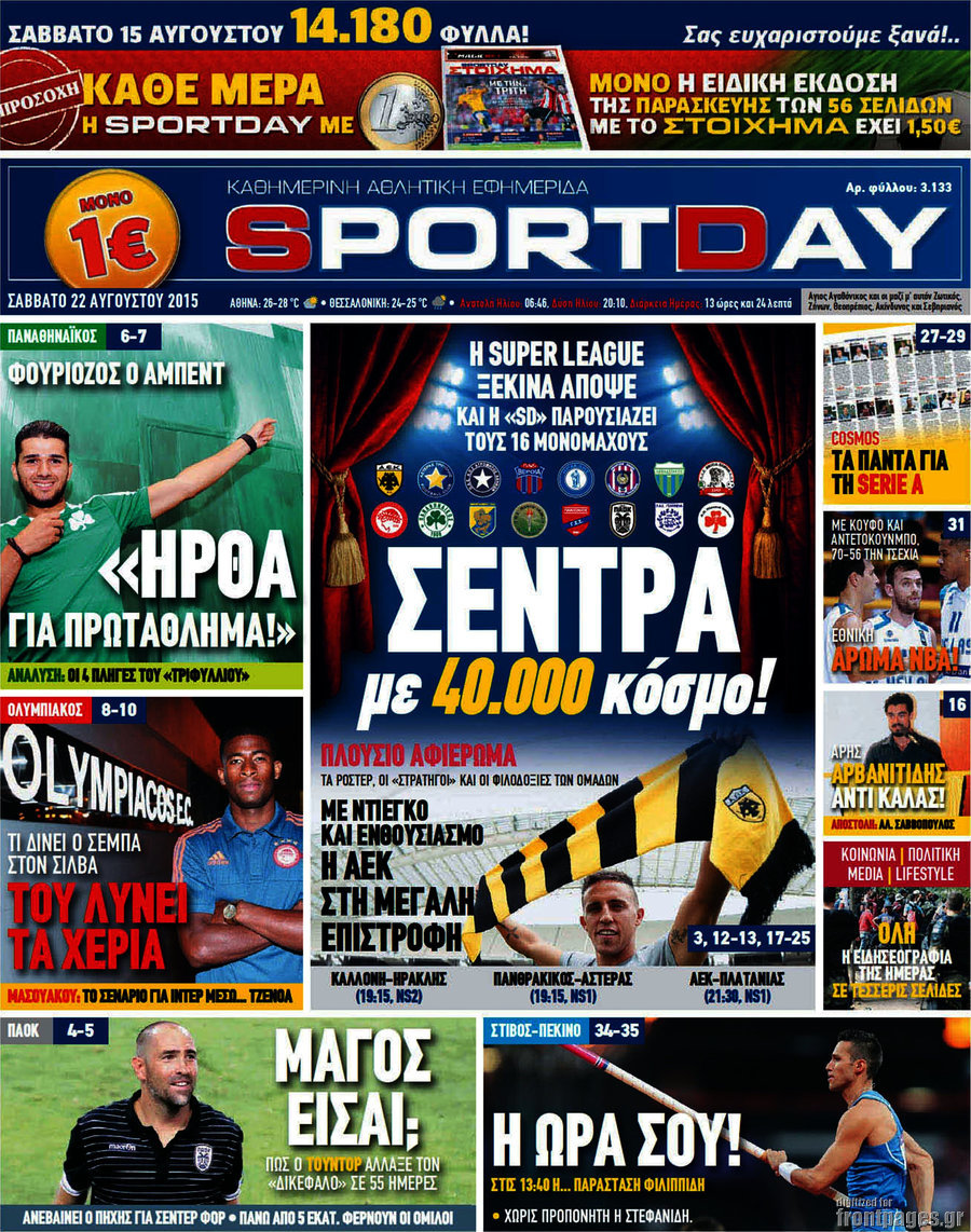 Oι αθλητικές εφημερίδες 22/8/2015 Enikos Newsroom 07:47, Σάββατο 22 Αυγούστου 2015 Media Διαβάστε τα σημερινά πρωτοσέλιδα των αθλητικών εφημερίδων: ΑΘΛΗΤΙΚΕΣ ΕΦΗΜΕΡΙΔΕΣ ΠΡΩΤΟΣΕΛΙΔΑ Μοιράσου το: σχολίασε κι εσύ (0 σχόλια) Ακολουθήστε το enikos.gr στο Google News και μάθετε πρώτοι όλες τις ειδήσεις Δείτε όλες τις τελευταίες ειδήσεις από την Ελλάδα και τον Κόσμο στο enikos.gr Ειδήσεις Ροή Ειδήσεων 20 λεπτά πριν «Έλληνας Εσκομπάρ»: Φωτογραφίες με τους 4 τόνους κοκαΐνης που κατασχέθηκαν από το σκάφος «Ουρανία» 3 ώρες πριν Η Ουκρανία χτύπησε τάνκερ του σκιώδους στόλου της Ρωσίας στη Μεσόγειο – Έπλεε νότια της Κρήτης 2 ώρες πριν Πούτιν: Σαρκαστικά μηνύματα, παράπονα και απρόοπτα στη συνέντευξη Τύπου – Η πρόταση γάμου on air και οι ερωτήσεις για τα αγγούρια και τους… εξωγήινους 2 ώρες πριν Η απάντηση της κυβέρνησης στα αιτήματα των αγροτών: 16+4 υλοποιούνται ή βρίσκονται υπό επεξεργασία για να βρεθεί λύση – 7 δεν μπορούν να επιλυθούν 3 ώρες πριν Εξώδικο επιχειρηματία στον Γιώργο Μαζωνάκη – Τι απαντά στις καταγγελίες του τραγουδιστή 1 ώρα πριν Τα 5 ζώδια που ευνοούνται στην ερωτική ζωή τους την επόμενη εβδομάδα – «Η ενέργεια του Αιγόκερου φέρνει αγάπη και σταθερότητα» 6 ώρες πριν Γεμάτος νεροχύτης; 5 σοβαρές ευθύνες που «φοβίζουν» όσους αφήνουν άπλυτα πιάτα 5 ώρες πριν Ειδικός μοιράζεται 6 κόλπα για να διατηρείστε σε φόρμα με πάνω από 40 ώρες εργασίας την εβδομάδα: «Προπονηθείτε πριν από τη δουλειά, όχι μετά» 2 ημέρες πριν 20 χρόνια τα Χριστούγεννα ξεκινούν στα Public με μεγάλη ποικιλία σε δώρα! 26 δευτερόλεπτα πριν Γαλλία: Ξαφνική «επίσκεψη» των αγροτών στο σπίτι του Μακρόν – Πέταξαν κοπριά, λάχανα, λάστιχα και άφησαν ένα φέρετρο – ΒΙΝΤΕΟ 7 λεπτά πριν Από το Ορμένιο ως τα Μάλγαρα κι από τη Σιάτιστα μέχρι τη Νίκαια: Μπλόκα σε όλη την Ελλάδα – Το Σάββατο ανοίγουν τα διόδια οι αγρότες 8 λεπτά πριν Ταϊβάν: 3 νεκροί έπειτα από επίθεση άνδρα με μαχαίρι – Ο δράστης σκοτώθηκε σε αστυνομική καταδίωξη – ΒΙΝΤΕΟ 11 λεπτά πριν Άρης Μουγκοπέτρος για τα προσθετικά μέλη: «Οι κόρες μου ήρθαν, μου χαϊδέψαν το χέρι και μου είπαν “μπαμπά το μιμί πέρασε”» 16 λεπτά πριν Πούτιν: «Δεν είμαι υπεύθυνος» για τους θανάτους στην Ουκρανία – Σχέδιο για κατάπαυση του πυρός αν ο Ζελένσκι κάνει εκλογές ENIKOS NETWORK ΕΛΣΤΑΤ: Αύξηση κατά 1,7% των επαγγελματιών υγείας το 2024 Τάξη στις ιατρικές διαφημίσεις για την προστασία των πολιτών βάζει ο ΙΣΑ Μετρό: Ενισχύονται τα δρομολόγια – Δείτε ποιες ημέρες Παπαθανάσης για νέο Εθνικό Πρόγραμμα Ανάπτυξης 2026-2030: Είναι υπερδιπλάσιο από αυτό της προηγούμενης προγραμματικής περιό... Χαρτογραφώντας το «σημείο χωρίς επιστροφή»: Για πρώτη φορά αποκαλύπτεται με λεπτομέρεια το ακανθώδες όριο της ατμόσφαιρας τ... Η Google καταργεί τη λειτουργία «dark web report» – Πώς θα μπορούν οι χρήστες να διαγράφουν τα δεδομένα τους περισσότερα 15:15 , Παρασκευή 19 Δεκεμβρίου 2025 Την Κυριακή με τη Realnews: Ό,τι και αν αγοράσεις, σκανάρεις και κερδίζεις! Την Κυριακή με τη Realnews: Ό,τι και αν αγοράσεις, σκανάρεις και κερδίζεις! Με το PADU app, το... 08:00 , Παρασκευή 19 Δεκεμβρίου 2025 Την Κυριακή με τη Realnews: Δωροεπιταγή 10€ Δωροεπιταγή αξίας 10€ για αγορές άνω των 60€ από τα πολυκαταστήματα FactoryOutlet H προσφορά ι... 05:48 , Παρασκευή 19 Δεκεμβρίου 2025 Οι οικονομικές εφημερίδες 19/12/2025 Διαβάστε τα πρωτοσέλιδα από τις οικονομικές εφημερίδες, σήμερα 19/12/2025. 05:43 , Παρασκευή 19 Δεκεμβρίου 2025 Οι αθλητικές εφημερίδες 19/12/2025 Διαβάστε τα πρωτοσέλιδα από τις αθλητικές εφη