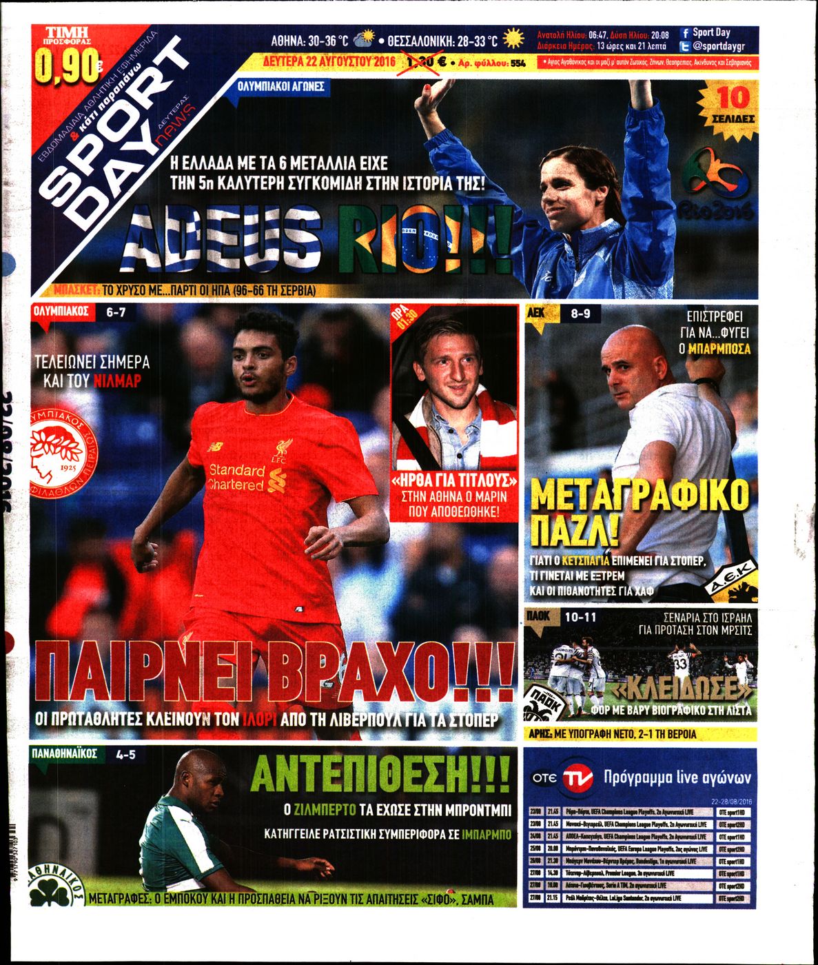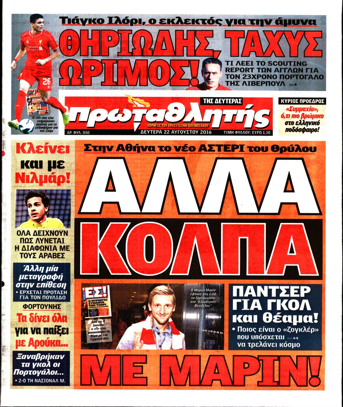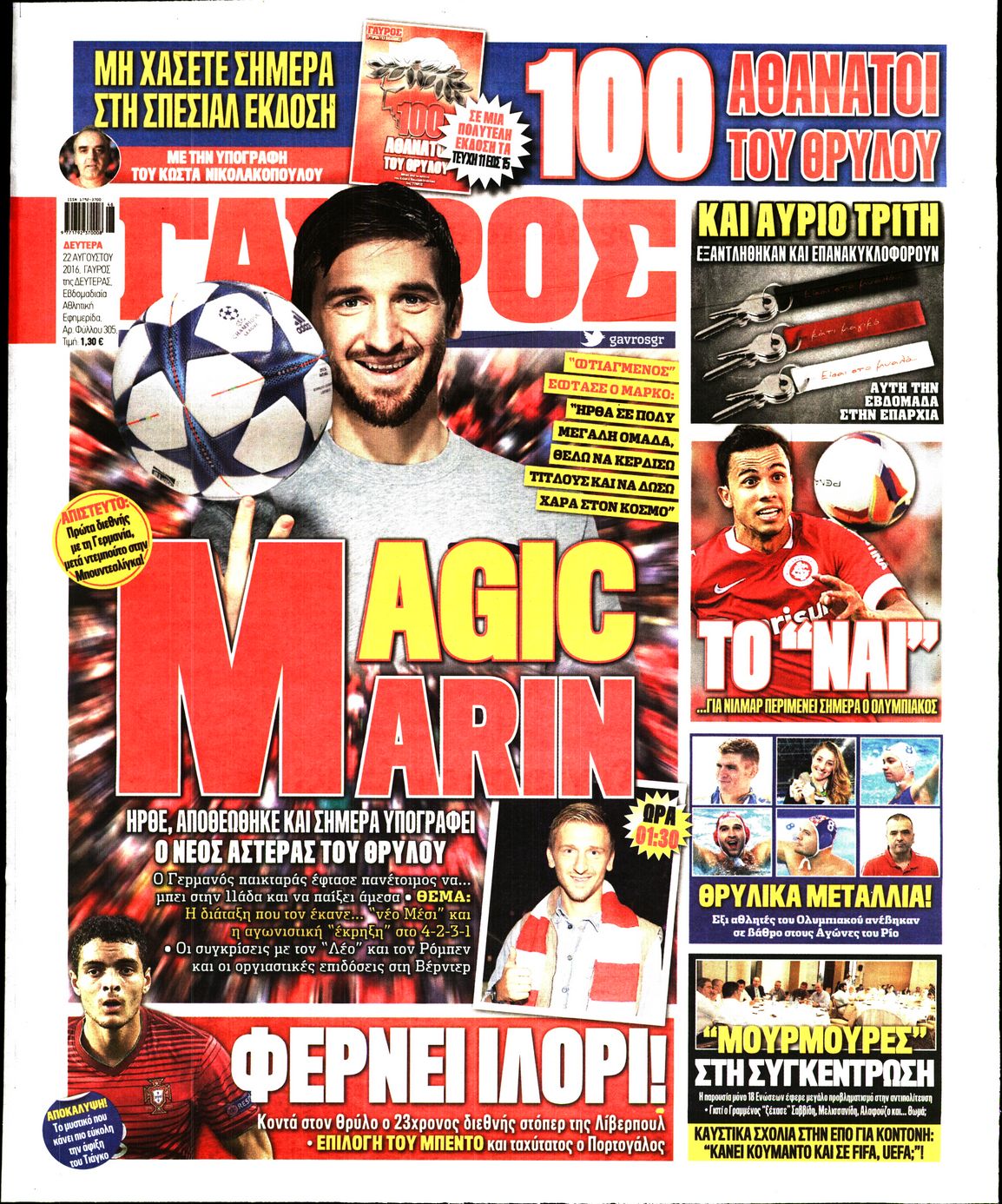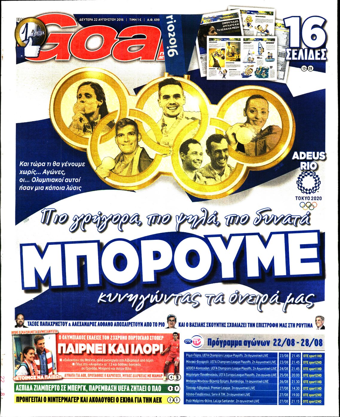 Oι αθλητικές εφημερίδες 22/8/2016 Enikos Newsroom 05:22, Δευτέρα 22 Αυγούστου 2016 Media Διαβάστε τα σημερινά πρωτοσέλιδα των αθλητικών εφημερίδων: ΑΘΛΗΤΙΚΕΣ ΕΦΗΜΕΡΙΔΕΣ ΠΡΩΤΟΣΕΛΙΔΑ Μοιράσου το: σχολίασε κι εσύ (0 σχόλια) Ακολουθήστε το enikos.gr στο Google News και μάθετε πρώτοι όλες τις ειδήσεις Δείτε όλες τις τελευταίες ειδήσεις από την Ελλάδα και τον Κόσμο στο enikos.gr Ειδήσεις Ροή Ειδήσεων 57 λεπτά πριν Δίκη Βαλυράκη: Καταθέτει ο βασικός αυτόπτης μάρτυρας – «Δέχτηκα πιέσεις να μη μιλήσω, πήγα να ψωνίσω και αυτοκίνητο με χτύπησε στο πόδι» 2 ώρες πριν Γιώργος Μαζωνάκης: «Δεν ζήτησα χρήματα, παρά μόνο ηθική δικαίωση» – Οι πρώτες δηλώσεις του 22χρονου μετά την κατάθεση της μήνυσης 47 λεπτά πριν Ώρα αποφάσεων για τους αγρότες – Ξεκίνησε η πανελλαδική σύσκεψη μπλόκων στις Σέρρες – ΦΩΤΟ 5 ώρες πριν Συναγερμός και στην Ελλάδα για τη «σούπερ γρίπη»: Πόσο σοβαρή είναι και ποιοι θεωρούνται πιο ευάλωτοι – 3 ειδικοί μιλούν στο enikos.gr 2 ώρες πριν Γαλλία: Η οργή των αγροτών – Αναμένεται η ομιλία του Μακρόν, τα τρακτέρ συγκεντρώνονται μαζικά στις Βρυξέλλες 6 ώρες πριν Τα 4 ζώδια που λαμβάνουν ένα ισχυρό σημάδι από το σύμπαν – «Αποκαλύπτεται κάτι που μπορεί να αλλάξει τη ζωή μας» 5 ώρες πριν Αν κάνετε συνεχώς αυτά τα 8 πράγματα με τα κατοικίδιά σας, σας λείπει η ανθρώπινη επαφή 1 ώρα πριν Αυτό που κρύβεται κάτω από τη Γροιλανδία θα μπορούσε να ανατρέψει όσα γνωρίζουμε για την άνοδο της στάθμης των θαλασσών 1 ημέρα πριν 20 χρόνια τα Χριστούγεννα ξεκινούν στα Public με μεγάλη ποικιλία σε δώρα! 6 λεπτά πριν Ευλογιά αιγοπροβάτων: Νέες αποζημιώσεις ύψους 26 εκατ. ευρώ σε κτηνοτρόφους – Η κατανομή ανά Περιφέρεια 10 λεπτά πριν Το Σπίτι Δίπλα Στο Ποτάμι: Το καθηλωτικό τελευταίο επεισόδιο για το 2025 απόψε στις 22:30 15 λεπτά πριν Βραζιλία: Νεκρή 25χρονη influencer που έπεσε από τον 10ο όροφο έπειτα από καβγά με τον σύζυγό της – Συνελήφθη ο 40χρονος – ΒΙΝΤΕΟ-σοκ 19 λεπτά πριν Μεσολόγγι: Εγκατέλειψαν κουτάβια δίπλα από αυλάκι – Τα έσωσε η Πυροσβεστική – ΒΙΝΤΕΟ 24 λεπτά πριν Τσουκαλάς: Η κυβέρνηση του «δεν ξέρω-δεν είδα-δεν άκουσα» νομίζει ότι θα βυθιστεί σε αμνησία όλη η ελληνική κοινωνία για το σκάνδαλο στον ΟΠΕΚΕΠΕ ENIKOS NETWORK 100 χρόνια ΠΙΣ: Ένας αιώνας προσφοράς στην Ιατρική και την κοινωνία Ένα ποτήρι την ημέρα από αυτόν τον χυμό μειώνει τη χοληστερίνη, τη φλεγμονή και την πίεση Αυτόματη απόδοση ΦΠΑ: Τα δύο σενάρια που επεξεργάζεται η ΑΑΔΕ ΑΑΔΕ: Έρχεται το… ΔΕΟΣ – Όλες οι λεπτομέρειες για τον ενιαίο ελεγκτικό μηχανισμό για το οικονομικό έγκλημα Χαρτογραφώντας το «σημείο χωρίς επιστροφή»: Για πρώτη φορά αποκαλύπτεται με λεπτομέρεια το ακανθώδες όριο της ατμόσφαιρας τ... Η Google καταργεί τη λειτουργία «dark web report» – Πώς θα μπορούν οι χρήστες να διαγράφουν τα δεδομένα τους περισσότερα 15:52 , Πέμπτη 18 Δεκεμβρίου 2025 Το Σπίτι Δίπλα Στο Ποτάμι: Το καθηλωτικό τελευταίο επεισόδιο για το 2025 απόψε στις 22:30 Καθηλώνει το σημερινό επεισόδιο της σειράς “Το Σπίτι Δίπλα Στο Ποτάμι” που έρχεται... 15:20 , Πέμπτη 18 Δεκεμβρίου 2025 Άγιος έρωτας – Η Ελευθερία Αρβανιτάκη τραγουδά και ο Γιάννης Τσορτέκης καθηλώνει με τον χορό του Ο Κλεάνθης χορεύει στους ήχους της Ελευθερίας Αρβανιτάκη στη σειρά “Άγιος Έρωτας“.... 08:00 , Πέμπτη 18 Δεκεμβρίου 2025 Την Κυριακή με τη Realnews: Δωροεπιταγή 10€ Δωροεπιταγή αξίας 10€ για αγορές άνω των 60€ από τα πολυκαταστήματα FactoryOutlet H προσφορά ι... 07:50 , Πέμπτη 18 Δεκεμβρίου 2025 «Το σόι σου»: Backstage στα γυρίσματα για το εορταστικό επε