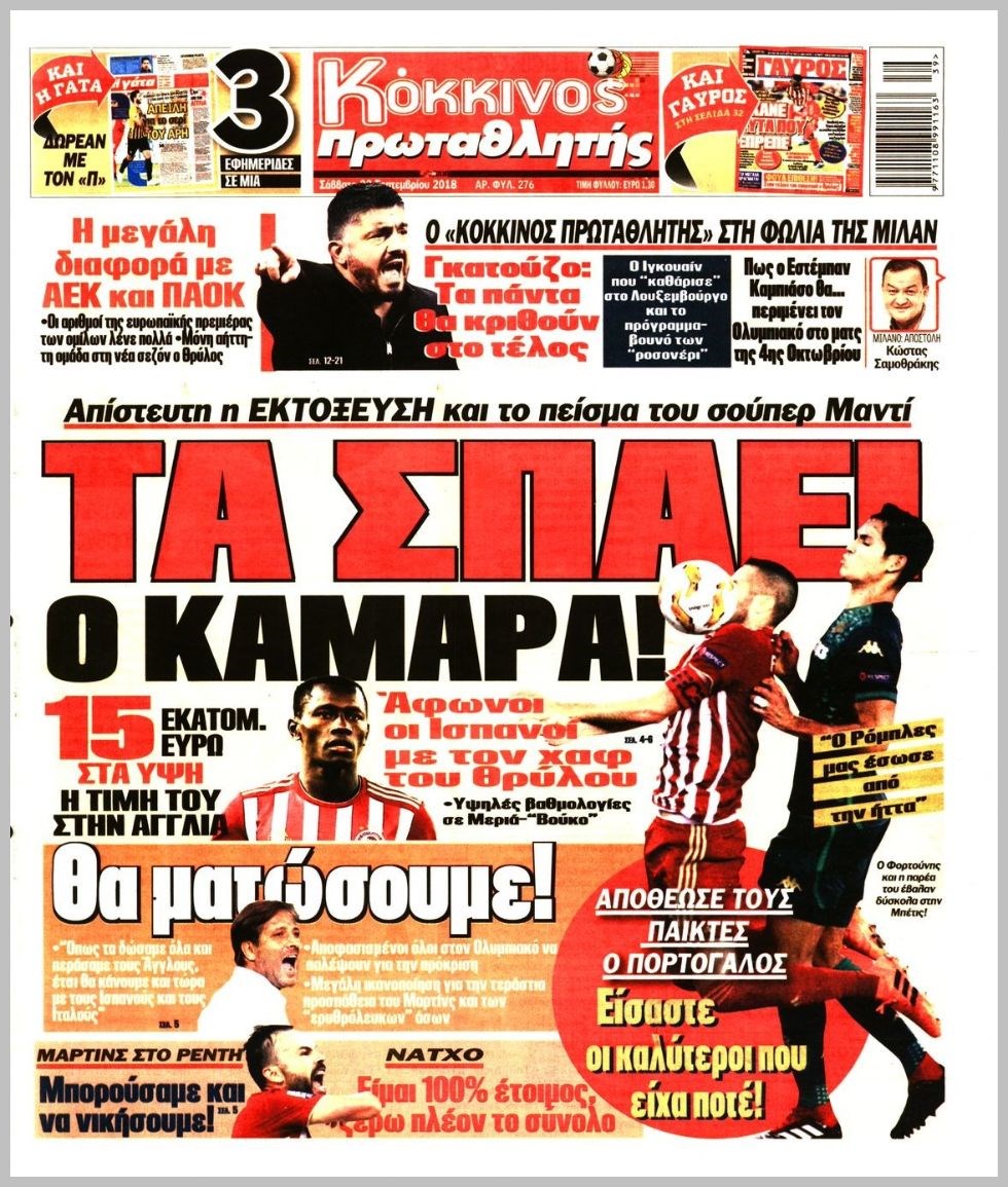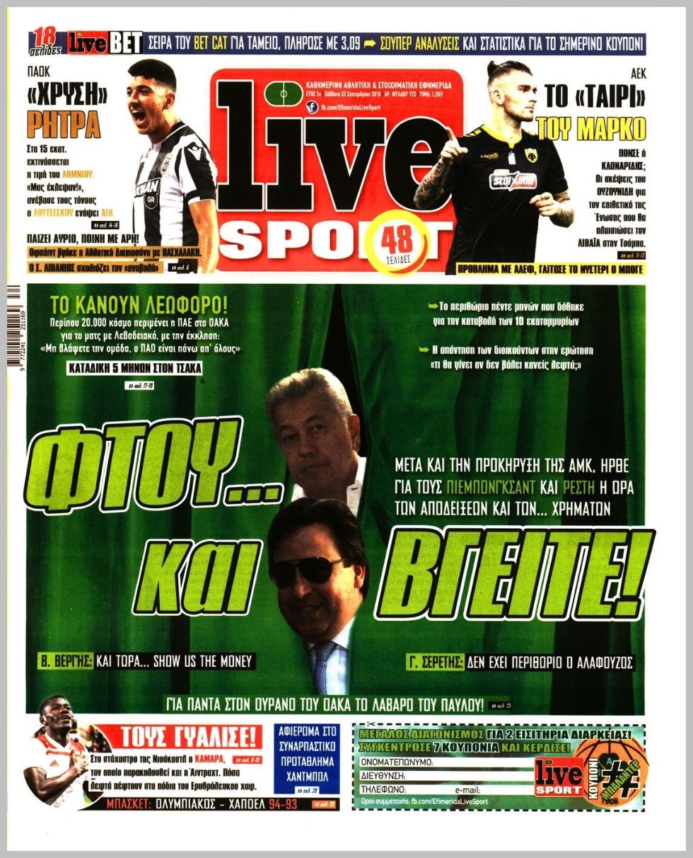 Οι αθλητικές εφημερίδες 22/9/2018 Enikos Newsroom 06:55, Σάββατο 22 Σεπτεμβρίου 2018 Media Διαβάστε τα πρωτοσέλιδα ΑΘΛΗΤΙΚΕΣ ΕΦΗΜΕΡΙΔΕΣ Μοιράσου το: σχολίασε κι εσύ (0 σχόλια) Ακολουθήστε το enikos.gr στο Google News και μάθετε πρώτοι όλες τις ειδήσεις Δείτε όλες τις τελευταίες ειδήσεις από την Ελλάδα και τον Κόσμο στο enikos.gr Ειδήσεις Ροή Ειδήσεων 3 ώρες πριν Χριστούγεννα στα μπλόκα: Επιμένουν στις κινητοποιήσεις τους οι αγρότες – Ανοίγουν τα διόδια το Σαββατοκύριακο 3 ώρες πριν Ουκρανία: Η άνευ προηγουμένου επίθεση σε ρωσικό τάνκερ στη Μεσόγειο και το μήνυμα προς στον Πούτιν – Το «μακρύ χέρι» του Κιέβου 2 ώρες πριν Πούτιν: Τα μηνύματα σε Ευρώπη και ΝΑΤΟ από το μαραθώνιο «σόου» του – Η απαίτηση για «σεβασμό» και η ειρήνη «με τους όρους» της Μόσχας 3 ώρες πριν Τραμπ: Δεν αποκλείει την πιθανότητα ενός πολέμου στη Βενεζουέλα – «Ο Μαδούρο ξέρει καλύτερα από τον καθένα τι ακριβώς θέλω» 4 ώρες πριν Συνεχίζει να προκαλεί ο Μίτσκοσκι: «Για μένα το όνομα Μακεδονία είναι ιερό» 2 ώρες πριν Ανακαλύφθηκαν αρχαία χρυσά νομίσματα 2.200 ετών που απεικονίζουν τον θεό Απόλλωνα – Η άγνωστη σύνδεση με τον Φίλιππο Β΄ της Μακεδονίας 3 ώρες πριν Ύπνος: Μια κρυφή κατάσταση του εγκεφάλου πριν από τον ύπνο μπορεί να είναι το “κλειδί” για υψηλή ευφυΐα και δημιουργικότητα 4 ώρες πριν Αριθμολογία: Οι άνθρωποι που έχουν γεννηθεί αυτές τις 4 ημερομηνίες, συχνά παρεξηγούνται – «Η καλοσύνη τους κρύβει τεράστια δύναμη» 5 ώρες πριν Ξεχάστε το καθάρισμα το Σαββατοκύριακο: Ο «κανόνας των 20 λεπτών» που θα σας λύσει τα χέρια 11 λεπτά πριν Ουκρανία: Ολοκληρώθηκαν οι συνομιλίες με τους Αμερικανούς κι Ευρωπαίους διαπραγματευτές 26 λεπτά πριν Μπαρτσελόνα – Μπασκόνια 134-124: Οι «μπλαουγκράνα» πήραν το ματς της χρονιάς ύστερα από τρεις παρατάσεις 41 λεπτά πριν Φαίη Σκορδά: «Παλιότερα τα κομπλιμέντα τα προσπερνούσα, τώρα τα έχω ανάγκη» 57 λεπτά πριν Βασίλης Σπανούλης: Δεν εμφανίστηκε ούτε ένας δημοσιογράφος στην συνέντευξη Τύπου – «Καλησπέρα στον… κανέναν», δείτε βίντεο 1 ώρα πριν Πόλεμος στην Ουκρανία: Εφτά νεκροί από ρωσική πυραυλική επίθεση στο λιμάνι της Οδησσού ENIKOS NETWORK Το ΕΚΑΒ τιμήθηκε από την Ακαδημία Αθηνών για τα 40 χρόνια προσφοράς του Έχετε πραγματικά μεγάλη καρδιά; 10 χαρακτηριστικά όσων έχουν καλοσύνη Αναστολή μέτρων αναγκαστικής εκτέλεσης για κτηνοτρόφους που πλήττονται από την ευλογιά των αιγοπροβάτων Πλήρης επάρκεια προϊόντων στις λαϊκές της Αττικής, παρά τις αγροτικές κινητοποιήσεις – Τι απαντούν οι πωλητές Χαρτογραφώντας το «σημείο χωρίς επιστροφή»: Για πρώτη φορά αποκαλύπτεται με λεπτομέρεια το ακανθώδες όριο της ατμόσφαιρας τ... Η Google καταργεί τη λειτουργία «dark web report» – Πώς θα μπορούν οι χρήστες να διαγράφουν τα δεδομένα τους περισσότερα 22:42 , Παρασκευή 19 Δεκεμβρίου 2025 Γιώργος Γιαννόπουλος για “Το σόι σου”: “Είναι ευτυχία και ευλογία αυτή η σειρά” «Είναι ευτυχία και ευλογία η συγκυρία αυτής της σειράς», θα πει ο Γιώργος Γιαννόπουλος -ο αγαπ... 20:37 , Παρασκευή 19 Δεκεμβρίου 2025 Don’t Forget The Lyrics: Η Έλλη Κοκκίνου υποδέχεται 4 παίκτες που θα κάνουν τα πάντα για να μη χάσουν ούτε… μισή λέξη από τους στίχους Το «Don’t Forget The Lyrics» επιστρέφει απόψε, Παρασκευή 19 Δεκεμβρίου, στις 21:00 με νέο επει... 19:31 , Παρασκευή 19 Δεκεμβρίου 2025 GNTM: Απόψε ο μεγάλος τελικός για τους 4 φιναλίστ Έπειτα από μήνες γεμάτους μόδα, δημιουργία και έντονες αναμετρήσεις, το GNTM 2025 κορυφώνεται,... 18:11 , Παρασκευή 19 Δεκεμβρίου 2025 Το σόι σου: Ο Άρ