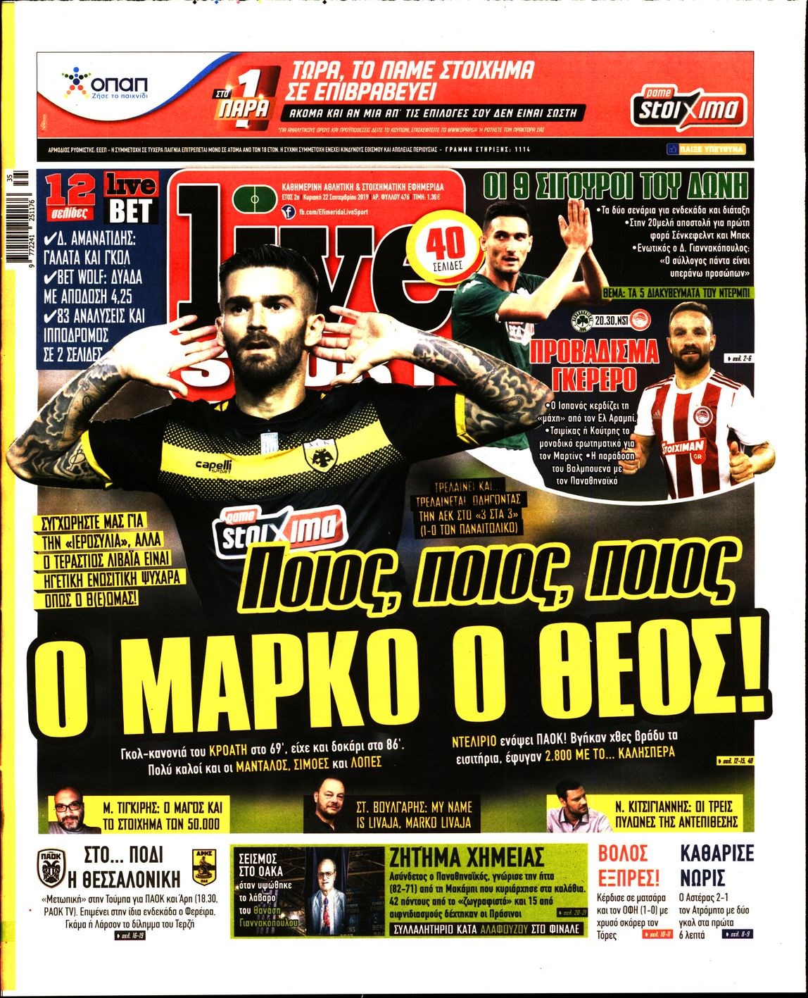 Οι αθλητικές εφημερίδες 22/9/2019 Διονύσης Νίκκας 07:24, Κυριακή 22 Σεπτεμβρίου 2019 Media Διαβάστε τα πρωτοσέλιδα των αθλητικών εφημερίδων… ΑΘΛΗΤΙΚΕΣ ΕΦΗΜΕΡΙΔΕΣ Μοιράσου το: σχολίασε κι εσύ (0 σχόλια) Ακολουθήστε το enikos.gr στο Google News και μάθετε πρώτοι όλες τις ειδήσεις Δείτε όλες τις τελευταίες ειδήσεις από την Ελλάδα και τον Κόσμο στο enikos.gr Ειδήσεις Ροή Ειδήσεων 7 ώρες πριν Χριστούγεννα στα μπλόκα: Επιμένουν στις κινητοποιήσεις τους οι αγρότες – Ανοίγουν τα διόδια το Σαββατοκύριακο 7 ώρες πριν Ουκρανία: Η άνευ προηγουμένου επίθεση σε ρωσικό τάνκερ στη Μεσόγειο και το μήνυμα προς στον Πούτιν – Το «μακρύ χέρι» του Κιέβου 7 ώρες πριν Πούτιν: Τα μηνύματα σε Ευρώπη και ΝΑΤΟ από το μαραθώνιο «σόου» του – Η απαίτηση για «σεβασμό» και η ειρήνη «με τους όρους» της Μόσχας 7 ώρες πριν Τραμπ: Δεν αποκλείει την πιθανότητα ενός πολέμου στη Βενεζουέλα – «Ο Μαδούρο ξέρει καλύτερα από τον καθένα τι ακριβώς θέλω» 8 ώρες πριν Συνεχίζει να προκαλεί ο Μίτσκοσκι: «Για μένα το όνομα Μακεδονία είναι ιερό» 7 λεπτά πριν Τα ζώδια σήμερα, Σάββατο 20 Δεκεμβρίου: Παρθένοι, το σύμπαν σας δίνει το κλειδί 7 ώρες πριν Ανακαλύφθηκαν αρχαία χρυσά νομίσματα 2.200 ετών που απεικονίζουν τον θεό Απόλλωνα – Η άγνωστη σύνδεση με τον Φίλιππο Β΄ της Μακεδονίας 8 ώρες πριν Ύπνος: Μια κρυφή κατάσταση του εγκεφάλου πριν από τον ύπνο μπορεί να είναι το “κλειδί” για υψηλή ευφυΐα και δημιουργικότητα 9 ώρες πριν Αριθμολογία: Οι άνθρωποι που έχουν γεννηθεί αυτές τις 4 ημερομηνίες, συχνά παρεξηγούνται – «Η καλοσύνη τους κρύβει τεράστια δύναμη» 7 λεπτά πριν Τα ζώδια σήμερα, Σάββατο 20 Δεκεμβρίου: Παρθένοι, το σύμπαν σας δίνει το κλειδί 13 λεπτά πριν Παιανία: Δυο αυτοκίνητα τυλίχτηκαν στις φλόγες – Συναγερμός στην Πυροσβεστική 16 λεπτά πριν Εφημερεύοντα φαρμακεία σε Αθήνα και Θεσσαλονίκη (20/12) 22 λεπτά πριν Γιώργος Μπαρτζώκας: «Για εμένα σημαίνει πάρα πολλά να ακούω το όνομά μου από τον κόσμο του Ολυμπιακού» 32 λεπτά πριν ΟΗΕ: Το Συμβούλιο Ασφαλείας παρατείνει για έναν χρόνο την εντολή της ειρηνευτικής δύναμης στο Κονγκό ENIKOS NETWORK Το ΕΚΑΒ τιμήθηκε από την Ακαδημία Αθηνών για τα 40 χρόνια προσφοράς του Έχετε πραγματικά μεγάλη καρδιά; 10 χαρακτηριστικά όσων έχουν καλοσύνη Αναστολή μέτρων αναγκαστικής εκτέλεσης για κτηνοτρόφους που πλήττονται από την ευλογιά των αιγοπροβάτων Πλήρης επάρκεια προϊόντων στις λαϊκές της Αττικής, παρά τις αγροτικές κινητοποιήσεις – Τι απαντούν οι πωλητές Χαρτογραφώντας το «σημείο χωρίς επιστροφή»: Για πρώτη φορά αποκαλύπτεται με λεπτομέρεια το ακανθώδες όριο της ατμόσφαιρας τ... Η Google καταργεί τη λειτουργία «dark web report» – Πώς θα μπορούν οι χρήστες να διαγράφουν τα δεδομένα τους περισσότερα 04:20 , Σάββατο 20 Δεκεμβρίου 2025 Αγγελική Νικολούλη: Τα συλλυπητήρια για την απώλεια της Ειρήνης Μαρινάκη Τα συλληπητήρια στον πρόεδρο του Mega, τον Βαγγέλη Μαρινάκη, για την απώλεια της μητέρας του Ε... 02:50 , Σάββατο 20 Δεκεμβρίου 2025 GNTM: Η Ξένια Τσίρκοβα αναδείχθηκε μεγάλη νικήτρια και πήρε τις 50.000 ευρώ – Ποιος βρέθηκε σε απόσταση αναπνοής; Με φαντασμαγορικό τρόπο ολοκληρώθηκε το βράδυ της Παρασκευής ο μεγάλος τελικός του GNTM, μέσα ... 22:42 , Παρασκευή 19 Δεκεμβρίου 2025 Γιώργος Γιαννόπουλος για “Το σόι σου”: “Είναι ευτυχία και ευλογία αυτή η σειρά” «Είναι ευτυχία και ευλογία η συγκυρία αυτής της σειράς», θα πει ο Γιώργος Γιαννόπουλος -ο αγαπ... 20:37 , Παρασκευή 19 Δεκεμβρίου 2025 Don’t Forget The Lyrics: Η Έλλη Κοκκίνου υπο