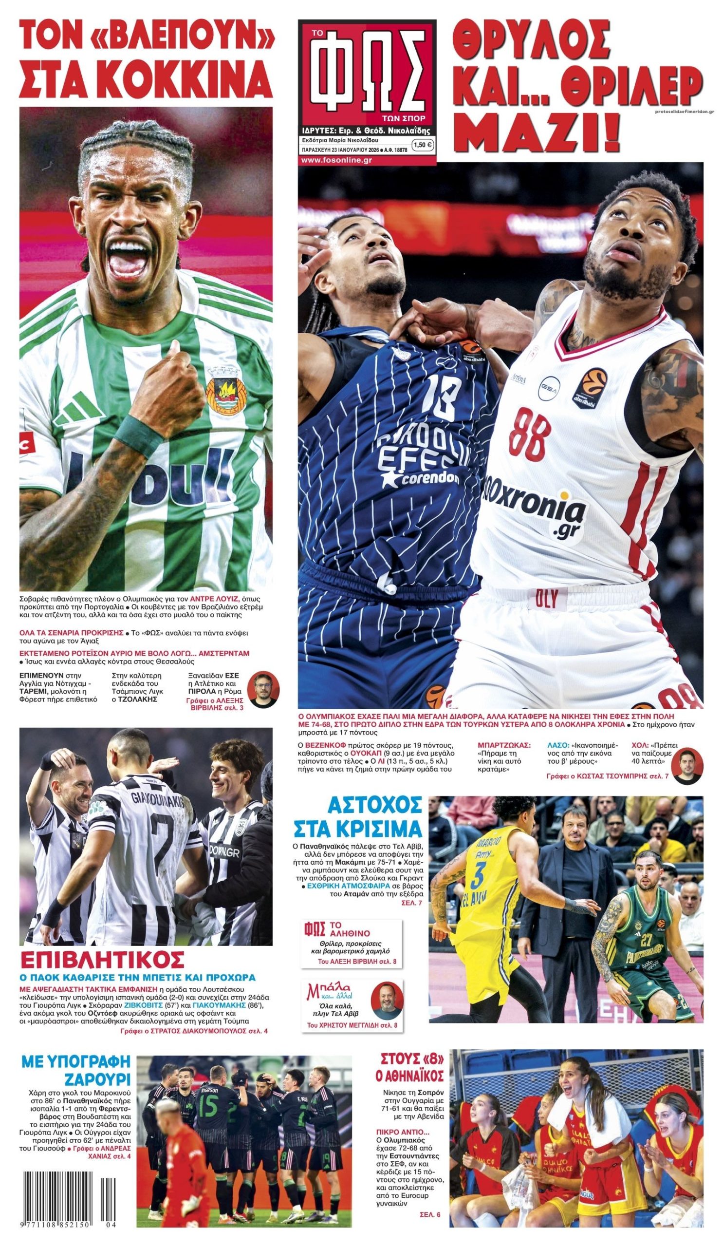 Οι αθλητικές εφημερίδες 23/1/2026 Enikos Newsroom 05:43, Παρασκευή 23 Ιανουαρίου 2026 Media Διαβάστε τα πρωτοσέλιδα από τις αθλητικές εφημερίδες, σήμερα 23/1/2026. ΑΘΛΗΤΙΚΕΣ ΕΦΗΜΕΡΙΔΕΣ ΕΦΗΜΕΡΙΔΕΣ ΠΡΩΤΟΣΕΛΙΔΑ Μοιράσου το: Europa League: Προκρίθηκαν στους «16», Λιόν και Άστον Βίλα – Aναλυτικά η βαθμολογία Μπάσκετ-Euroleague: Στην 4άδα ο Ολυμπιακός – Ισοβαθμεί στην 8η θέση ο Παναθηναϊκός – Αναλυτικά όλα τα αποτελέσματα και η βαθμολογία της 24ης αγωνιστικής Aταμάν για τις αποδοκιμασίες που δέχτηκε στο Ισραήλ: «Ήρθα, θα ξαναέρθω εδώ, δεν με νοιάζει τίποτα» σχολίασε κι εσύ (0 σχόλια) Ακολουθήστε το enikos.gr στο Google News και μάθετε πρώτοι όλες τις ειδήσεις Δείτε όλες τις τελευταίες ειδήσεις από την Ελλάδα και τον Κόσμο στο enikos.gr Ειδήσεις Ροή Ειδήσεων 4 ώρες πριν Δηλώσεις Κ. Μητσοτάκη μετά το πέρας της Συνόδου Κορυφής: «Επιδιώκουμε οι όποιες αναταράξεις στις ευρωατλαντικές σχέσεις να είναι πρόσκαιρες» – «Η ένταση ζημιώνει και τις δύο πλευρές» 8 ώρες πριν Γλυφάδα: Οι συγκλονιστικές μαρτυρίες και οι δραματικές προσπάθειες των κατοίκων να σώσουν την 56χρονη – Η «φονική» διαδρομή που ακολούθησε 8 ώρες πριν Τι γνωρίζουμε για το «πλαίσιο μελλοντικής συμφωνίας» για τη Γροιλανδία – Θα μείνει ικανοποιημένος ο Τραμπ; 8 ώρες πριν Κακοκαιρία στην Αττική: Γιατί «πνίγηκε» η Άνω Γλυφάδα – Οι 3 παράγοντες που οδήγησαν στη φονική καταστροφή 10 ώρες πριν Δημοσκόπηση Metron Analysis: Στις 12,5 μονάδες η διαφορά ΝΔ-ΠΑΣΟΚ – H απήχηση των κομμάτων που δεν έχουν ακόμη ανακοινωθεί 37 λεπτά πριν Οπτική ψευδαίσθηση: Μόνο αν είσαι ο Σέρλοκ Χολμς θα βρεις το λαγουδάκι σε 10 δευτερόλεπτα 53 λεπτά πριν Χοληστερίνη: Τα σνακ που νομίζετε ότι είναι υγιεινά αλλά μπορεί να εκτοξεύσουν τα επίπεδα της στα ύψη, σύμφωνα με ειδικό 4 ώρες πριν Τα ζώδια σήμερα, Παρασκευή 23 Ιανουαρίου 2026: Δίδυμοι, ακολουθήστε την περιέργειά σας 9 ώρες πριν Ύπνος: Η πρωινή ρουτίνα που πρέπει να ακολουθήσετε για να «παραμείνετε νέοι», σύμφωνα με γιατρό 23 λεπτά πριν ΔΕΔΔΗΕ: Διακοπές ρεύματος σήμερα (23/1) στην Αθήνα και σε άλλες 6 περιοχές της Αττικής 31 λεπτά πριν Σύνοδος Κορυφής: «Θετική η απόφαση Τραμπ να μην επιβληθούν νέοι δασμοί στην ΕΕ» δήλωσε ο Αντόνιο Κόστα – Φον ντερ Λάιεν: «Ενίσχυση της ασφάλειας της Αρκτικής μέσα από ευρωπαϊκό πακέτο επενδύσεων» 37 λεπτά πριν Οπτική ψευδαίσθηση: Μόνο αν είσαι ο Σέρλοκ Χολμς θα βρεις το λαγουδάκι σε 10 δευτερόλεπτα 53 λεπτά πριν Χοληστερίνη: Τα σνακ που νομίζετε ότι είναι υγιεινά αλλά μπορεί να εκτοξεύσουν τα επίπεδα της στα ύψη, σύμφωνα με ειδικό 60 λεπτά πριν Σαν σήμερα 23 Ιανουαρίου: Τα σημαντικότερα γεγονότα της ημέρας ENIKOS NETWORK 2 «ενοχλητικές» συνήθειες που αποκαλύπτουν ότι κάποιος είναι υπερβολικά ευφυής Γρίπη: 613 νέες εισαγωγές, 23 νέα σοβαρά κρούσματα σε ΜΕΘ και 7 θάνατοι την τελευταία εβδομάδα Νέα έρευνα EY αποκαλύπτει πόσοι treasurers χρησιμοποιούν ήδη Τεχνητή Νοημοσύνη στις διαδικασίες τους Έρχεται νομοσχέδιο για τις «ιστορίες καθημερινής τρέλας» στο Δημόσιο – Ο Χατζηδάκης αποκάλυψε τι θα περιλαμβάνει Ο Google Assistant θα παραμείνει λίγο περισσότερο για ορισμένους χρήστες Android Τεστ προσωπικότητας: Το βάζο που θα επιλέξετε αποκαλύπτει πώς λύνετε προβλήματα στη ζωή σας περισσότερα 05:38 , Παρασκευή 23 Ιανουαρίου 2026 Οι πολιτικές εφημερίδες 23/1/2026 Διαβάστε τα πρωτοσέλιδα από τις πολιτικές εφημερίδες, σήμερα 23/1/2026. 18:46 , Πέμπτη 22 Ιανουαρίου 2026 «Porto Leone: Στη γειτονιά με τα κόκκινα φανάρια»: Όταν όλα ανατρέπονται – Το παιχνίδι της εκδίκη