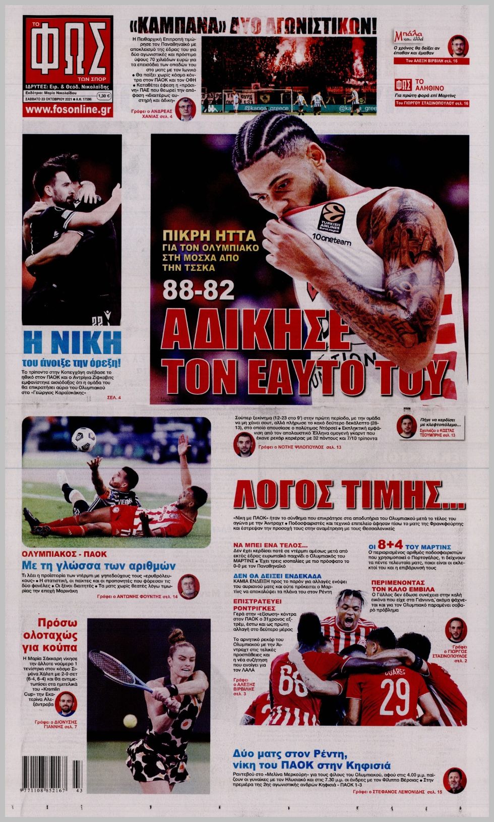 Οι αθλητικές εφημερίδες 23/10/2021 Διονύσης Νίκκας 07:30, Σάββατο 23 Οκτωβρίου 2021 Media Διαβάστε τα πρωτοσέλιδα από τις αθλητικές εφημερίδες… ΑΘΛΗΤΙΚΕΣ ΕΦΗΜΕΡΙΔΕΣ Μοιράσου το: σχολίασε κι εσύ (0 σχόλια) Ακολουθήστε το enikos.gr στο Google News και μάθετε πρώτοι όλες τις ειδήσεις Δείτε όλες τις τελευταίες ειδήσεις από την Ελλάδα και τον Κόσμο στο enikos.gr Ειδήσεις Ροή Ειδήσεων 6 ώρες πριν Κύκλωμα διακίνησης ναρκωτικών σε σχολεία: Βίντεο ντοκουμέντο από τα βασανιστήρια στους ανήλικους – Συζητούσαν για το πώς θα κάνουν «ξέπλυμα χρήματος» 5 ώρες πριν Κλιμακώνουν τις κινητοποιήσεις τους οι αγρότες: Κλείνουν τη Δευτέρα τις σήραγγες των Τεμπών για τα φορτηγά – Ανοίγουν την Τρίτη τους δρόμους για τους εκδρομείς 6 ώρες πριν Αιματηρό επεισόδιο στον Άγιο Παντελεήμονα – Δύο τραυματίες, αναζητείται ο δράστης 5 ώρες πριν ΗΠΑ: Αυξάνουν την πίεση στην Βενεζουέλα – Το νέο ρεσάλτο σε τάνκερ και ο στόχος του Τραμπ 6 ώρες πριν Κασσελάκης για παραίτηση Μάλαμα: «Η πορεία μας δεν θα καθοριστεί από μεμονωμένα πρόσωπα, μηχανισμούς και προσωπικές ατζέντες» 5 ώρες πριν Αρχαιολογικό θρίλερ στην καρδιά της Ευρώπης: Παράξενο θραύσμα με ανάγλυφα και σφηνοειδή γραφή ανακαλύφθηκε σε μέρος που δεν περίμενε κανείς 6 ώρες πριν Ύπνος: Τι είναι ο «κανόνας 3-3-3» που χρησιμοποιεί ένας γιατρός για να ξεχωρίσει την κόπωση από την αϋπνία 7 ώρες πριν Αριθμολογία: Οι άνθρωποι που έχουν γεννηθεί αυτές τις 4 ημερομηνίες, είναι οι πιο πιστοί και αφοσιωμένοι σύντροφοι 2 ημέρες πριν Enerwave: Το νέο «ρεύμα» στη λιανική ενέργειας που αλλάζει την εμπειρία του καταναλωτή 38 λεπτά πριν Συνοικισμός Κορίνθου: Αυτοκίνητο τυλίχτηκε στις φλόγες – Συναγερμός στην Πυροσβεστική 53 λεπτά πριν ΗΠΑ: Υπέρ των στρατιωτικών επιχειρήσεων κατά της Χαμάς και της Χεζμπολάχ αν δεν αφοπλιστούν, ρεπουμπλικάνος γερουσιαστής 1 ώρα πριν Ξέσπασε ο Γιώργος Μαζωνάκης μετά τις καταγγελίες: «Εκπομπές στην τηλεόραση ξεφτιλίζουν ανθρώπους» 1 ώρα πριν Κολομβία: Μονομερής εκεχειρία από τον ELN για την περίοδο των εορτών 2 ώρες πριν ΗΠΑ: Επιχείρηση αναχαίτισης τάνκερ που συνδέεται με το Ιράν και κατευθυνόταν στη Βενεζουέλα ENIKOS NETWORK Οι γυναίκες έχουν βρει μια νέα απόλαυση στην κρεβατοκάμαρα που οι περισσότεροι άνδρες αγνοούν Christmas glow: 5 χρυσές συμβουλές για επιδερμίδα που λάμπει από ομορφιά τα Χριστούγεννα Νέο έτος ρεκόρ για τον ελληνικό τουρισμό το 2025: «Είμαστε μέσα στους 10 πλέον επισκέψιμους προορισμούς παγκοσμίως» λέει η ... Τιμές καυσίμων: Πόσο θα πληρώσουν οι εκδρομείς των Χριστουγέννων – Το κόστος μετακινήσεων σε δημοφιλείς προορισμούς Χαρτογραφώντας το «σημείο χωρίς επιστροφή»: Για πρώτη φορά αποκαλύπτεται με λεπτομέρεια το ακανθώδες όριο της ατμόσφαιρας τ... Η Google καταργεί τη λειτουργία «dark web report» – Πώς θα μπορούν οι χρήστες να διαγράφουν τα δεδομένα τους περισσότερα 02:45 , Δευτέρα 22 Δεκεμβρίου 2025 Ξέσπασε ο Γιώργος Μαζωνάκης μετά τις καταγγελίες: «Εκπομπές στην τηλεόραση ξεφτιλίζουν ανθρώπους» Στο προσκήνιο της επικαιρότητας βρέθηκε ξανά ο Γιώργος Μαζωνάκης, για δεύτερη φορά μέσα σε λίγ... 00:13 , Δευτέρα 22 Δεκεμβρίου 2025 MasterChef: Στον… αέρα το τρέιλερ του 10ου κύκλου – ΒΙΝΤΕΟ Κυκλοφόρησε το τρέιλερ για τον 10ο κύκλο του MasterChef, σηματοδοτώντας την επιστροφή του δημο... 21:30 , Κυριακή 21 Δεκεμβρίου 2025 Ο Δικαστής: Στα χέρια της Αστυνομίας βίντεο, που ανατρέπει όλα τα δεδομένα – Στενεύει ο κλοιός γύρω από τον Δικαστή Καταιγιστικές εξελίξεις στο τελε