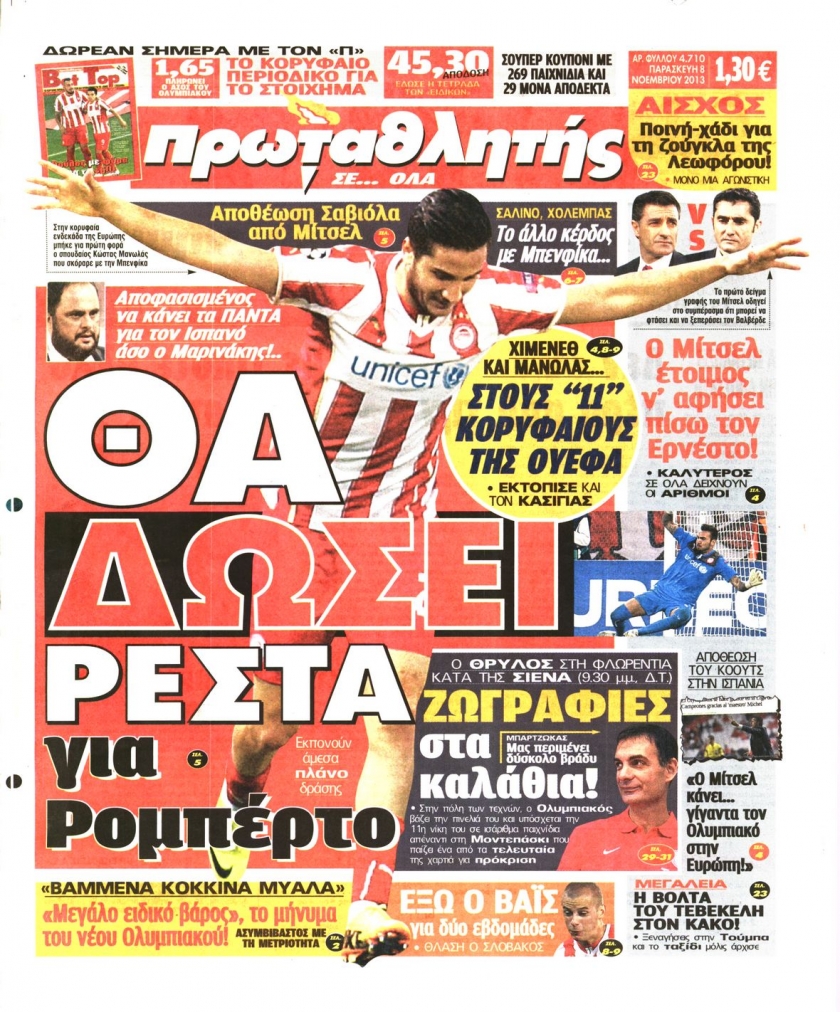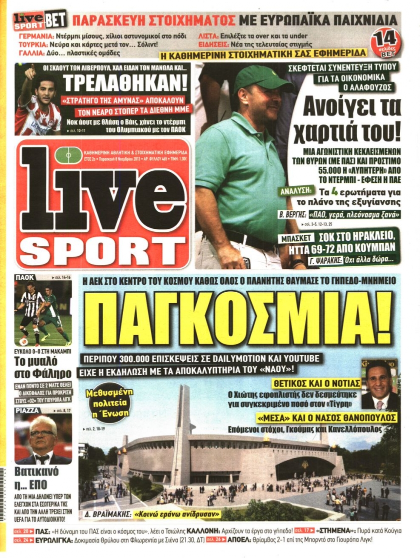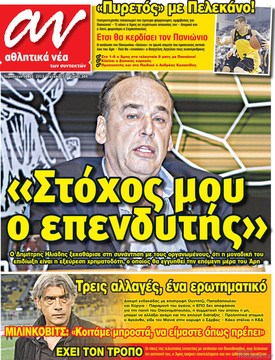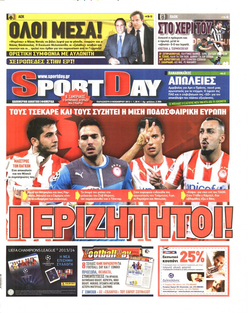Οι αθλητικές εφημερίδες Enikos Newsroom 08:37, Παρασκευή 08 Νοεμβρίου 2013 Media Οι αθλητικές εφημερίδες Διαβάστε τα πρωτοσέλιδα των αθλητικών εφημερίδων: ΑΘΛΗΤΙΚΕΣ ΕΦΗΜΕΡΙΔΕΣ ΕΦΗΜΕΡΙΔΕΣ ΠΡΩΤΟΣΕΛΙΔΑ Μοιράσου το: σχολίασε κι εσύ (0 σχόλια) Ακολουθήστε το enikos.gr στο Google News και μάθετε πρώτοι όλες τις ειδήσεις Δείτε όλες τις τελευταίες ειδήσεις από την Ελλάδα και τον Κόσμο στο enikos.gr Ειδήσεις Ροή Ειδήσεων 1 ώρα πριν Αυξάνουν την πίεση προς την κυβέρνηση οι αγρότες: Κλείνουν παρακαμπτήριους και ανοίγουν διόδια – Τι θα γίνει τις γιορτές 18 λεπτά πριν ΟΠΕΚΕΠΕ: Προφυλακιστέος ο φερόμενος αρχηγός και ο λογιστής της εγκληματικής οργάνωσης 1 ώρα πριν Φοινικούντα: Το Σάββατο απολογείται ο 30χρονος γιος γνωστού επιχειρηματία της Πλάκας που παραδόθηκε – Όσα είπε στους αστυνομικούς και ο ρόλος του στο έγκλημα 59 λεπτά πριν Μπορεί ο Μαδούρο να αντέξει τον αποκλεισμό του Τραμπ; Τι θα χρειαστεί η Ουάσινγκτον για να τον ανατρέψει 2 ώρες πριν Πρίγκιπας Ουίλιαμ – Κέιτ: Η νέα οικογενειακή φωτογραφία για τις Χριστουγεννιάτικες κάρτες του 2025 2 ώρες πριν Ύπνος: Η απλή βραδινή ρουτίνα για να προστατεύσετε τα μαλλιά σας από το κρύο κατά τη διάρκεια του χειμώνα 3 ώρες πριν Manifesting: Πώς να συναντήσετε τον σύντροφο της ζωής σας, ανάλογα με τον μήνα γέννησής σας 2 ημέρες πριν 20 χρόνια τα Χριστούγεννα ξεκινούν στα Public με μεγάλη ποικιλία σε δώρα! 1 ώρα πριν Αρχαιολόγοι ανακάλυψαν ρωμαϊκά τεχνουργήματα από μια πόλη που δεν υπήρξε ποτέ – Τα τρία εντυπωσιακά κτίρια και ο αμφορέας με τις… σαρδέλες 18 λεπτά πριν ΟΠΕΚΕΠΕ: Προφυλακιστέος ο φερόμενος αρχηγός και ο λογιστής της εγκληματικής οργάνωσης 28 λεπτά πριν Αθηνά Μαξίμου: Η τρυφερή ανάρτηση για τα γενέθλια του Αιμίλιου Χειλάκη – «Είναι η εκλεκτική συγγένειά μου, η επιλογή και η ευθύνη μου» 43 λεπτά πριν Παναθηναϊκός – Χάποελ Τελ Αβίβ 93-82: Με… φόρα από την Κωνσταντινούπολη 59 λεπτά πριν Μπορεί ο Μαδούρο να αντέξει τον αποκλεισμό του Τραμπ; Τι θα χρειαστεί η Ουάσινγκτον για να τον ανατρέψει 1 ώρα πριν Αρχαιολόγοι ανακάλυψαν ρωμαϊκά τεχνουργήματα από μια πόλη που δεν υπήρξε ποτέ – Τα τρία εντυπωσιακά κτίρια και ο αμφορέας με τις… σαρδέλες ENIKOS NETWORK Σε περίοδο αυξημένης δραστηριότητας η γρίπη στην Ελλάδα-Μέτρα προστασίας από τον ΕΟΔΥ Σκέφτεστε συνέχεια συζητήσεις που έχετε κάνει; Τι σημαίνει αυτό, σύμφωνα με ειδικό Στεγαστικό: Τι λέει η ΠΟΜΙΔΑ για τα νέα μέτρα που ανακοίνωσε ο Κυριάκος Μητσοτάκης Λαγκάρντ: Αισιόδοξη για την ανάπτυξη της Ευρωζώνης, αβέβαιη για τον πληθωρισμό Χαρτογραφώντας το «σημείο χωρίς επιστροφή»: Για πρώτη φορά αποκαλύπτεται με λεπτομέρεια το ακανθώδες όριο της ατμόσφαιρας τ... Η Google καταργεί τη λειτουργία «dark web report» – Πώς θα μπορούν οι χρήστες να διαγράφουν τα δεδομένα τους περισσότερα 17:45 , Πέμπτη 18 Δεκεμβρίου 2025 ROUK ZOUK: Εορταστικό επεισόδιο με καλεσμένους τους πρωταγωνιστές του «Γιατί ρε πατέρα» Το Σάββατο 20 Δεκεμβρίου στις 21:00, η Ζέτα Μακρυπούλια υποδέχεται εκλεκτούς ηθοποιούς που όλο... 17:20 , Πέμπτη 18 Δεκεμβρίου 2025 Άγιος έρωτας: Η Χριστίνα εξομολογείται στον πατέρα Νικόλαο, απόψε στις 21:00 στον Alpha Η Νότα αποφασίζει να εκδικηθεί τον Πέτρο και τον Στέφανο, για χάρη του Λούη, όμως τα πράγματα ... 16:50 , Πέμπτη 18 Δεκεμβρίου 2025 Να μ’ αγαπάς: Ζωή και Φωτεινή συμφιλιώνονται ως μάνα με κόρη, απόψε στις 20:00 Η ταυτότητα του Άγγελου αποκαλύπτεται στο νέο επεισόδιο της σειράς “Να μ’ αγαπάς... 15:52 , Πέμπτη 18 Δεκεμβρίου 2025 Το Σπίτι Δίπλα Στο 