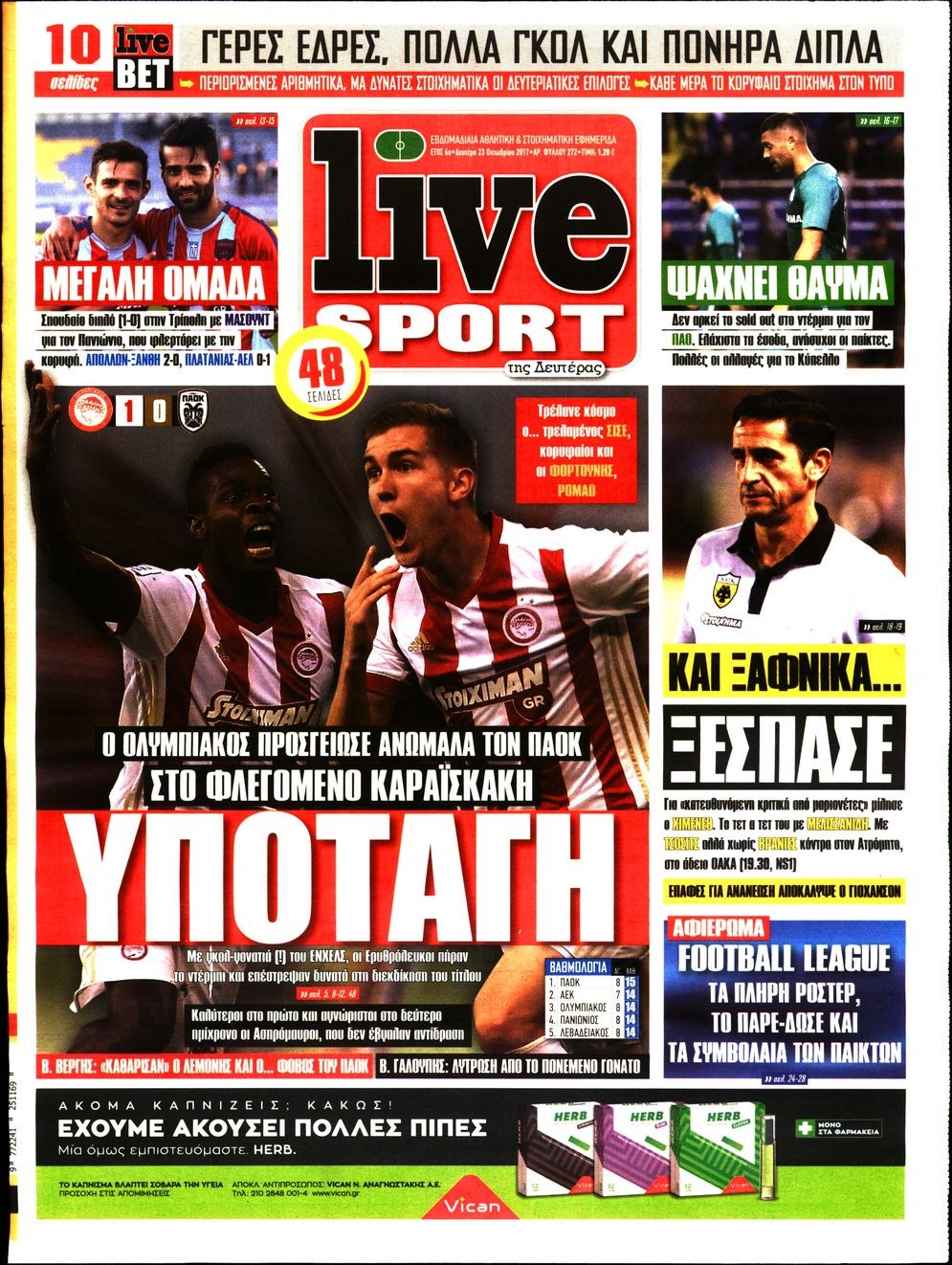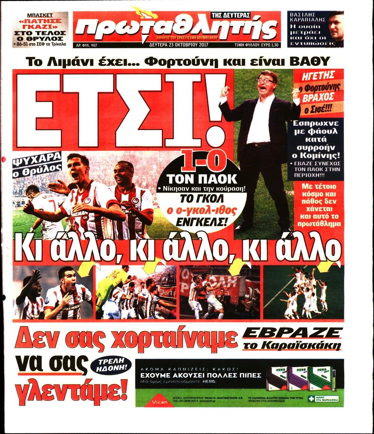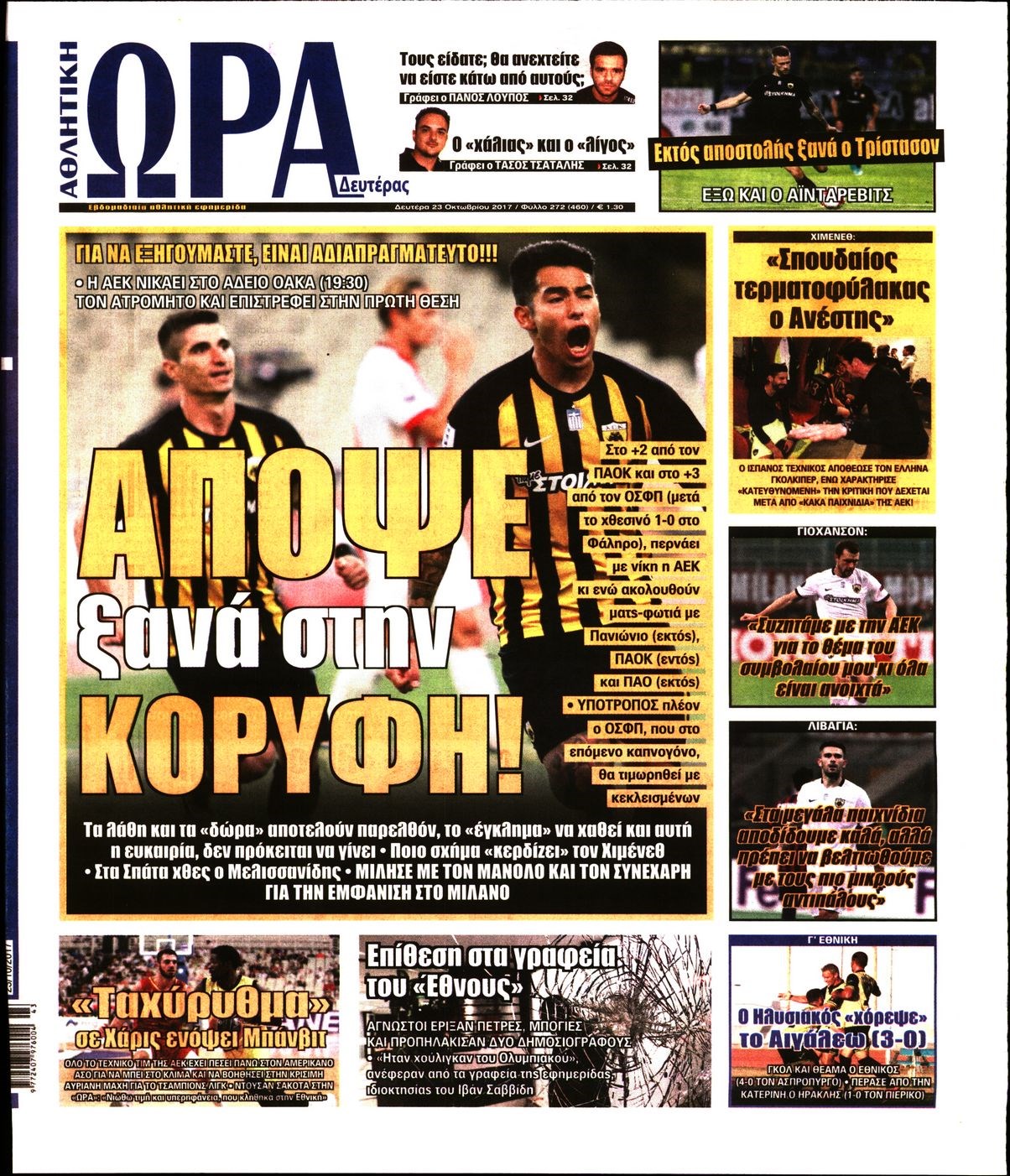 Οι αθλητικές εφημερίδες 23/10/2017 Enikos Newsroom 08:01, Δευτέρα 23 Οκτωβρίου 2017 Media Διαβάστε τα σημερινά πρωτοσέλιδα των αθλητικών εφημερίδων: ΑΘΛΗΤΙΚΕΣ ΕΦΗΜΕΡΙΔΕΣ ΠΡΩΤΟΣΕΛΙΔΑ Μοιράσου το: σχολίασε κι εσύ (0 σχόλια) Ακολουθήστε το enikos.gr στο Google News και μάθετε πρώτοι όλες τις ειδήσεις Δείτε όλες τις τελευταίες ειδήσεις από την Ελλάδα και τον Κόσμο στο enikos.gr Ειδήσεις Ροή Ειδήσεων 12 λεπτά πριν Χριστούγεννα στα μπλόκα: Επιμένουν στις κινητοποιήσεις τους οι αγρότες – Ανοίγουν τα διόδια το Σαββατοκύριακο 41 λεπτά πριν Τραμπ: Δεν αποκλείει την πιθανότητα ενός πολέμου στη Βενεζουέλα – «Ο Μαδούρο ξέρει καλύτερα από τον καθένα τι ακριβώς θέλω» 35 λεπτά πριν Ουκρανία: Η άνευ προηγουμένου επίθεση σε ρωσικό τάνκερ στη Μεσόγειο και το μήνυμα προς στον Πούτιν – Το «μακρύ χέρι» του Κιέβου 3 ώρες πριν Πούτιν: «Ναι, είμαι ερωτευμένος» – Βίντεο από τη σπάνια προσωπική παραδοχή του 1 ώρα πριν Συνεχίζει να προκαλεί ο Μίτσκοσκι: «Για μένα το όνομα Μακεδονία είναι ιερό» 2 ώρες πριν Αριθμολογία: Οι άνθρωποι που έχουν γεννηθεί αυτές τις 4 ημερομηνίες, συχνά παρεξηγούνται – «Η καλοσύνη τους κρύβει τεράστια δύναμη» 4 ώρες πριν Μήπως έχετε χάσει τον εαυτό σας στη σχέση σας; 7 «αθόρυβες» υποχωρήσεις που μάλλον κάνατε, χωρίς να το συνειδητοποιήσετε 3 ώρες πριν Ξεχάστε το καθάρισμα το Σαββατοκύριακο: Ο «κανόνας των 20 λεπτών» που θα σας λύσει τα χέρια 50 λεπτά πριν Ύπνος: Μια κρυφή κατάσταση του εγκεφάλου πριν από τον ύπνο μπορεί να είναι το “κλειδί” για υψηλή ευφυΐα και δημιουργικότητα 2 λεπτά πριν Παναθηναϊκός: «Μέσα» οι Σφιντέρσκι και Τουμπά για το ματς με τον ΠΑΟΚ – Τι έδειξε η μαγνητική του Πάντοβιτς 8 λεπτά πριν Γιώργος Γιαννόπουλος για “Το σόι σου”: “Είναι ευτυχία και ευλογία αυτή η σειρά” 12 λεπτά πριν Χριστούγεννα στα μπλόκα: Επιμένουν στις κινητοποιήσεις τους οι αγρότες – Ανοίγουν τα διόδια το Σαββατοκύριακο 24 λεπτά πριν Χάρι και Μέγκαν: Η σπάνια οικογενειακή φωτογραφία με τον Άρτσι και τη Λίλιμπετ – Τι σχεδιάζουν για τα Χριστούγεννα 31 λεπτά πριν Βασίλης Καρράς: «Είναι πάντα δίπλα μου, δεν έφυγε…», λέει ο αδελφός του ENIKOS NETWORK Το ΕΚΑΒ τιμήθηκε από την Ακαδημία Αθηνών για τα 40 χρόνια προσφοράς του Έχετε πραγματικά μεγάλη καρδιά; 10 χαρακτηριστικά όσων έχουν καλοσύνη Πλήρης επάρκεια προϊόντων στις λαϊκές της Αττικής, παρά τις αγροτικές κινητοποιήσεις – Τι απαντούν οι πωλητές ΑΑΔΕ: Νέες αναβαθμίσεις στο Ψηφιακό Πελατολόγιο και την εφαρμογή myDATAapp – Τι πρέπει να γνωρίζετε Χαρτογραφώντας το «σημείο χωρίς επιστροφή»: Για πρώτη φορά αποκαλύπτεται με λεπτομέρεια το ακανθώδες όριο της ατμόσφαιρας τ... Η Google καταργεί τη λειτουργία «dark web report» – Πώς θα μπορούν οι χρήστες να διαγράφουν τα δεδομένα τους περισσότερα 22:42 , Παρασκευή 19 Δεκεμβρίου 2025 Γιώργος Γιαννόπουλος για “Το σόι σου”: “Είναι ευτυχία και ευλογία αυτή η σειρά” «Είναι ευτυχία και ευλογία η συγκυρία αυτής της σειράς», θα πει ο Γιώργος Γιαννόπουλος -ο αγαπ... 20:37 , Παρασκευή 19 Δεκεμβρίου 2025 Don’t Forget The Lyrics: Η Έλλη Κοκκίνου υποδέχεται 4 παίκτες που θα κάνουν τα πάντα για να μη χάσουν ούτε… μισή λέξη από τους στίχους Το «Don’t Forget The Lyrics» επιστρέφει απόψε, Παρασκευή 19 Δεκεμβρίου, στις 21:00 με νέο επει... 19:31 , Παρασκευή 19 Δεκεμβρίου 2025 GNTM: Απόψε ο μεγάλος τελικός για τους 4 φιναλίστ Έπειτα από μήνες γεμάτους μόδα, δημιουργία και έντονες αναμετρήσεις, το GNTM 2025 κορυφώνεται,... 18:11 , Παρασκευή 19 Δεκεμβρίου 2025 Το σόι σου: Ο Άρης έρχεται στην Ελ