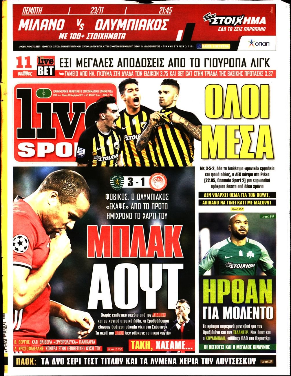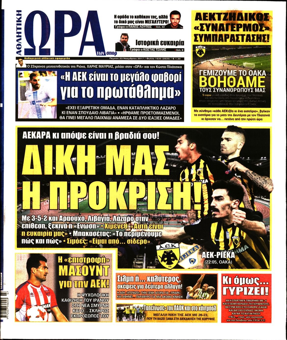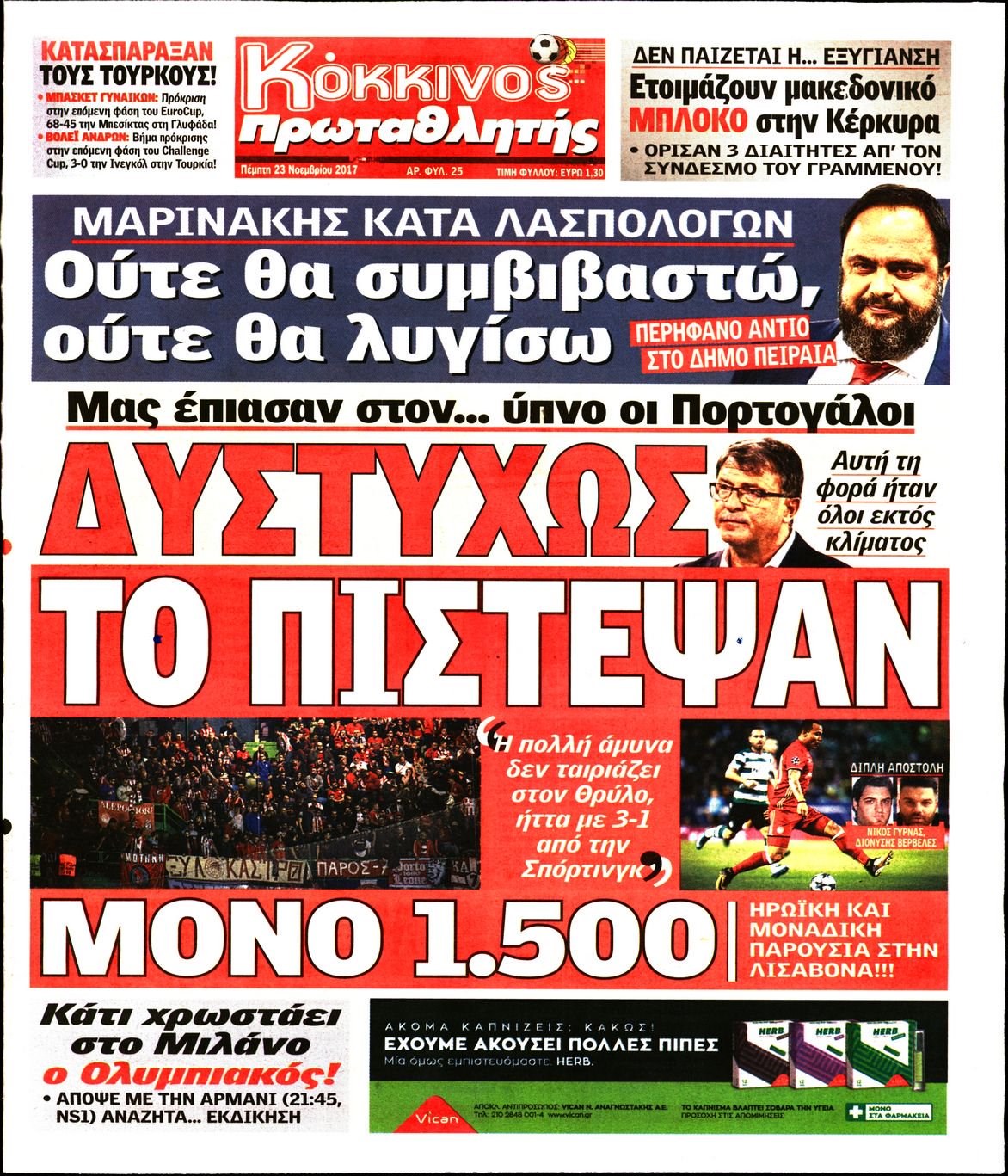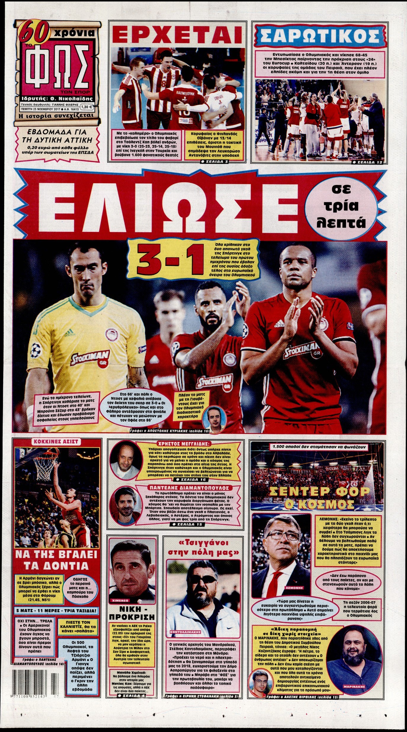 Οι αθλητικές εφημερίδες 23/11/2017 Enikos Newsroom 07:18, Πέμπτη 23 Νοεμβρίου 2017 Media Διαβάστε τα σημερινά πρωτοσέλιδα των αθλητικών εφημερίδων: ΑΘΛΗΤΙΚΕΣ ΕΦΗΜΕΡΙΔΕΣ ΠΡΩΤΟΣΕΛΙΔΑ Μοιράσου το: σχολίασε κι εσύ (0 σχόλια) Ακολουθήστε το enikos.gr στο Google News και μάθετε πρώτοι όλες τις ειδήσεις Δείτε όλες τις τελευταίες ειδήσεις από την Ελλάδα και τον Κόσμο στο enikos.gr Ειδήσεις Ροή Ειδήσεων 4 ώρες πριν Μεσόγειος: Η διαδρομή του ρωσικού τάνκερ «Qendil» και η στοχευμένη επίθεση της Ουκρανίας με drone – Ο Πούτιν προειδοποίησε για αντίποινα 21 λεπτά πριν Αγρότες: Έκλεισαν για μία ώρα την παρακαμπτήρια της Ιόνιας Οδού στη θέση Χαλίκι 2 ώρες πριν Εμπλοκή και αερομαχίες με οπλισμένα τουρκικά F-16 στο Αιγαίο 2 ώρες πριν Πούτιν: «Ναι, είμαι ερωτευμένος» – Βίντεο από τη σπάνια προσωπική παραδοχή του 25 λεπτά πριν Ανδρέας Λυκουρέντζος: Υπέβαλε την παραίτησή του ο πρόεδρος του ΕΛΓΑ, αλλά δεν έγινε δεκτή – Όλο το παρασκήνιο 35 λεπτά πριν Αριθμολογία: Οι άνθρωποι που έχουν γεννηθεί αυτές τις 4 ημερομηνίες, συχνά παρεξηγούνται – «Η καλοσύνη τους κρύβει τεράστια δύναμη» 3 ώρες πριν Μήπως έχετε χάσει τον εαυτό σας στη σχέση σας; 7 «αθόρυβες» υποχωρήσεις που μάλλον κάνατε, χωρίς να το συνειδητοποιήσετε 2 ώρες πριν Ξεχάστε το καθάρισμα το Σαββατοκύριακο: Ο «κανόνας των 20 λεπτών» που θα σας λύσει τα χέρια 5 ώρες πριν Κουίζ για την παλιά Αθήνα: Αναγνωρίζετε την περιοχή; Έχετε περάσει 100% από εκεί 6 λεπτά πριν Συνεχίζει να προκαλεί ο Μίτσκοσκι: «Για μένα το όνομα Μακεδονία είναι ιερό» 16 λεπτά πριν Ο Γιάννης Κακλέας σκηνοθετεί Βερόνικα Δαβάκη και Ιβάν Σβιτάιλο στη «Locandiera» 21 λεπτά πριν Αγρότες: Έκλεισαν για μία ώρα την παρακαμπτήρια της Ιόνιας Οδού στη θέση Χαλίκι 25 λεπτά πριν Ανδρέας Λυκουρέντζος: Υπέβαλε την παραίτησή του ο πρόεδρος του ΕΛΓΑ, αλλά δεν έγινε δεκτή – Όλο το παρασκήνιο 30 λεπτά πριν Ηράκλειο: «Ιπτάμενοι» Άγιοι Βασίληδες μοίρασαν δώρα και χαμόγελα στα παιδιά στο ΠΑΓΝΗ – Δείτε βίντεο ENIKOS NETWORK Το ΕΚΑΒ τιμήθηκε από την Ακαδημία Αθηνών για τα 40 χρόνια προσφοράς του Έχετε πραγματικά μεγάλη καρδιά; 10 χαρακτηριστικά όσων έχουν καλοσύνη Έρχονται νέες προσλήψεις σε Δήμο – Όλες οι λεπτομέρειες Επίδομα παιδιού: Πότε ανοίγει ξανά η πλατφόρμα για τις αιτήσεις Χαρτογραφώντας το «σημείο χωρίς επιστροφή»: Για πρώτη φορά αποκαλύπτεται με λεπτομέρεια το ακανθώδες όριο της ατμόσφαιρας τ... Η Google καταργεί τη λειτουργία «dark web report» – Πώς θα μπορούν οι χρήστες να διαγράφουν τα δεδομένα τους περισσότερα 20:37 , Παρασκευή 19 Δεκεμβρίου 2025 Don’t Forget The Lyrics: Η Έλλη Κοκκίνου υποδέχεται 4 παίκτες που θα κάνουν τα πάντα για να μη χάσουν ούτε… μισή λέξη από τους στίχους Το «Don’t Forget The Lyrics» επιστρέφει απόψε, Παρασκευή 19 Δεκεμβρίου, στις 21:00 με νέο επει... 19:31 , Παρασκευή 19 Δεκεμβρίου 2025 GNTM: Απόψε ο μεγάλος τελικός για τους 4 φιναλίστ Έπειτα από μήνες γεμάτους μόδα, δημιουργία και έντονες αναμετρήσεις, το GNTM 2025 κορυφώνεται,... 18:11 , Παρασκευή 19 Δεκεμβρίου 2025 Το σόι σου: Ο Άρης έρχεται στην Ελλάδα για τις γιορτές των Χριστουγέννων – Τι θα δούμε στο αποψινό εορταστικό επεισόδιο Ένα απολαυστικό, εορταστικό επεισόδιο της σειράς “Το σόι σου”, γεμάτο ευτράπελα αλ... 15:15 , Παρασκευή 19 Δεκεμβρίου 2025 Την Κυριακή με τη Realnews: Ό,τι και αν αγοράσεις, σκανάρεις και κερδίζεις! Την Κυριακή με τη Realnews: Ό,τι και αν αγοράσεις, σκανάρεις και κερδίζεις! Με το PADU app, το... ΤΕΛΕΥΤΑΙΕΣ ΕΙΔΗΣΕΙΣ 6 λεπτά πριν Συνεχίζει να προκαλεί ο Μίτσκοσκι: «Για μένα το όνομα... 