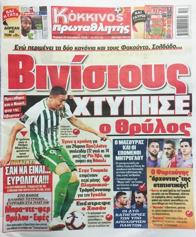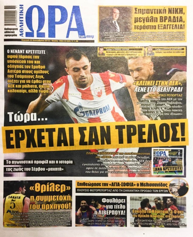 Οι αθλητικές εφημερίδες 23/12/2018 Κώστας Τεό 06:53, Κυριακή 23 Δεκεμβρίου 2018 Media Διαβάστε τα πρωτοσέλιδα των αθλητικών εφημερίδων: ΑΘΛΗΤΙΚΕΣ ΕΦΗΜΕΡΙΔΕΣ ΠΡΩΤΟΣΕΛΙΔΑ Μοιράσου το: σχολίασε κι εσύ (0 σχόλια) Ακολουθήστε το enikos.gr στο Google News και μάθετε πρώτοι όλες τις ειδήσεις Δείτε όλες τις τελευταίες ειδήσεις από την Ελλάδα και τον Κόσμο στο enikos.gr Ειδήσεις Ροή Ειδήσεων 37 λεπτά πριν Χριστούγεννα στα μπλόκα: Επιμένουν στις κινητοποιήσεις τους οι αγρότες – Ανοίγουν τα διόδια το Σαββατοκύριακο 60 λεπτά πριν Ουκρανία: Η άνευ προηγουμένου επίθεση σε ρωσικό τάνκερ στη Μεσόγειο και το μήνυμα προς στον Πούτιν – Το «μακρύ χέρι» του Κιέβου 14 λεπτά πριν Πούτιν: Τα μηνύματα σε Ευρώπη και ΝΑΤΟ από το μαραθώνιο «σόου» του – Η απαίτηση για «σεβασμό» και η ειρήνη «με τους όρους» της Μόσχας 1 ώρα πριν Τραμπ: Δεν αποκλείει την πιθανότητα ενός πολέμου στη Βενεζουέλα – «Ο Μαδούρο ξέρει καλύτερα από τον καθένα τι ακριβώς θέλω» 2 ώρες πριν Συνεχίζει να προκαλεί ο Μίτσκοσκι: «Για μένα το όνομα Μακεδονία είναι ιερό» 3 ώρες πριν Πούτιν: «Ναι, είμαι ερωτευμένος» – Βίντεο από τη σπάνια προσωπική παραδοχή του 2 ώρες πριν Αριθμολογία: Οι άνθρωποι που έχουν γεννηθεί αυτές τις 4 ημερομηνίες, συχνά παρεξηγούνται – «Η καλοσύνη τους κρύβει τεράστια δύναμη» 1 ώρα πριν Ύπνος: Μια κρυφή κατάσταση του εγκεφάλου πριν από τον ύπνο μπορεί να είναι το “κλειδί” για υψηλή ευφυΐα και δημιουργικότητα 3 ώρες πριν Ξεχάστε το καθάρισμα το Σαββατοκύριακο: Ο «κανόνας των 20 λεπτών» που θα σας λύσει τα χέρια 16 λεπτά πριν Ανακαλύφθηκαν αρχαία χρυσά νομίσματα 2.200 ετών που απεικονίζουν τον θεό Απόλλωνα – Η άγνωστη σύνδεση με τον Φίλιππο Β΄ της Μακεδονίας 5 λεπτά πριν Νέος Κόσμος: Συνελήφθη 41χρονος με ένταλμα από την Τουρκία για εμπόριο ναρκωτικών και ληστεία 14 λεπτά πριν Πούτιν: Τα μηνύματα σε Ευρώπη και ΝΑΤΟ από το μαραθώνιο «σόου» του – Η απαίτηση για «σεβασμό» και η ειρήνη «με τους όρους» της Μόσχας 16 λεπτά πριν Ανακαλύφθηκαν αρχαία χρυσά νομίσματα 2.200 ετών που απεικονίζουν τον θεό Απόλλωνα – Η άγνωστη σύνδεση με τον Φίλιππο Β΄ της Μακεδονίας 20 λεπτά πριν Νίκος Ξυλούρης: Συγκινεί η χήρα του σπουδαίου καλλιτέχνη – «Ευχαριστώ όλο τον κόσμο που τον κρατάει ζωντανό 45 χρόνια» 27 λεπτά πριν Παναθηναϊκός: «Μέσα» οι Σφιντέρσκι και Τουμπά για το ματς με τον ΠΑΟΚ – Τι έδειξε η μαγνητική του Πάντοβιτς ENIKOS NETWORK Το ΕΚΑΒ τιμήθηκε από την Ακαδημία Αθηνών για τα 40 χρόνια προσφοράς του Έχετε πραγματικά μεγάλη καρδιά; 10 χαρακτηριστικά όσων έχουν καλοσύνη Πλήρης επάρκεια προϊόντων στις λαϊκές της Αττικής, παρά τις αγροτικές κινητοποιήσεις – Τι απαντούν οι πωλητές ΑΑΔΕ: Νέες αναβαθμίσεις στο Ψηφιακό Πελατολόγιο και την εφαρμογή myDATAapp – Τι πρέπει να γνωρίζετε Χαρτογραφώντας το «σημείο χωρίς επιστροφή»: Για πρώτη φορά αποκαλύπτεται με λεπτομέρεια το ακανθώδες όριο της ατμόσφαιρας τ... Η Google καταργεί τη λειτουργία «dark web report» – Πώς θα μπορούν οι χρήστες να διαγράφουν τα δεδομένα τους περισσότερα 22:42 , Παρασκευή 19 Δεκεμβρίου 2025 Γιώργος Γιαννόπουλος για “Το σόι σου”: “Είναι ευτυχία και ευλογία αυτή η σειρά” «Είναι ευτυχία και ευλογία η συγκυρία αυτής της σειράς», θα πει ο Γιώργος Γιαννόπουλος -ο αγαπ... 20:37 , Παρασκευή 19 Δεκεμβρίου 2025 Don’t Forget The Lyrics: Η Έλλη Κοκκίνου υποδέχεται 4 παίκτες που θα κάνουν τα πάντα για να μη χάσουν ούτε… μισή λέξη από τους στίχους Το «Don’t Forget The Lyrics» επιστρέφει απόψε, Παρασκευή 19 Δεκεμβρίου, στις 