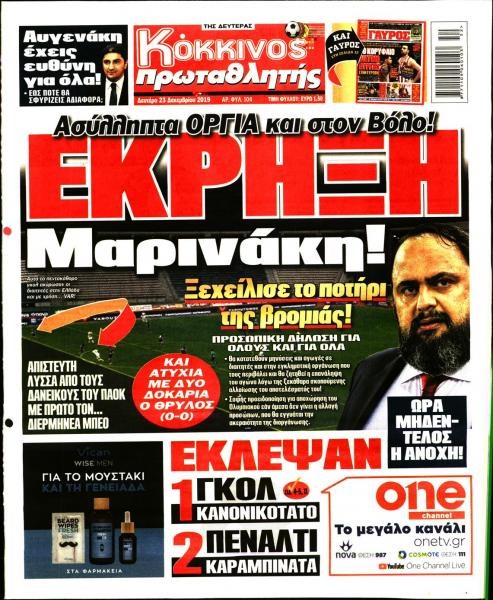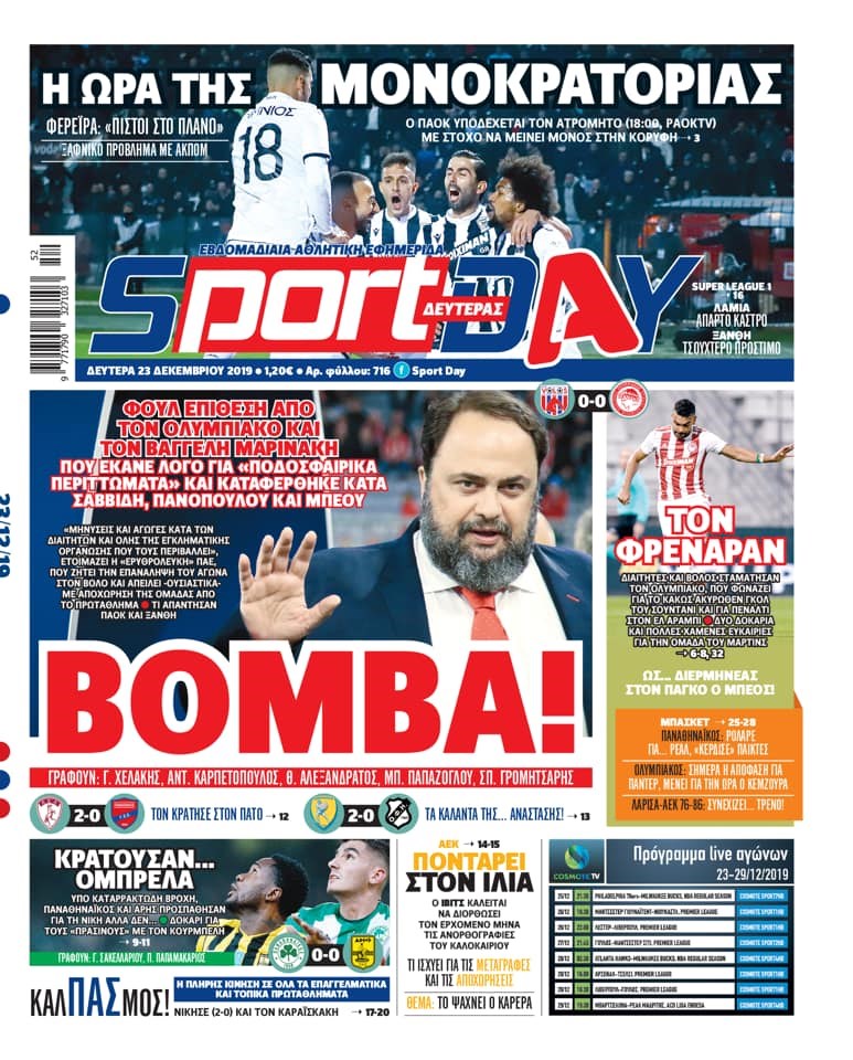 Οι αθλητικές εφημερίδες 23/12/2019 Κώστας Τεό 07:51, Δευτέρα 23 Δεκεμβρίου 2019 Media Διαβάστε τα πρωτοσέλιδα των αθλητικών εφημερίδων: ΑΘΛΗΤΙΚΕΣ ΕΦΗΜΕΡΙΔΕΣ ΠΡΩΤΟΣΕΛΙΔΑ Μοιράσου το: σχολίασε κι εσύ (0 σχόλια) Ακολουθήστε το enikos.gr στο Google News και μάθετε πρώτοι όλες τις ειδήσεις Δείτε όλες τις τελευταίες ειδήσεις από την Ελλάδα και τον Κόσμο στο enikos.gr Ειδήσεις Ροή Ειδήσεων 42 λεπτά πριν Χριστούγεννα στα μπλόκα: Επιμένουν στις κινητοποιήσεις τους οι αγρότες – Ανοίγουν τα διόδια το Σαββατοκύριακο 1 ώρα πριν Ουκρανία: Η άνευ προηγουμένου επίθεση σε ρωσικό τάνκερ στη Μεσόγειο και το μήνυμα προς στον Πούτιν – Το «μακρύ χέρι» του Κιέβου 19 λεπτά πριν Πούτιν: Τα μηνύματα σε Ευρώπη και ΝΑΤΟ από το μαραθώνιο «σόου» του – Η απαίτηση για «σεβασμό» και η ειρήνη «με τους όρους» της Μόσχας 1 ώρα πριν Τραμπ: Δεν αποκλείει την πιθανότητα ενός πολέμου στη Βενεζουέλα – «Ο Μαδούρο ξέρει καλύτερα από τον καθένα τι ακριβώς θέλω» 2 ώρες πριν Συνεχίζει να προκαλεί ο Μίτσκοσκι: «Για μένα το όνομα Μακεδονία είναι ιερό» 4 ώρες πριν Πούτιν: «Ναι, είμαι ερωτευμένος» – Βίντεο από τη σπάνια προσωπική παραδοχή του 2 ώρες πριν Αριθμολογία: Οι άνθρωποι που έχουν γεννηθεί αυτές τις 4 ημερομηνίες, συχνά παρεξηγούνται – «Η καλοσύνη τους κρύβει τεράστια δύναμη» 1 ώρα πριν Ύπνος: Μια κρυφή κατάσταση του εγκεφάλου πριν από τον ύπνο μπορεί να είναι το “κλειδί” για υψηλή ευφυΐα και δημιουργικότητα 3 ώρες πριν Ξεχάστε το καθάρισμα το Σαββατοκύριακο: Ο «κανόνας των 20 λεπτών» που θα σας λύσει τα χέρια 20 λεπτά πριν Ανακαλύφθηκαν αρχαία χρυσά νομίσματα 2.200 ετών που απεικονίζουν τον θεό Απόλλωνα – Η άγνωστη σύνδεση με τον Φίλιππο Β΄ της Μακεδονίας 4 λεπτά πριν Ολυμπιακός – Βιλερμπάν 107-84: Επιστροφή στις νίκες με… προπόνηση 10 λεπτά πριν Νέος Κόσμος: Συνελήφθη 41χρονος με ένταλμα από την Τουρκία για εμπόριο ναρκωτικών και ληστεία 19 λεπτά πριν Πούτιν: Τα μηνύματα σε Ευρώπη και ΝΑΤΟ από το μαραθώνιο «σόου» του – Η απαίτηση για «σεβασμό» και η ειρήνη «με τους όρους» της Μόσχας 20 λεπτά πριν Ανακαλύφθηκαν αρχαία χρυσά νομίσματα 2.200 ετών που απεικονίζουν τον θεό Απόλλωνα – Η άγνωστη σύνδεση με τον Φίλιππο Β΄ της Μακεδονίας 25 λεπτά πριν Νίκος Ξυλούρης: Συγκινεί η χήρα του σπουδαίου καλλιτέχνη – «Ευχαριστώ όλο τον κόσμο που τον κρατάει ζωντανό 45 χρόνια» ENIKOS NETWORK Το ΕΚΑΒ τιμήθηκε από την Ακαδημία Αθηνών για τα 40 χρόνια προσφοράς του Έχετε πραγματικά μεγάλη καρδιά; 10 χαρακτηριστικά όσων έχουν καλοσύνη Αναστολή μέτρων αναγκαστικής εκτέλεσης για κτηνοτρόφους που πλήττονται από την ευλογιά των αιγοπροβάτων Πλήρης επάρκεια προϊόντων στις λαϊκές της Αττικής, παρά τις αγροτικές κινητοποιήσεις – Τι απαντούν οι πωλητές Χαρτογραφώντας το «σημείο χωρίς επιστροφή»: Για πρώτη φορά αποκαλύπτεται με λεπτομέρεια το ακανθώδες όριο της ατμόσφαιρας τ... Η Google καταργεί τη λειτουργία «dark web report» – Πώς θα μπορούν οι χρήστες να διαγράφουν τα δεδομένα τους περισσότερα 22:42 , Παρασκευή 19 Δεκεμβρίου 2025 Γιώργος Γιαννόπουλος για “Το σόι σου”: “Είναι ευτυχία και ευλογία αυτή η σειρά” «Είναι ευτυχία και ευλογία η συγκυρία αυτής της σειράς», θα πει ο Γιώργος Γιαννόπουλος -ο αγαπ... 20:37 , Παρασκευή 19 Δεκεμβρίου 2025 Don’t Forget The Lyrics: Η Έλλη Κοκκίνου υποδέχεται 4 παίκτες που θα κάνουν τα πάντα για να μη χάσουν ούτε… μισή λέξη από τους στίχους Το «Don’t Forget The Lyrics» επιστρέφει απόψε, Παρασκευή 19 Δεκεμβρίου, στις 21:00 με νέο επει... 19:31 , Παρασκευή 19 Δε