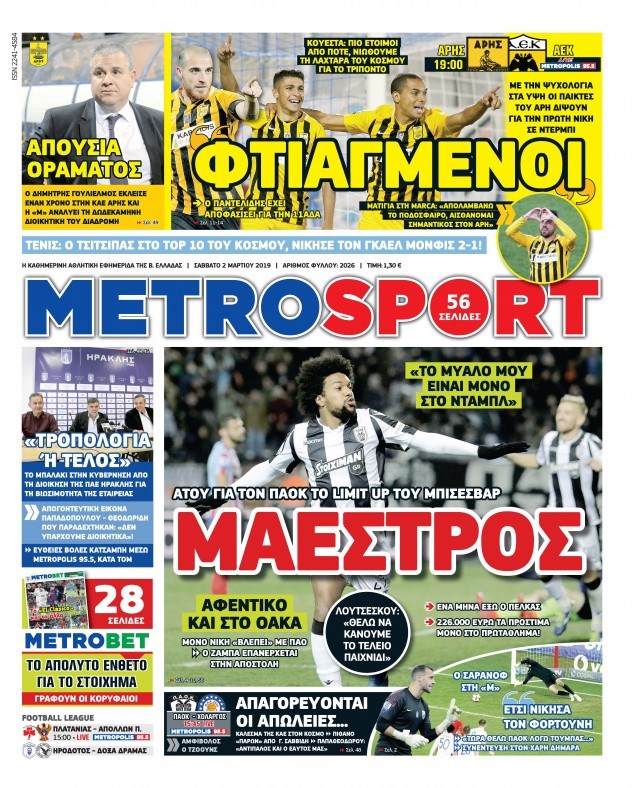 Οι αθλητικές εφημερίδες 2/3/19 Enikos Newsroom 06:44, Σάββατο 02 Μαρτίου 2019 Media Διαβάστε τα πρωτοσέλιδα των αθλητικών εφημερίδων: ΑΘΛΗΤΙΚΕΣ ΕΦΗΜΕΡΙΔΕΣ ΠΡΩΤΟΣΕΛΙΔΑ Μοιράσου το: σχολίασε κι εσύ (0 σχόλια) Ακολουθήστε το enikos.gr στο Google News και μάθετε πρώτοι όλες τις ειδήσεις Δείτε όλες τις τελευταίες ειδήσεις από την Ελλάδα και τον Κόσμο στο enikos.gr Ειδήσεις Ροή Ειδήσεων 4 ώρες πριν Μεσόγειος: Η διαδρομή του ρωσικού τάνκερ «Qendil» και η στοχευμένη επίθεση της Ουκρανίας με drone – Ο Πούτιν προειδοποίησε για αντίποινα 45 λεπτά πριν Αγρότες: Έκλεισαν για μία ώρα την παρακαμπτήρια της Ιόνιας Οδού στη θέση Χαλίκι 2 ώρες πριν Εμπλοκή και αερομαχίες με οπλισμένα τουρκικά F-16 στο Αιγαίο 2 ώρες πριν Πούτιν: «Ναι, είμαι ερωτευμένος» – Βίντεο από τη σπάνια προσωπική παραδοχή του 49 λεπτά πριν Ανδρέας Λυκουρέντζος: Υπέβαλε την παραίτησή του ο πρόεδρος του ΕΛΓΑ, αλλά δεν έγινε δεκτή – Όλο το παρασκήνιο 59 λεπτά πριν Αριθμολογία: Οι άνθρωποι που έχουν γεννηθεί αυτές τις 4 ημερομηνίες, συχνά παρεξηγούνται – «Η καλοσύνη τους κρύβει τεράστια δύναμη» 3 ώρες πριν Μήπως έχετε χάσει τον εαυτό σας στη σχέση σας; 7 «αθόρυβες» υποχωρήσεις που μάλλον κάνατε, χωρίς να το συνειδητοποιήσετε 2 ώρες πριν Ξεχάστε το καθάρισμα το Σαββατοκύριακο: Ο «κανόνας των 20 λεπτών» που θα σας λύσει τα χέρια 5 ώρες πριν Κουίζ για την παλιά Αθήνα: Αναγνωρίζετε την περιοχή; Έχετε περάσει 100% από εκεί 5 λεπτά πριν ΕΕ: «Κάποια στιγμή θα χρησιμοποιήσουμε τα ρωσικά περιουσιακά στοιχεία» δήλωσε ο πρόεδρος του ΕΛΚ 9 λεπτά πριν Conference League: Καλύτερη επίθεση η ΑΕΚ στη διοργάνωση και 2η σε προσπάθειες στην εστία – Ξεχωρίζουν Πινέδα, Ελίασον και Ρότα 10 λεπτά πριν Έγκυος η Άννα Κορακάκη: «Η οικογένειά μας μεγαλώνει…» – Η αποκάλυψη για το φύλο του μωρού 18 λεπτά πριν Τραγωδία στο Βελεστίνο: Πέθανε ο αντιδήμαρχος Γιάννης Παπαϊωάννου 22 λεπτά πριν Ολυμπιακός – Βιλερμπάν: Μάτωσε στο πρόσωπο ο Παπανικολάου έπειτα από αγκωνιά του Βοτιέ – ΦΩΤΟ ENIKOS NETWORK Το ΕΚΑΒ τιμήθηκε από την Ακαδημία Αθηνών για τα 40 χρόνια προσφοράς του Έχετε πραγματικά μεγάλη καρδιά; 10 χαρακτηριστικά όσων έχουν καλοσύνη Όμιλος ΔΕΗ: Νέα ορόσημα και ενισχυμένη διαφάνεια στην ετήσια Έκθεση Βιώσιμης Ανάπτυξης Έρχονται νέες προσλήψεις σε Δήμο – Όλες οι λεπτομέρειες Χαρτογραφώντας το «σημείο χωρίς επιστροφή»: Για πρώτη φορά αποκαλύπτεται με λεπτομέρεια το ακανθώδες όριο της ατμόσφαιρας τ... Η Google καταργεί τη λειτουργία «dark web report» – Πώς θα μπορούν οι χρήστες να διαγράφουν τα δεδομένα τους περισσότερα 20:37 , Παρασκευή 19 Δεκεμβρίου 2025 Don’t Forget The Lyrics: Η Έλλη Κοκκίνου υποδέχεται 4 παίκτες που θα κάνουν τα πάντα για να μη χάσουν ούτε… μισή λέξη από τους στίχους Το «Don’t Forget The Lyrics» επιστρέφει απόψε, Παρασκευή 19 Δεκεμβρίου, στις 21:00 με νέο επει... 19:31 , Παρασκευή 19 Δεκεμβρίου 2025 GNTM: Απόψε ο μεγάλος τελικός για τους 4 φιναλίστ Έπειτα από μήνες γεμάτους μόδα, δημιουργία και έντονες αναμετρήσεις, το GNTM 2025 κορυφώνεται,... 18:11 , Παρασκευή 19 Δεκεμβρίου 2025 Το σόι σου: Ο Άρης έρχεται στην Ελλάδα για τις γιορτές των Χριστουγέννων – Τι θα δούμε στο αποψινό εορταστικό επεισόδιο Ένα απολαυστικό, εορταστικό επεισόδιο της σειράς “Το σόι σου”, γεμάτο ευτράπελα αλ... 15:15 , Παρασκευή 19 Δεκεμβρίου 2025 Την Κυριακή με τη Realnews: Ό,τι και αν αγοράσεις, σκανάρεις και κερδίζεις! Την Κυριακή με τη Realnews: Ό,τι και αν αγοράσεις, σκανάρεις και κερδίζεις! Με το PADU app, το... ΤΕΛΕΥΤΑΙΕΣ ΕΙΔΗΣΕΙΣ 5 λεπτά πριν ΕΕ: «Κάποια στιγμή 