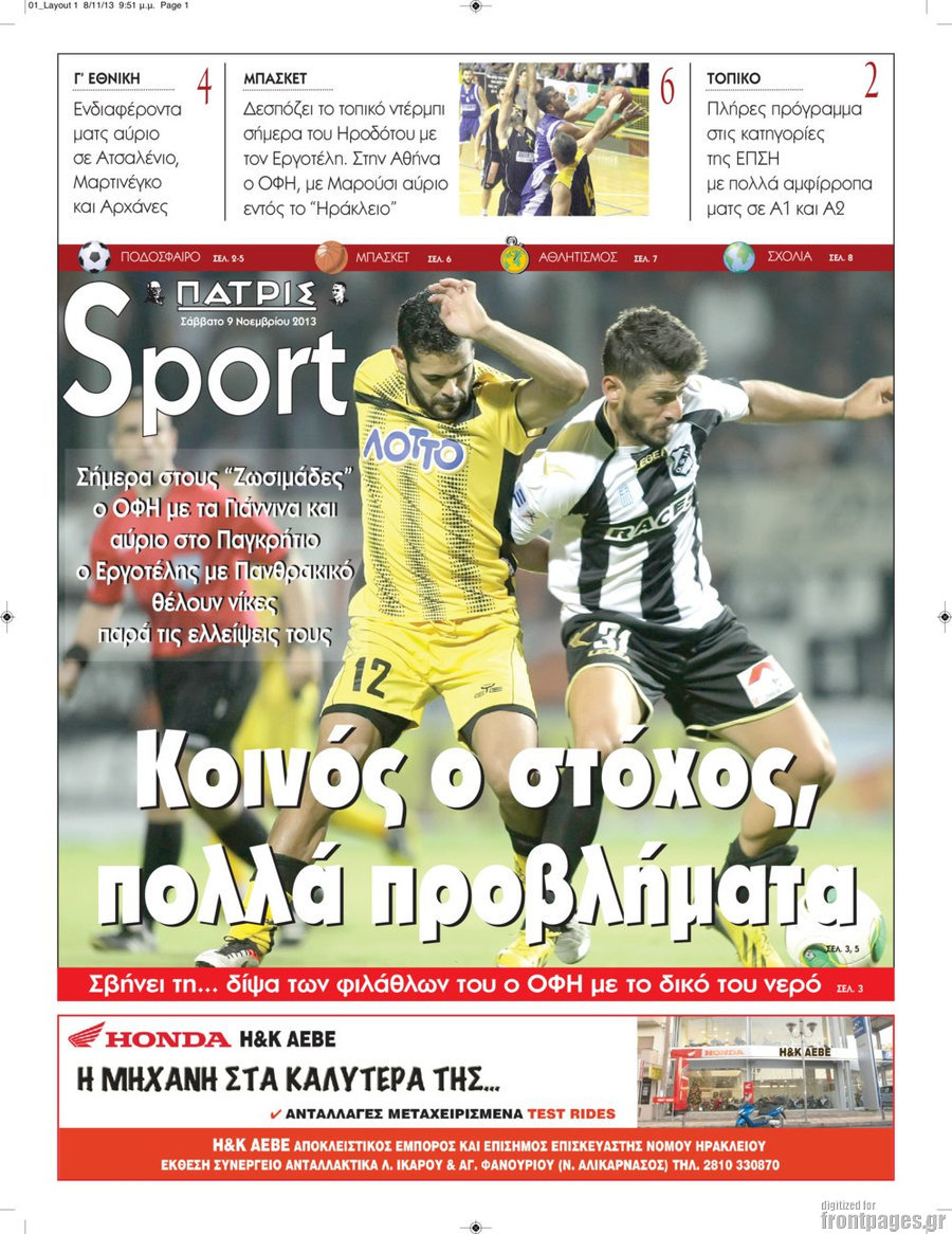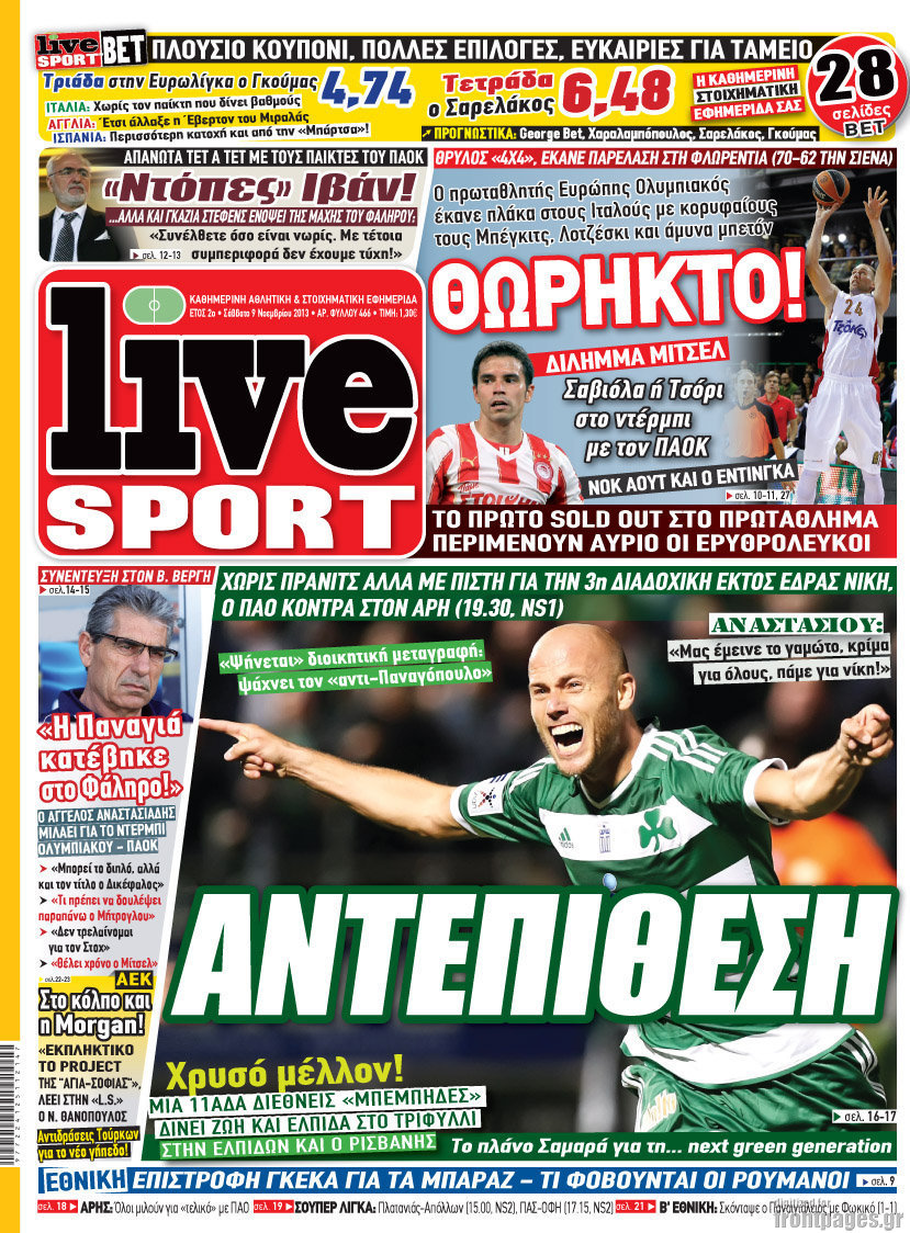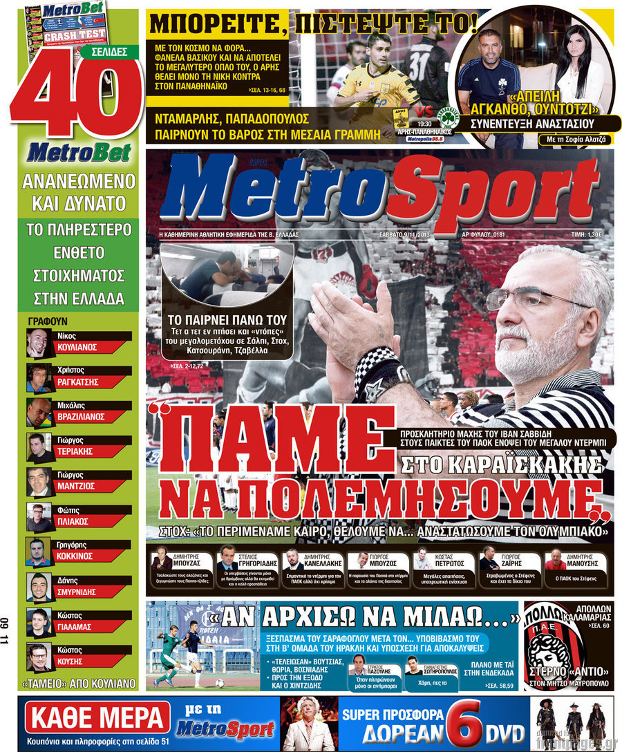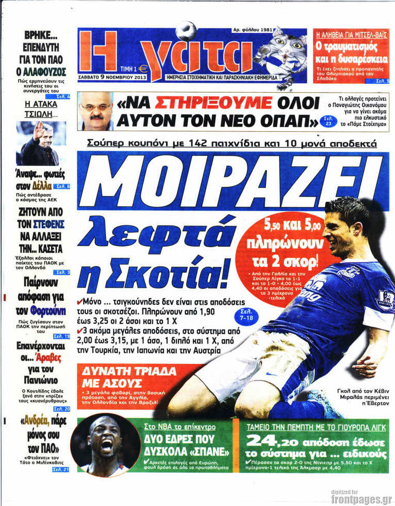 Oι αθλητικές εφημερίδες Enikos Newsroom 08:34, Σάββατο 09 Νοεμβρίου 2013 Media Oι αθλητικές εφημερίδες ΑΘΛΗΤΙΚΕΣ ΕΦΗΜΕΡΙΔΕΣ Μοιράσου το: σχολίασε κι εσύ (0 σχόλια) Ακολουθήστε το enikos.gr στο Google News και μάθετε πρώτοι όλες τις ειδήσεις Δείτε όλες τις τελευταίες ειδήσεις από την Ελλάδα και τον Κόσμο στο enikos.gr Ειδήσεις Ροή Ειδήσεων 1 ώρα πριν ΣΥΡΙΖΑ: Διαγράφεται ο ευρωβουλευτής Νίκος Παππάς μετά την μήνυση δημοσιογράφου για ξυλοδαρμό 21 λεπτά πριν Τουρκία: Επιδιώκει την επιστροφή των S-400 στη Ρωσία – Οι αμερικανικές πιέσεις 32 λεπτά πριν ΟΠΕΚΕΠΕ: Ελεύθερες με όρους η σύζυγος και η αδελφή του φερόμενου αρχηγού – Τι υποστήριξαν 2 ώρες πριν Πώς στήθηκε η επιχείρηση «Ίπαλλος» που οδήγησε στη σύλληψη του «Έλληνα Εσκομπάρ» – «Ο πόλεμος ενάντια στους εμπόρους ναρκωτικών θα συνεχιστεί» 3 ώρες πριν Κυψέλη: Στη φυλακή η 16χρονη που μαχαίρωσε συμμαθήτριά της 3 ώρες πριν Τα 3 ζώδια που θα δουν τη ζωή τους να αλλάζει ριζικά το 2026 – «Όλα γίνονται καλύτερα σταδιακά» 8 ώρες πριν «Δεν είχα κλάψει από τότε που διαγνώστηκα με καρκίνο, ώσπου ένα τηλεφώνημα με έκανε να λυγίσω» – Η συγκλονιστική εξομολόγηση ενός άνδρα 4 ώρες πριν Ο σπάνιος σεισμός που έλυσε τα χέρια των επιστημόνων – Αποκάλυψε ακριβώς όσα αναζητούσαν 9 ώρες πριν 20 χρόνια τα Χριστούγεννα ξεκινούν στα Public με μεγάλη ποικιλία σε δώρα! 2 λεπτά πριν Κρήτη: Η ανακοίνωση της ΕΛΑΣ για την σύλληψη του 54χρονου – Ζήτησε 5.000 ευρώ από την οικογένεια του 33χρονου γιατρού για να τον βρει μέσω «κβαντικής τεχνολογίας» 7 λεπτά πριν Διπλωματικές πηγές: Το πρώτο τρίμηνο του 2026 το Ανώτατο Συμβούλιο Συνεργασίας Ελλάδας-Τουρκίας 11 λεπτά πριν ΟΠΕΚΕΠΕ – ΕΛΓΑ: Ολοκληρώθηκαν πληρωμές 487,9 εκατ. ευρώ – Θα καταβληθούν ακόμα 600 εκατ. έως τις 31 Δεκεμβρίου 16 λεπτά πριν Γκίλφοϊλ για την επιχείρηση «Ίπαλλος»: Μια σημαντική νίκη στον συνεχιζόμενο αγώνα κατά του εμπορίου ναρκωτικών – Βαθιά ευγνώμων ο Τραμπ 21 λεπτά πριν Τουρκία: Επιδιώκει την επιστροφή των S-400 στη Ρωσία – Οι αμερικανικές πιέσεις ENIKOS NETWORK Γιατί αναζητούμε τα Χριστούγεννα όλο και νωρίτερα; Ποιοι οι ψυχολογικοί και οι συναισθηματικοί λόγοι Σοβαροί κίνδυνοι από τη λάθος χορήγηση φαρμάκου για τις αιμορραγίες-Συστάσεις προς τους γιατρούς Έρχεται νέα ενίσχυση 17.500 ευρώ από τη ΔΥΠΑ για ανέργους- Όλες οι λεπτομέρειες «Αναταράξεις» στην εφοδιαστική αλυσίδα από τα μπλόκα: Επιστολή του Συνδέσμου Θεσσαλικών Βιομηχανιών στον πρωθυπουργό -Τι αν... Χαρτογραφώντας το «σημείο χωρίς επιστροφή»: Για πρώτη φορά αποκαλύπτεται με λεπτομέρεια το ακανθώδες όριο της ατμόσφαιρας τ... Η Google καταργεί τη λειτουργία «dark web report» – Πώς θα μπορούν οι χρήστες να διαγράφουν τα δεδομένα τους περισσότερα 12:35 , Τετάρτη 17 Δεκεμβρίου 2025 Μίρκα Παπακωνσταντίνου: «Δεν ήμουν αισιόδοξη για τα νούμερα – Είμαι ρεαλίστρια» Στα γυρίσματα του εορταστικού επεισοδίου της αγαπημένης σειράς “Το Σόι Σου”, βρέθηκε η κάμερα ... 12:12 , Τετάρτη 17 Δεκεμβρίου 2025 Ακούστε την εκπομπή του Νίκου Χατζηνικολάου 17/12/2025 Ακούστε την εκπομπή του Νίκου Χατζηνικολάου στον ραδιοφωνικό σταθμό RealFm 97,8, την Τετάρτη 1... 11:35 , Τετάρτη 17 Δεκεμβρίου 2025 Home Alone: Το σπίτι της ταινίας θα ανακαινιστεί – Επιστροφή στην αισθητική της δεκαετίας του ’90 Οι νέοι ιδιοκτήτες του πραγματικού σπιτιού που παρουσιάζεται στην κλασική ταινία του 1990 «Hom... 11:25 , Τετάρτη 17 Δεκεμβρίου 2025 Grand Hotel: Απόψε το τελευταίο επεισόδιο της χρονιάς – Όλα τα μυστικά μένουν εδώ Το τελευταίο επεισόδιο της χρ