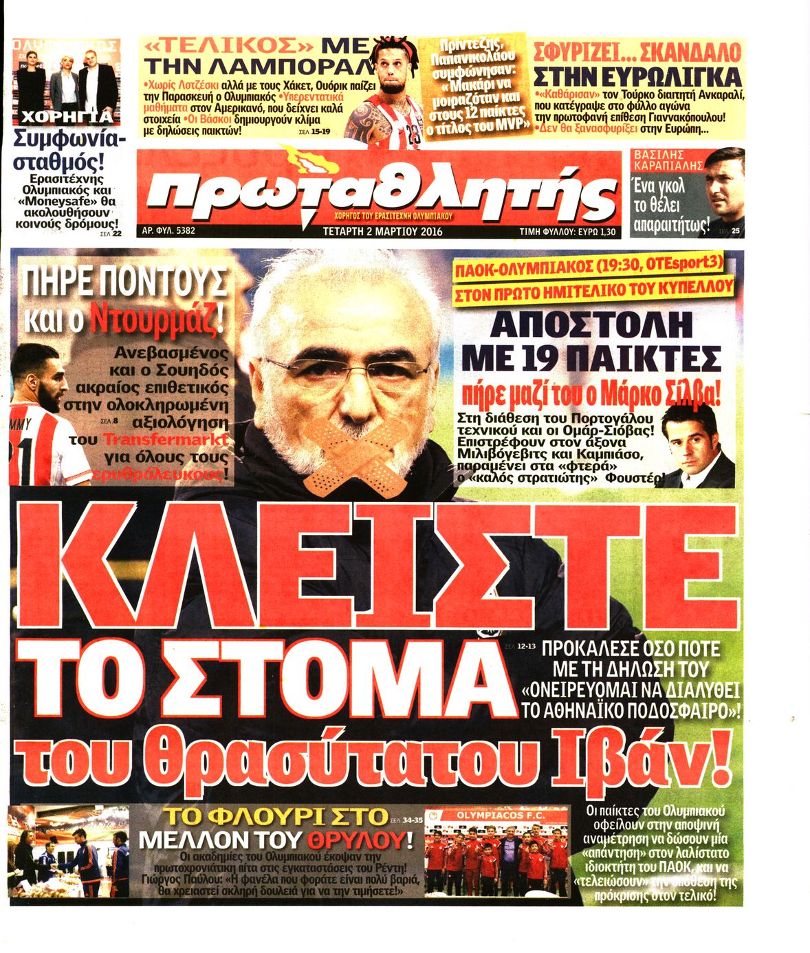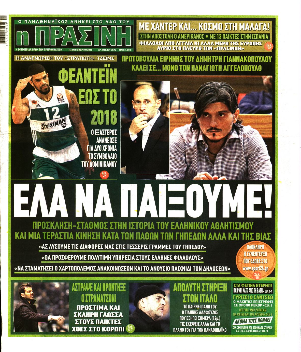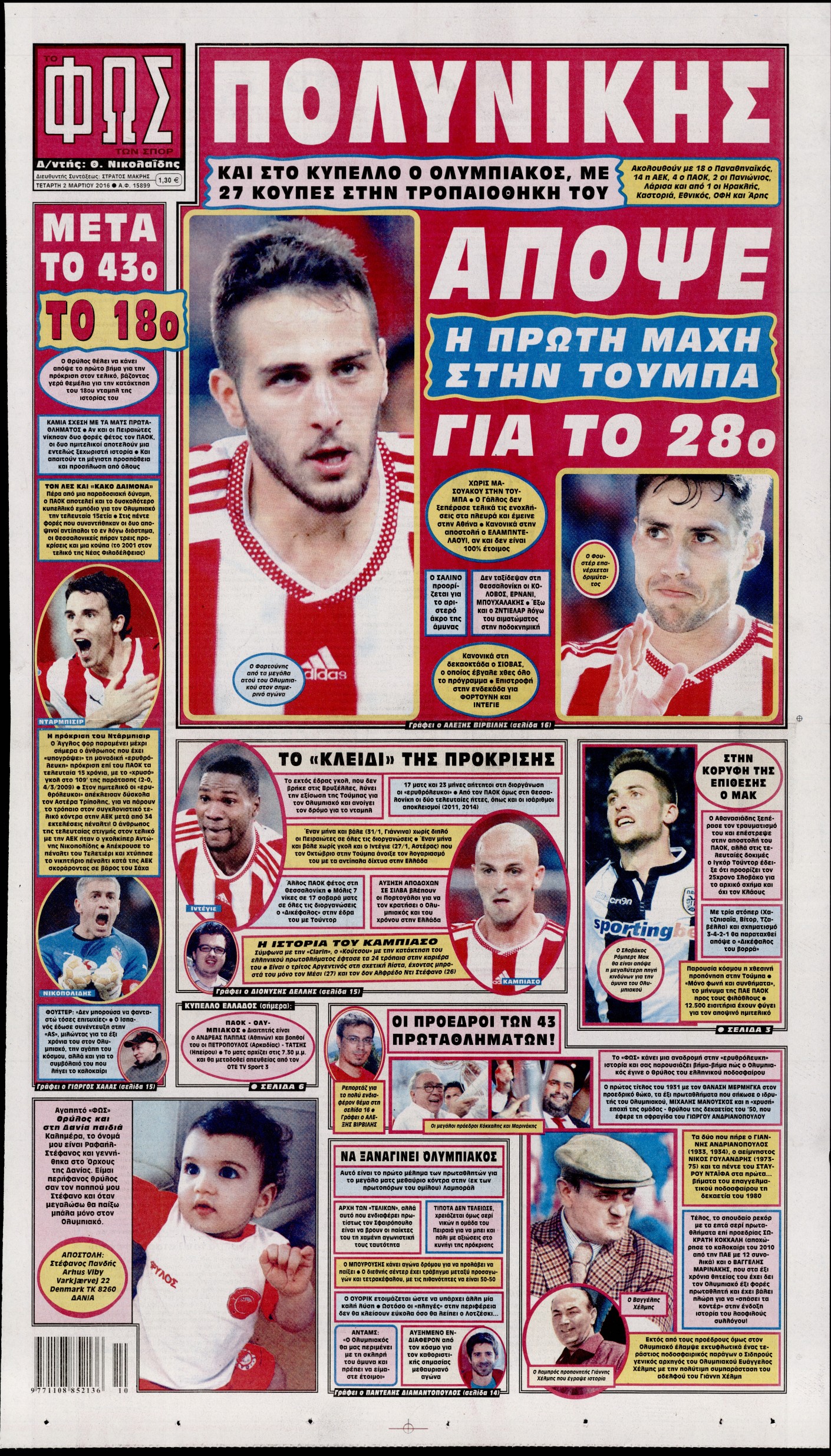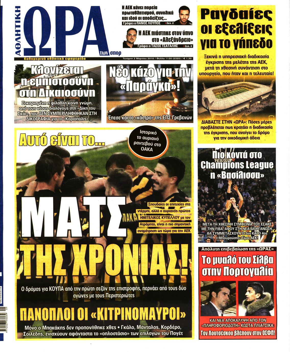 Oι αθλητικές εφημερίδες 2/3/2016 Enikos Newsroom 05:48, Τετάρτη 02 Μαρτίου 2016 Media Διαβάστε τα σημερινά πρωτοσέλιδα των αθλητικών εφημερίδων: Μοιράσου το: σχολίασε κι εσύ (0 σχόλια) Ακολουθήστε το enikos.gr στο Google News και μάθετε πρώτοι όλες τις ειδήσεις Δείτε όλες τις τελευταίες ειδήσεις από την Ελλάδα και τον Κόσμο στο enikos.gr Ειδήσεις Ροή Ειδήσεων 22 λεπτά πριν Τραμπ: Δεν αποκλείει την πιθανότητα ενός πολέμου στη Βενεζουέλα – «Ο Μαδούρο ξέρει καλύτερα από τον καθένα τι ακριβώς θέλω» 16 λεπτά πριν Ουκρανία: Η άνευ προηγουμένου επίθεση σε ρωσικό τάνκερ στη Μεσόγειο και το μήνυμα προς στον Πούτιν – Το «μακρύ χέρι» του Κιέβου 3 ώρες πριν Εμπλοκή και αερομαχίες με οπλισμένα τουρκικά F-16 στο Αιγαίο 3 ώρες πριν Πούτιν: «Ναι, είμαι ερωτευμένος» – Βίντεο από τη σπάνια προσωπική παραδοχή του 1 ώρα πριν Ανδρέας Λυκουρέντζος: Υπέβαλε την παραίτησή του ο πρόεδρος του ΕΛΓΑ, αλλά δεν έγινε δεκτή – Όλο το παρασκήνιο 2 ώρες πριν Αριθμολογία: Οι άνθρωποι που έχουν γεννηθεί αυτές τις 4 ημερομηνίες, συχνά παρεξηγούνται – «Η καλοσύνη τους κρύβει τεράστια δύναμη» 4 ώρες πριν Μήπως έχετε χάσει τον εαυτό σας στη σχέση σας; 7 «αθόρυβες» υποχωρήσεις που μάλλον κάνατε, χωρίς να το συνειδητοποιήσετε 3 ώρες πριν Ξεχάστε το καθάρισμα το Σαββατοκύριακο: Ο «κανόνας των 20 λεπτών» που θα σας λύσει τα χέρια 31 λεπτά πριν Ύπνος: Μια κρυφή κατάσταση του εγκεφάλου πριν από τον ύπνο μπορεί να είναι το “κλειδί” για υψηλή ευφυΐα και δημιουργικότητα 5 λεπτά πριν Χάρι και Μέγκαν: Η σπάνια οικογενειακή φωτογραφία με τον Άρτσι και τη Λίλιμπετ – Τι σχεδιάζουν για τα Χριστούγεννα 12 λεπτά πριν Βασίλης Καρράς: «Είναι πάντα δίπλα μου, δεν έφυγε…», λέει ο αδελφός του 16 λεπτά πριν Ουκρανία: Η άνευ προηγουμένου επίθεση σε ρωσικό τάνκερ στη Μεσόγειο και το μήνυμα προς στον Πούτιν – Το «μακρύ χέρι» του Κιέβου 22 λεπτά πριν Τραμπ: Δεν αποκλείει την πιθανότητα ενός πολέμου στη Βενεζουέλα – «Ο Μαδούρο ξέρει καλύτερα από τον καθένα τι ακριβώς θέλω» 24 λεπτά πριν Κηφισιά: Με πολλές απουσίες κόντρα στον Ολυμπιακό – «Last dance» για τον Τεττέη ENIKOS NETWORK Το ΕΚΑΒ τιμήθηκε από την Ακαδημία Αθηνών για τα 40 χρόνια προσφοράς του Έχετε πραγματικά μεγάλη καρδιά; 10 χαρακτηριστικά όσων έχουν καλοσύνη ΑΑΔΕ: Νέες αναβαθμίσεις στο Ψηφιακό Πελατολόγιο και την εφαρμογή myDATAapp – Τι πρέπει να γνωρίζετε Όμιλος ΔΕΗ: Νέα ορόσημα και ενισχυμένη διαφάνεια στην ετήσια Έκθεση Βιώσιμης Ανάπτυξης Χαρτογραφώντας το «σημείο χωρίς επιστροφή»: Για πρώτη φορά αποκαλύπτεται με λεπτομέρεια το ακανθώδες όριο της ατμόσφαιρας τ... Η Google καταργεί τη λειτουργία «dark web report» – Πώς θα μπορούν οι χρήστες να διαγράφουν τα δεδομένα τους περισσότερα 20:37 , Παρασκευή 19 Δεκεμβρίου 2025 Don’t Forget The Lyrics: Η Έλλη Κοκκίνου υποδέχεται 4 παίκτες που θα κάνουν τα πάντα για να μη χάσουν ούτε… μισή λέξη από τους στίχους Το «Don’t Forget The Lyrics» επιστρέφει απόψε, Παρασκευή 19 Δεκεμβρίου, στις 21:00 με νέο επει... 19:31 , Παρασκευή 19 Δεκεμβρίου 2025 GNTM: Απόψε ο μεγάλος τελικός για τους 4 φιναλίστ Έπειτα από μήνες γεμάτους μόδα, δημιουργία και έντονες αναμετρήσεις, το GNTM 2025 κορυφώνεται,... 18:11 , Παρασκευή 19 Δεκεμβρίου 2025 Το σόι σου: Ο Άρης έρχεται στην Ελλάδα για τις γιορτές των Χριστουγέννων – Τι θα δούμε στο αποψινό εορταστικό επεισόδιο Ένα απολαυστικό, εορταστικό επεισόδιο της σειράς “Το σόι σου”, γεμάτο ευτράπελα αλ... 15:15 , Παρασκευή 19 Δεκεμβρίου 2025 Την Κυριακή με τη Realnews: Ό,τι και αν αγοράσεις, σκανάρεις και κ
