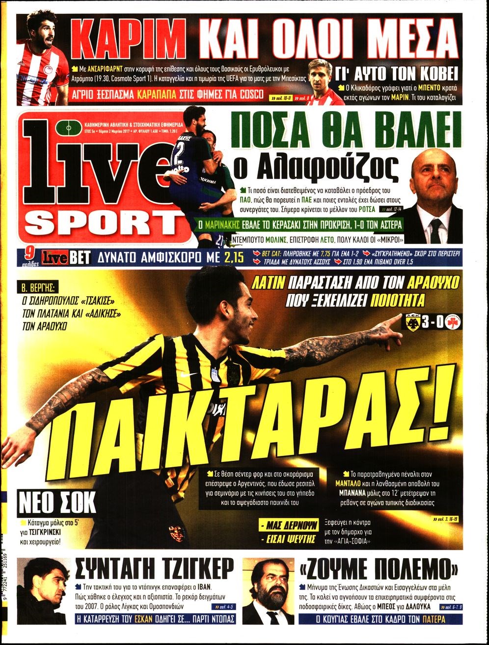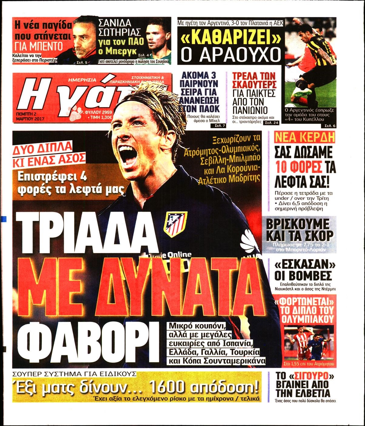 Οι αθλητικές εφημερίδες 2/3/2017 Enikos Newsroom 06:46, Πέμπτη 02 Μαρτίου 2017 Media Διαβάστε τα σημερινά πρωτοσέλιδα των αθλητικών εφημερίδων: ΑΘΛΗΤΙΚΕΣ ΕΦΗΜΕΡΙΔΕΣ ΠΡΩΤΟΣΕΛΙΔΑ Μοιράσου το: σχολίασε κι εσύ (0 σχόλια) Ακολουθήστε το enikos.gr στο Google News και μάθετε πρώτοι όλες τις ειδήσεις Δείτε όλες τις τελευταίες ειδήσεις από την Ελλάδα και τον Κόσμο στο enikos.gr Ειδήσεις Ροή Ειδήσεων 1 ώρα πριν ΣΥΡΙΖΑ: Διαγράφεται ο ευρωβουλευτής Νίκος Παππάς μετά την μήνυση δημοσιογράφου για ξυλοδαρμό 17 λεπτά πριν Τουρκία: Επιδιώκει την επιστροφή των S-400 στη Ρωσία – Οι αμερικανικές πιέσεις 28 λεπτά πριν ΟΠΕΚΕΠΕ: Ελεύθερες με όρους η σύζυγος και η αδελφή του φερόμενου αρχηγού – Τι υποστήριξαν 2 ώρες πριν Πώς στήθηκε η επιχείρηση «Ίπαλλος» που οδήγησε στη σύλληψη του «Έλληνα Εσκομπάρ» – «Ο πόλεμος ενάντια στους εμπόρους ναρκωτικών θα συνεχιστεί» 2 ώρες πριν Κυψέλη: Στη φυλακή η 16χρονη που μαχαίρωσε συμμαθήτριά της 3 ώρες πριν Τα 3 ζώδια που θα δουν τη ζωή τους να αλλάζει ριζικά το 2026 – «Όλα γίνονται καλύτερα σταδιακά» 8 ώρες πριν «Δεν είχα κλάψει από τότε που διαγνώστηκα με καρκίνο, ώσπου ένα τηλεφώνημα με έκανε να λυγίσω» – Η συγκλονιστική εξομολόγηση ενός άνδρα 4 ώρες πριν Ο σπάνιος σεισμός που έλυσε τα χέρια των επιστημόνων – Αποκάλυψε ακριβώς όσα αναζητούσαν 9 ώρες πριν 20 χρόνια τα Χριστούγεννα ξεκινούν στα Public με μεγάλη ποικιλία σε δώρα! 3 λεπτά πριν Διπλωματικές πηγές: Το πρώτο τρίμηνο του 2026 το Ανώτατο Συμβούλιο Συνεργασίας Ελλάδας-Τουρκίας 7 λεπτά πριν ΟΠΕΚΕΠΕ – ΕΛΓΑ: Ολοκληρώθηκαν πληρωμές 487,9 εκατ. ευρώ – Θα καταβληθούν ακόμα 600 εκατ. έως τις 31 Δεκεμβρίου 12 λεπτά πριν Γκίλφοϊλ για την επιχείρηση «Ίπαλλος»: Μια σημαντική νίκη στον συνεχιζόμενο αγώνα κατά του εμπορίου ναρκωτικών – Βαθιά ευγνώμων ο Τραμπ 17 λεπτά πριν Τουρκία: Επιδιώκει την επιστροφή των S-400 στη Ρωσία – Οι αμερικανικές πιέσεις 23 λεπτά πριν Στις Βρυξέλλες ο Κυριάκος Μητσοτάκης για τη Σύνοδο Κορυφής ΕΕ-Δυτικών Βαλκανίων και τη συνεδρίαση του Ευρωπαϊκού Συμβουλίου ENIKOS NETWORK Γιατί αναζητούμε τα Χριστούγεννα όλο και νωρίτερα; Ποιοι οι ψυχολογικοί και οι συναισθηματικοί λόγοι Σοβαροί κίνδυνοι από τη λάθος χορήγηση φαρμάκου για τις αιμορραγίες-Συστάσεις προς τους γιατρούς Έρχεται νέα ενίσχυση 17.500 ευρώ από τη ΔΥΠΑ για ανέργους- Όλες οι λεπτομέρειες «Αναταράξεις» στην εφοδιαστική αλυσίδα από τα μπλόκα: Επιστολή του Συνδέσμου Θεσσαλικών Βιομηχανιών στον πρωθυπουργό -Τι αν... Χαρτογραφώντας το «σημείο χωρίς επιστροφή»: Για πρώτη φορά αποκαλύπτεται με λεπτομέρεια το ακανθώδες όριο της ατμόσφαιρας τ... Η Google καταργεί τη λειτουργία «dark web report» – Πώς θα μπορούν οι χρήστες να διαγράφουν τα δεδομένα τους περισσότερα 12:35 , Τετάρτη 17 Δεκεμβρίου 2025 Μίρκα Παπακωνσταντίνου: «Δεν ήμουν αισιόδοξη για τα νούμερα – Είμαι ρεαλίστρια» Στα γυρίσματα του εορταστικού επεισοδίου της αγαπημένης σειράς “Το Σόι Σου”, βρέθηκε η κάμερα ... 12:12 , Τετάρτη 17 Δεκεμβρίου 2025 Ακούστε την εκπομπή του Νίκου Χατζηνικολάου 17/12/2025 Ακούστε την εκπομπή του Νίκου Χατζηνικολάου στον ραδιοφωνικό σταθμό RealFm 97,8, την Τετάρτη 1... 11:35 , Τετάρτη 17 Δεκεμβρίου 2025 Home Alone: Το σπίτι της ταινίας θα ανακαινιστεί – Επιστροφή στην αισθητική της δεκαετίας του ’90 Οι νέοι ιδιοκτήτες του πραγματικού σπιτιού που παρουσιάζεται στην κλασική ταινία του 1990 «Hom... 11:25 , Τετάρτη 17 Δεκεμβρίου 2025 Grand Hotel: Απόψε το τελευταίο επεισόδιο της χρονιάς – Όλα τα μυστικά μένουν εδώ Το τελευταί